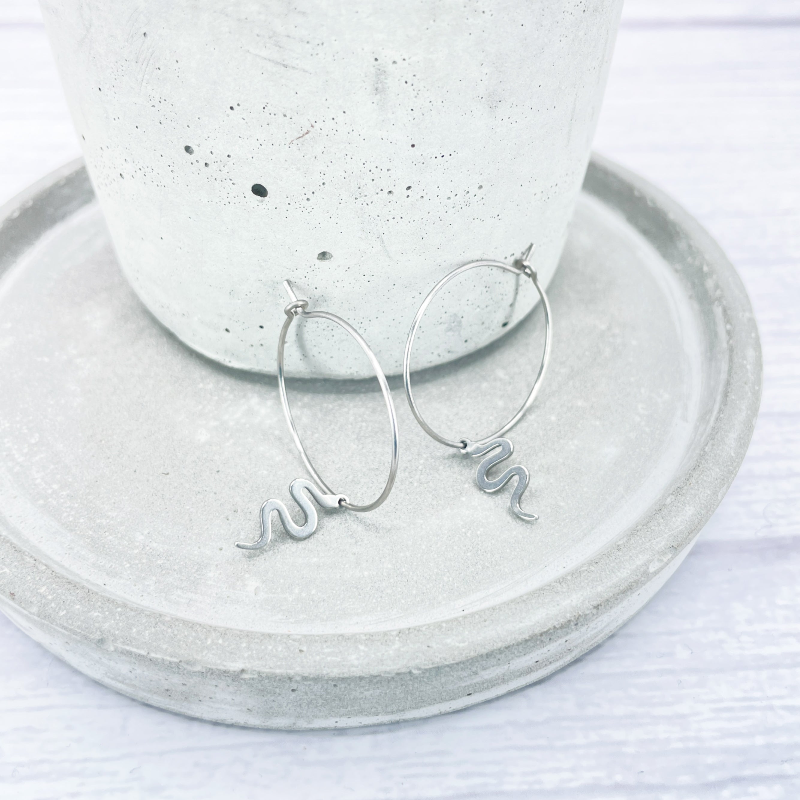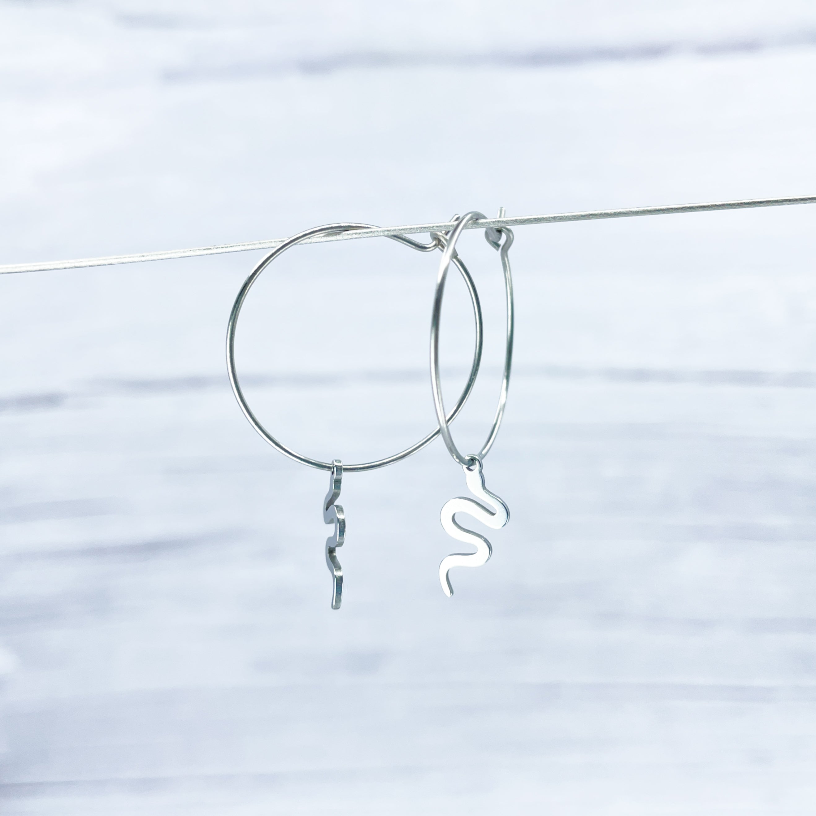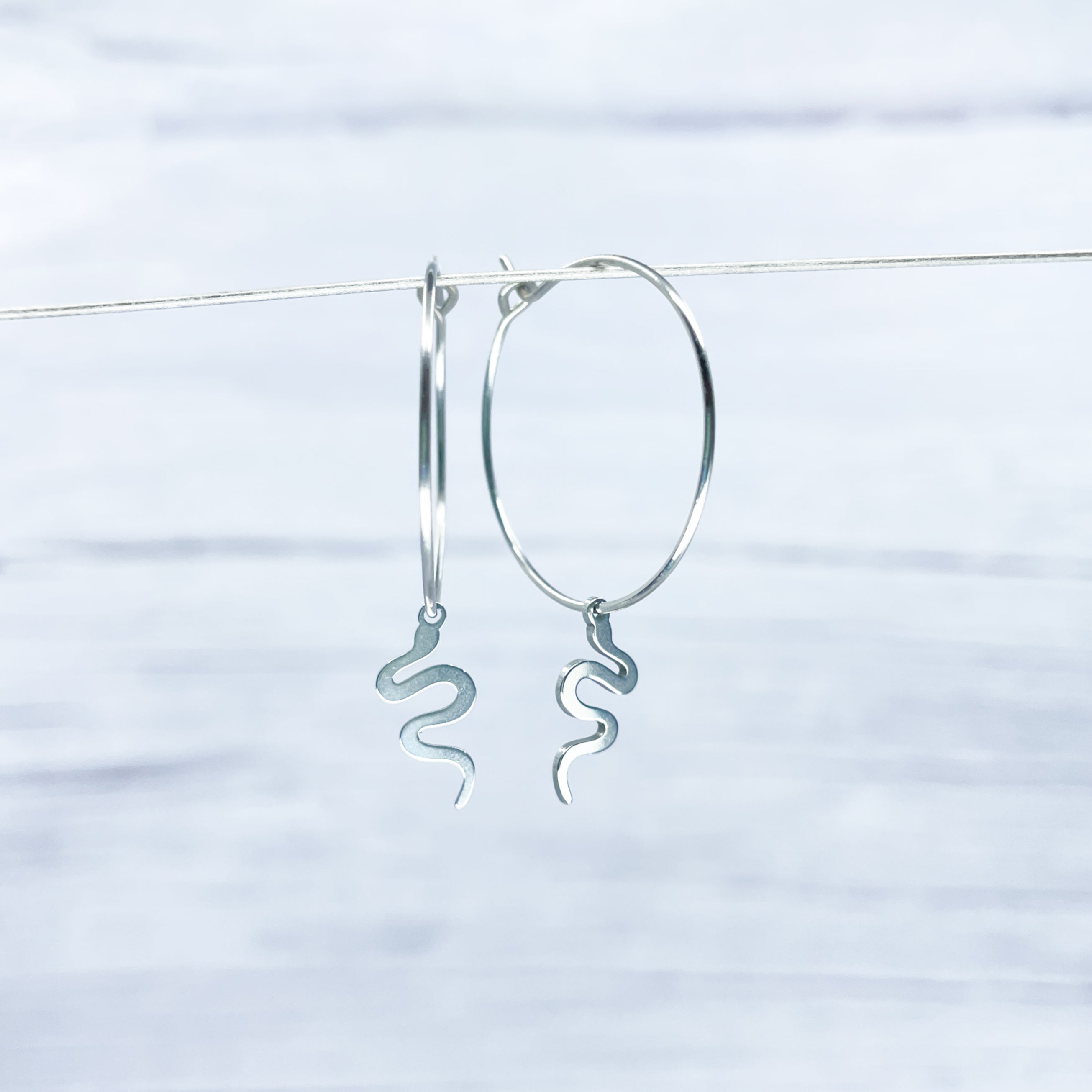 The hoops measure around 1.48" (3.8cm) from the top of the hoop to the bottom of the snakes.