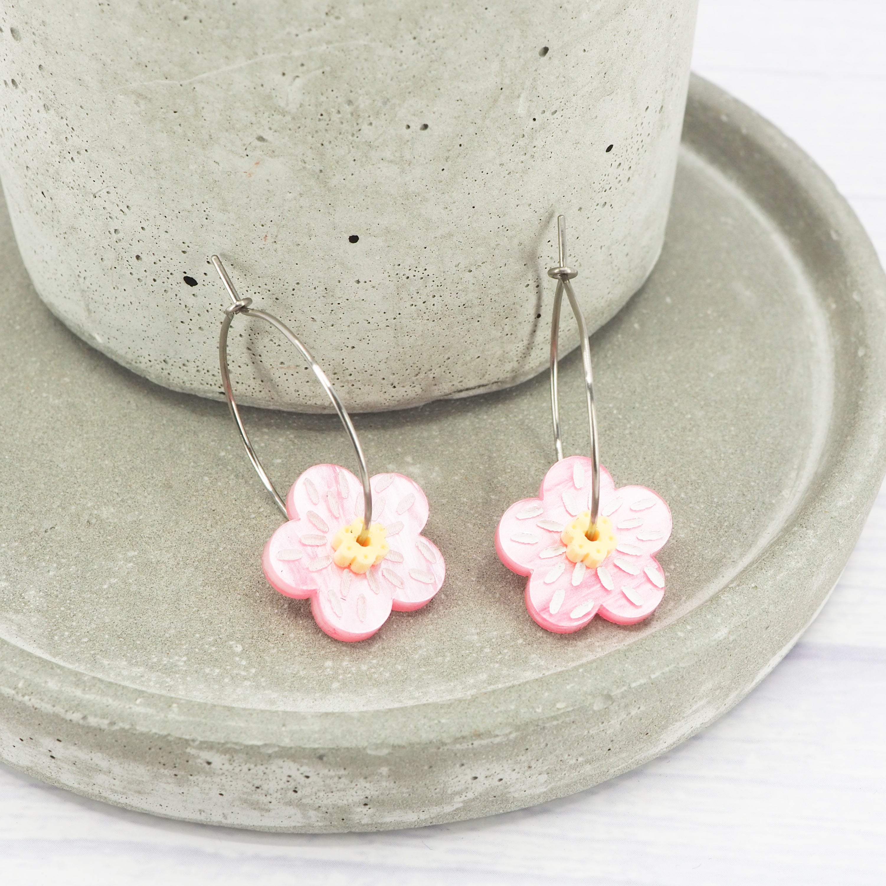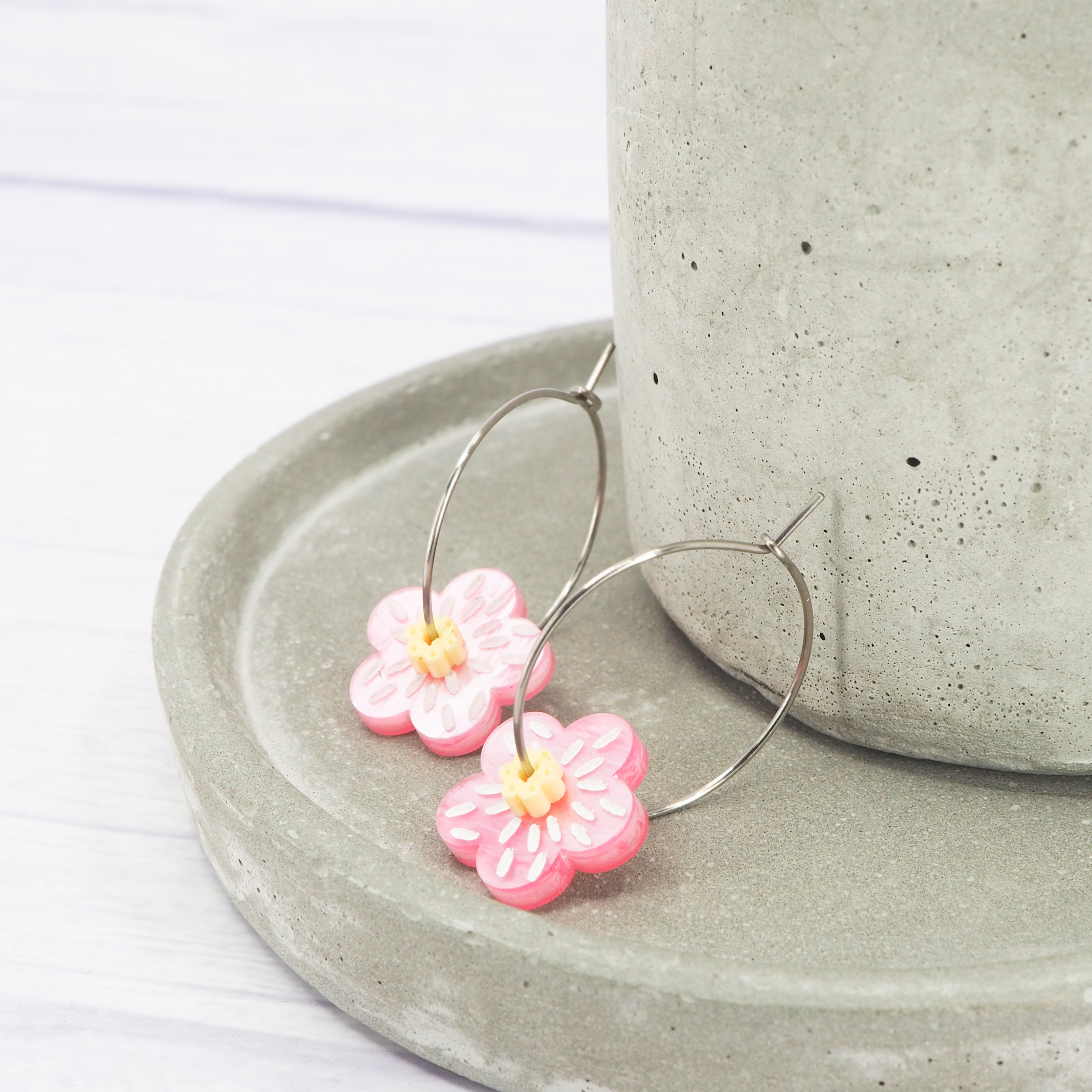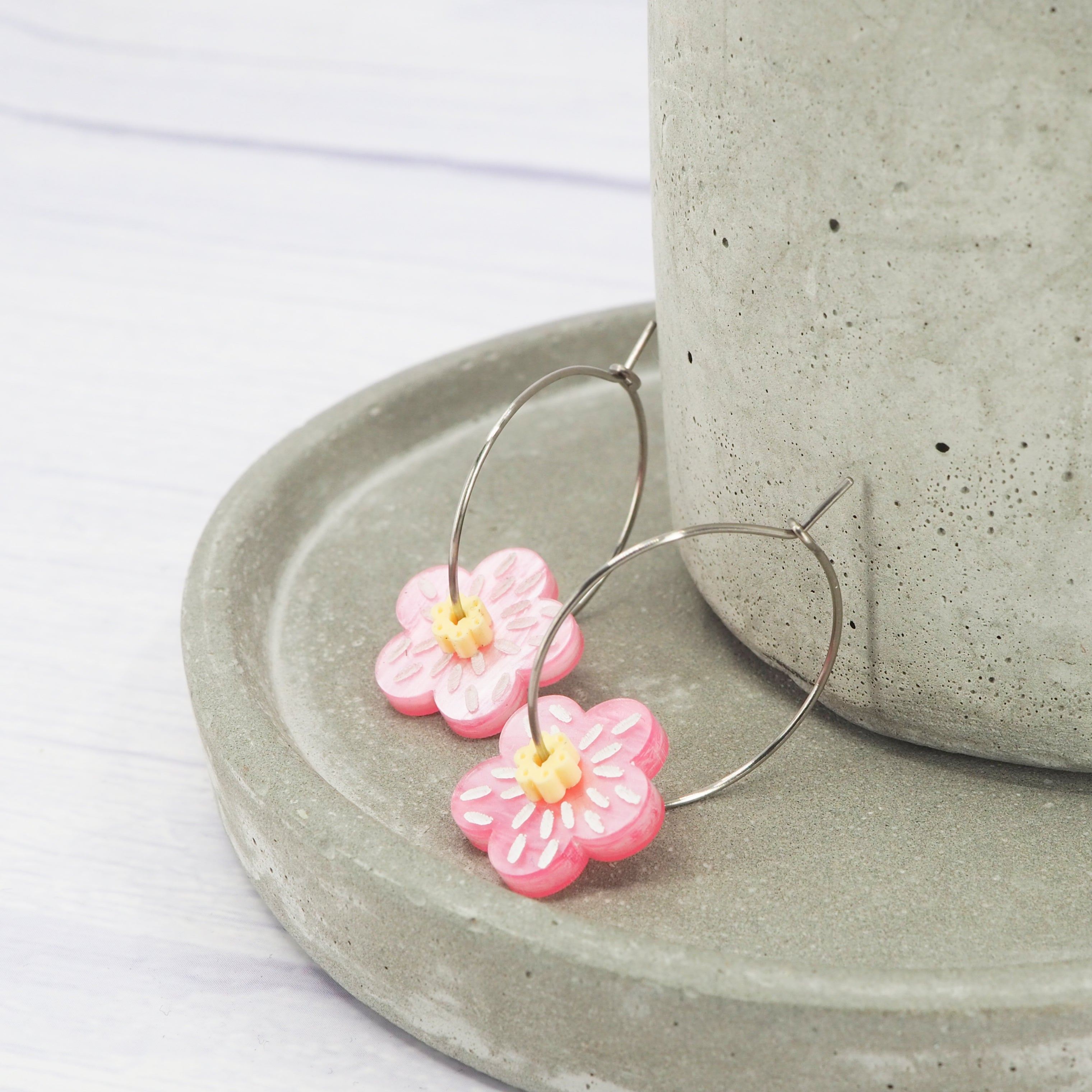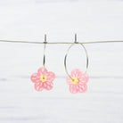 Pearly pink and yellow flower 1 inch hoops