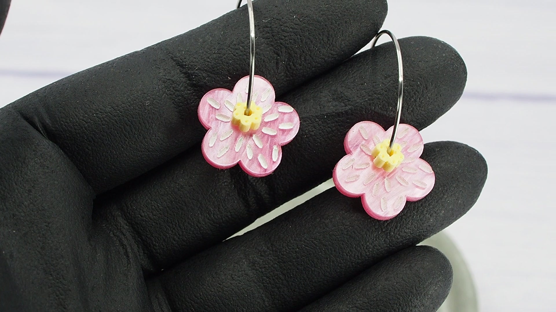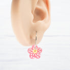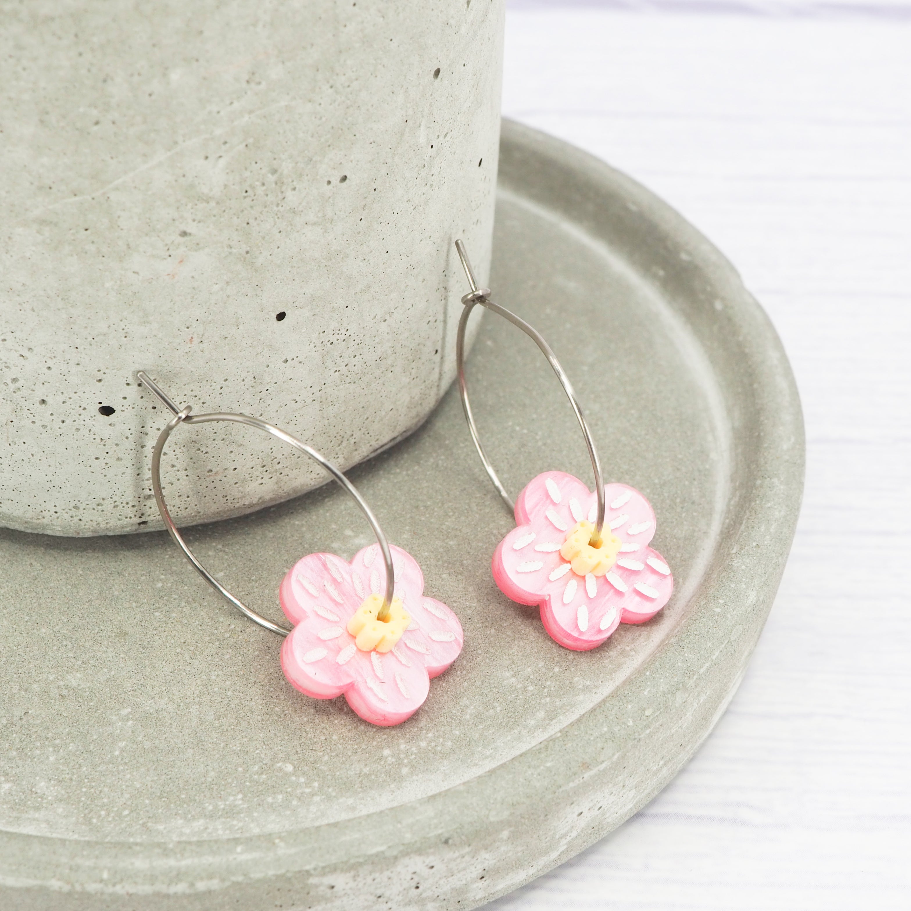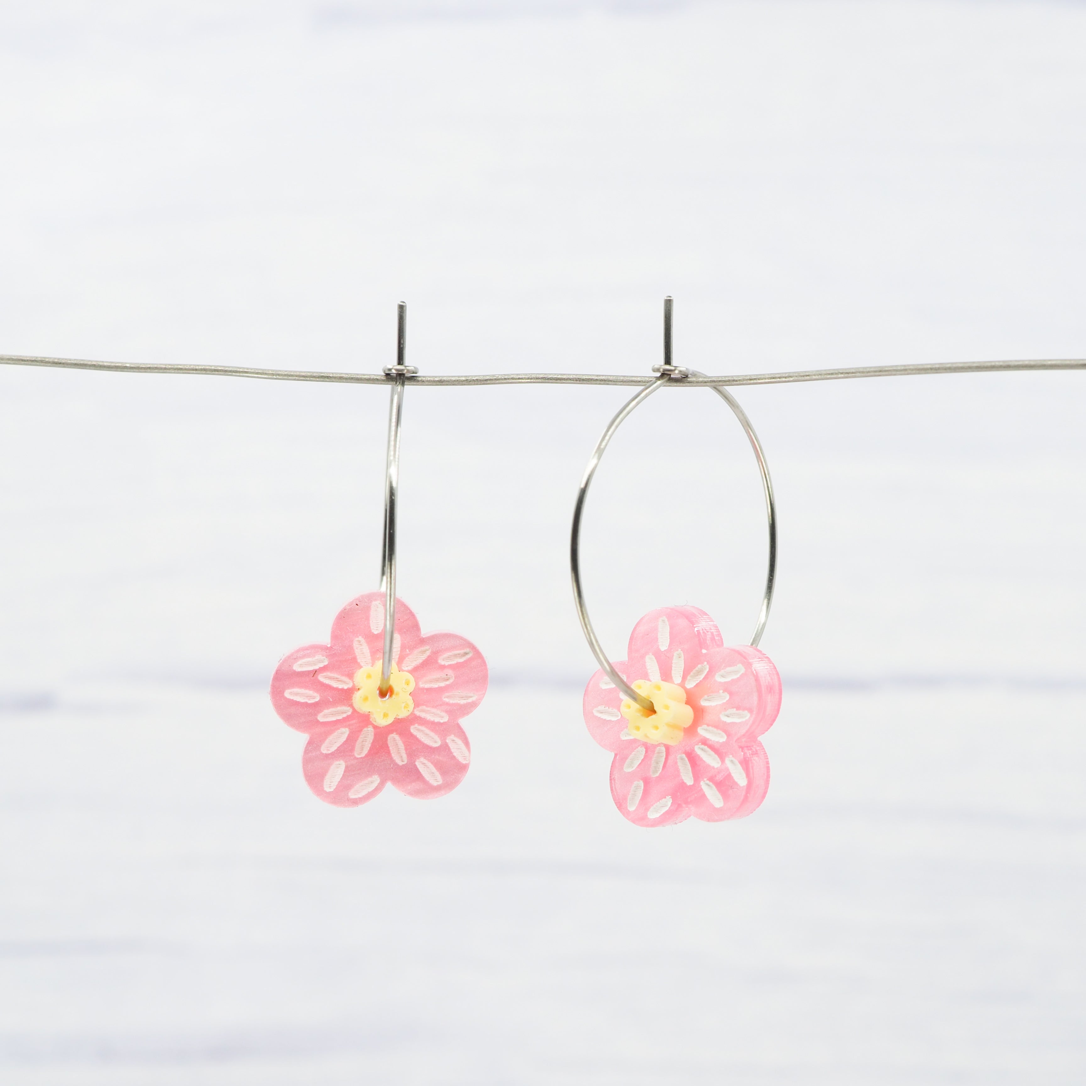 Pearly pink and yellow flower 1 inch hoops