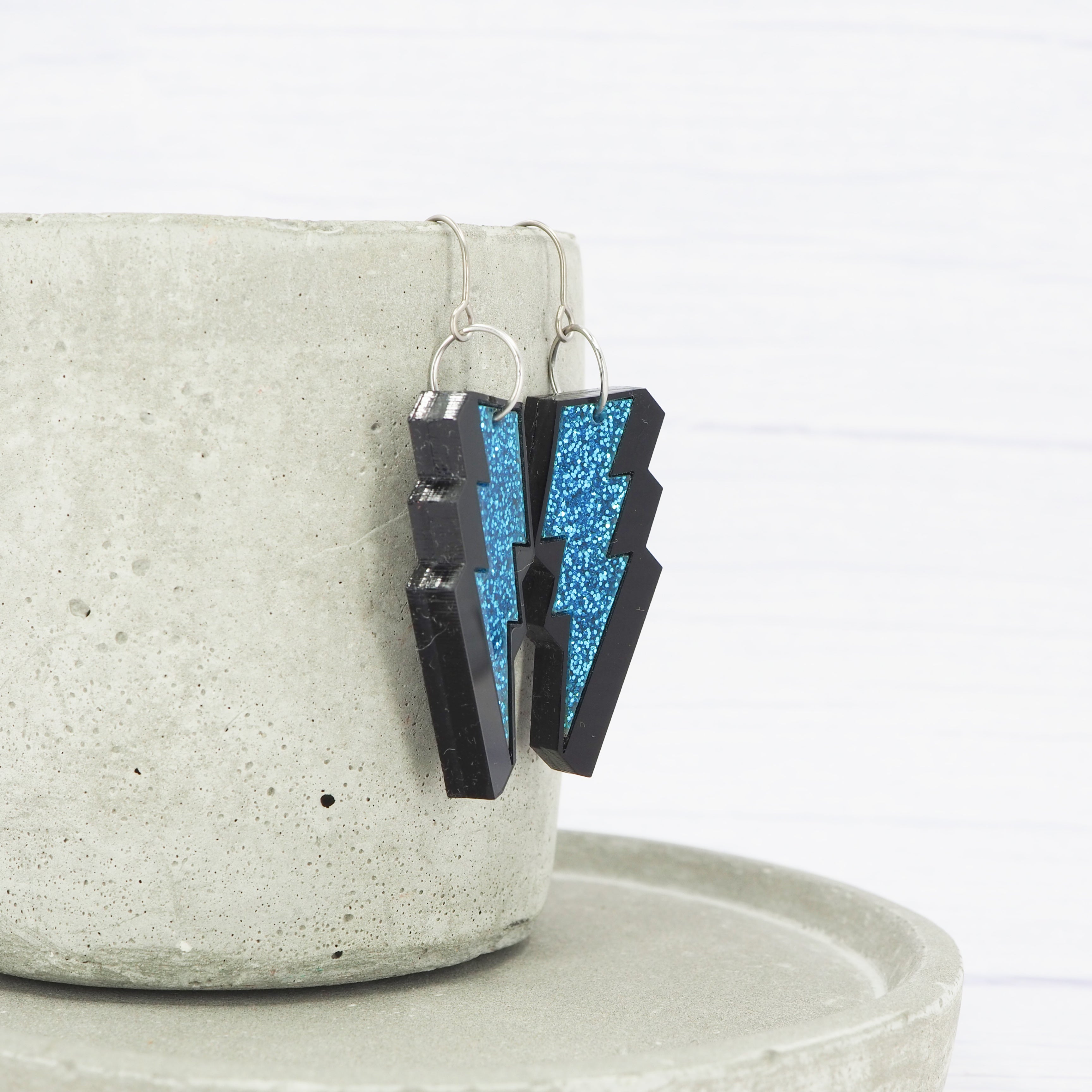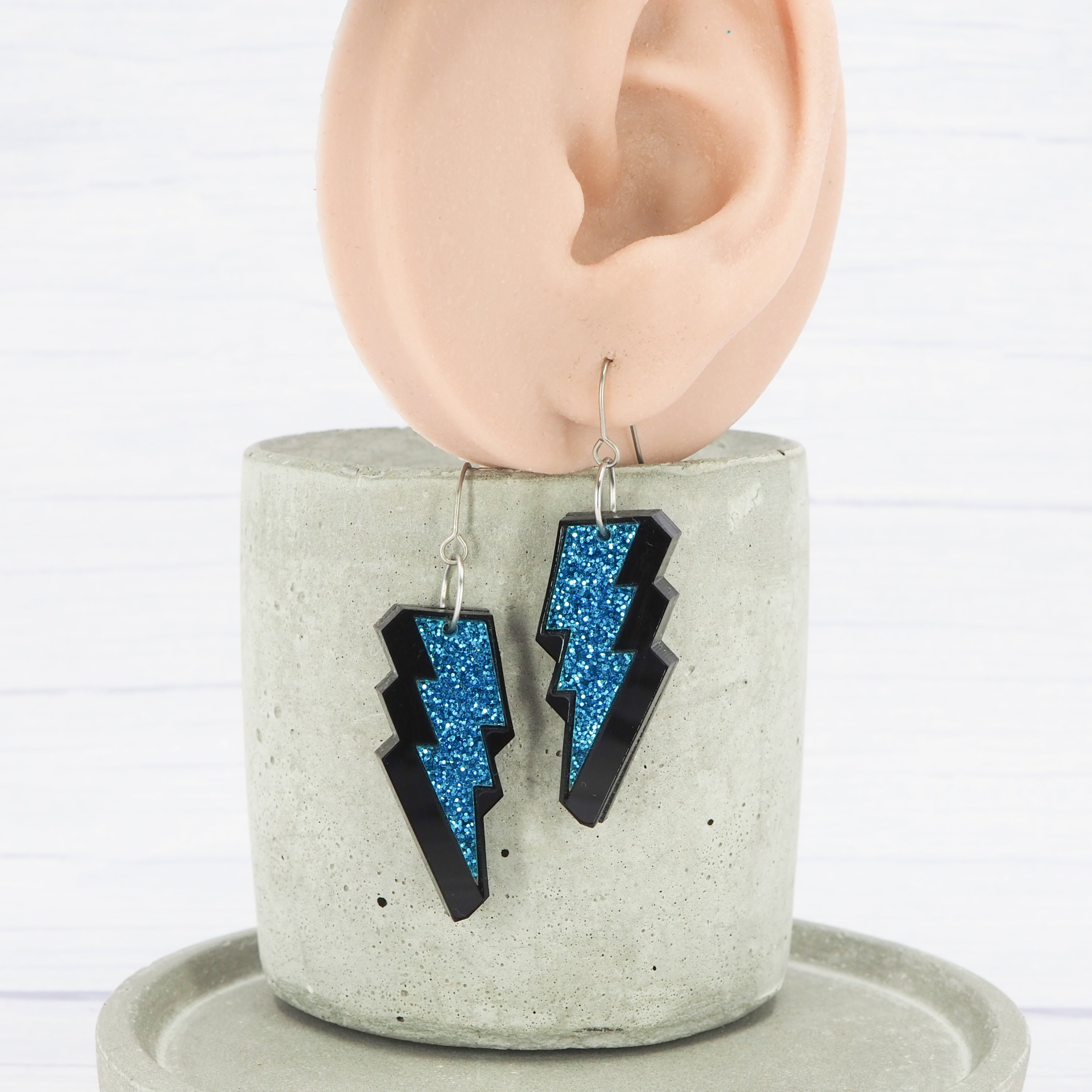 The earrings have a total drop length of 2.3" (6cm) from the top of the ear wire to the bottom of the bolts.