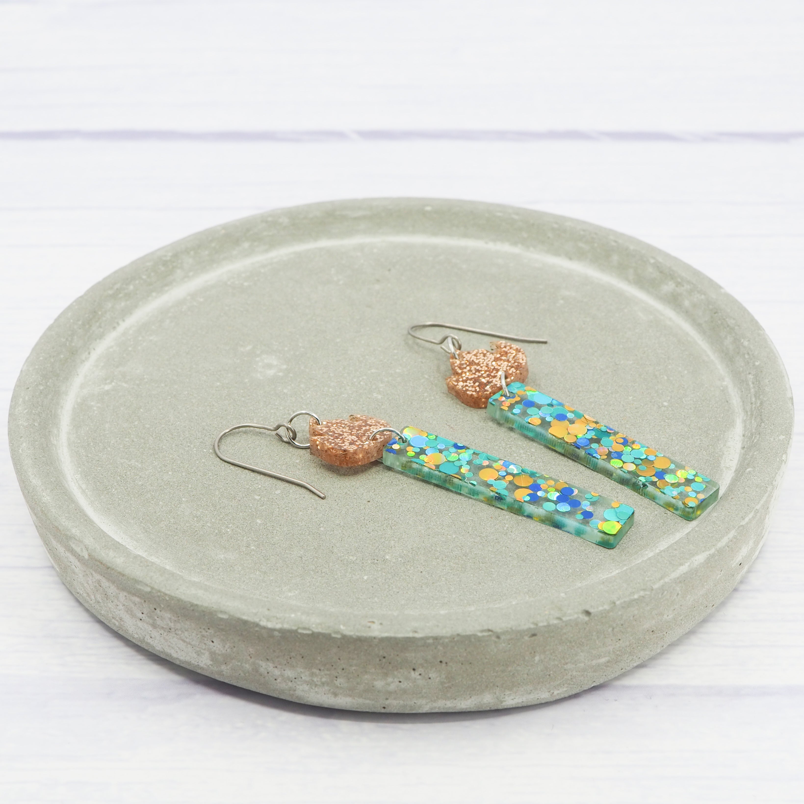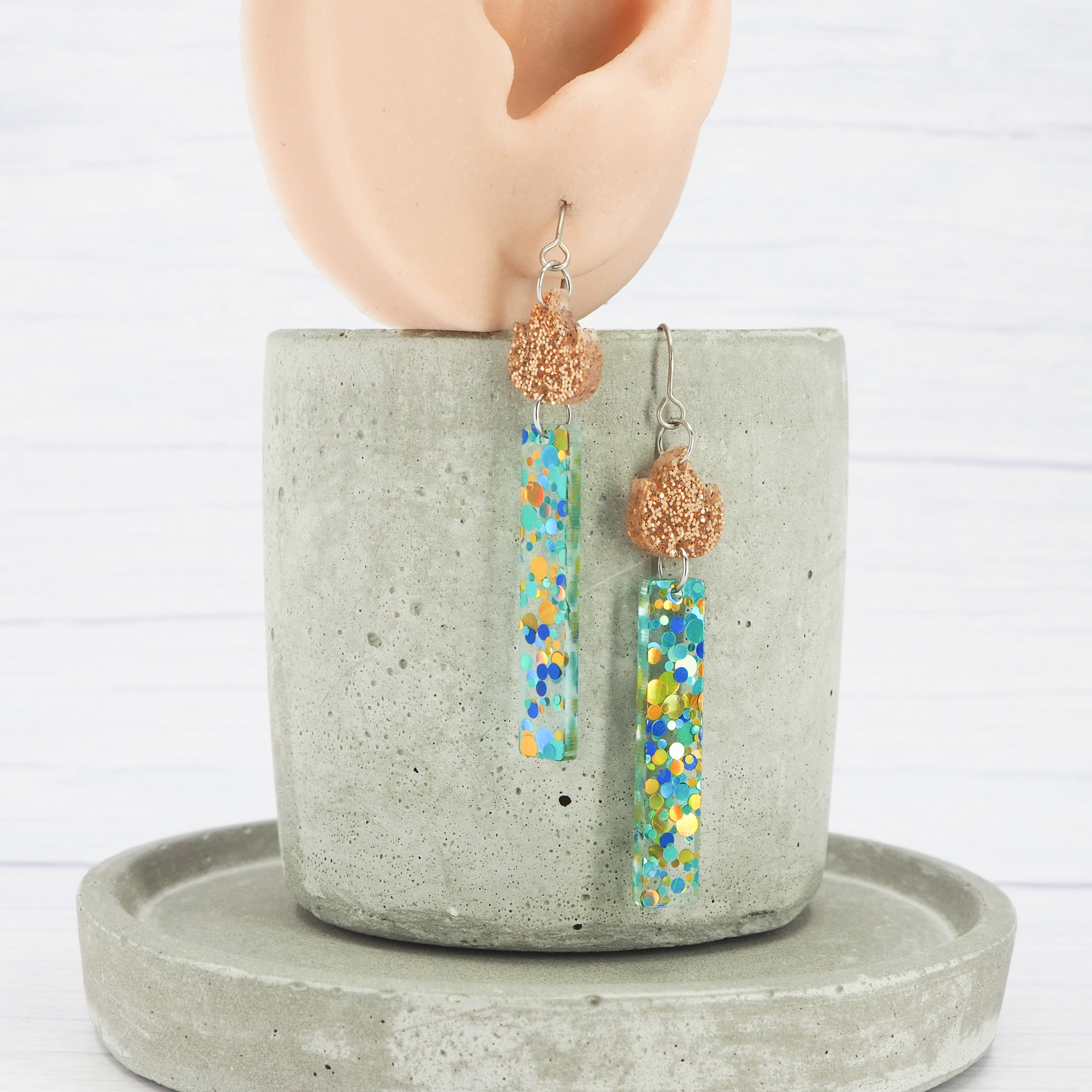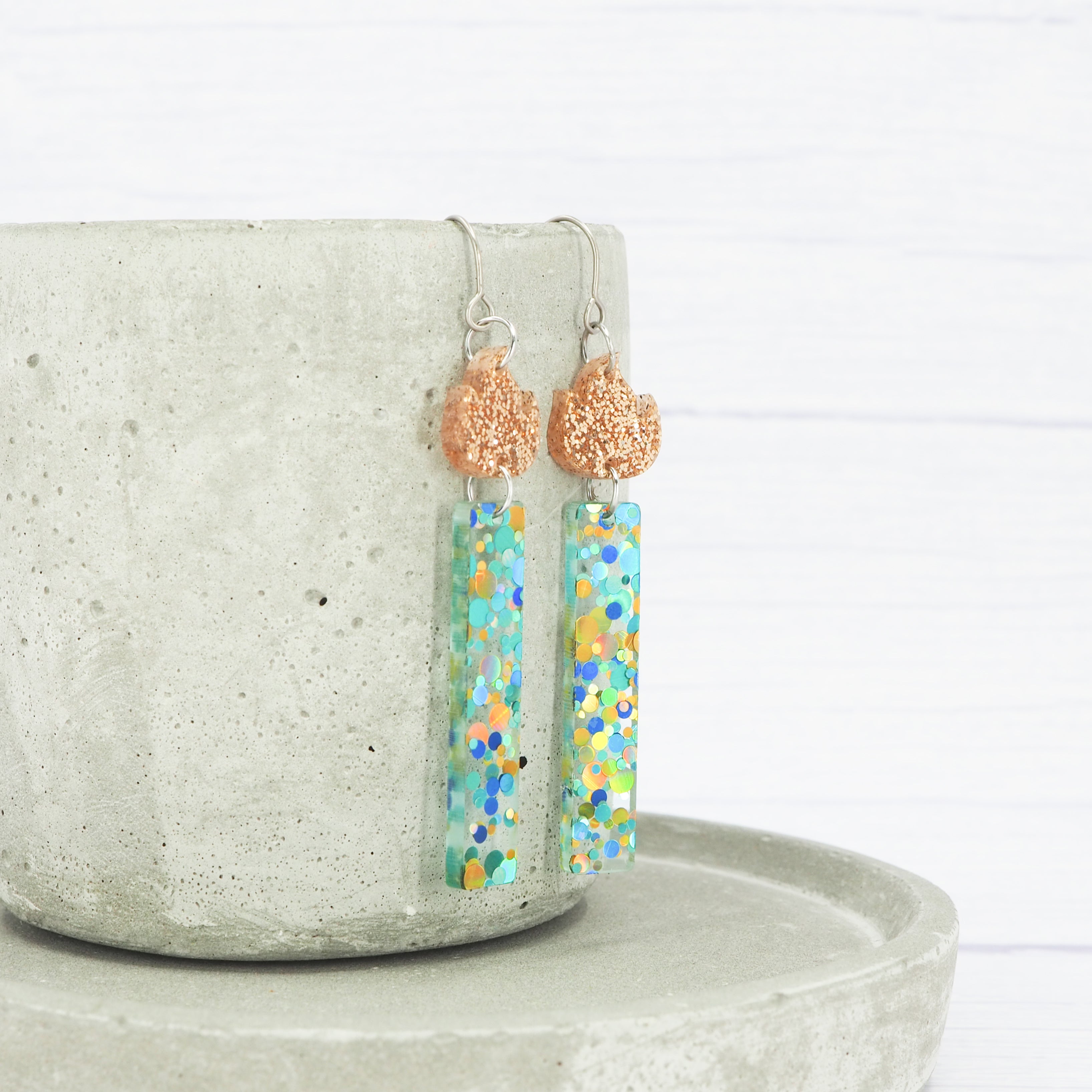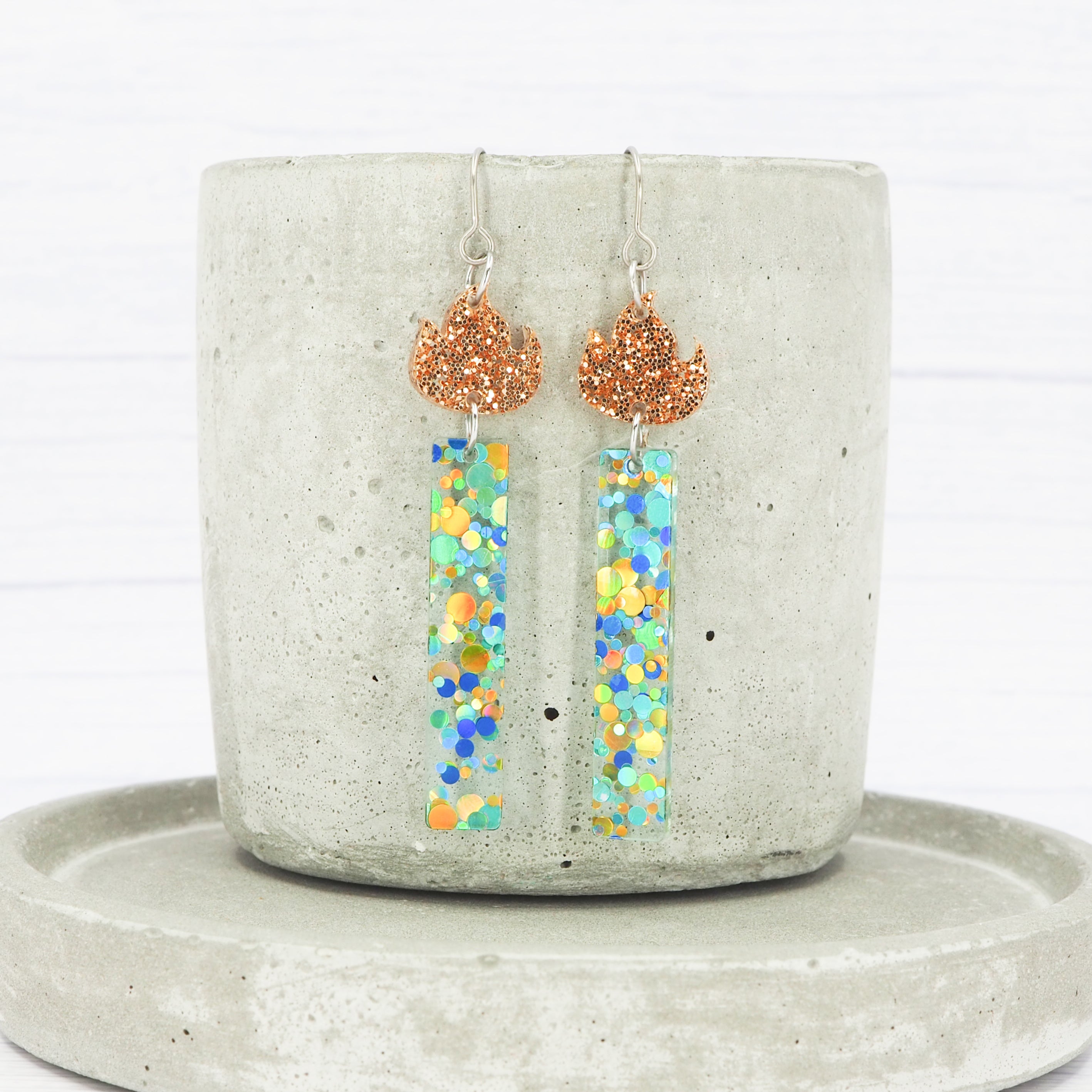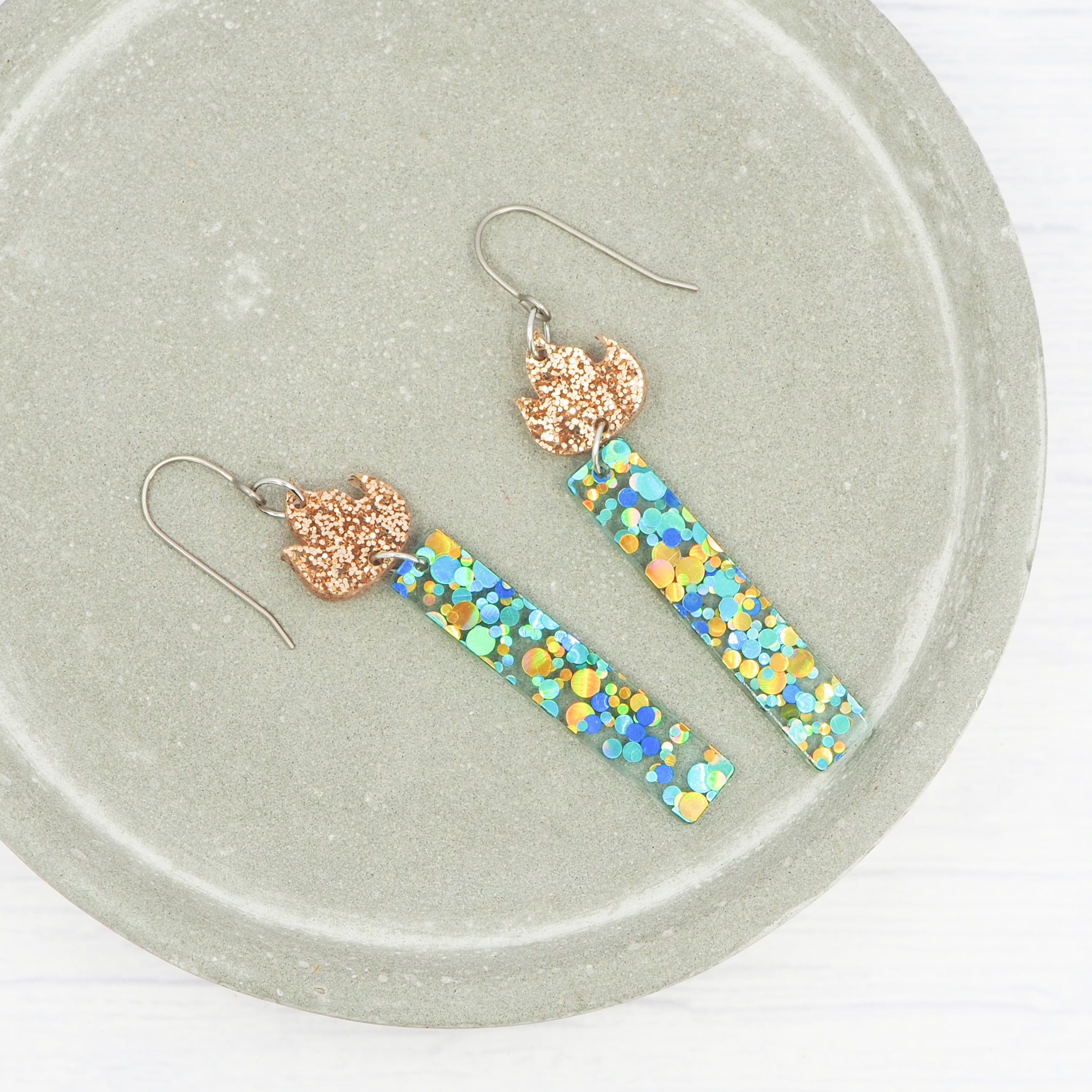 Blue/Green Glitter candle dangle earrings