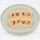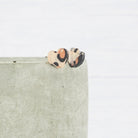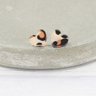 Leopard print heart acrylic studs with 0.7mm ear stems.