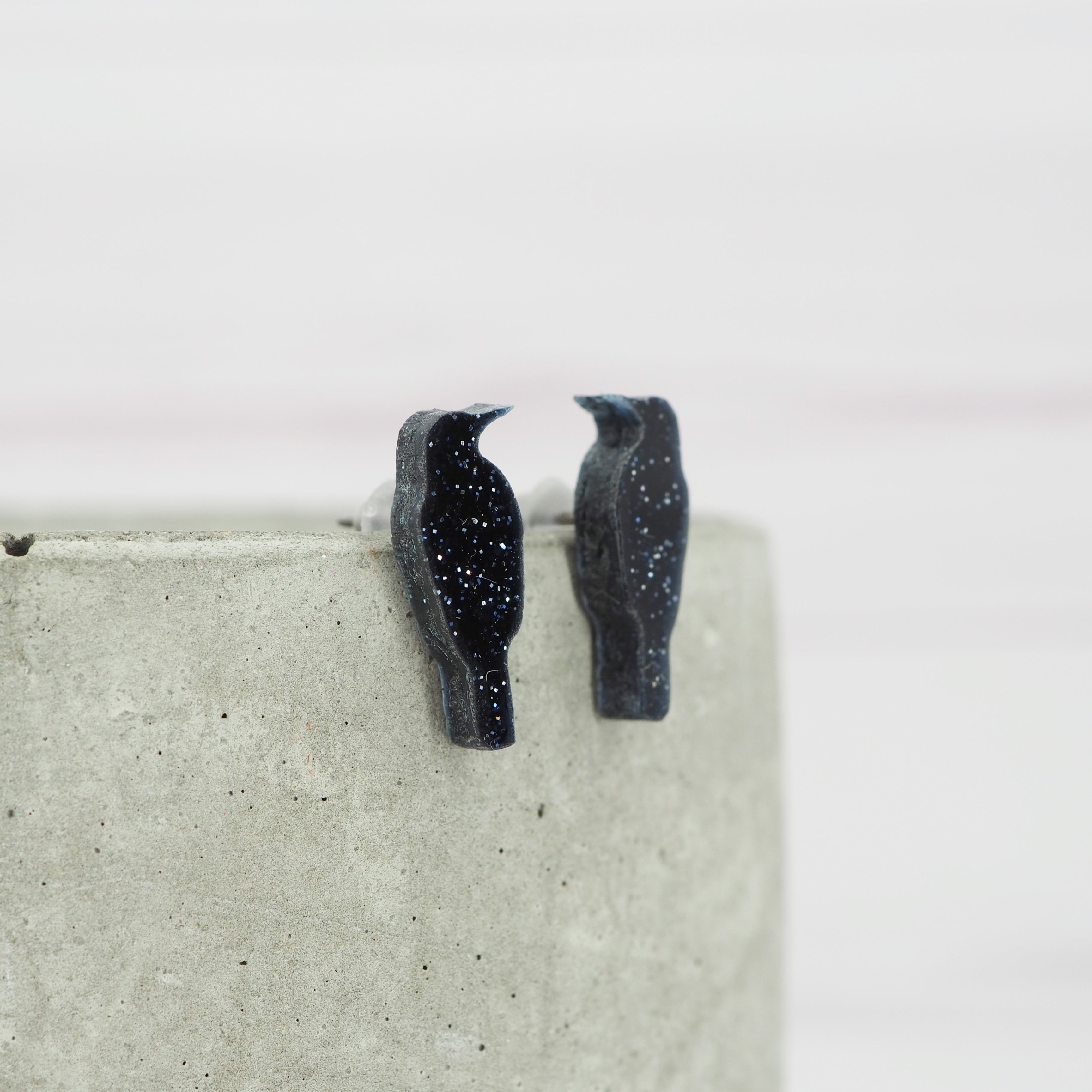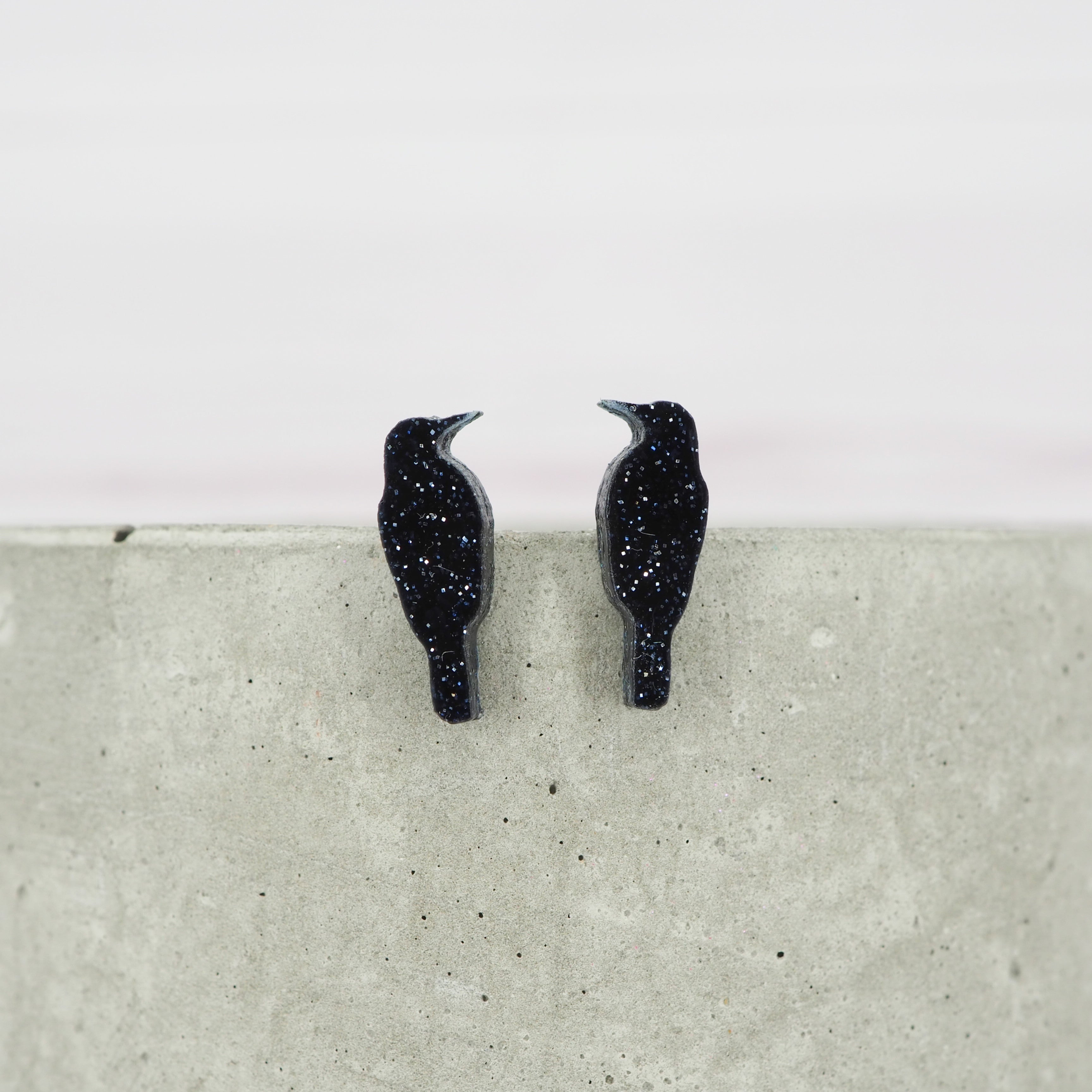 Mini Black glitter crow studs