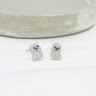 Holographic glitter ghost studs with 0.7mm Grade 1 titanium ear stems.