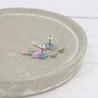 Pink and Blue flake glitter lightning bolt studs with 0.7mm ear stems.