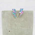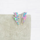 Pink and Blue flake glitter lightning bolt studs