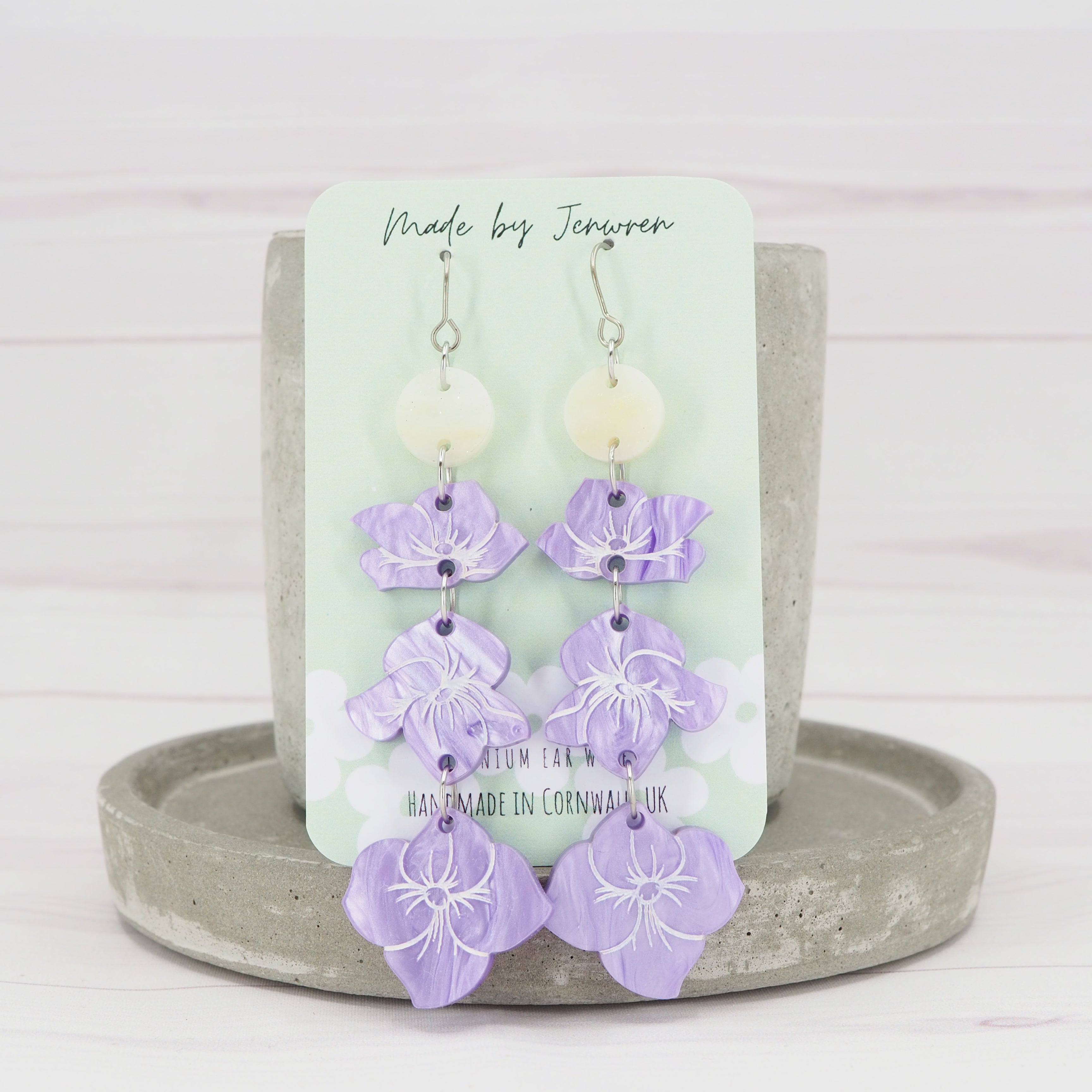 Purple marble acrylic hydrangea dangle earrings - Hooks