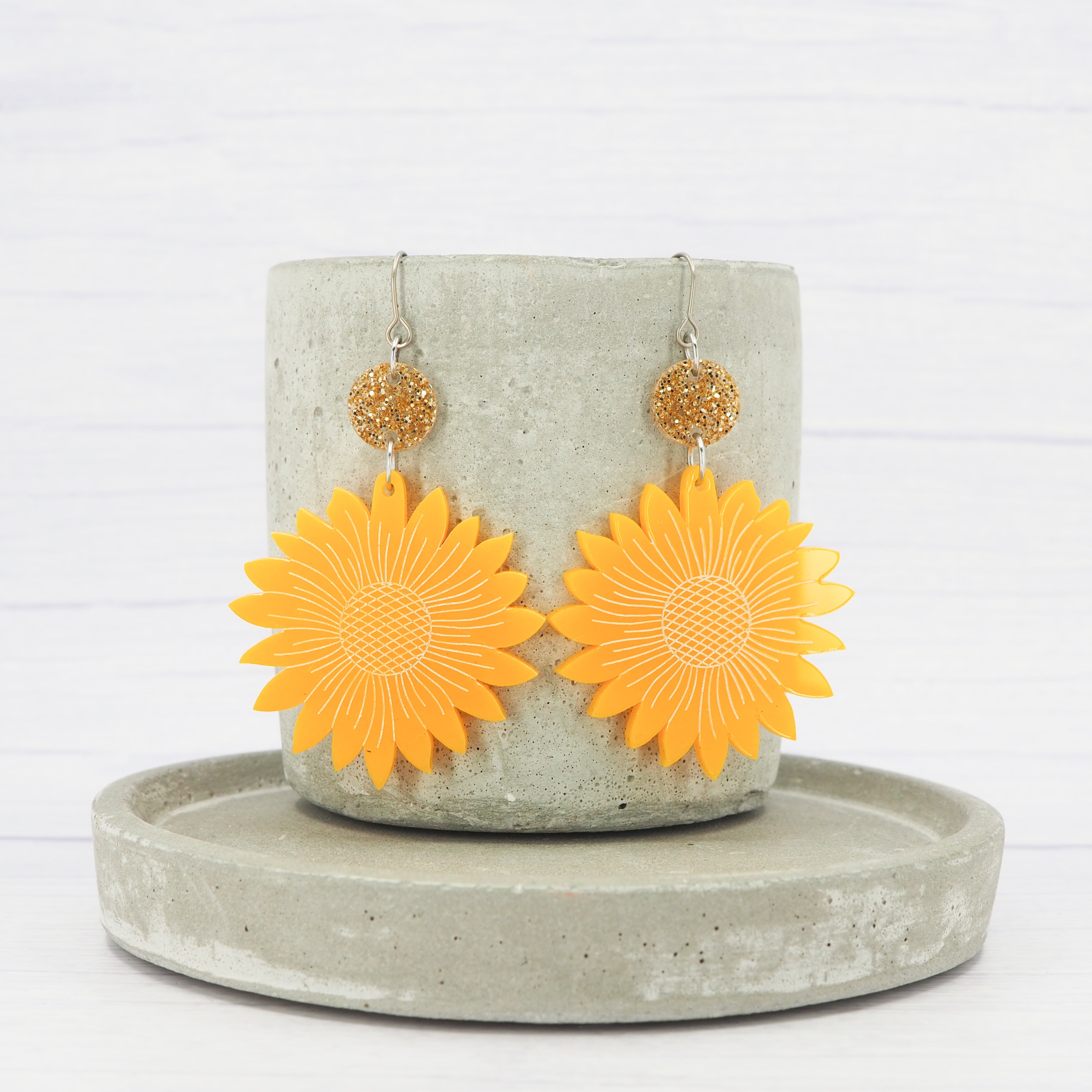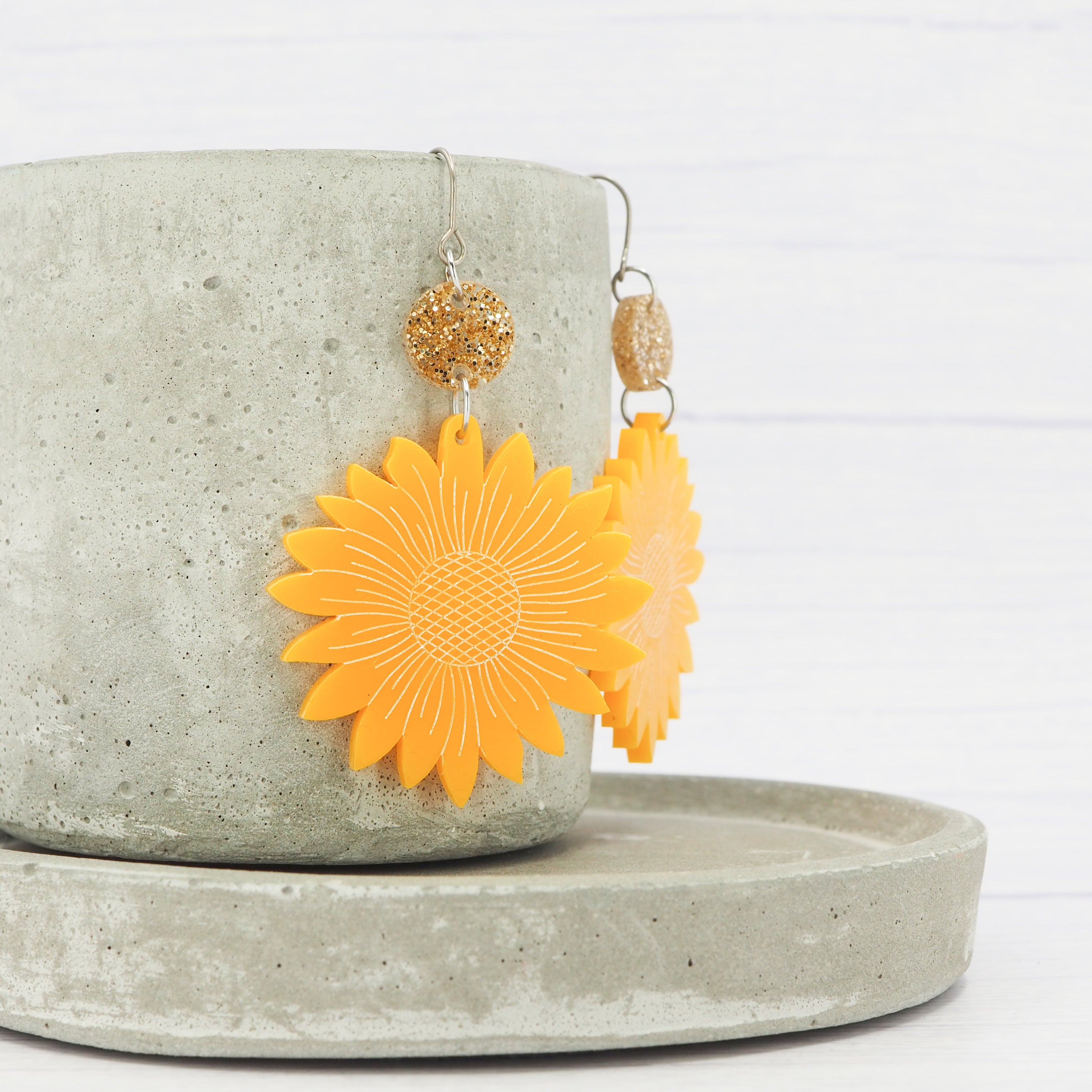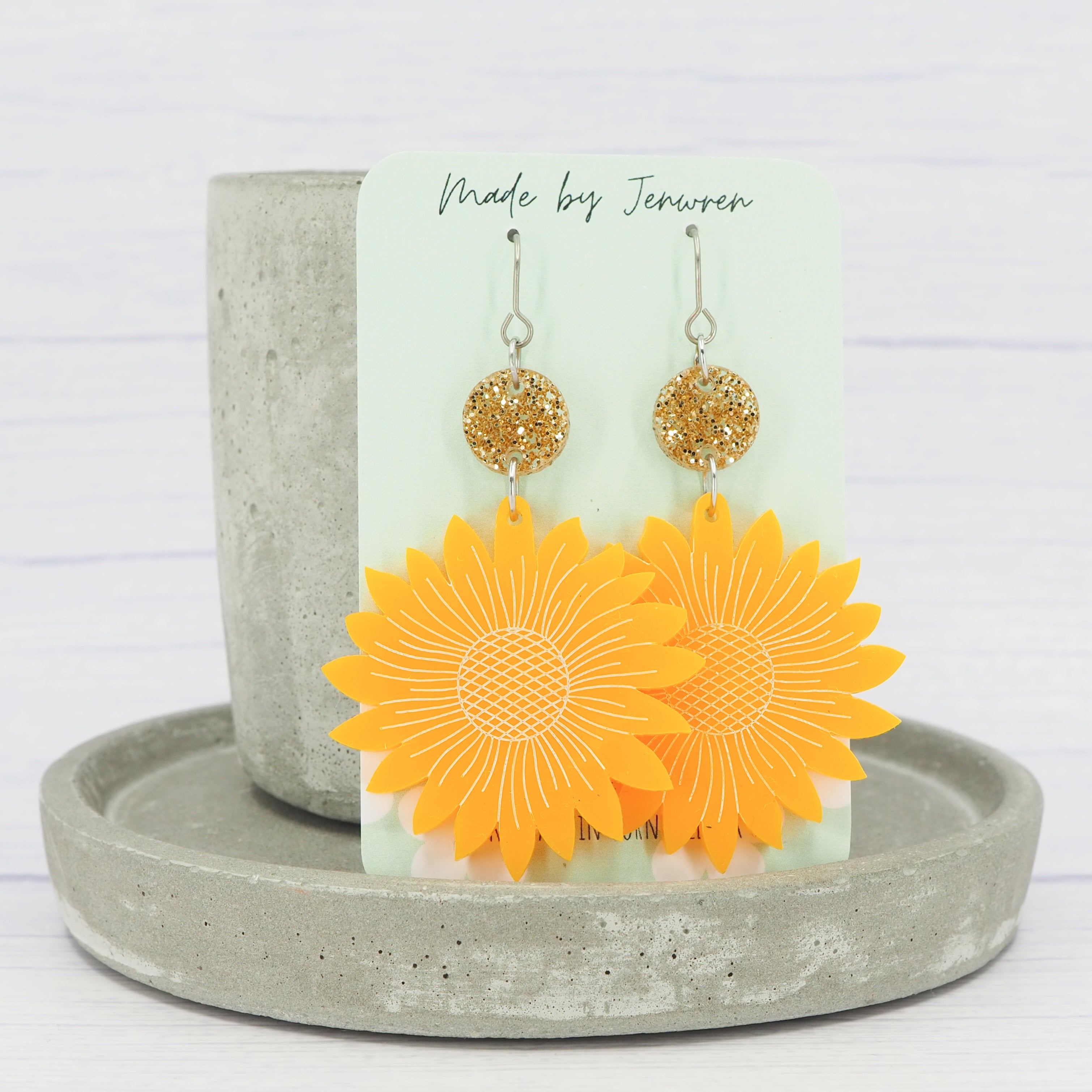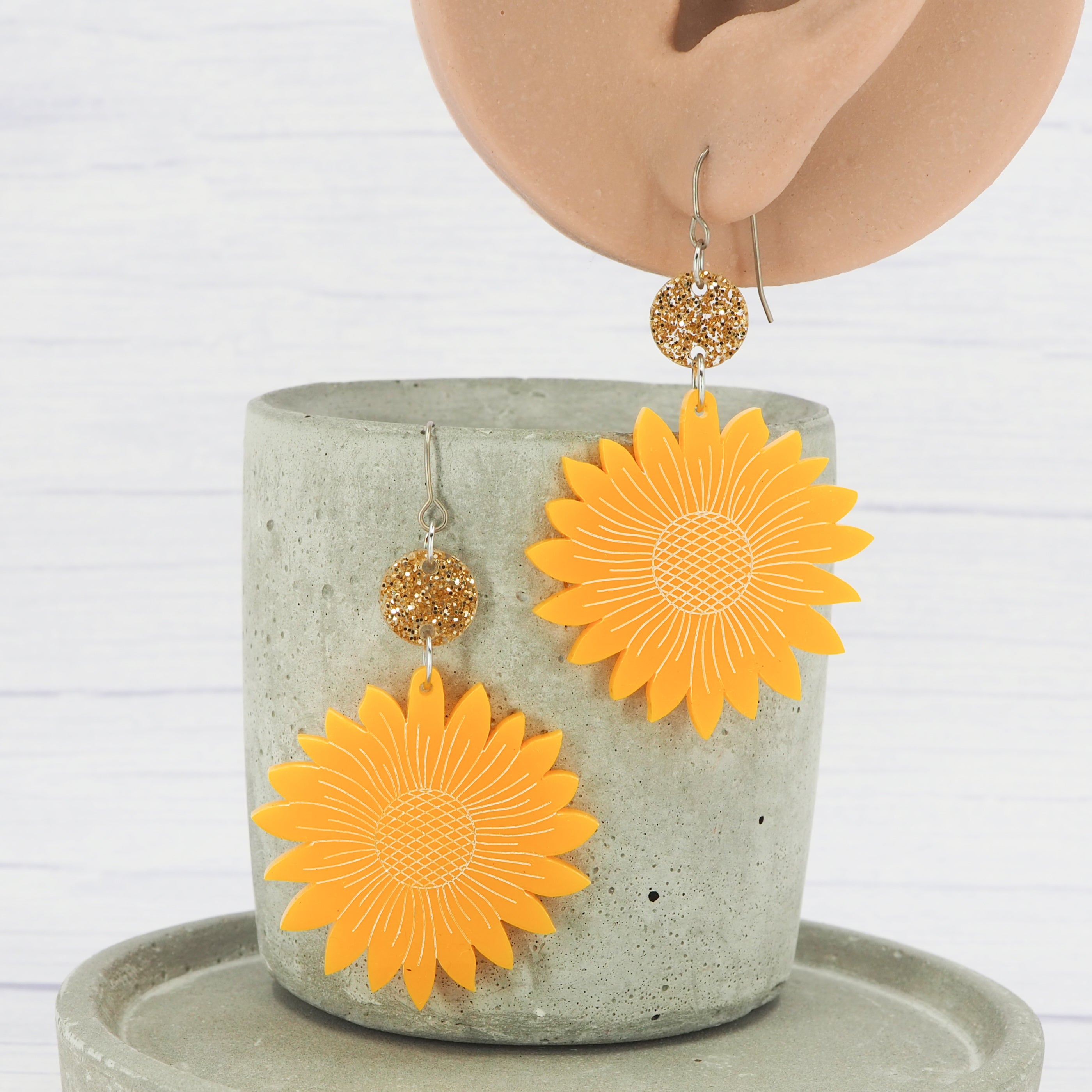 The earrings have a total drop length of 2.8" (7.1cm) from the top of the ear wire to the bottom of the flowers.