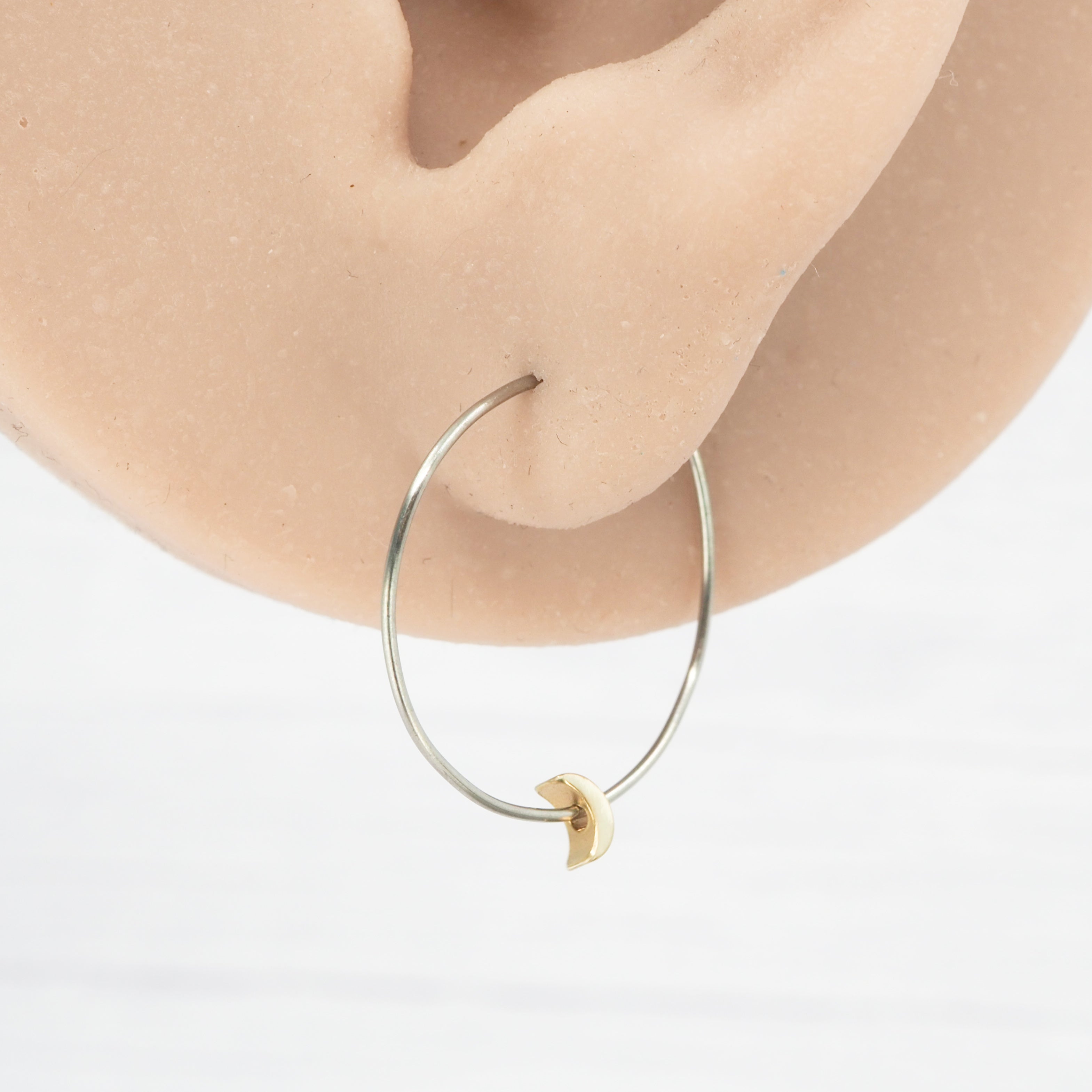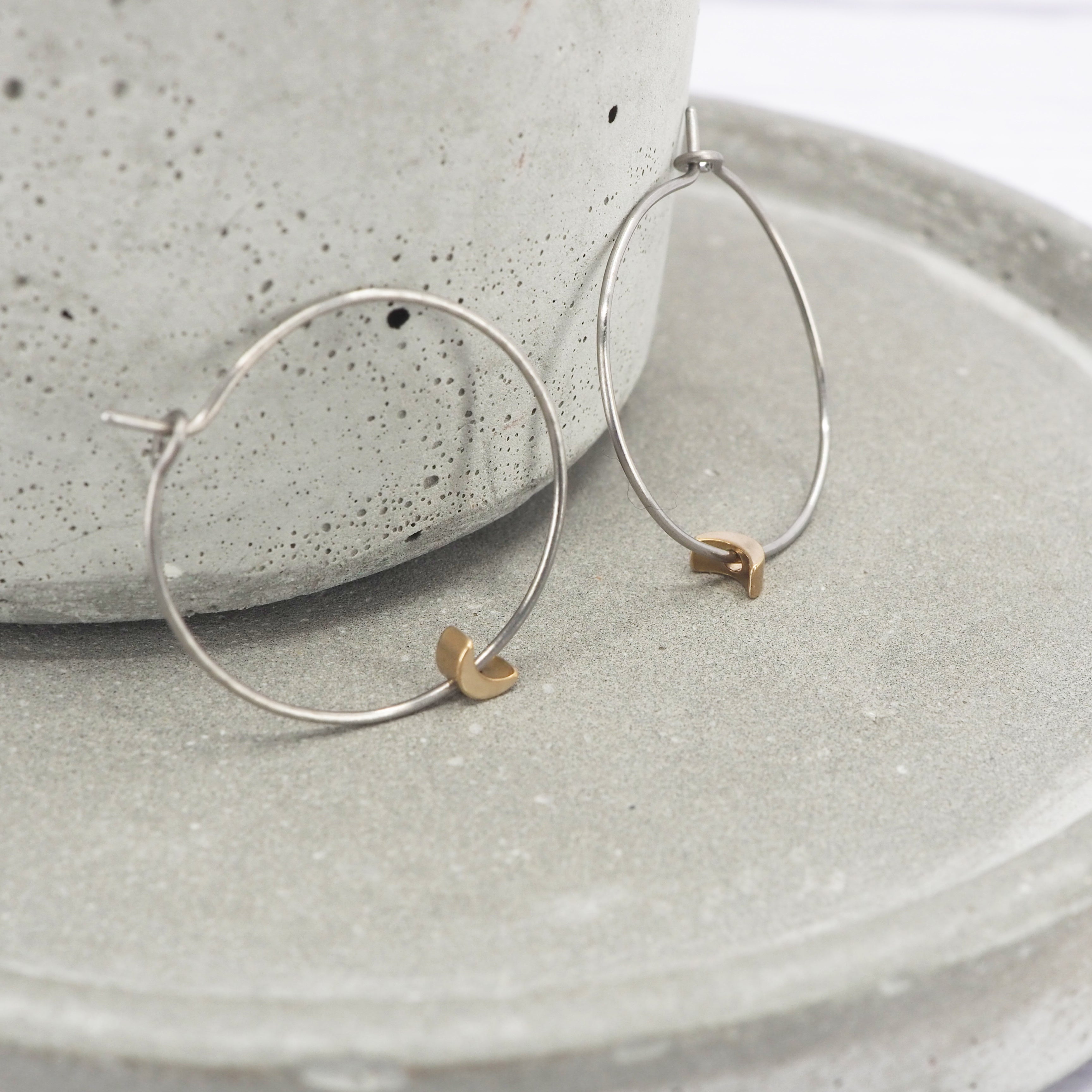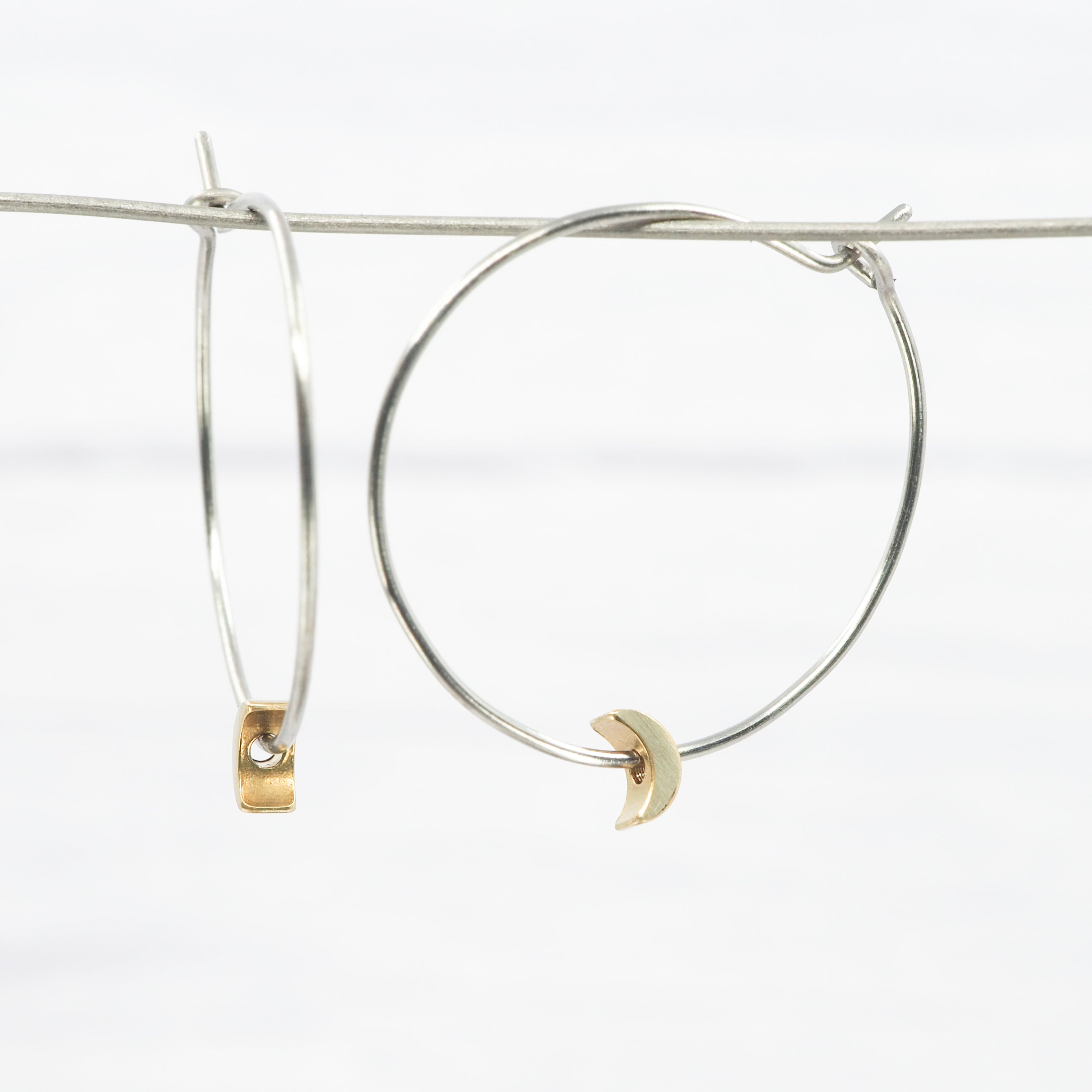 1 inch polished titanium hoops - Tiny brass crescent moons