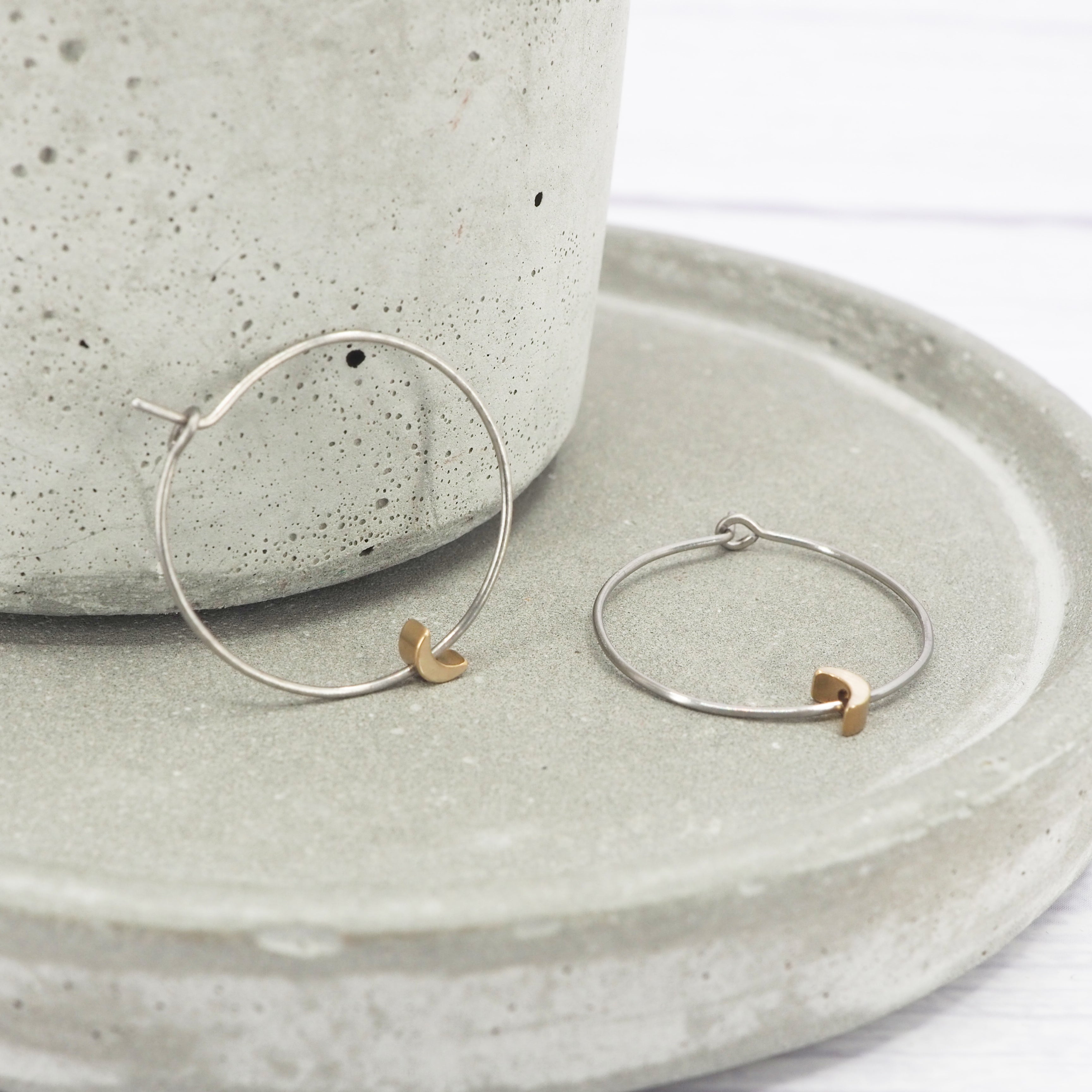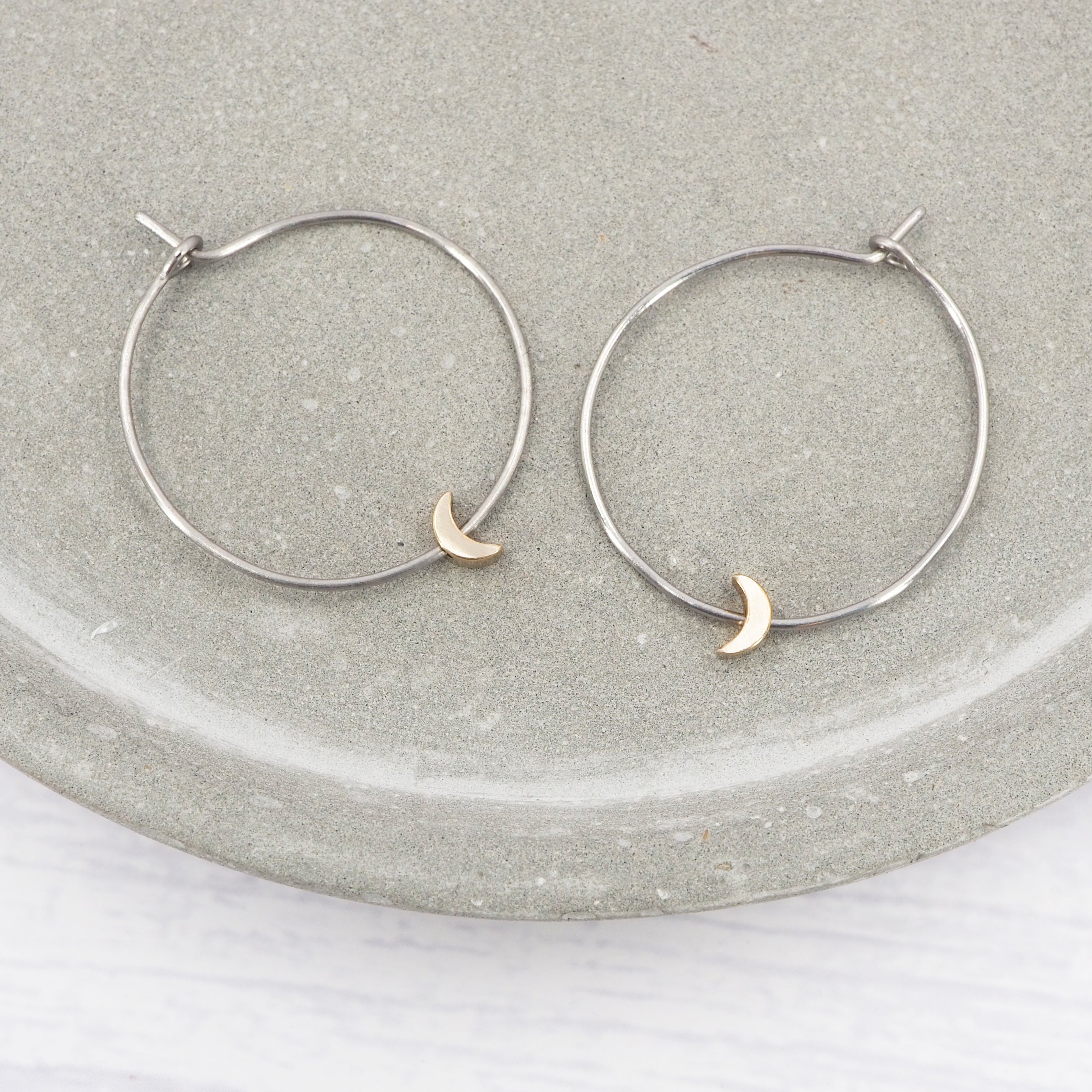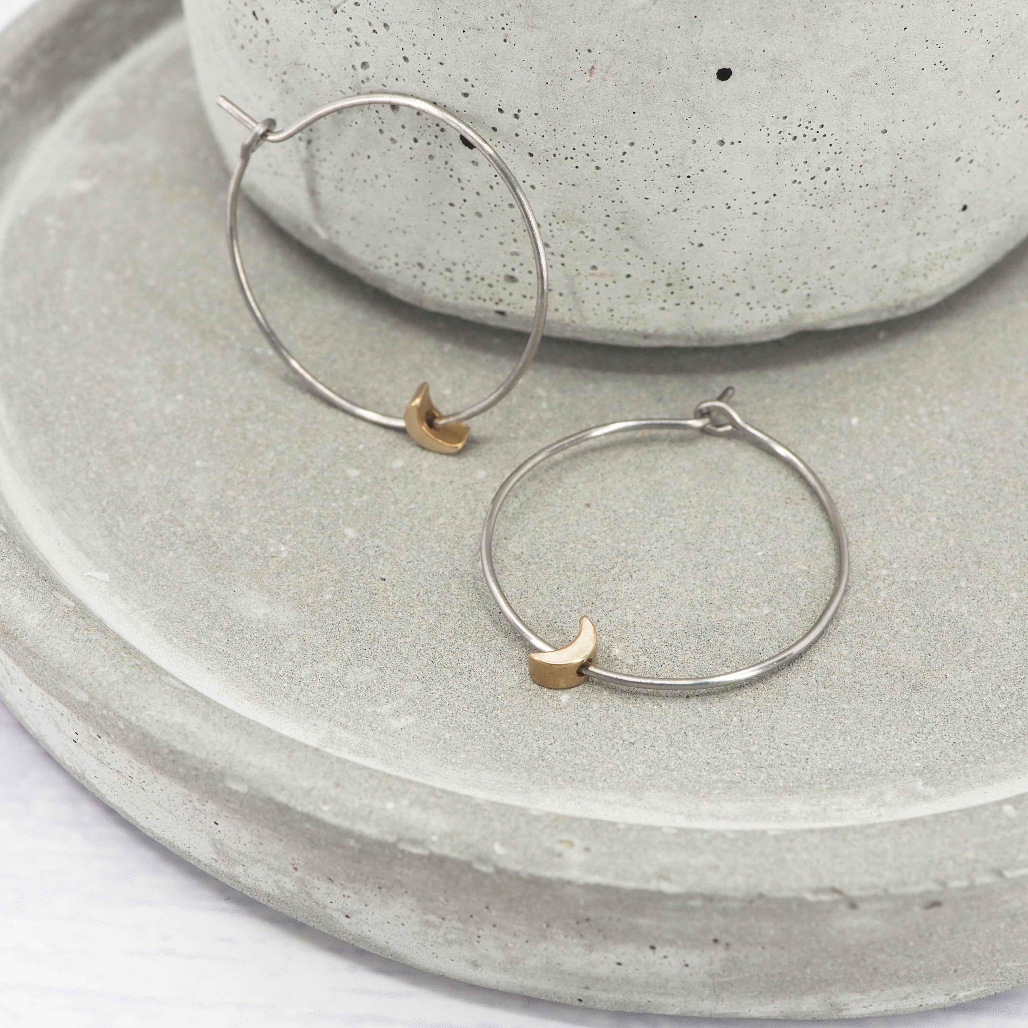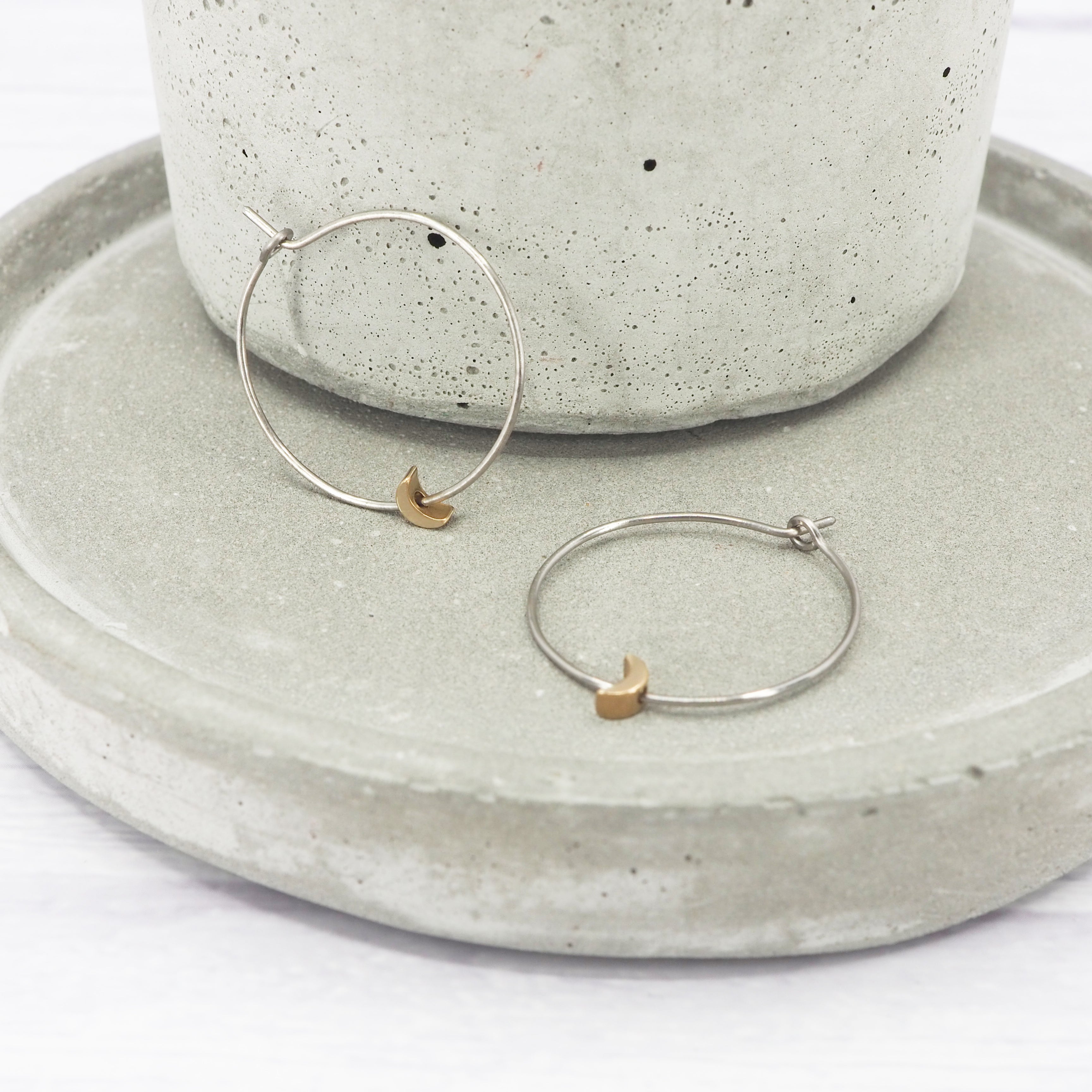 1 inch polished titanium hoops - Tiny brass crescent moons