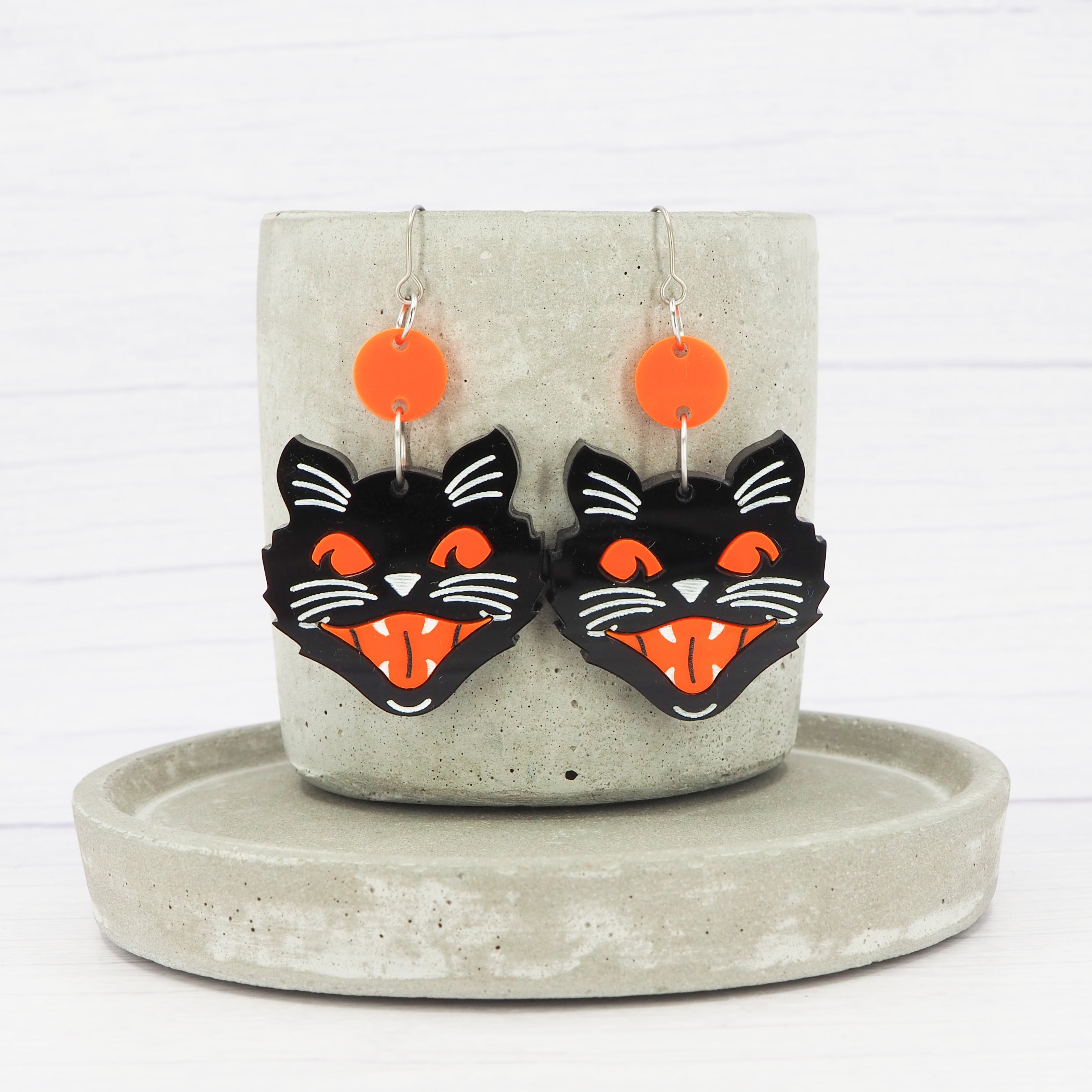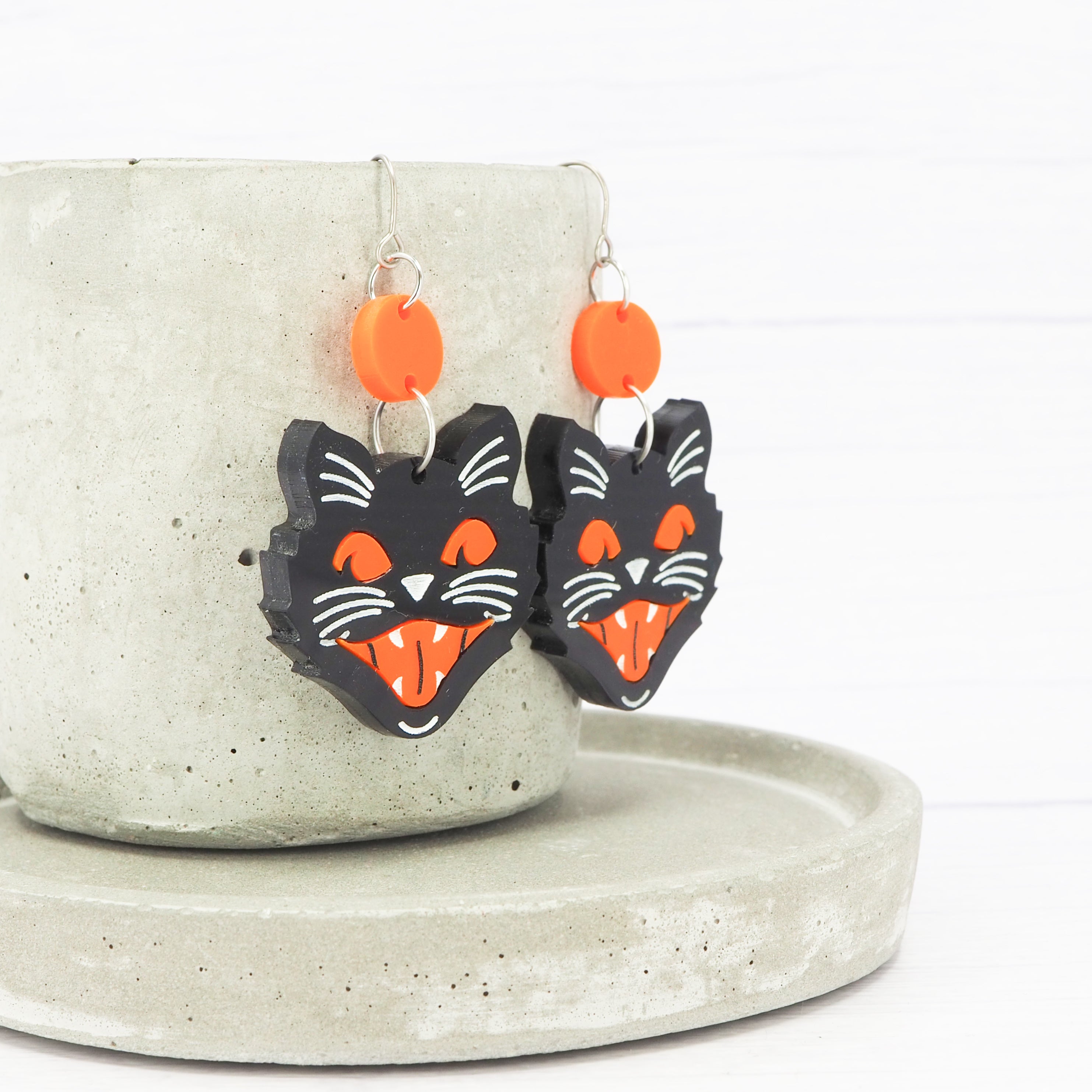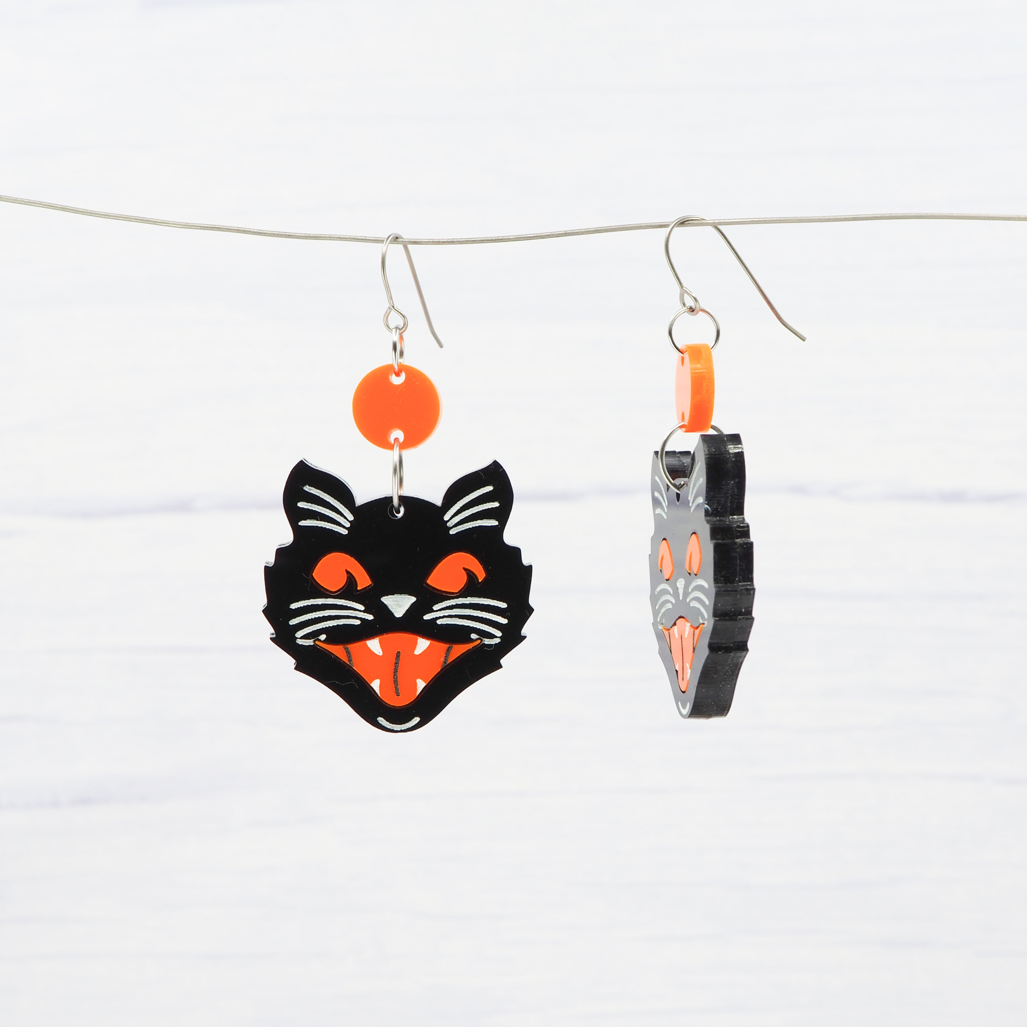 Retro Halloween cat dangle earrings