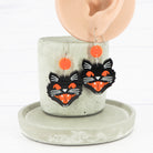 Black and Orange Retro halloween cat head dangles