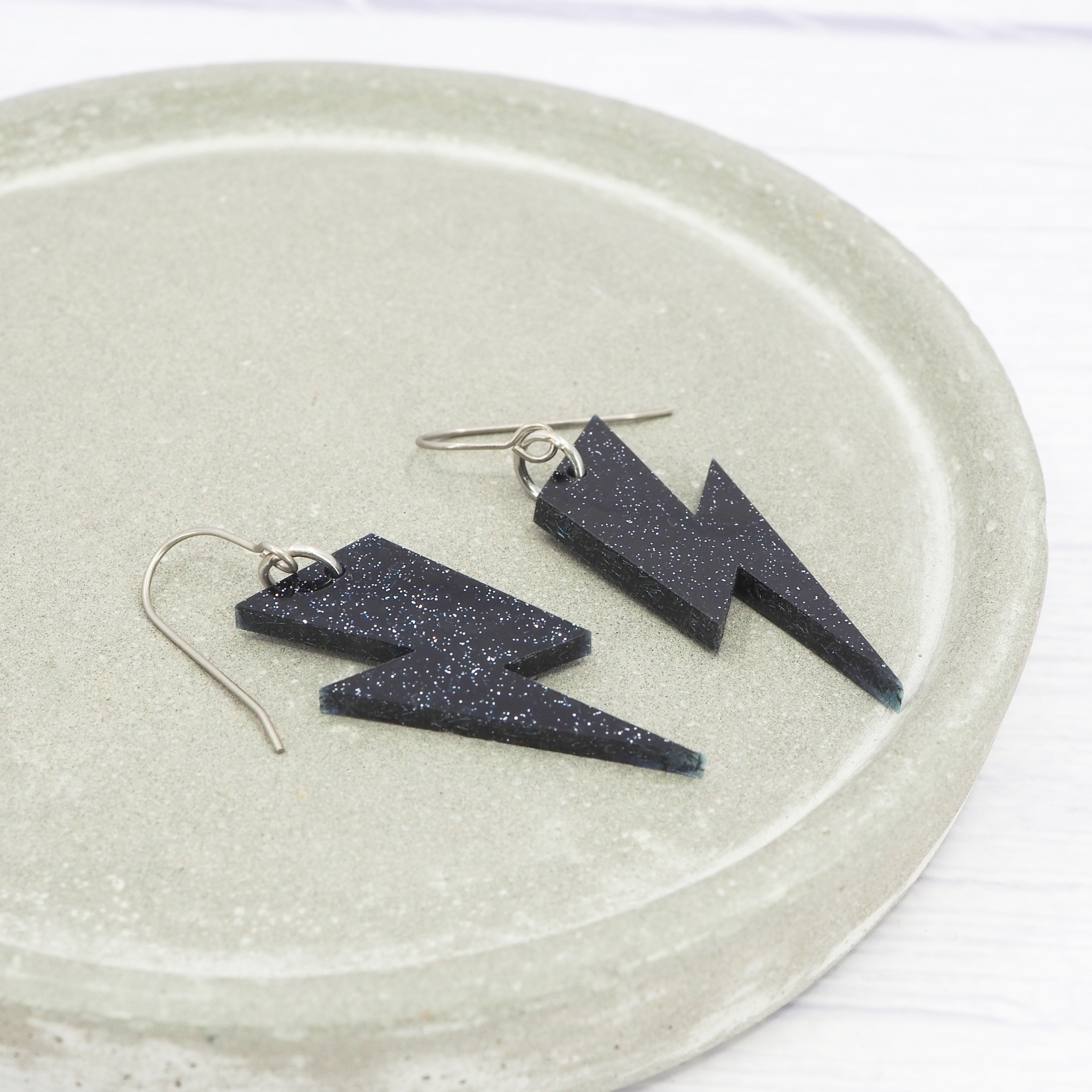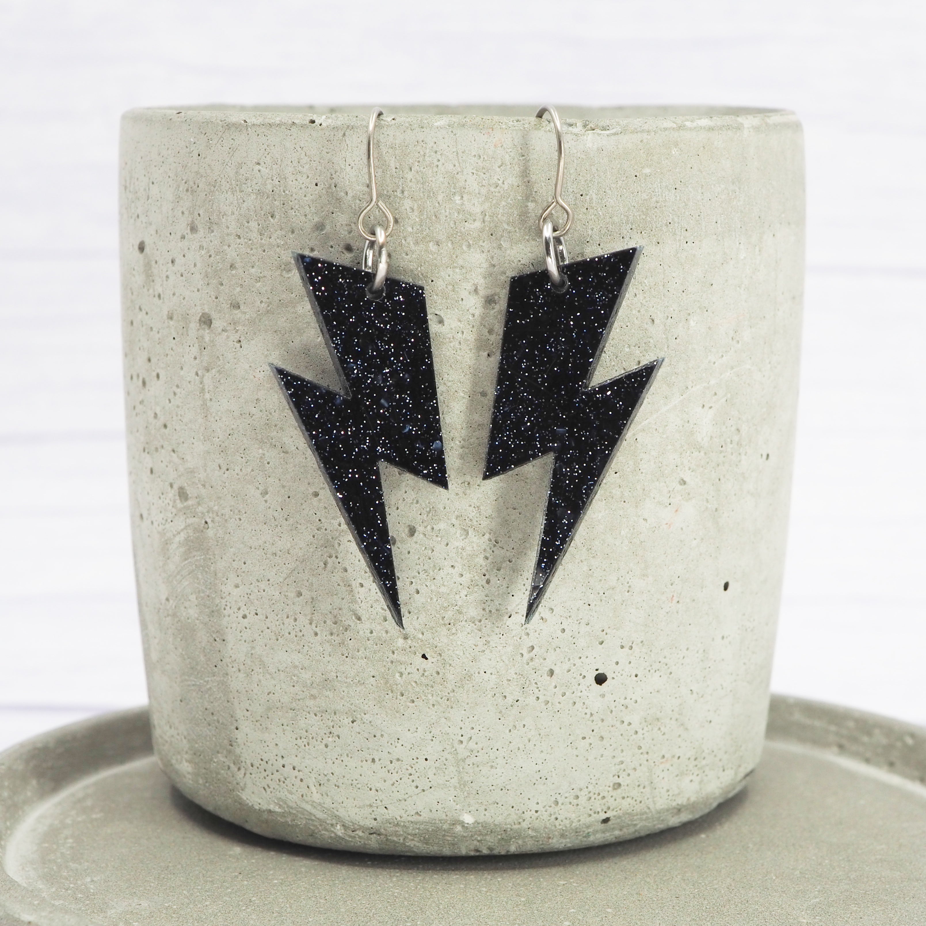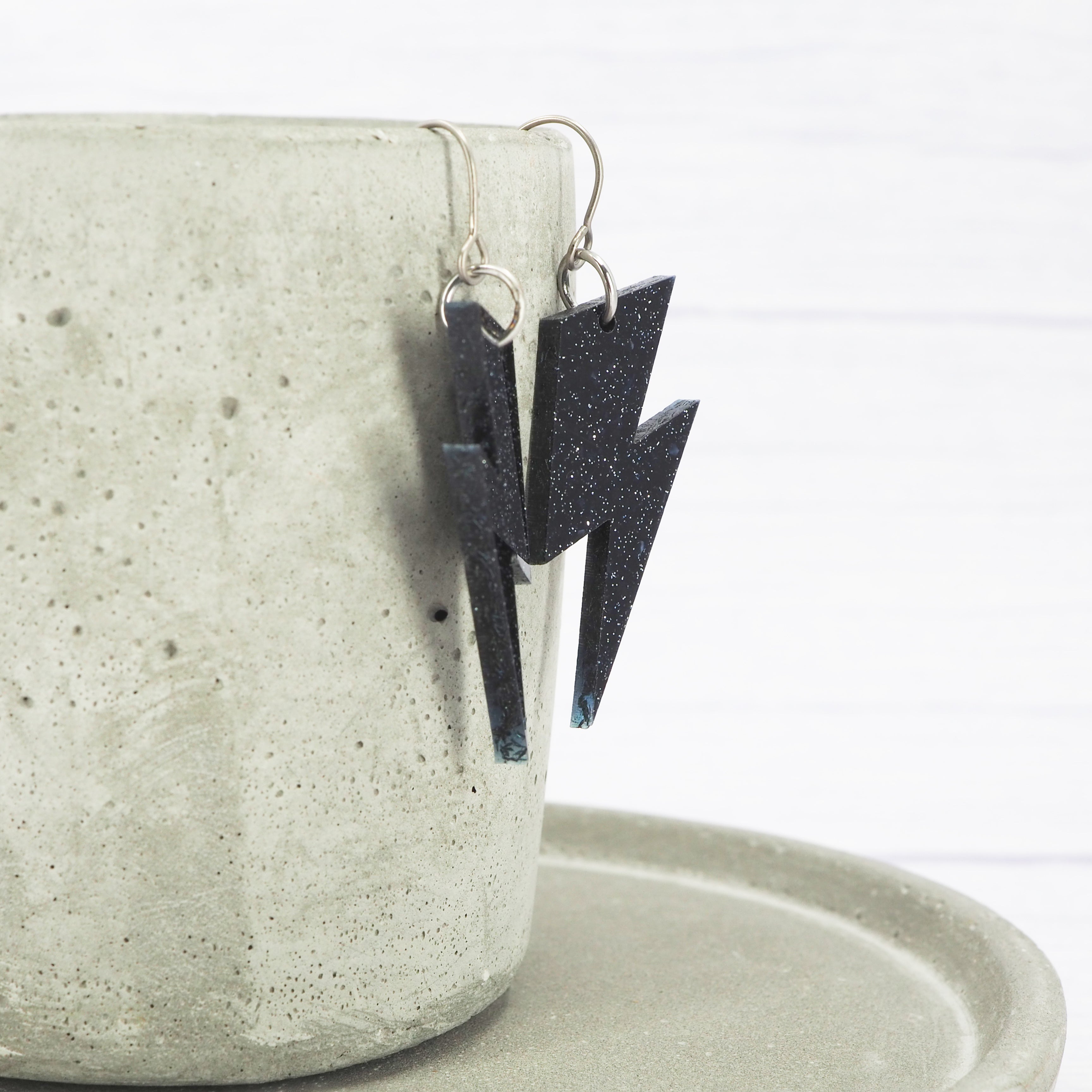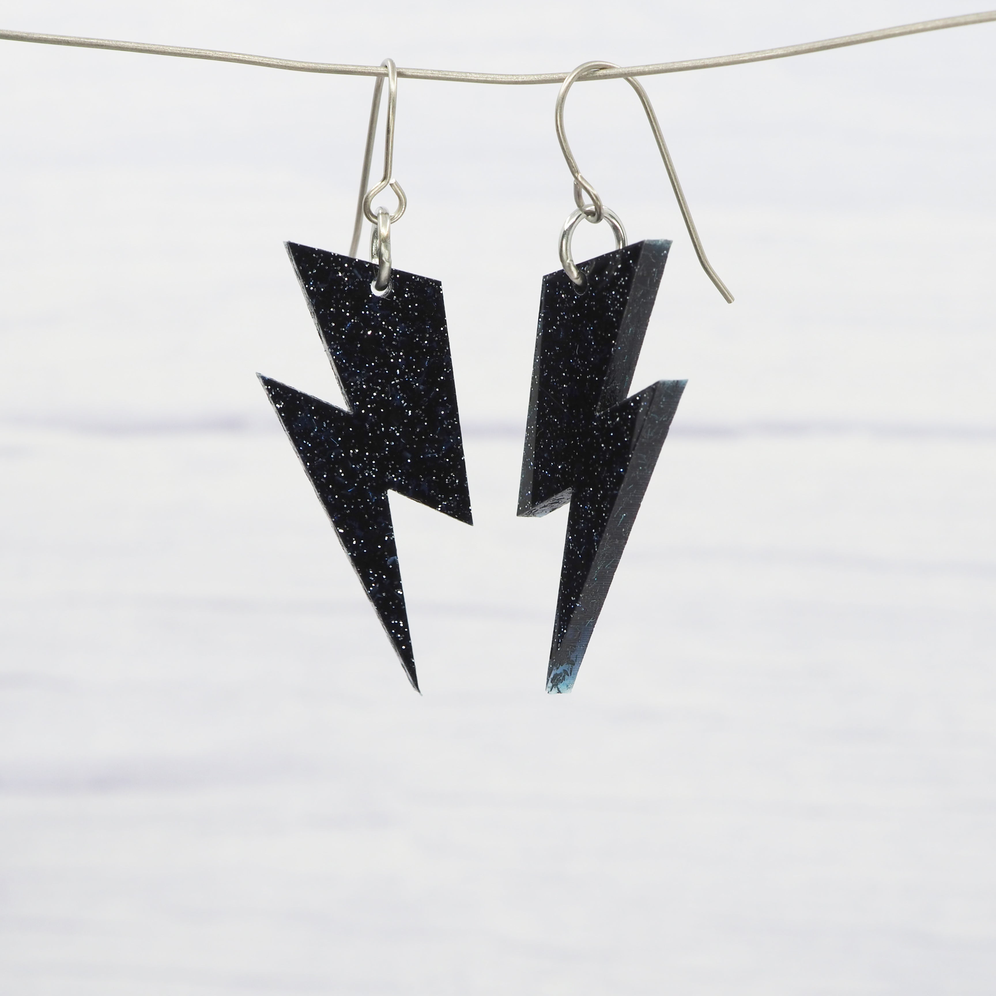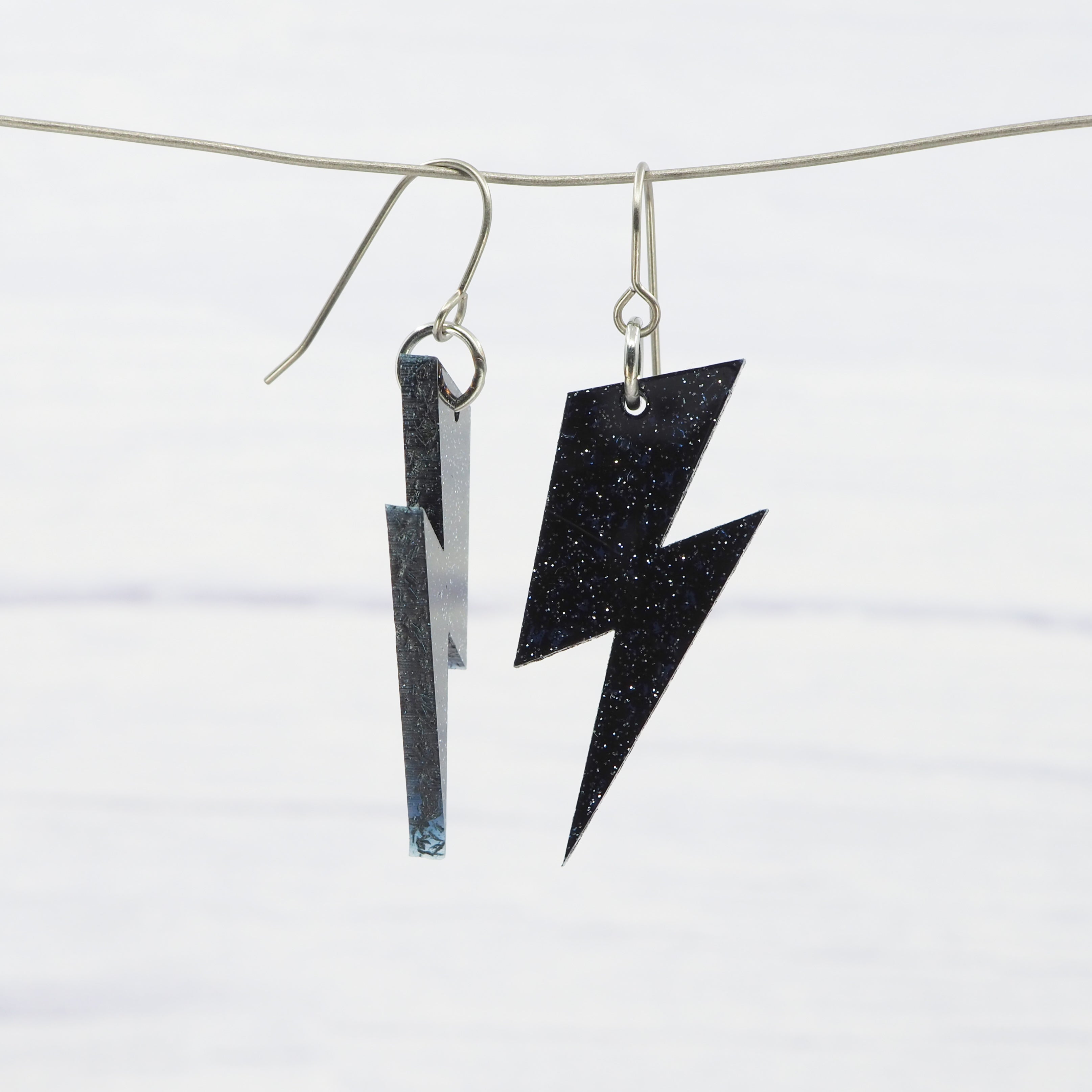 The earrings have a total drop length of 2" (5cm) from the top of the ear wire to the bottom of the bolts.