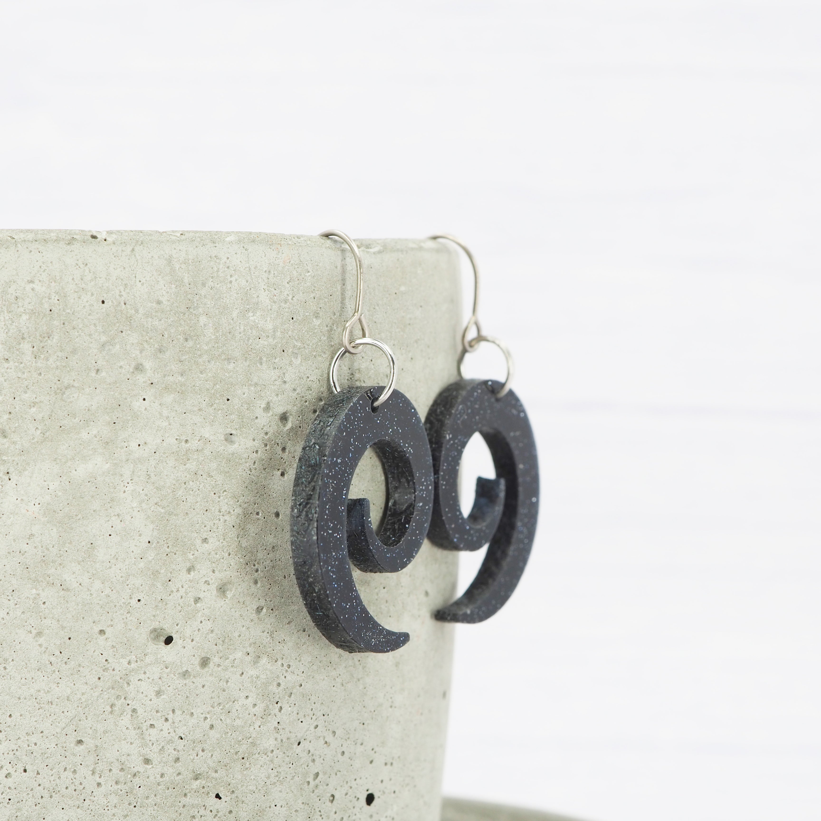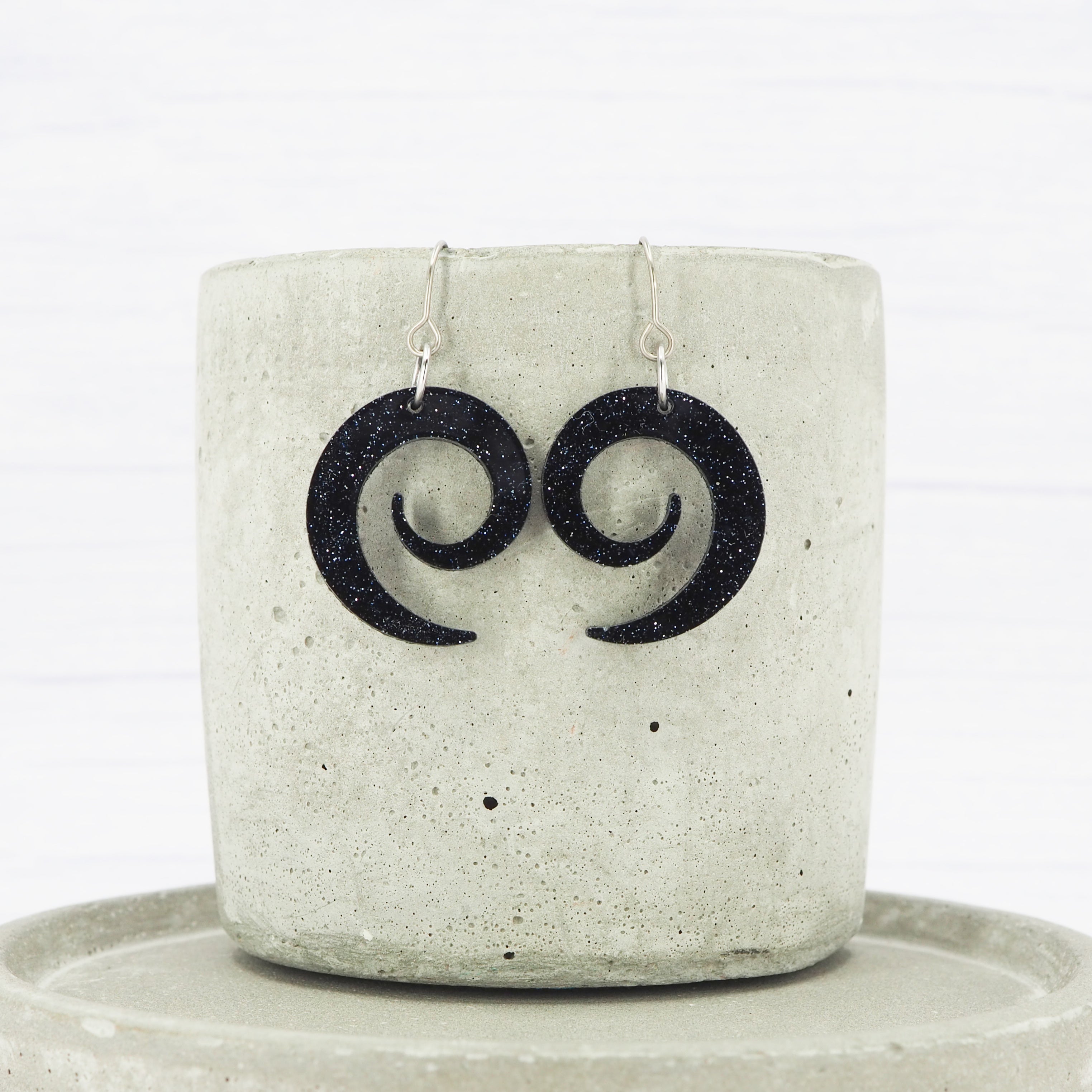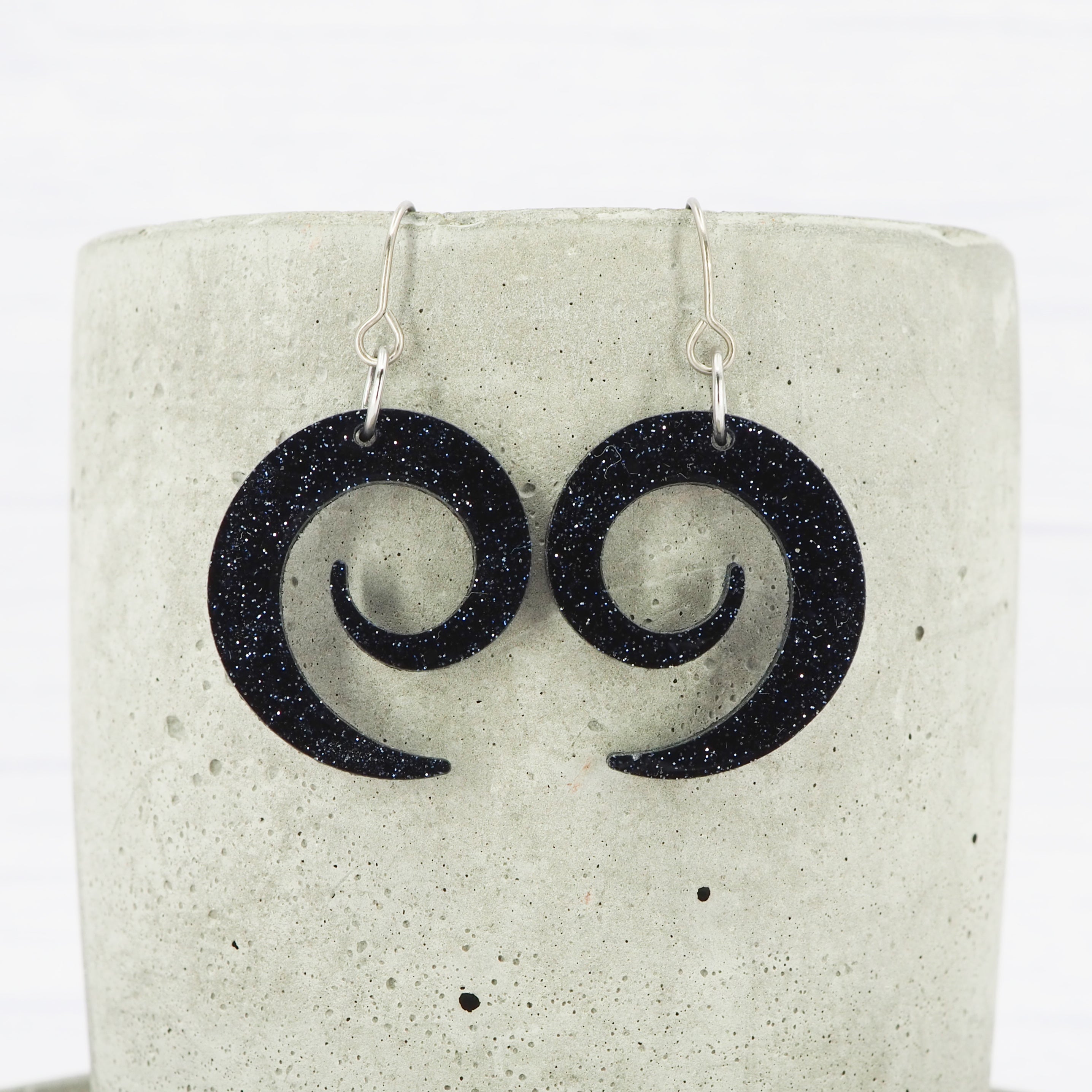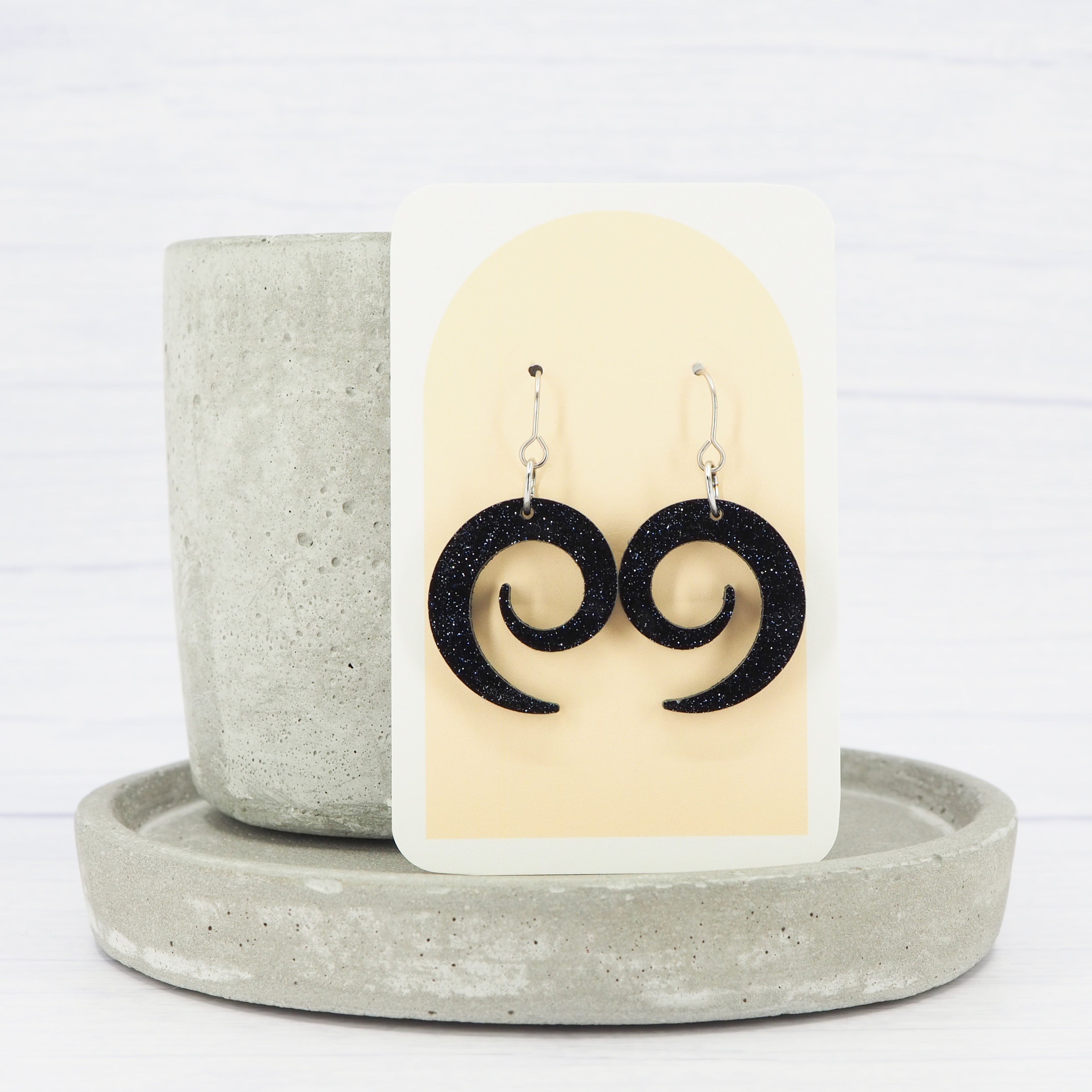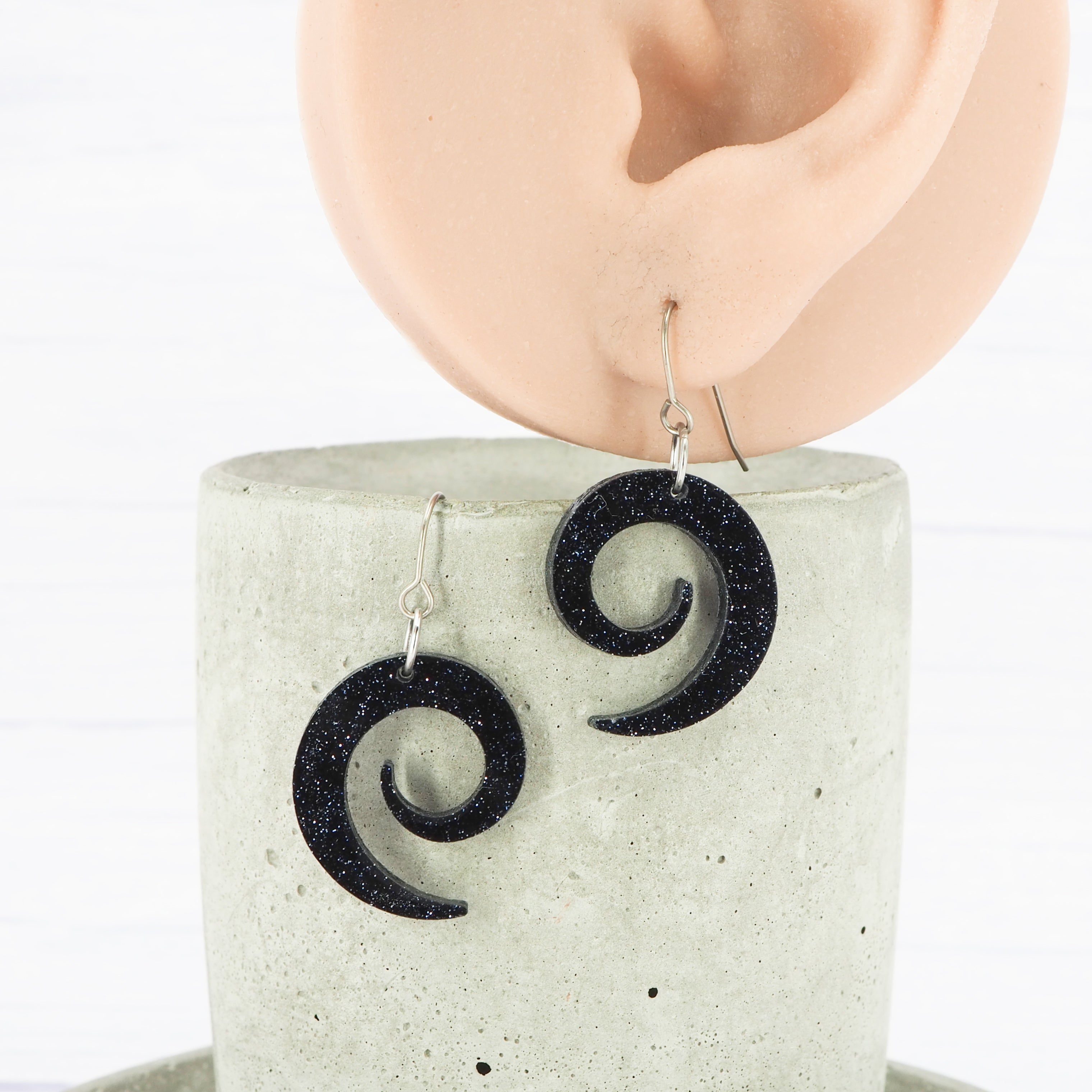 Black glitter spiral acrylic dangle earrings - Loose spiral