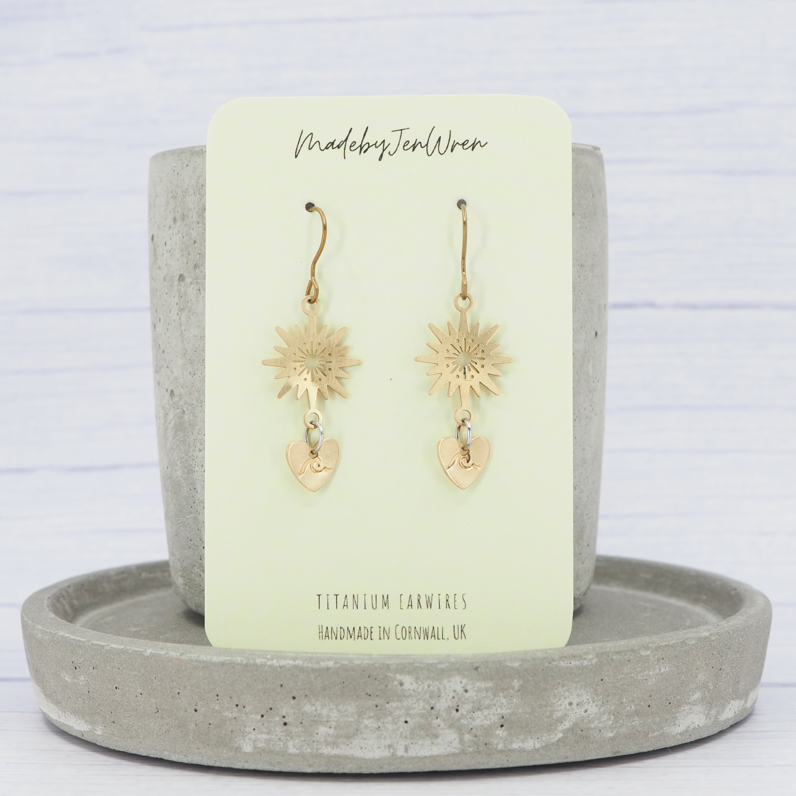The ear wires are made from solid grade 1 titanium (0.7mm / 21ga) round wire.