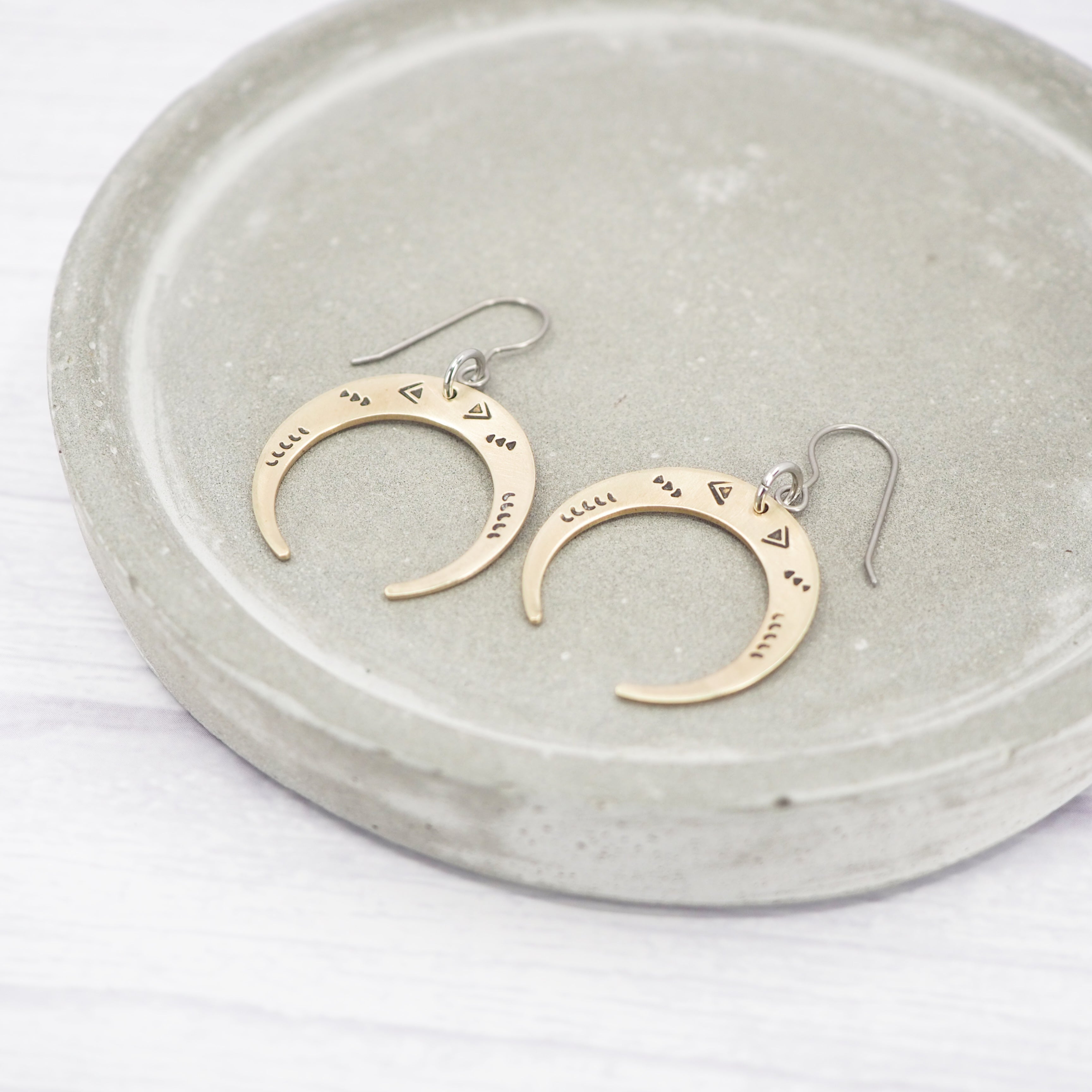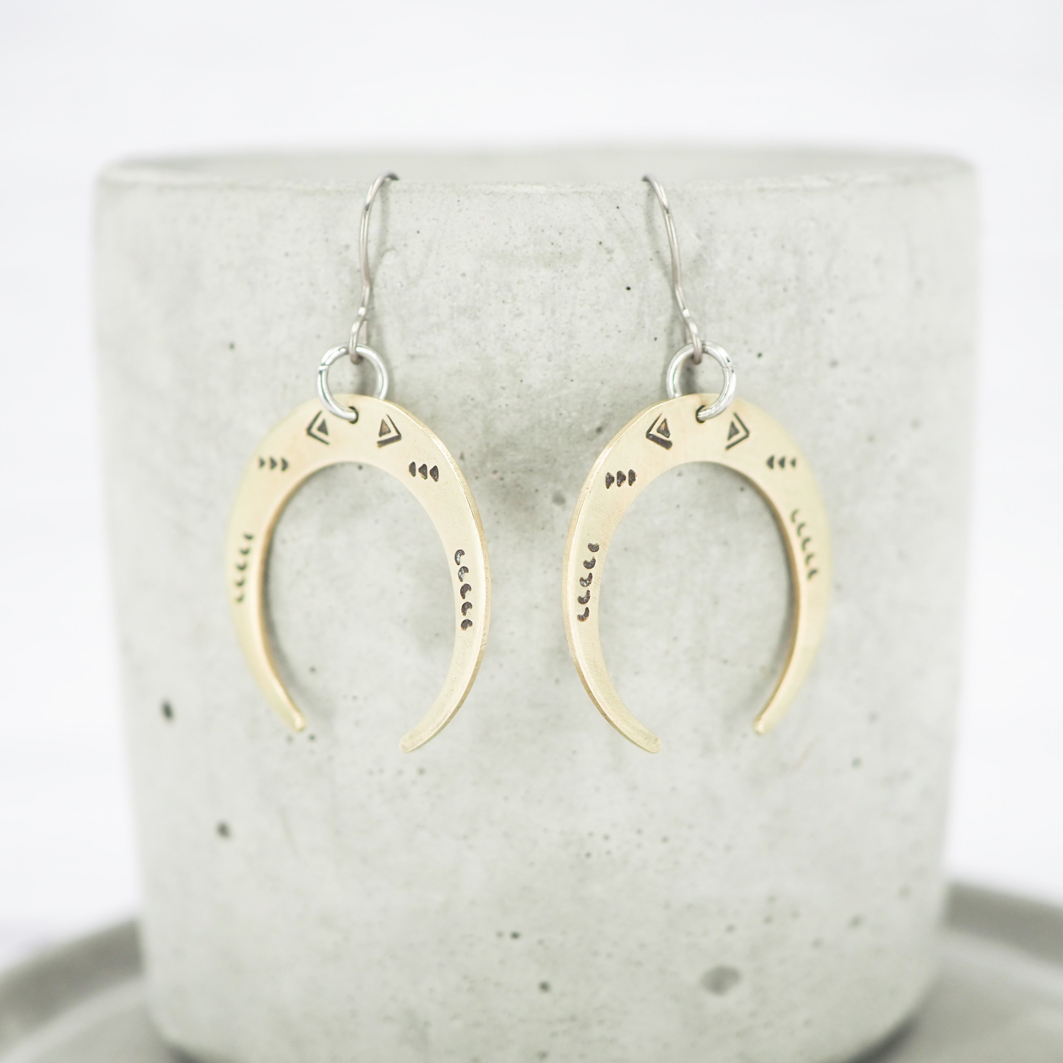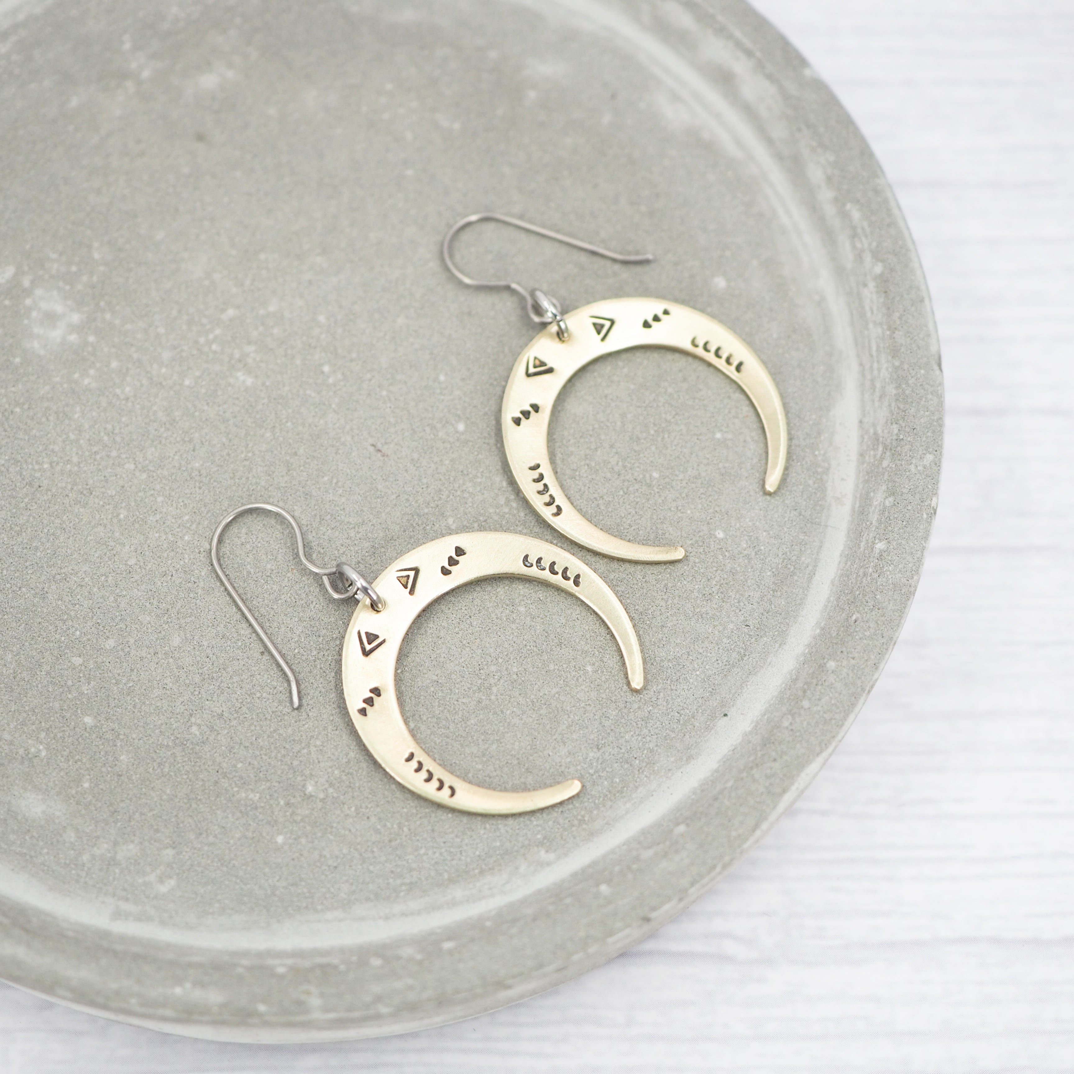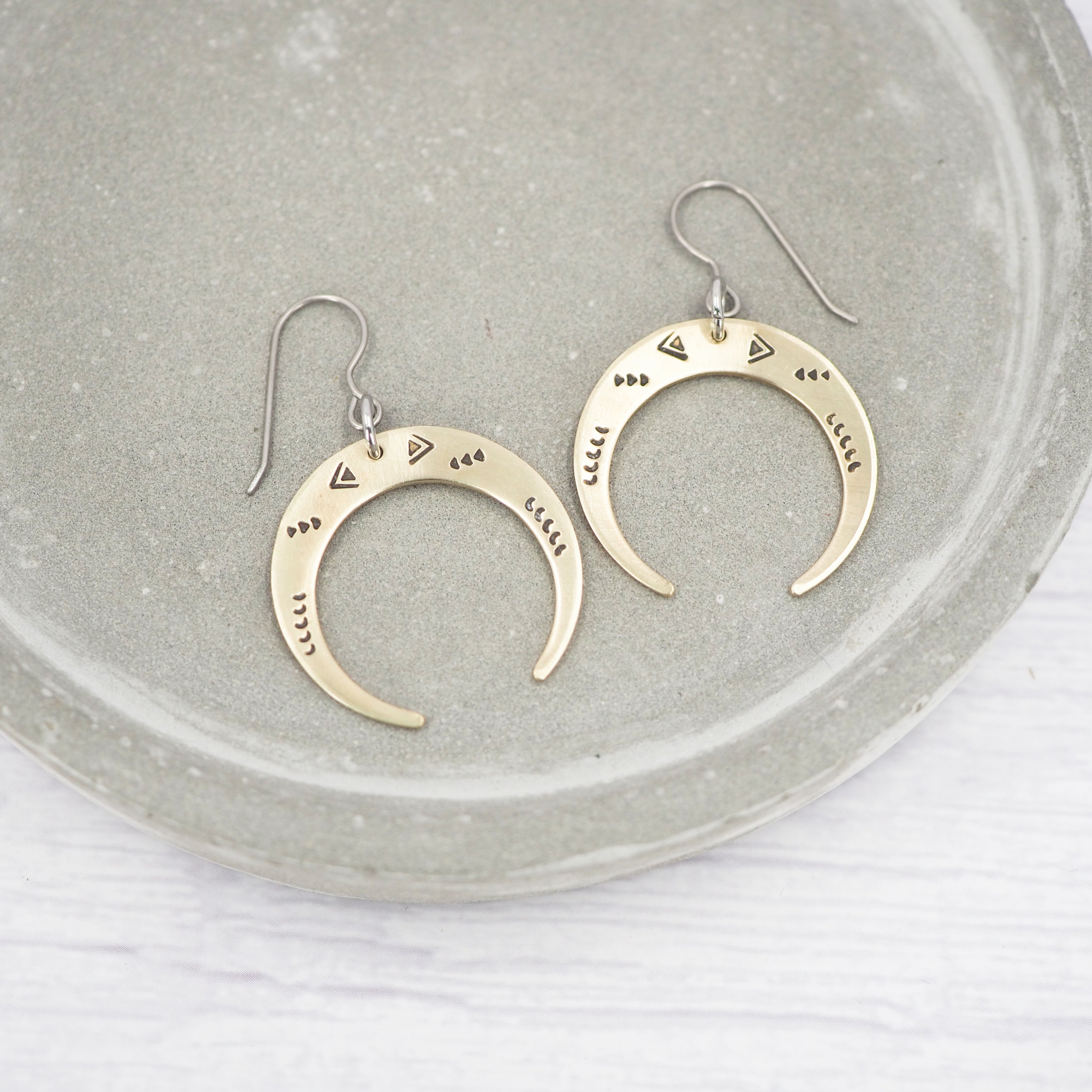 and the earrings have a total drop length of 1.68" (4.2cm) from the top of the ear wire to the bottom of the crescents.