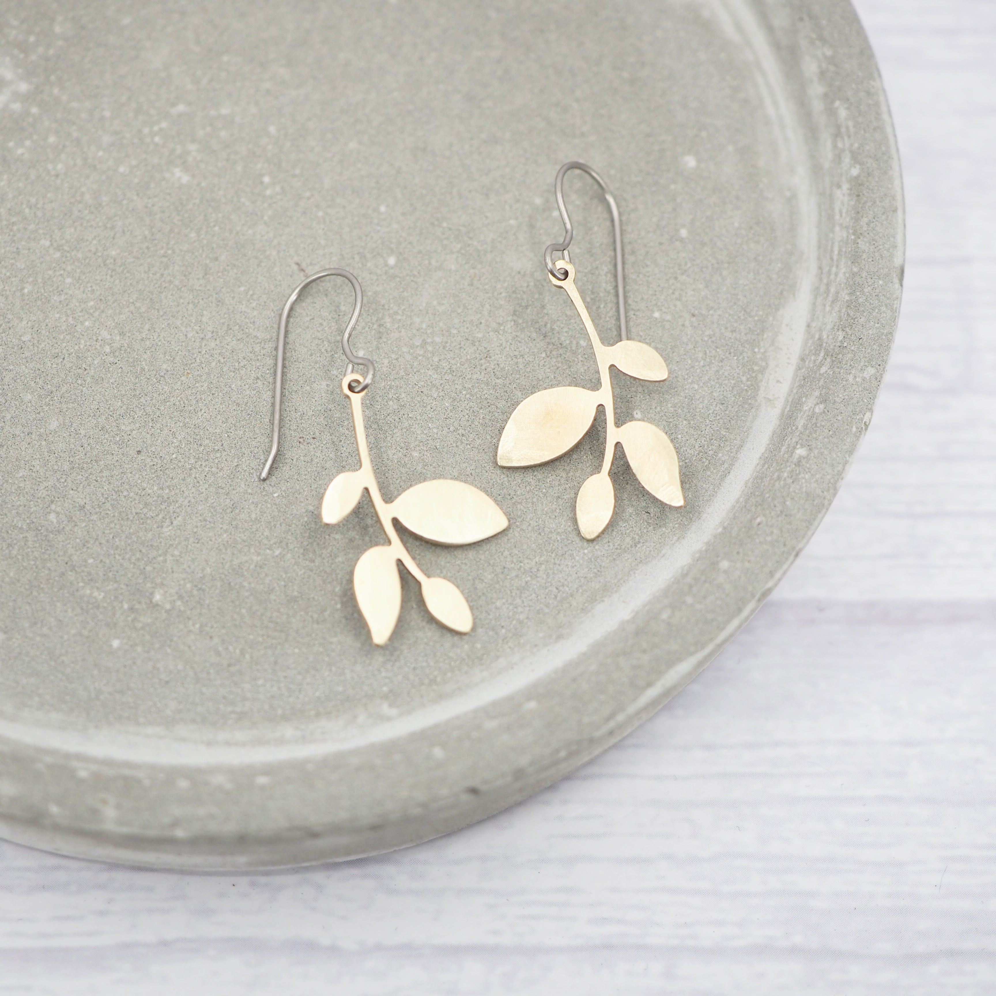 and the earrings have a total drop length of 1.38" (3.5cm) from the top of the ear wire to the bottom of the leaves.