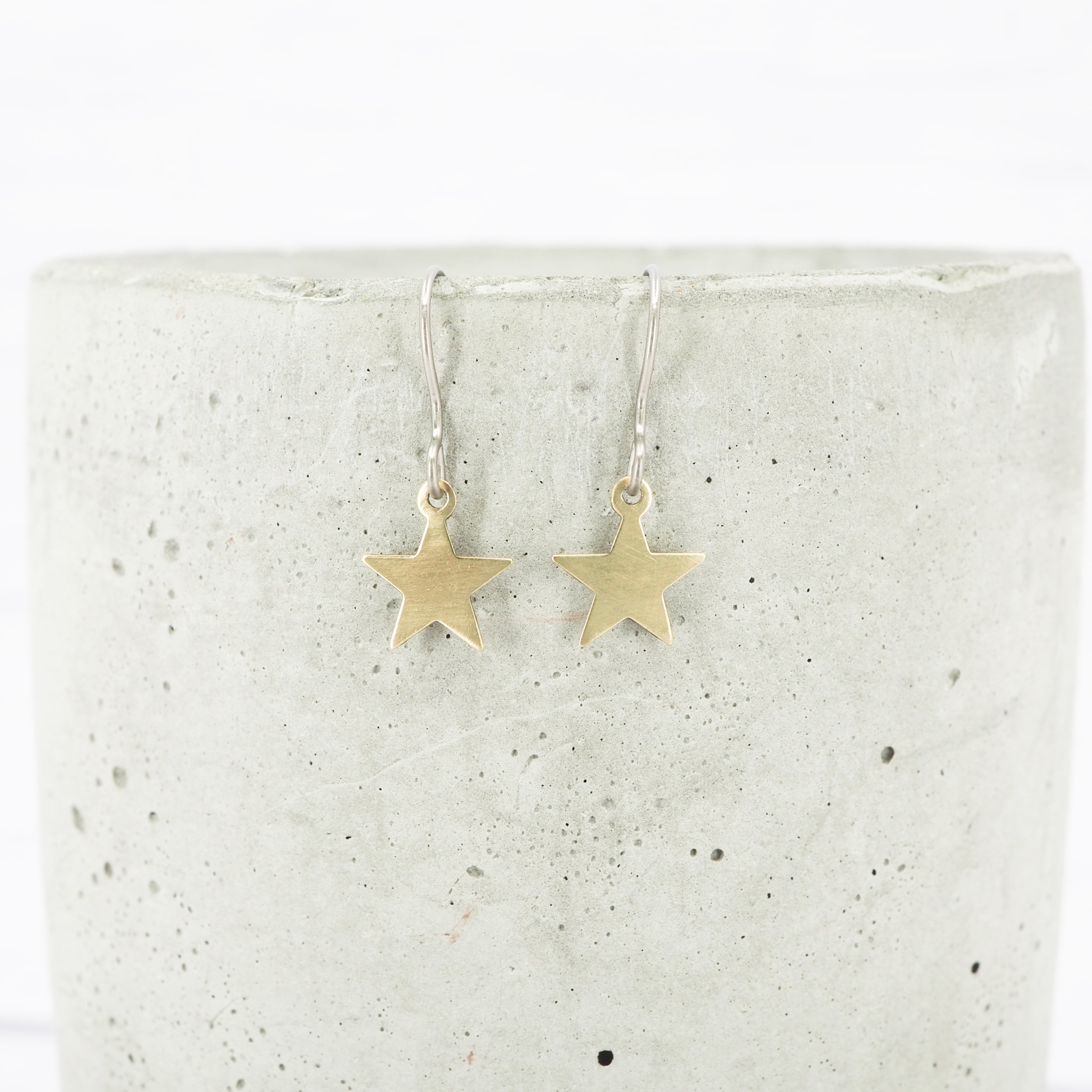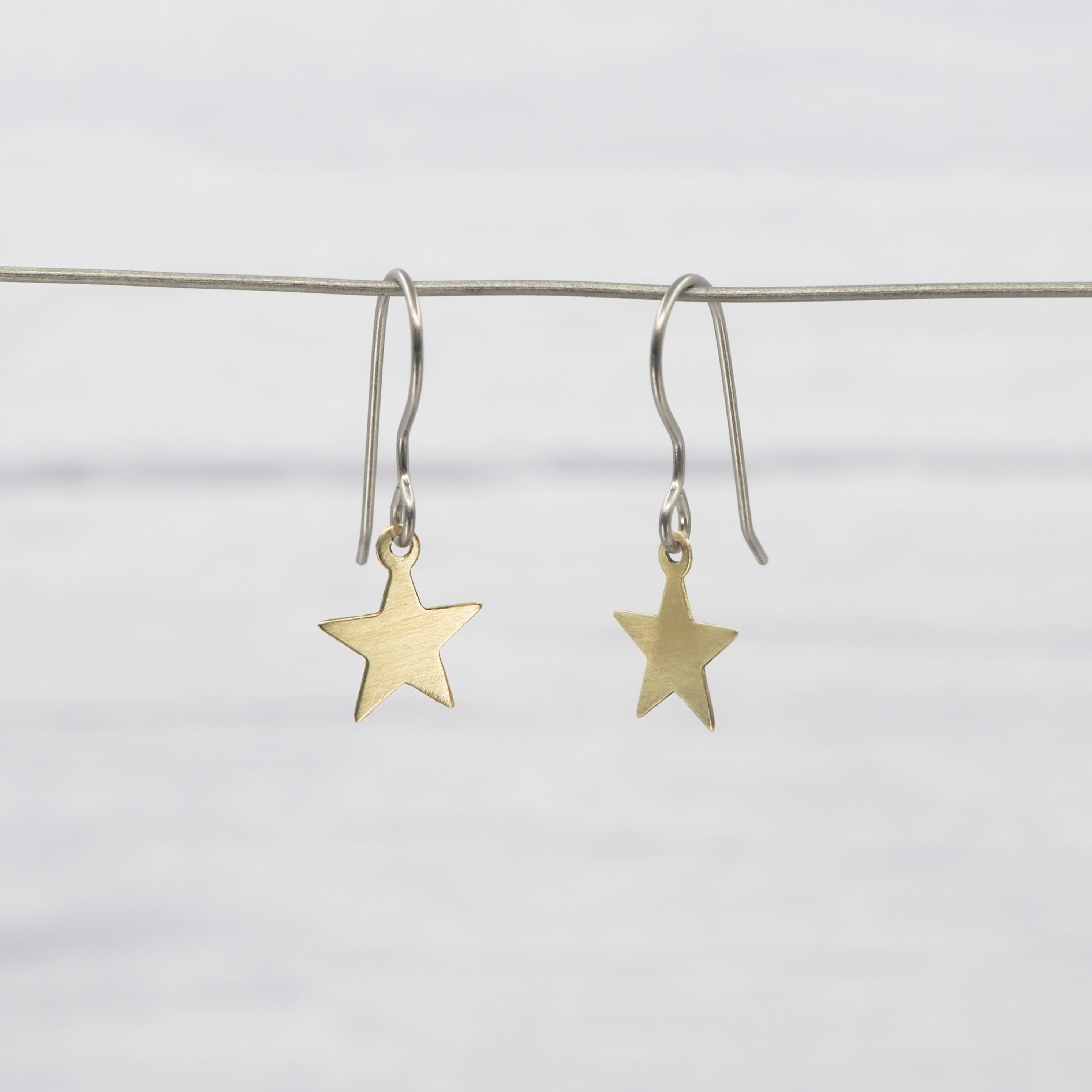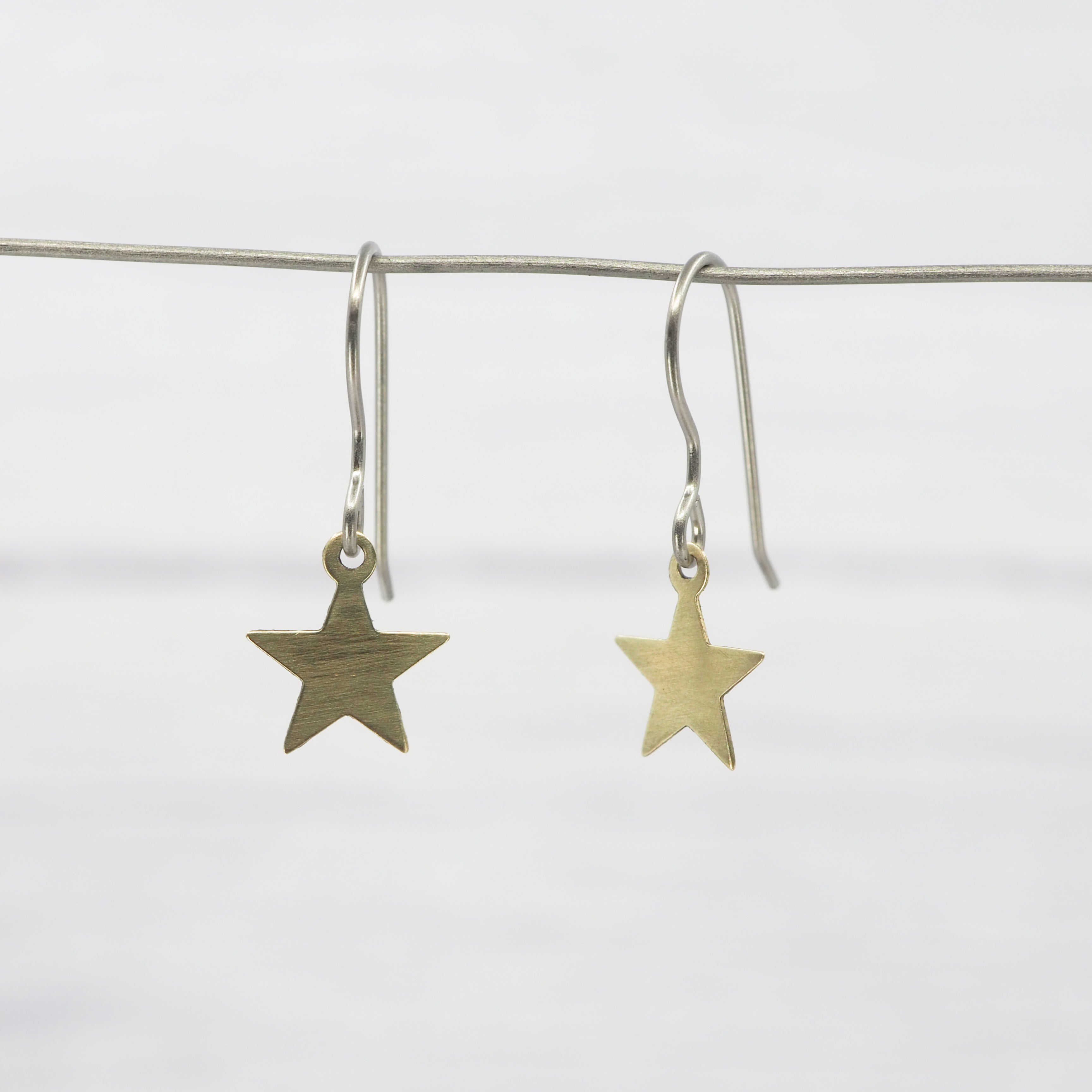 Brass small star dangle earrings.