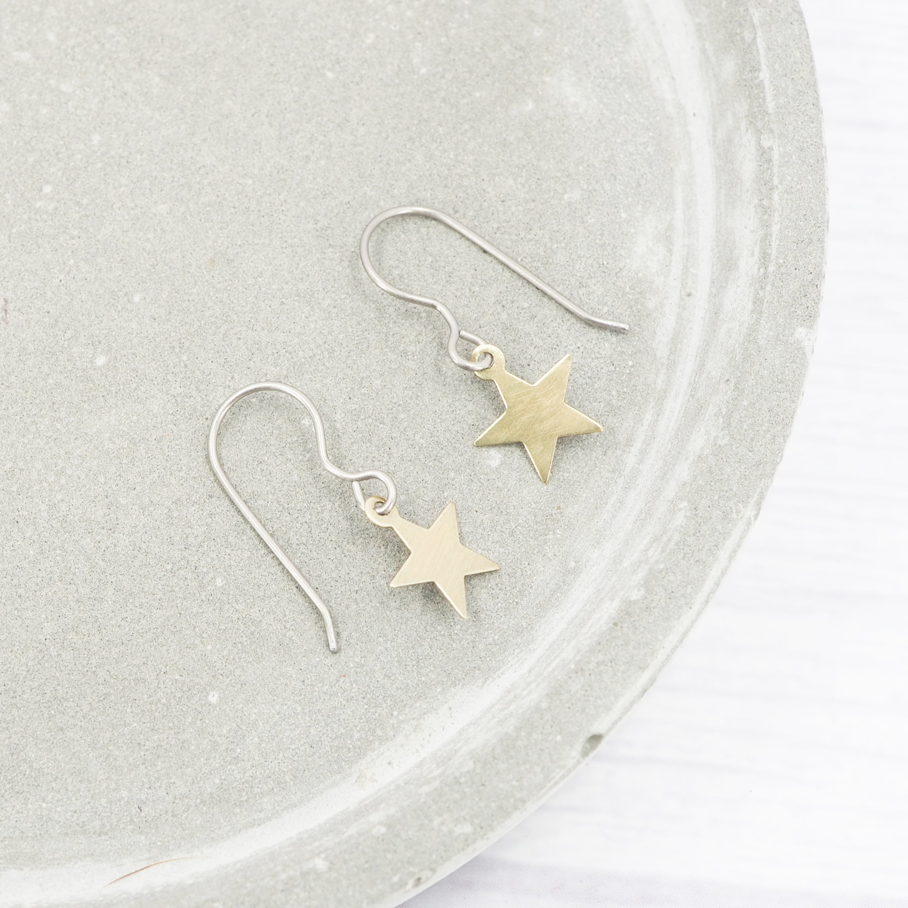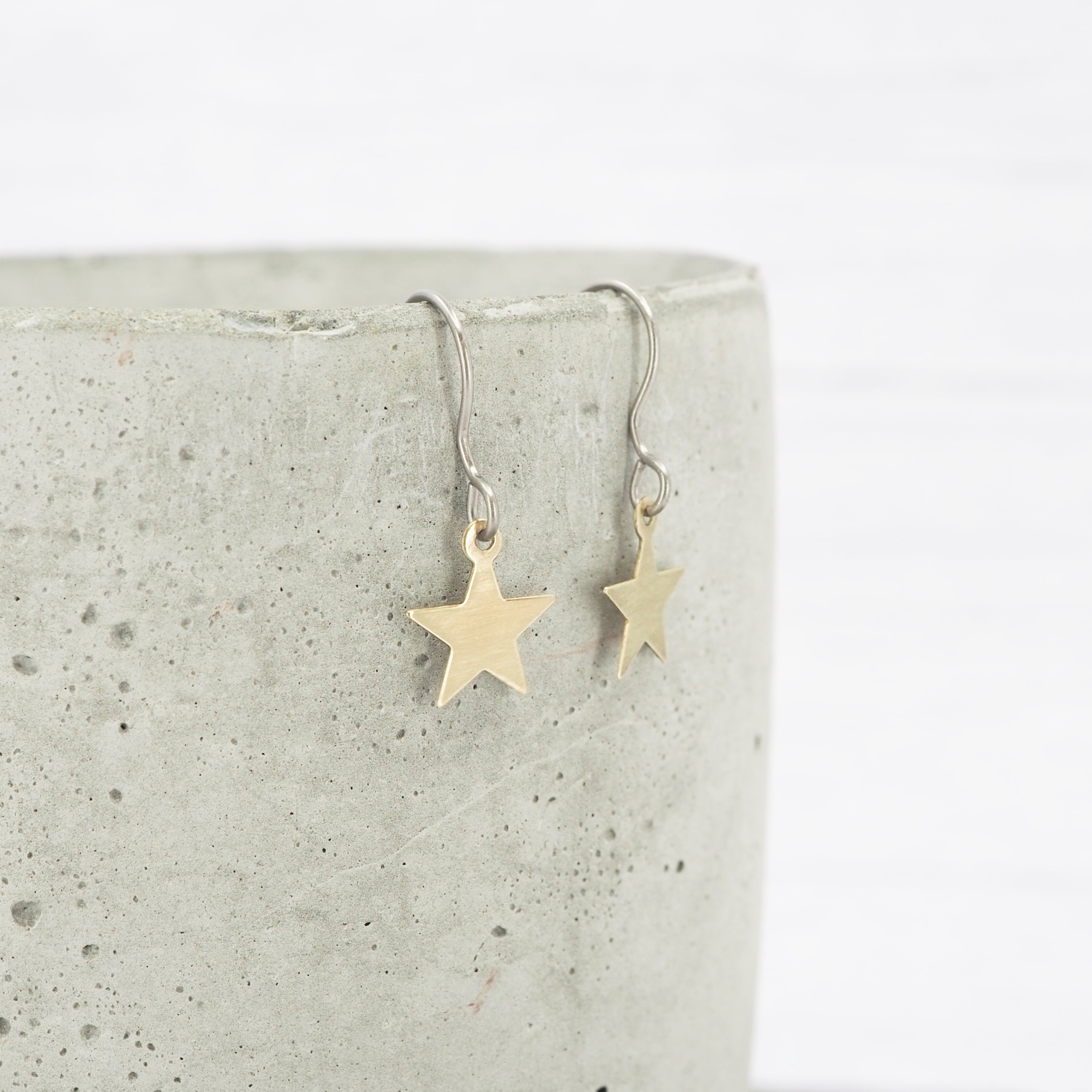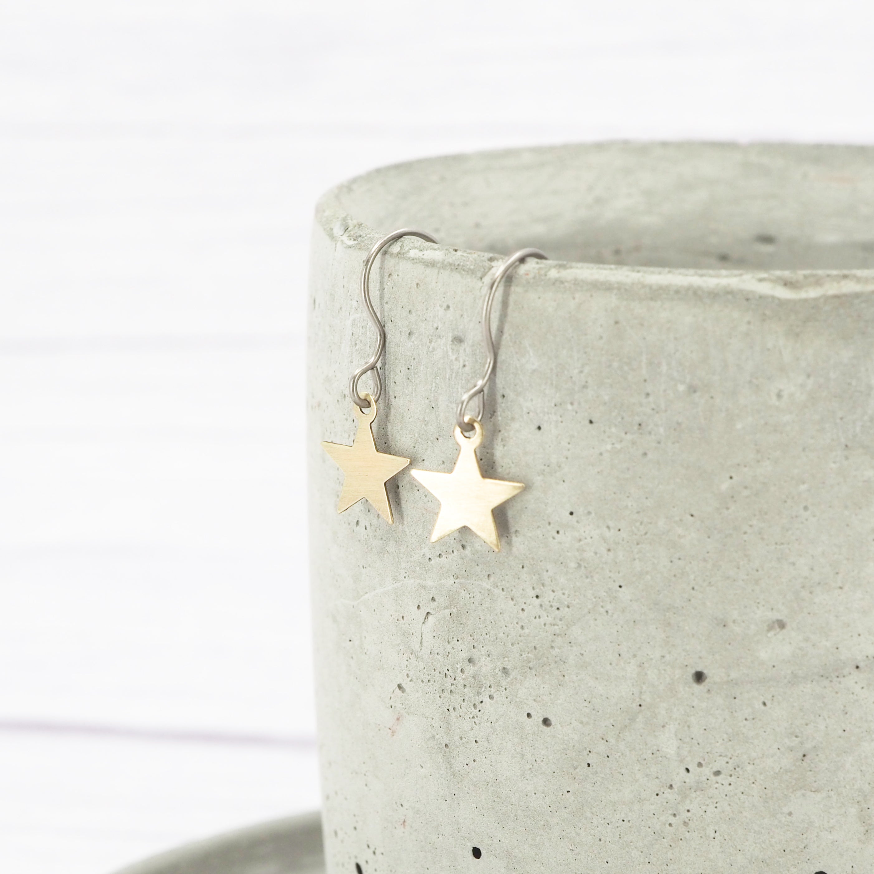 Brass small star dangle earrings.
