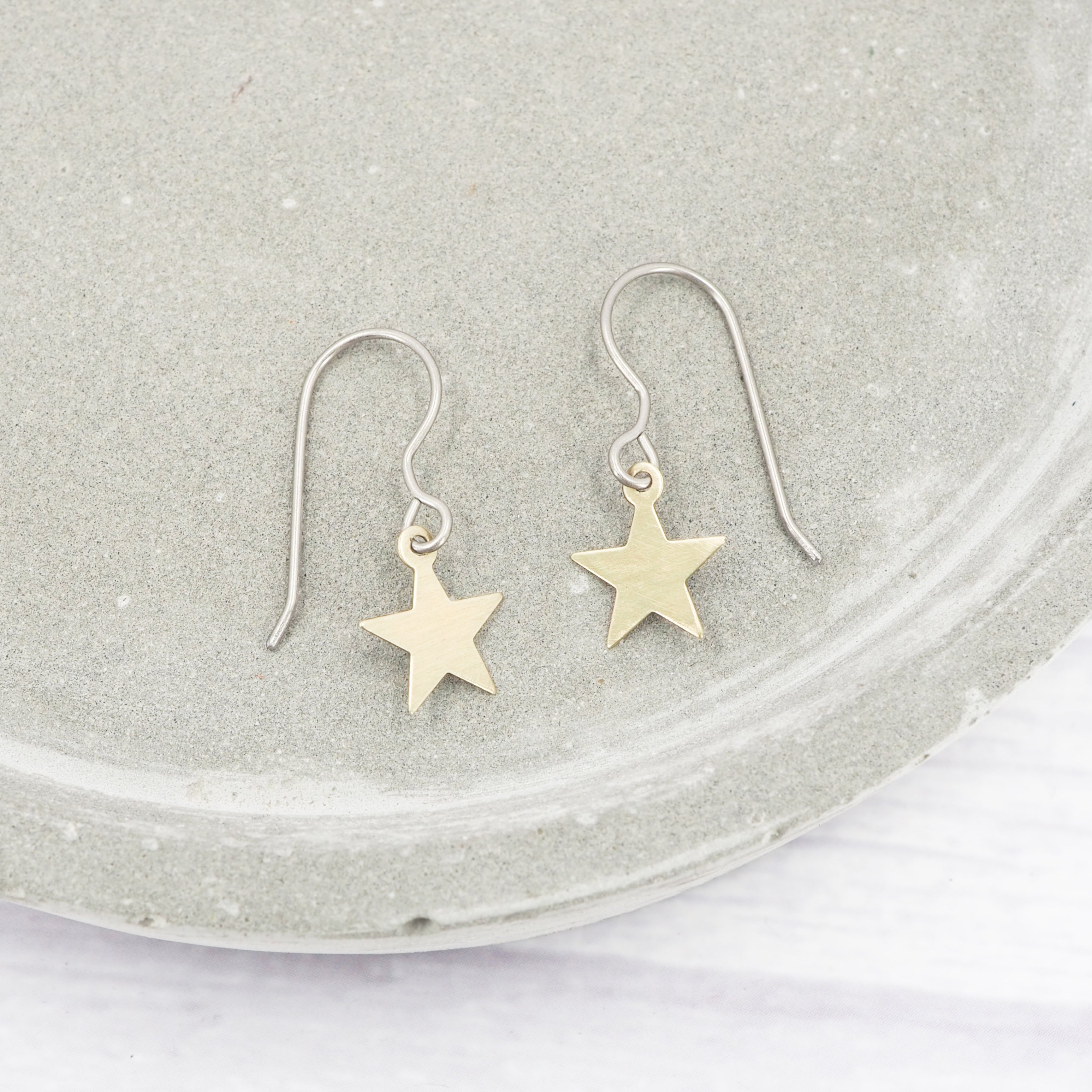 Brass small star dangle earrings