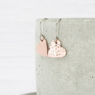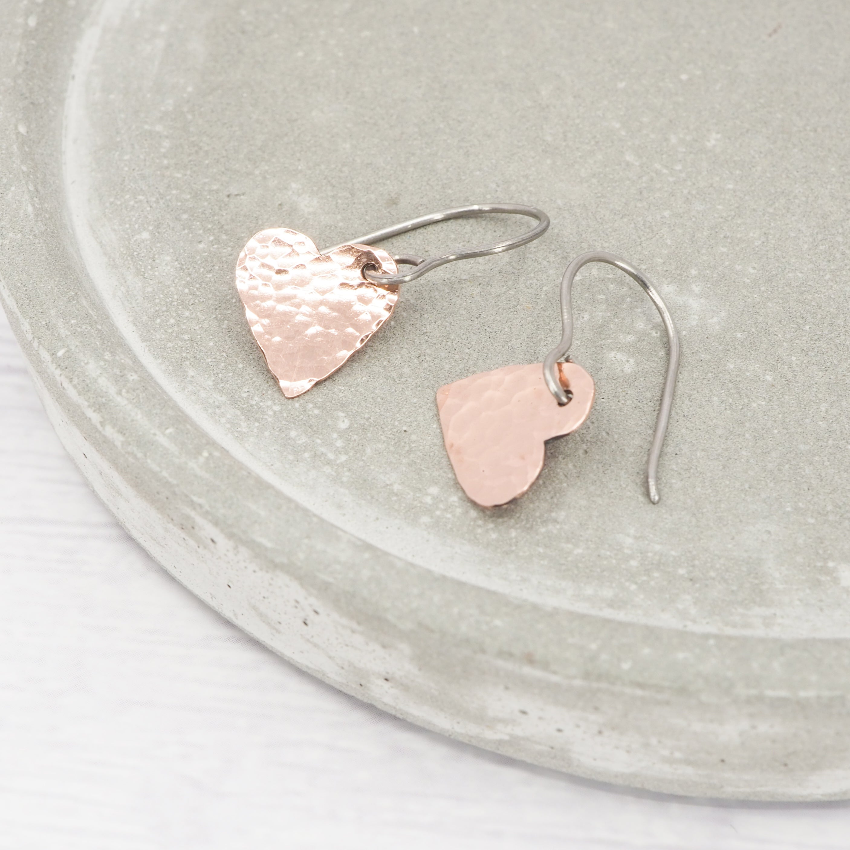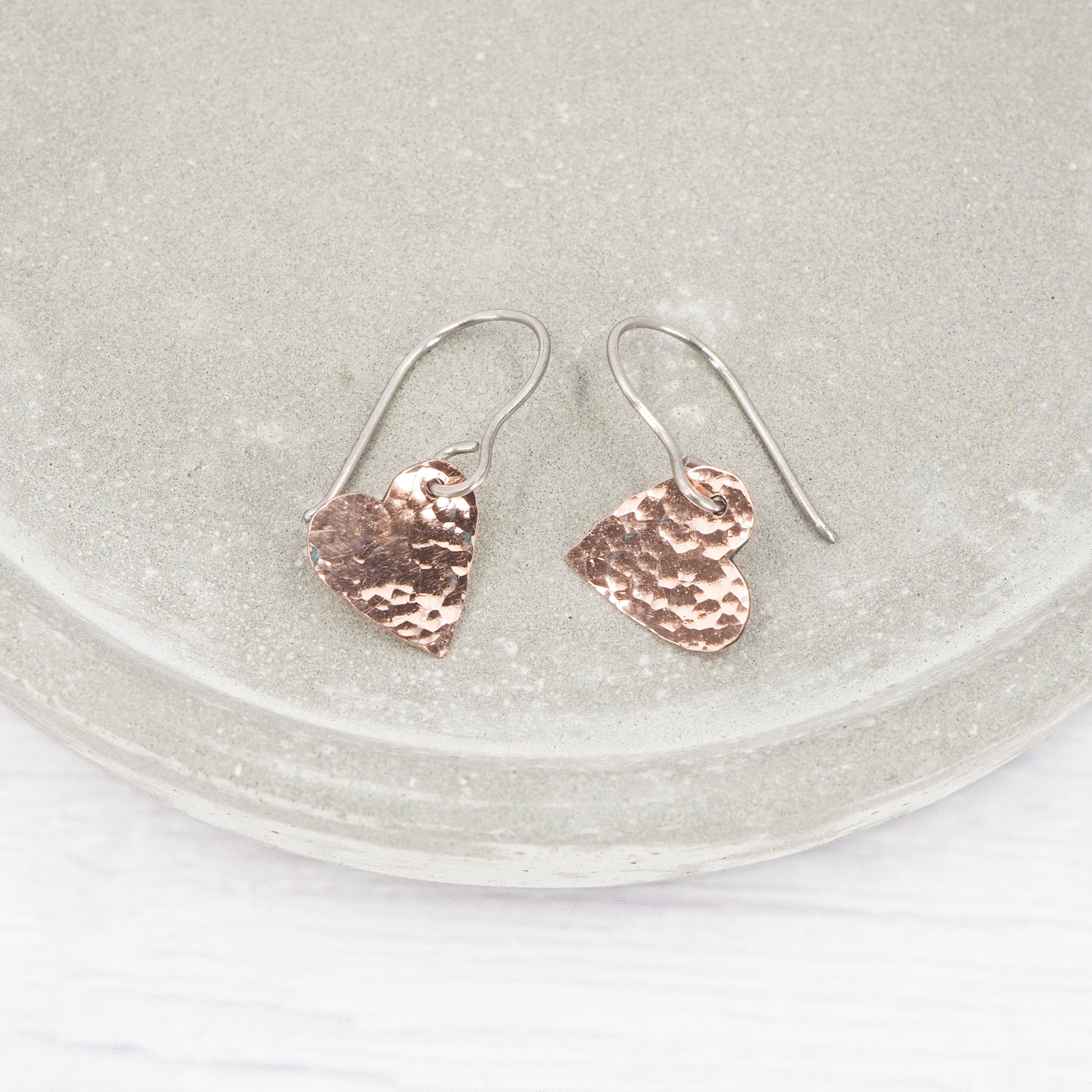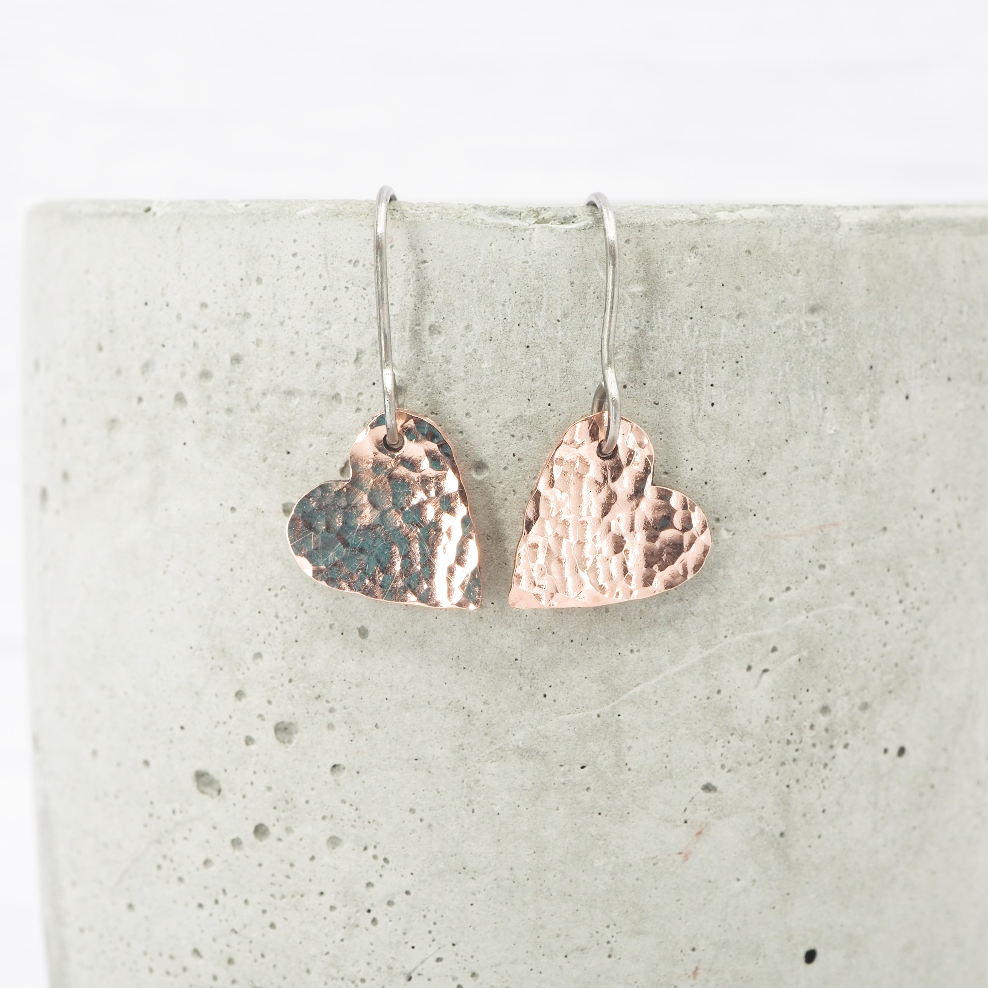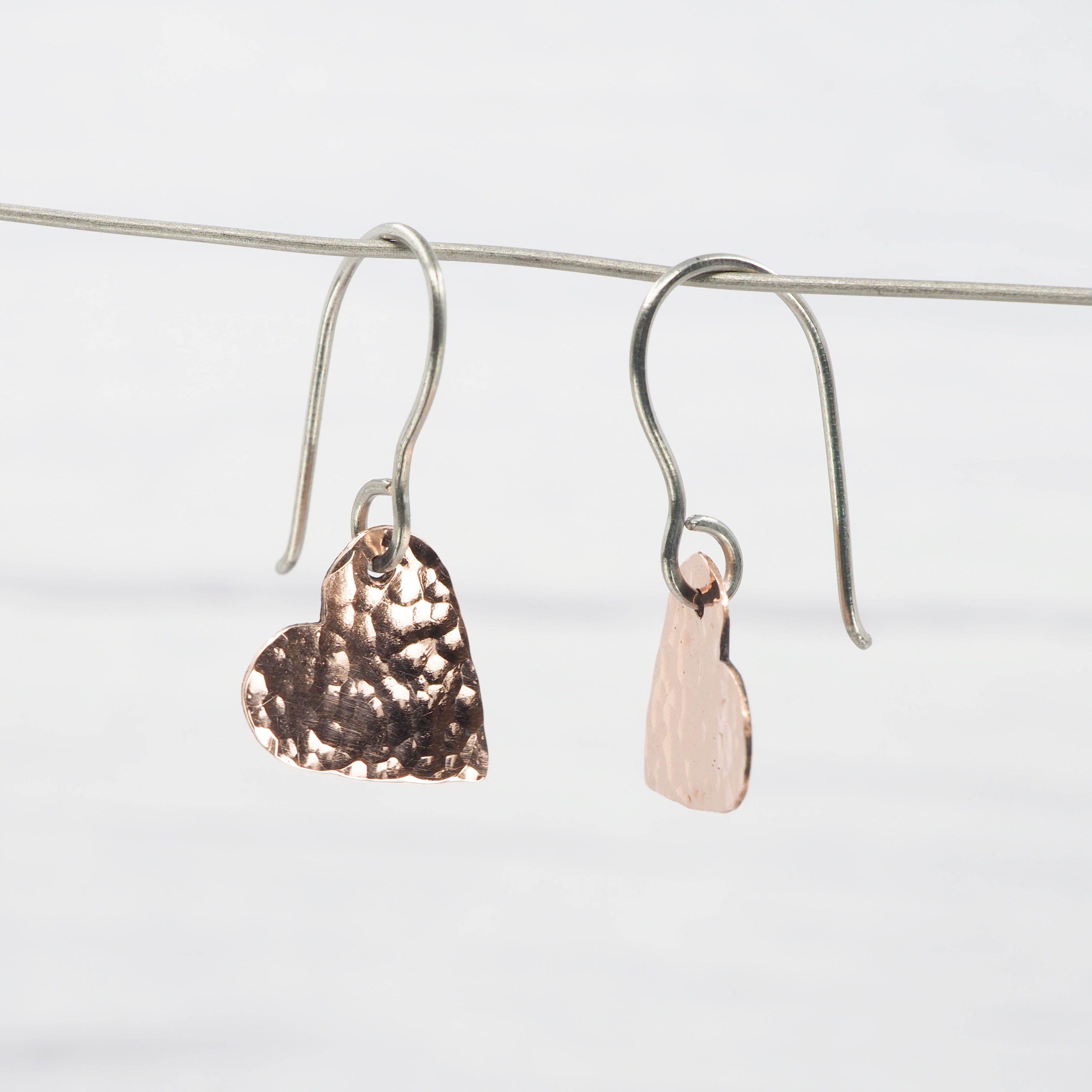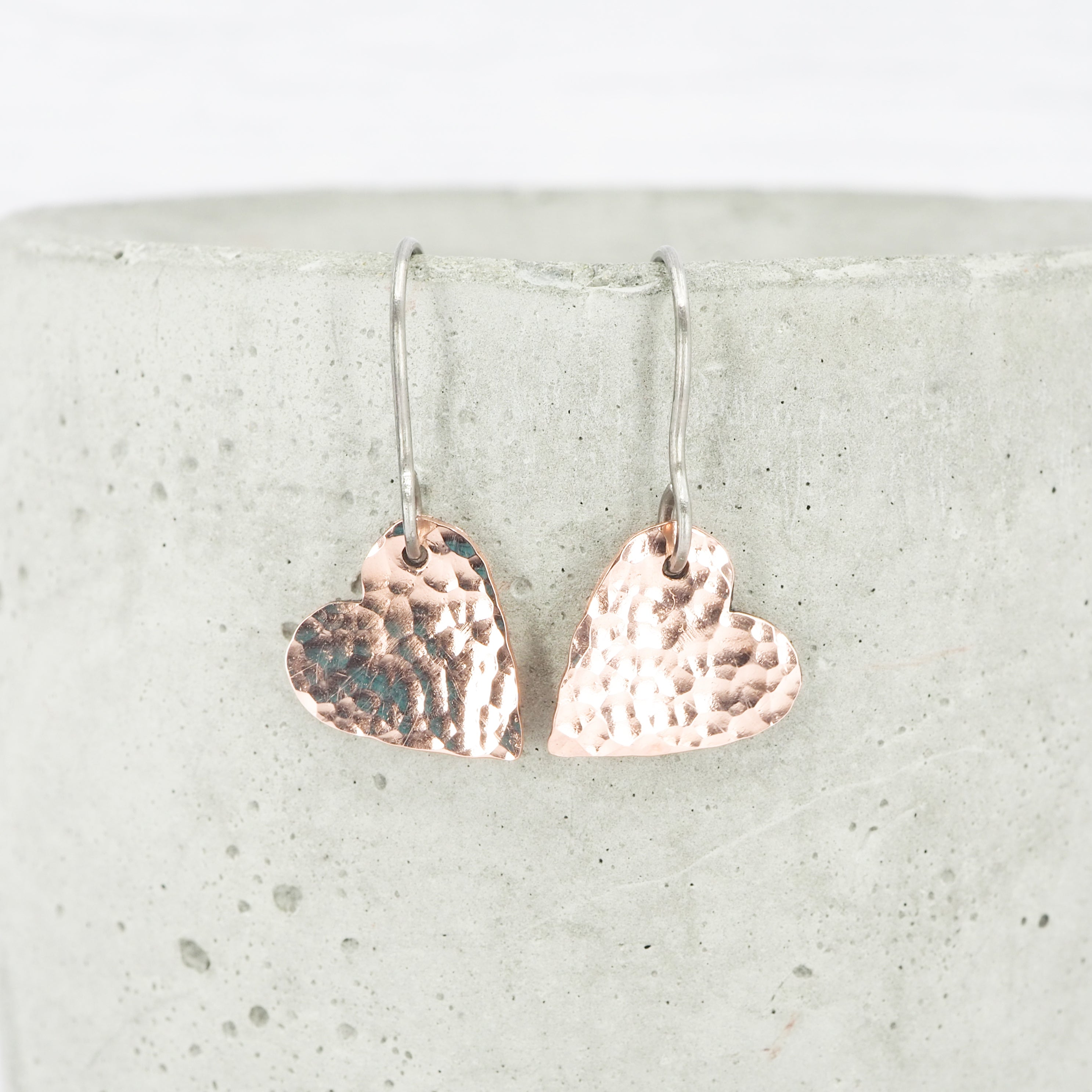 Each heart measures 0.5" (1.3cm) and the earrings have a total drop length of 0.9" (2.4cm) from the top of the ear wire.