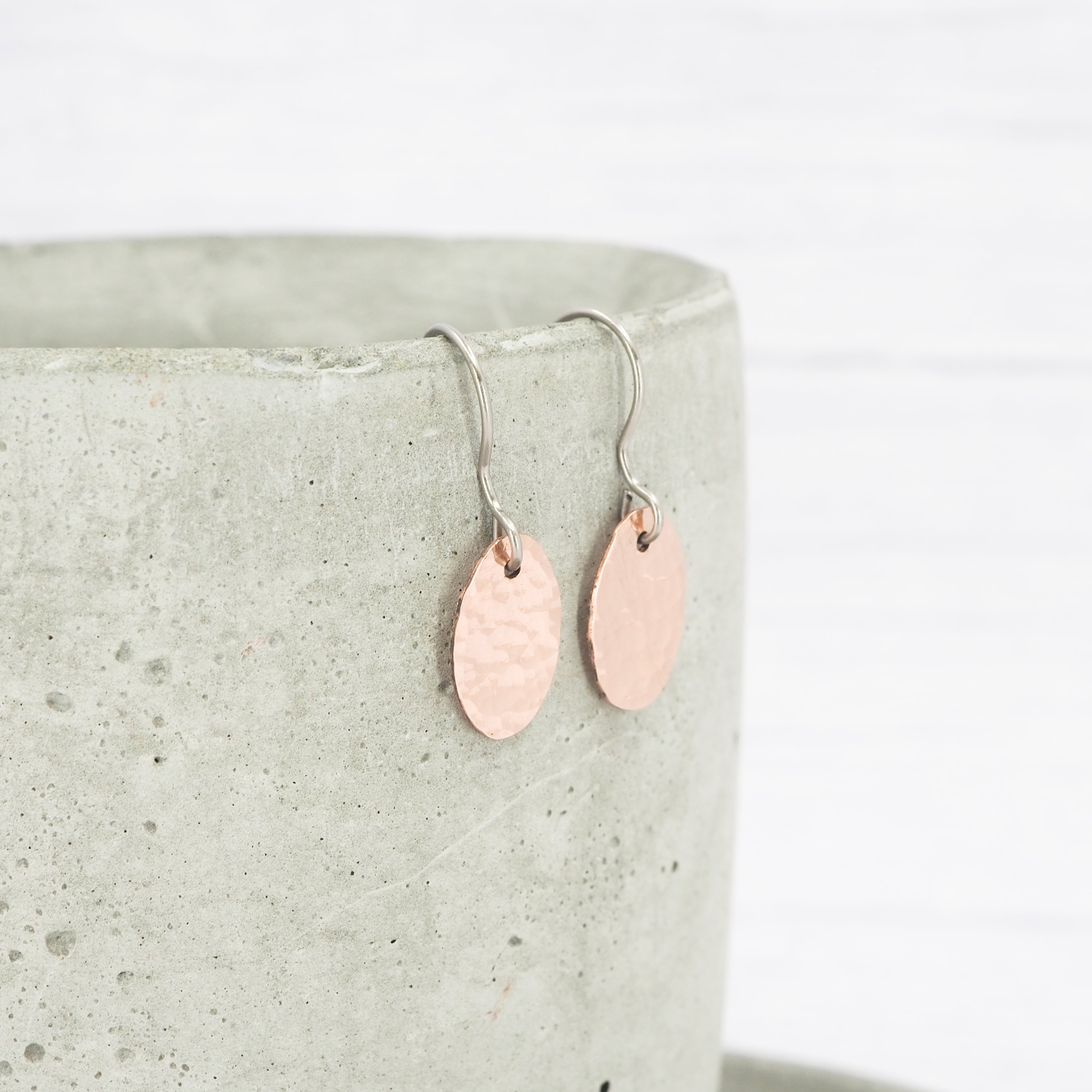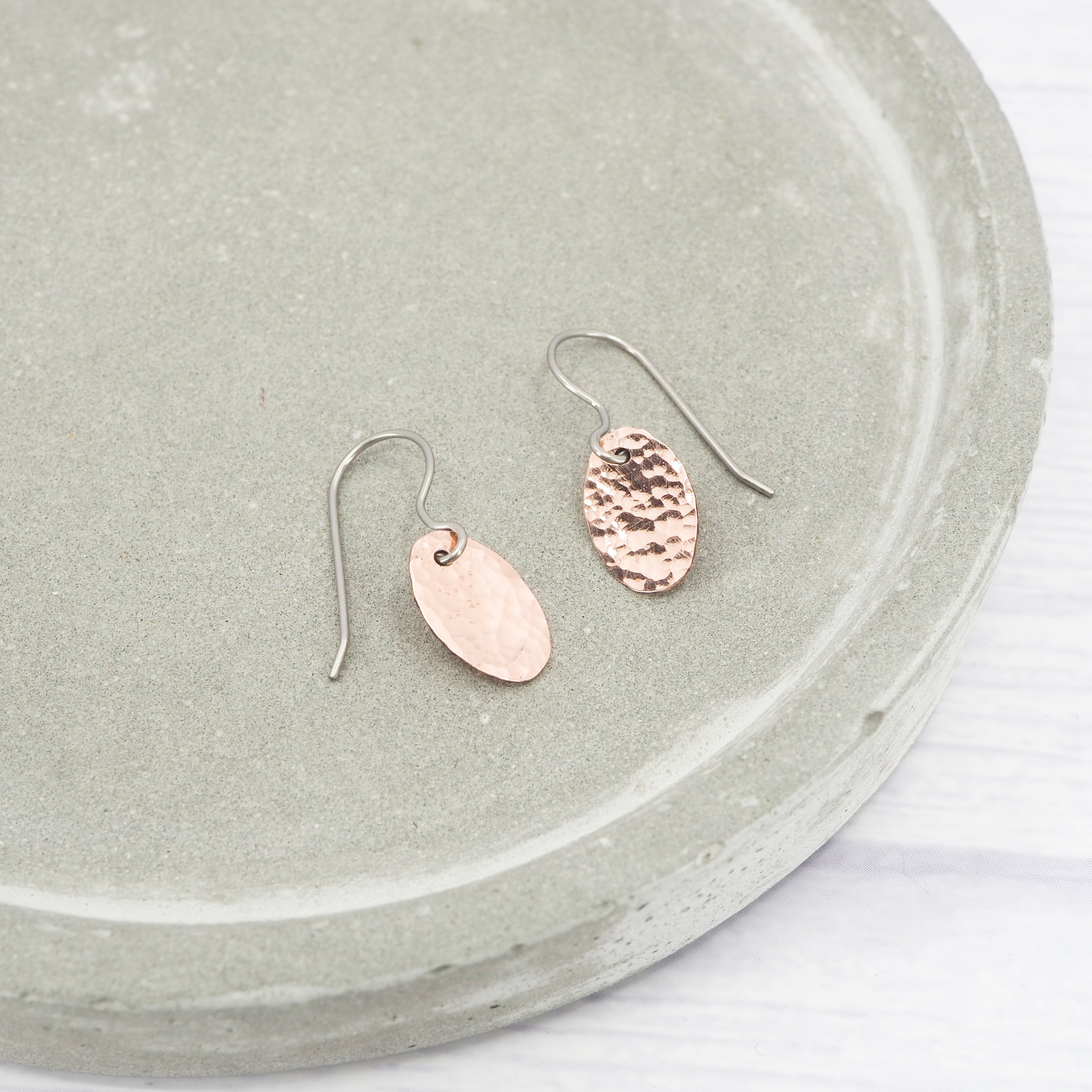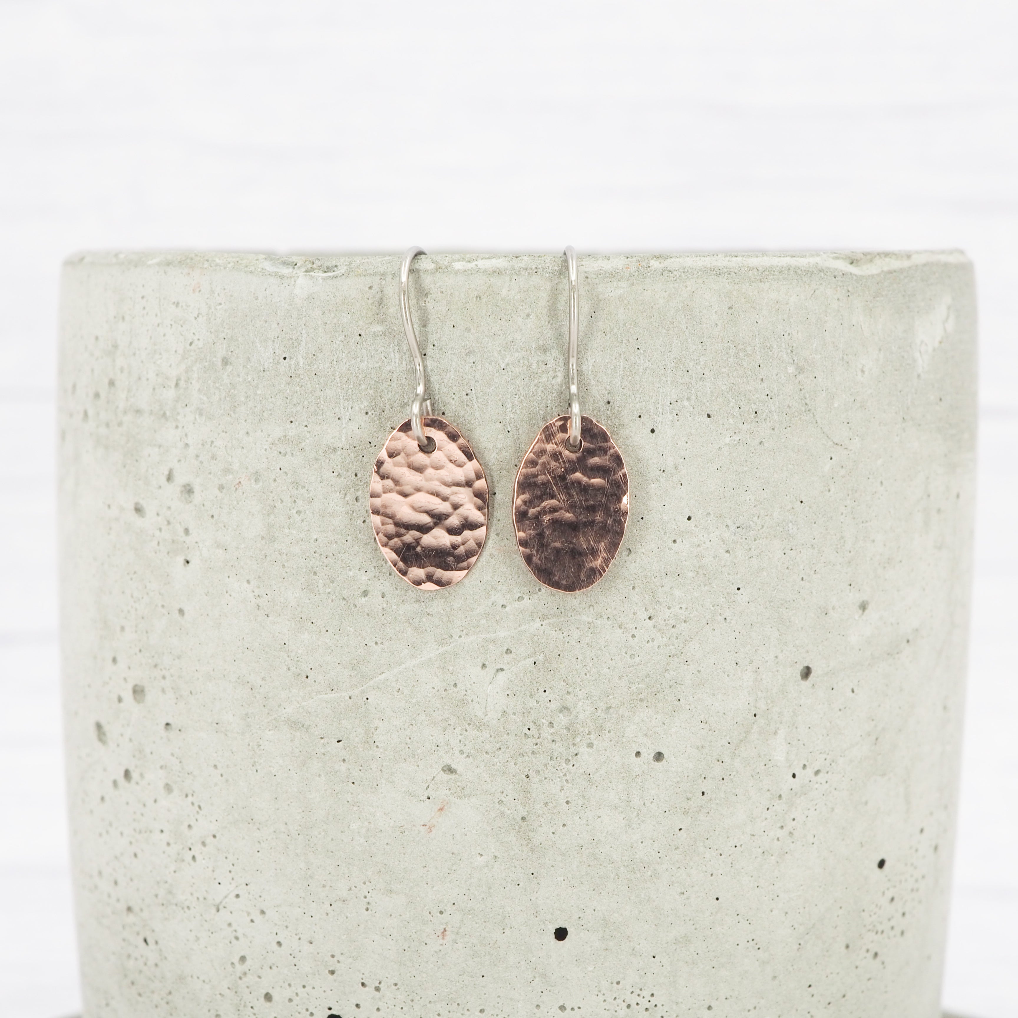 Copper dimple oval dangle earrings
