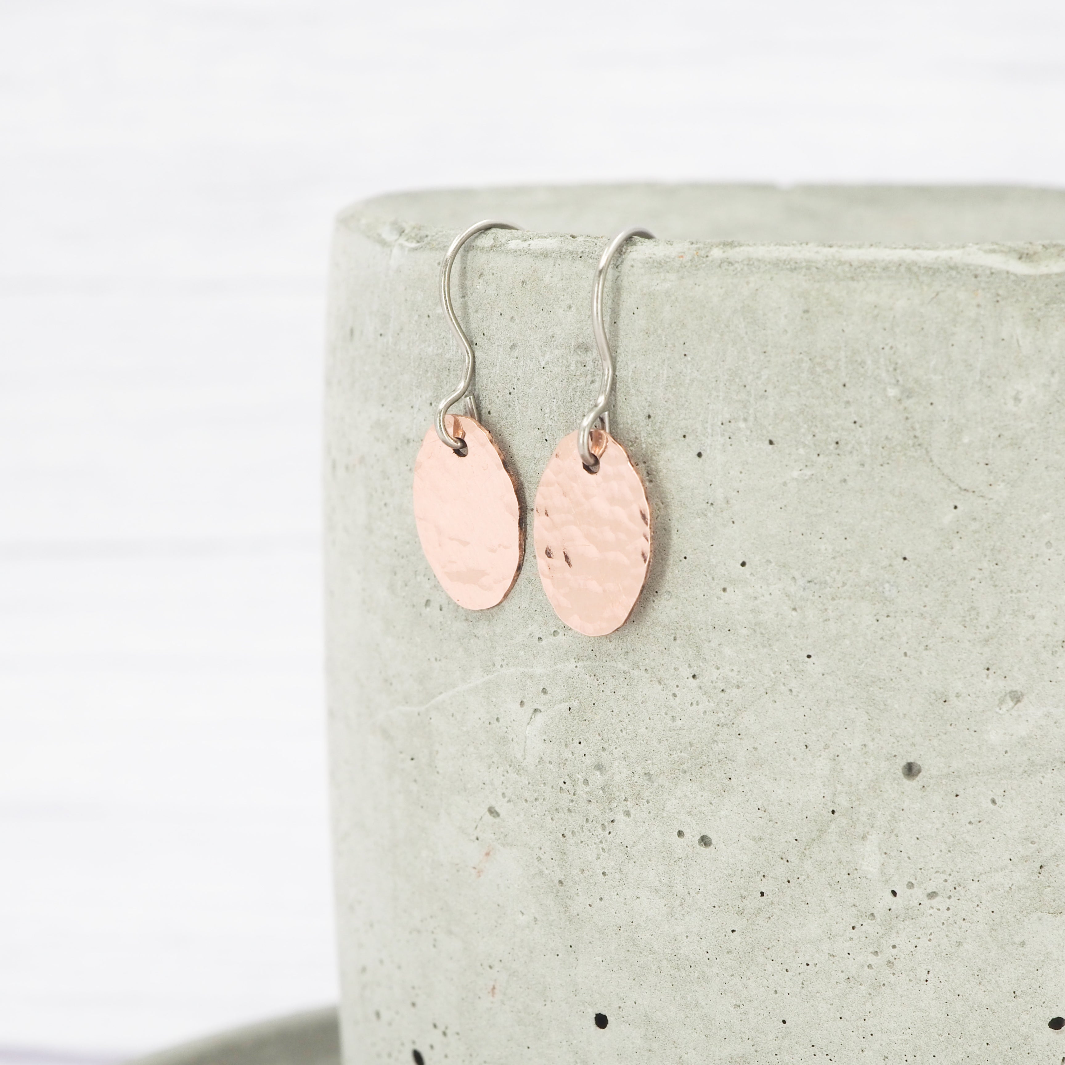 Copper oval dangle earrings.