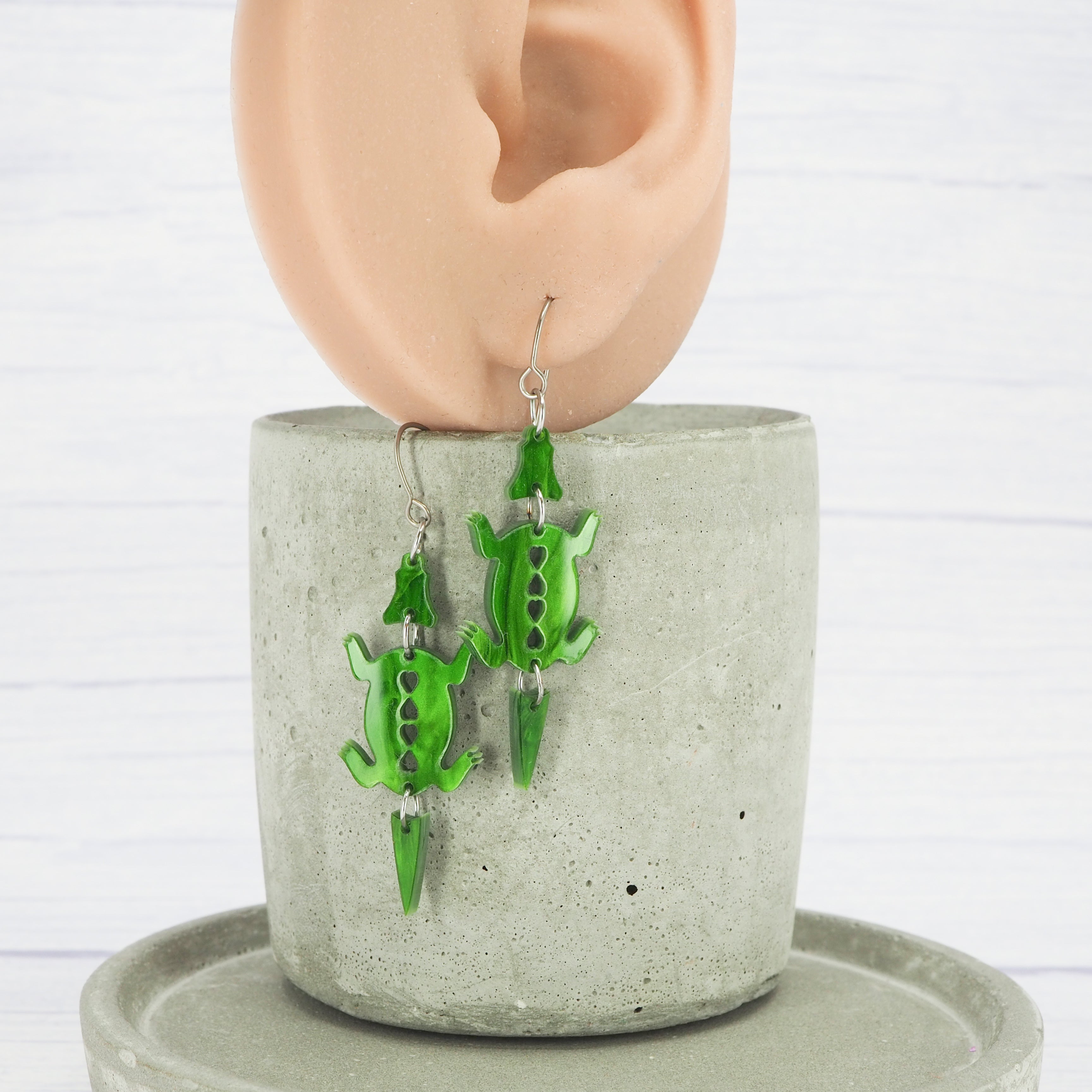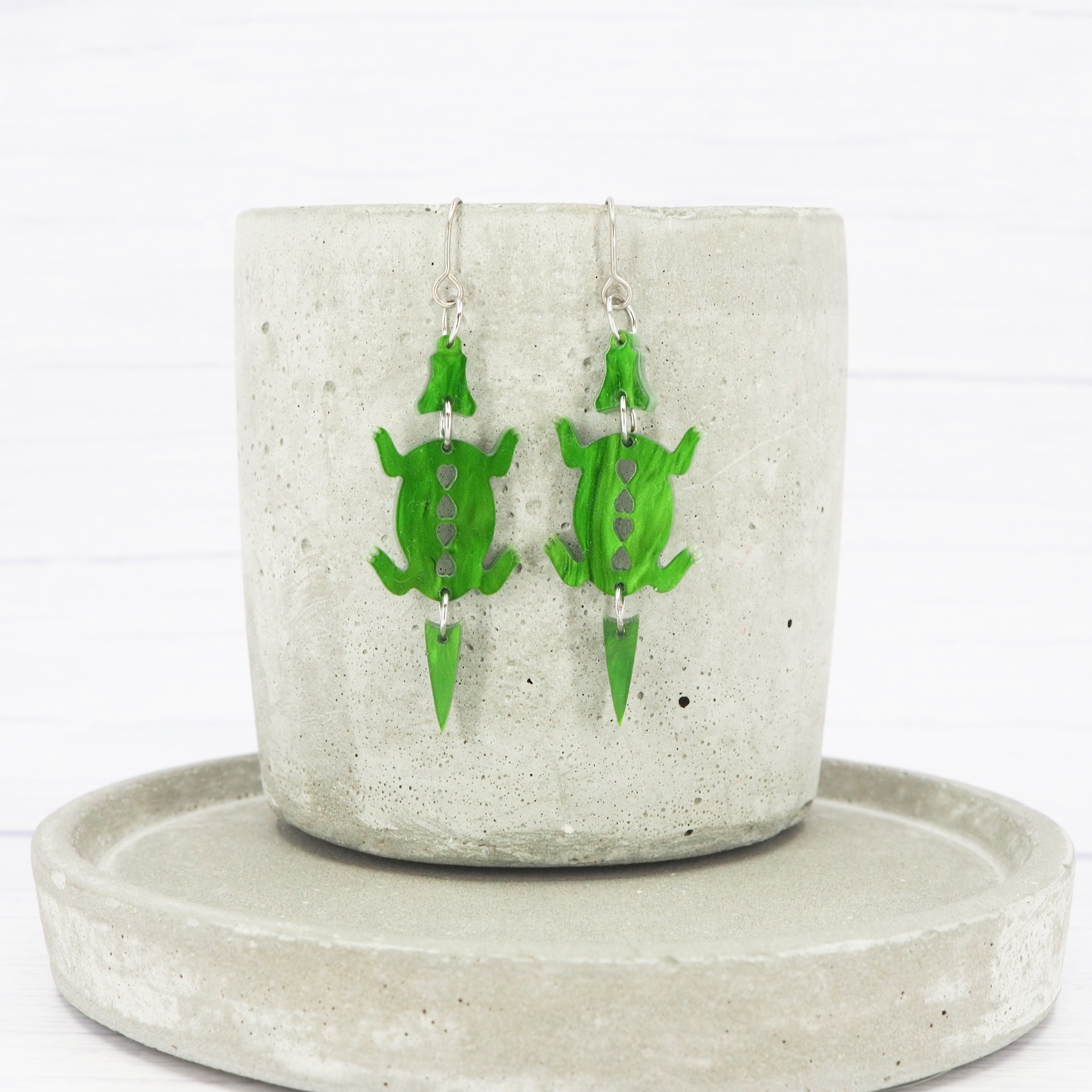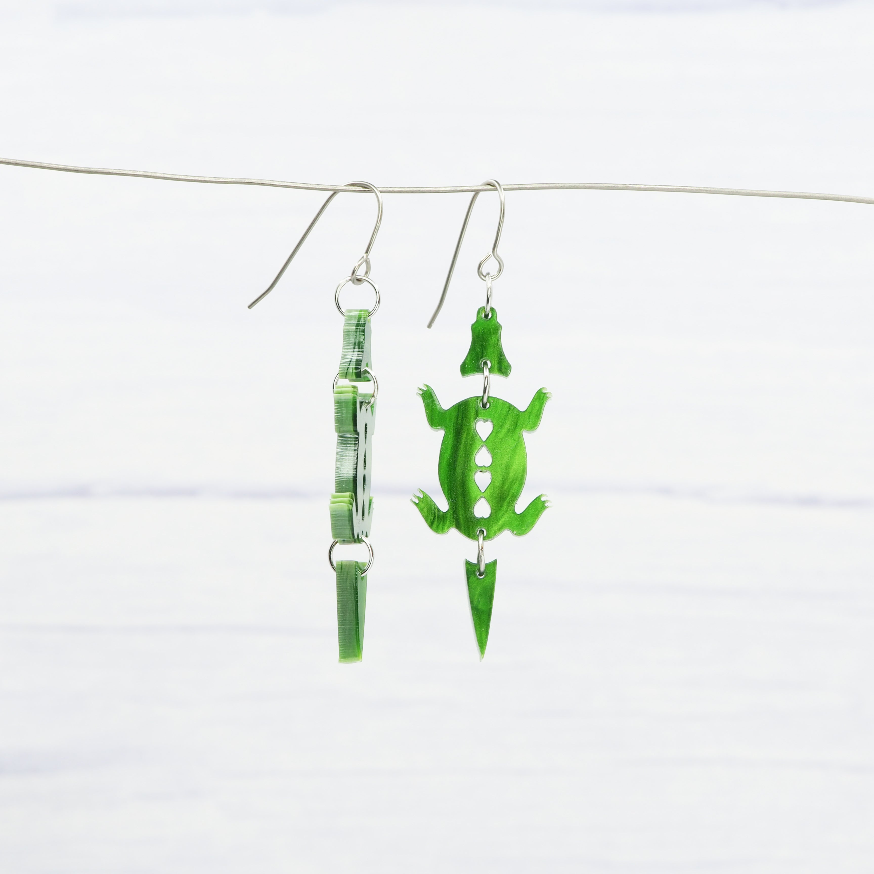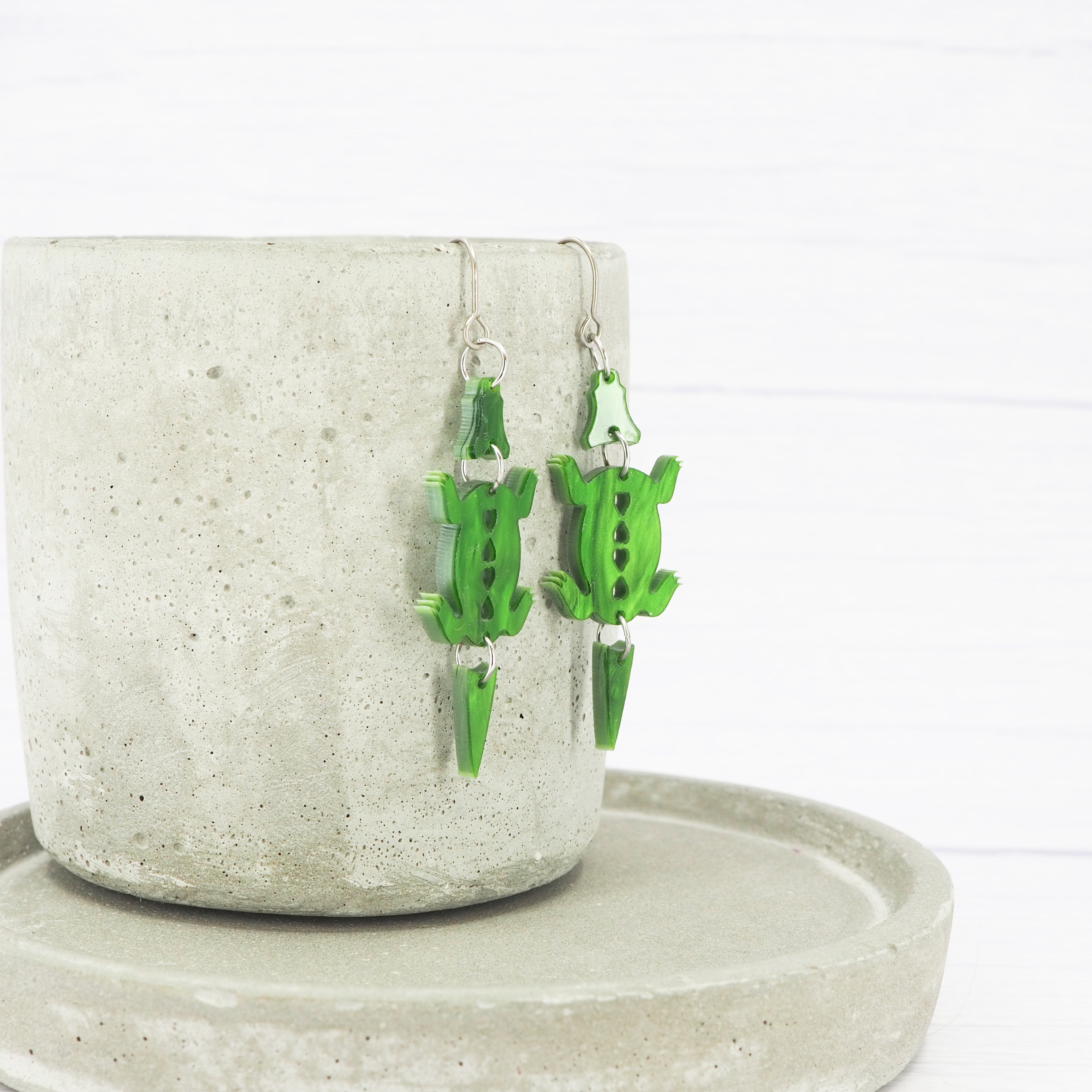 Marbled Green acrylic Crocodile dangle earrings