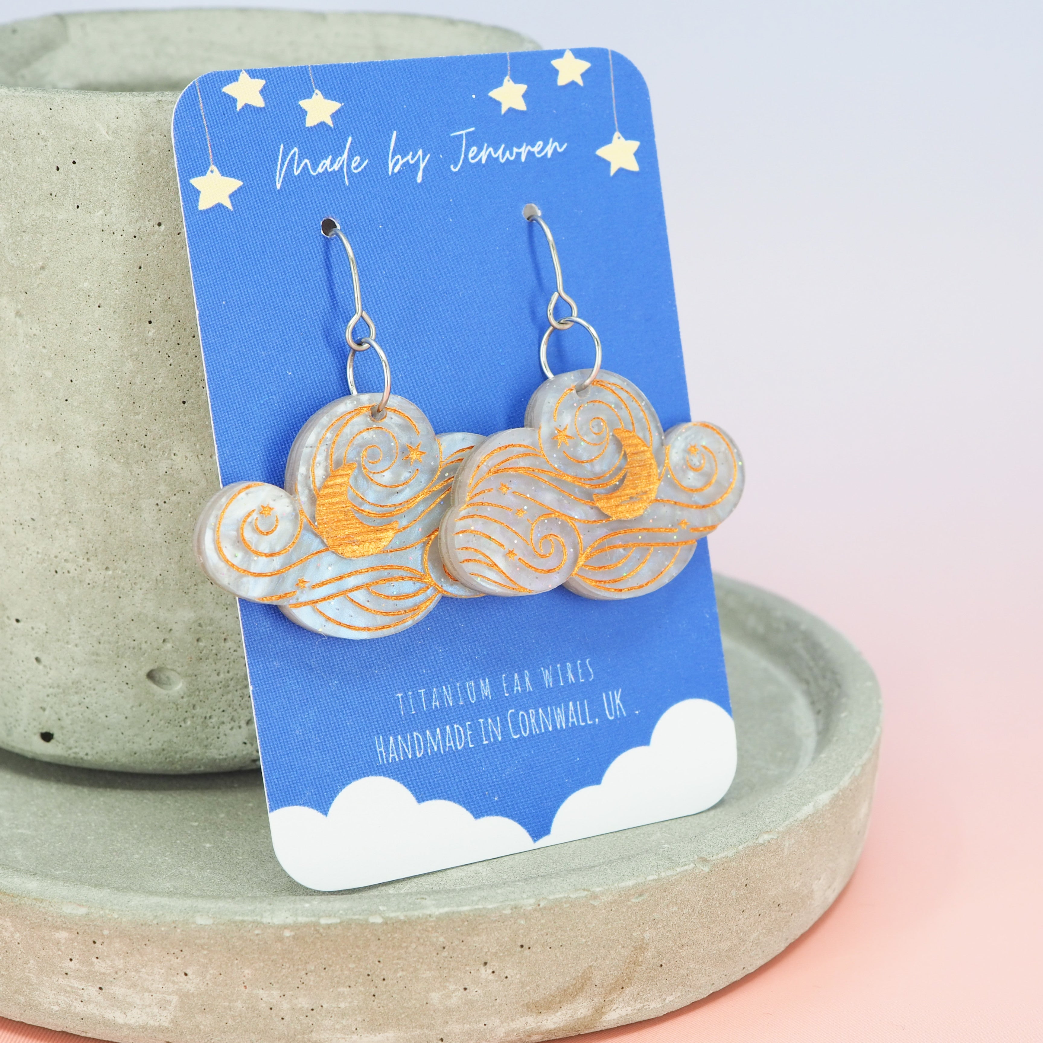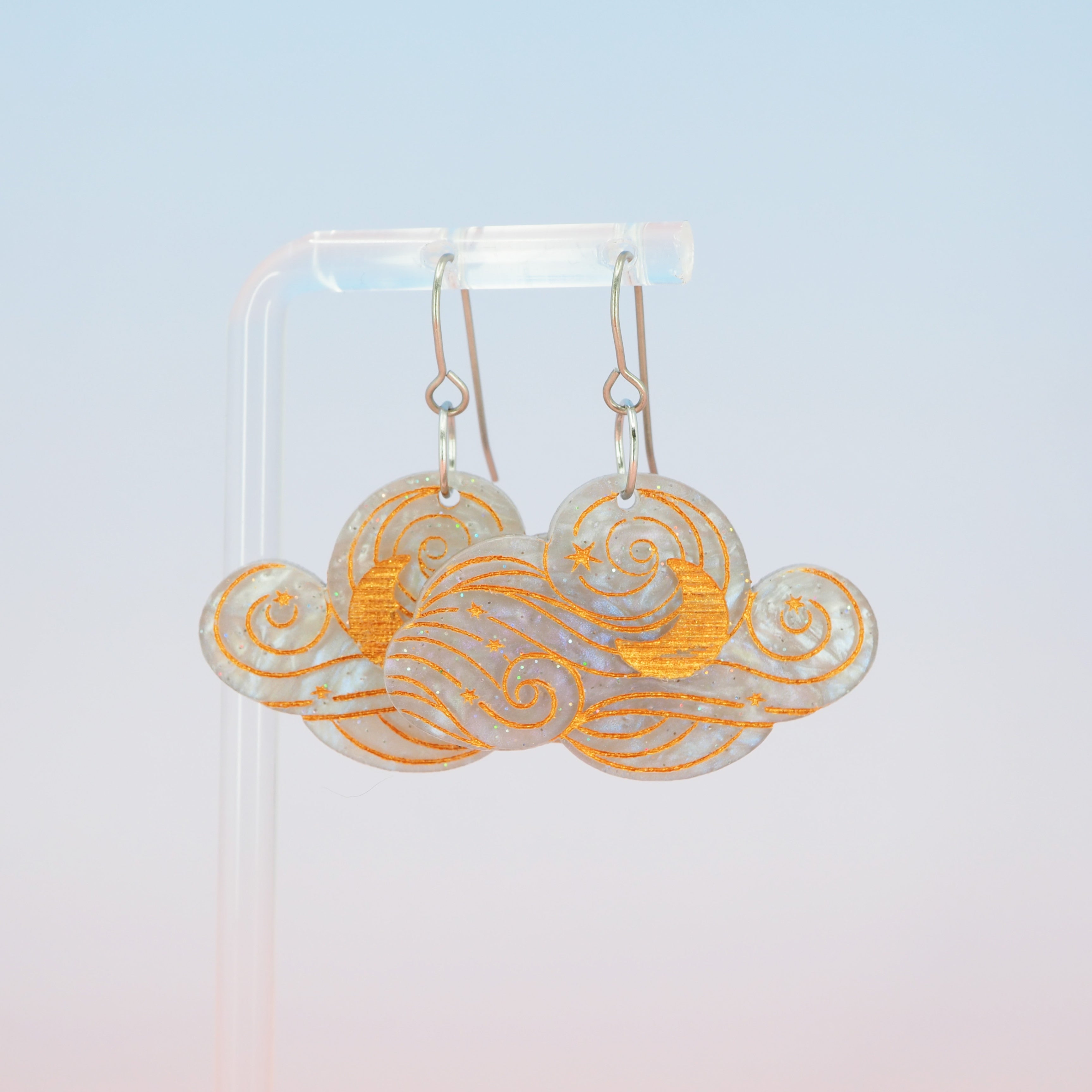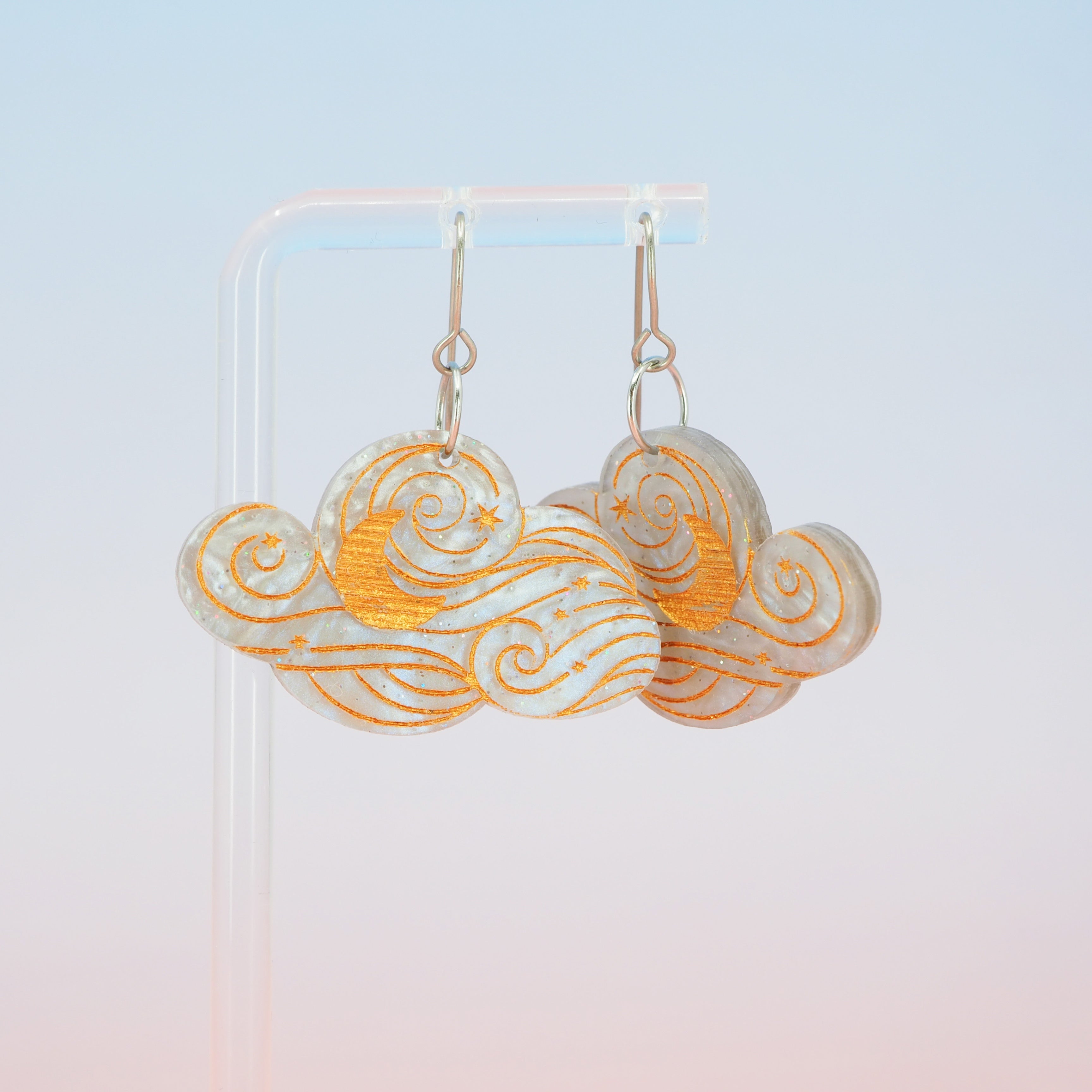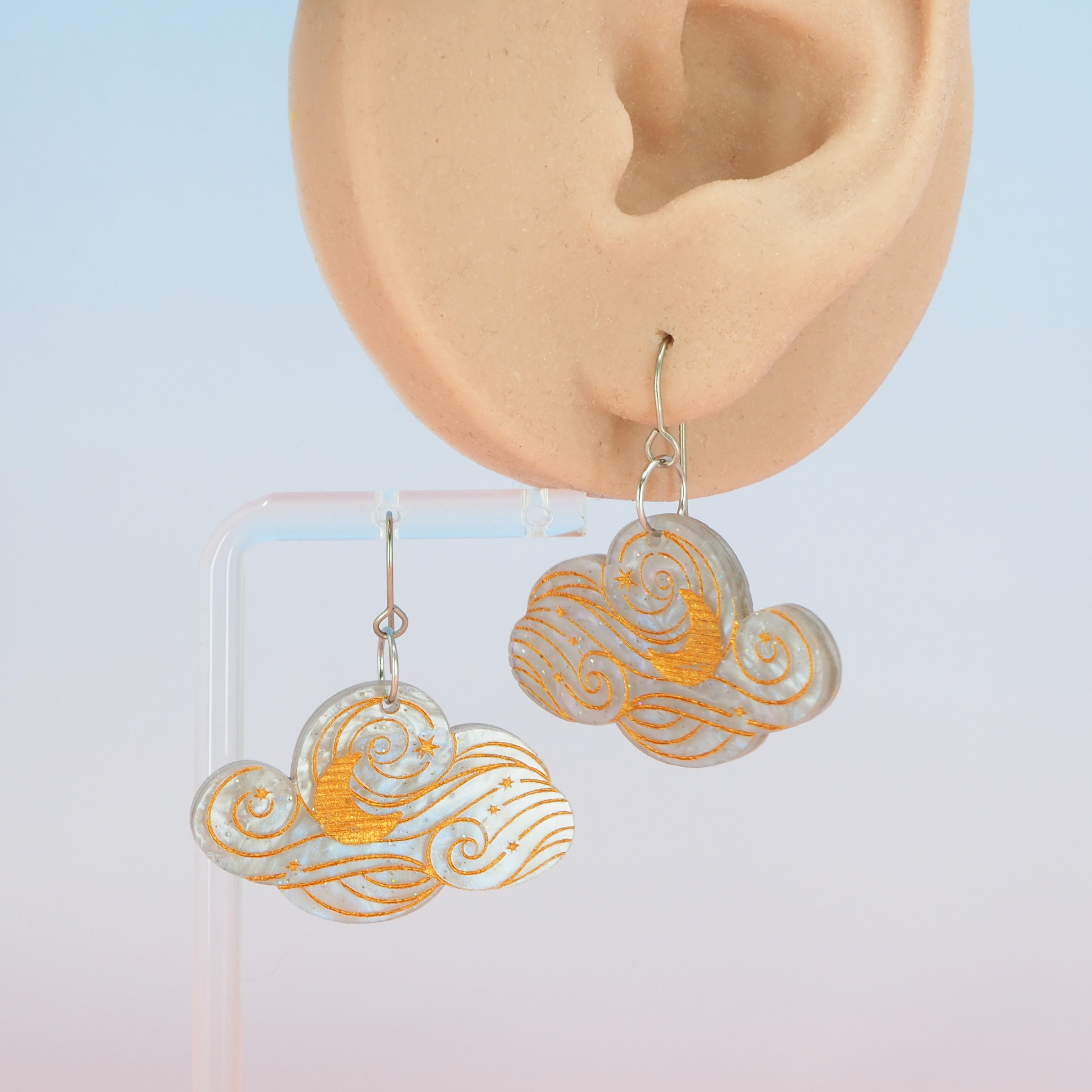 The earrings have a total drop length of 1.68" (4.2cm) from the top of the ear wire to the bottom of the cloud.