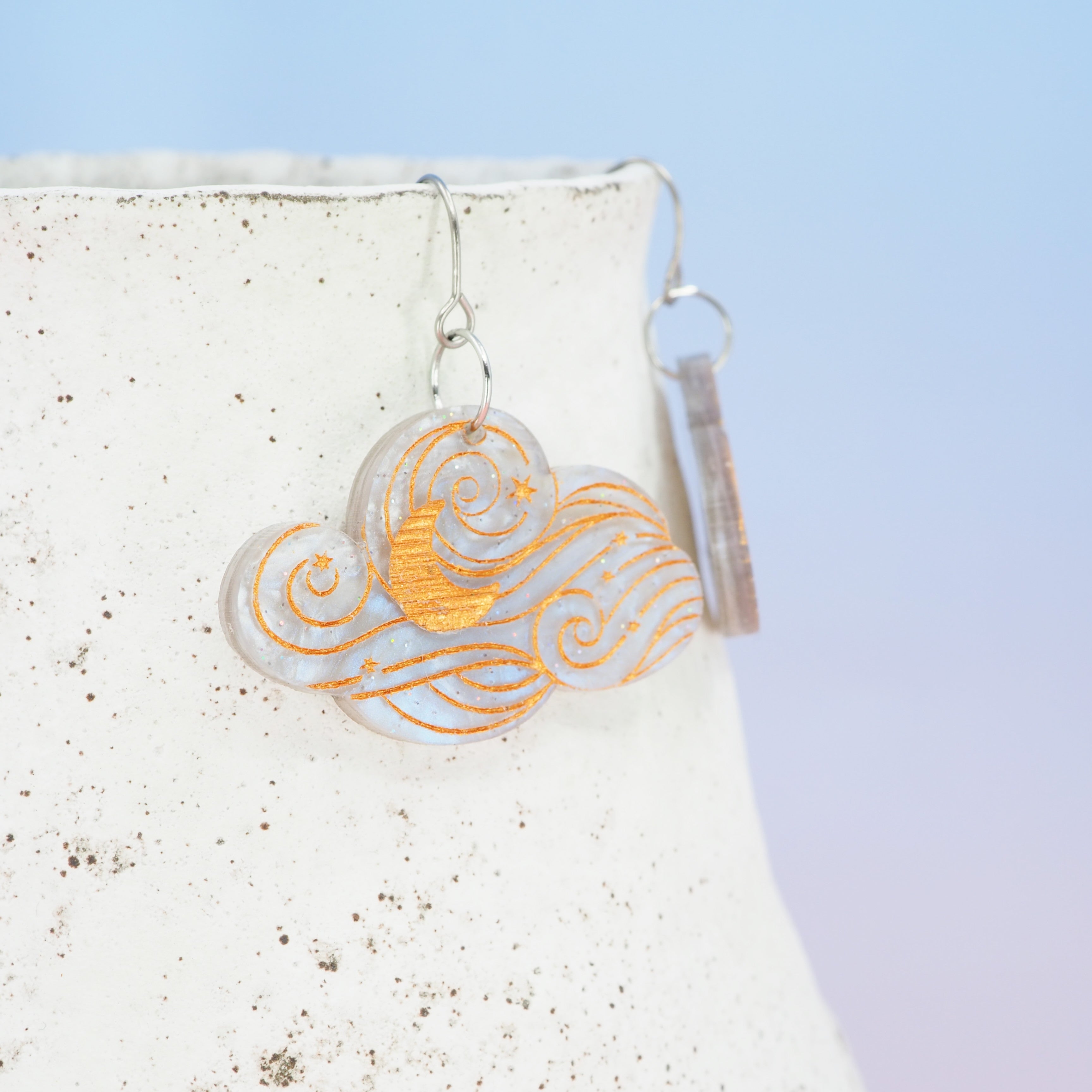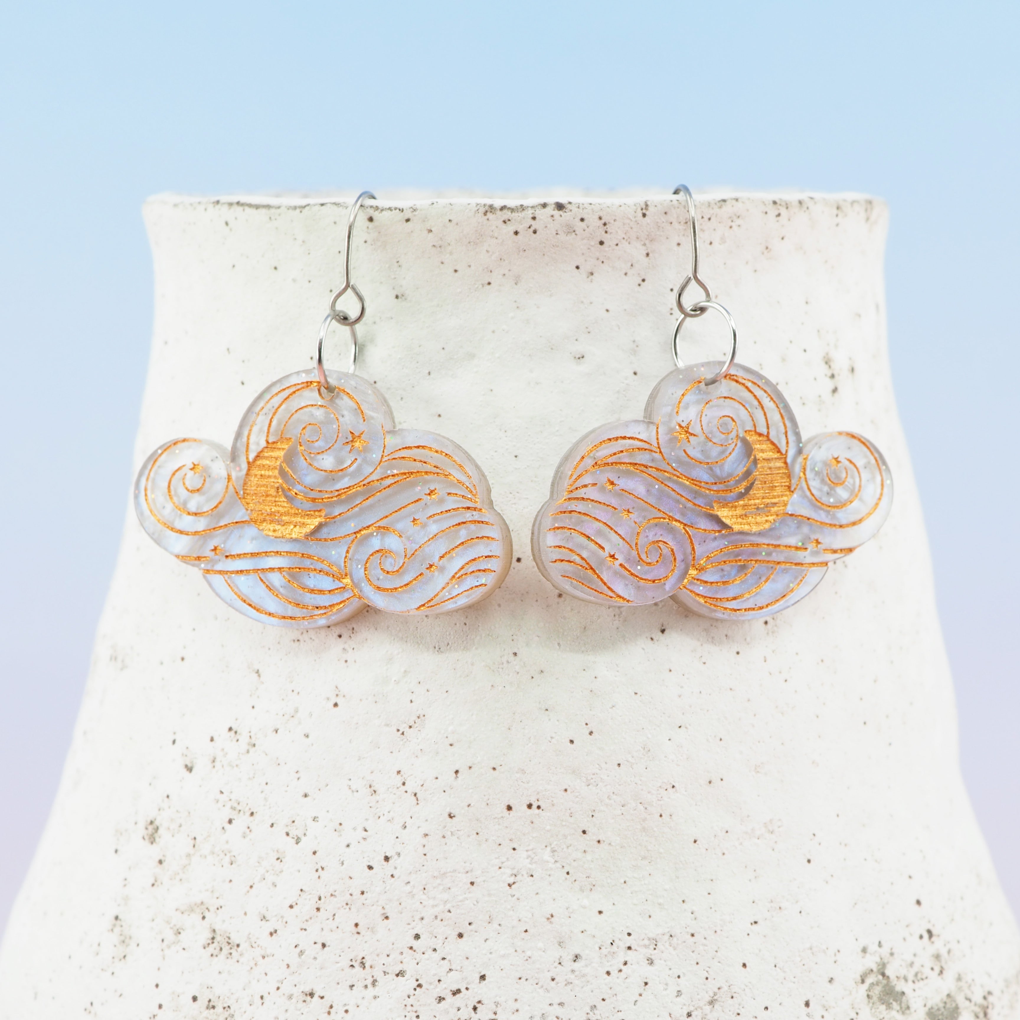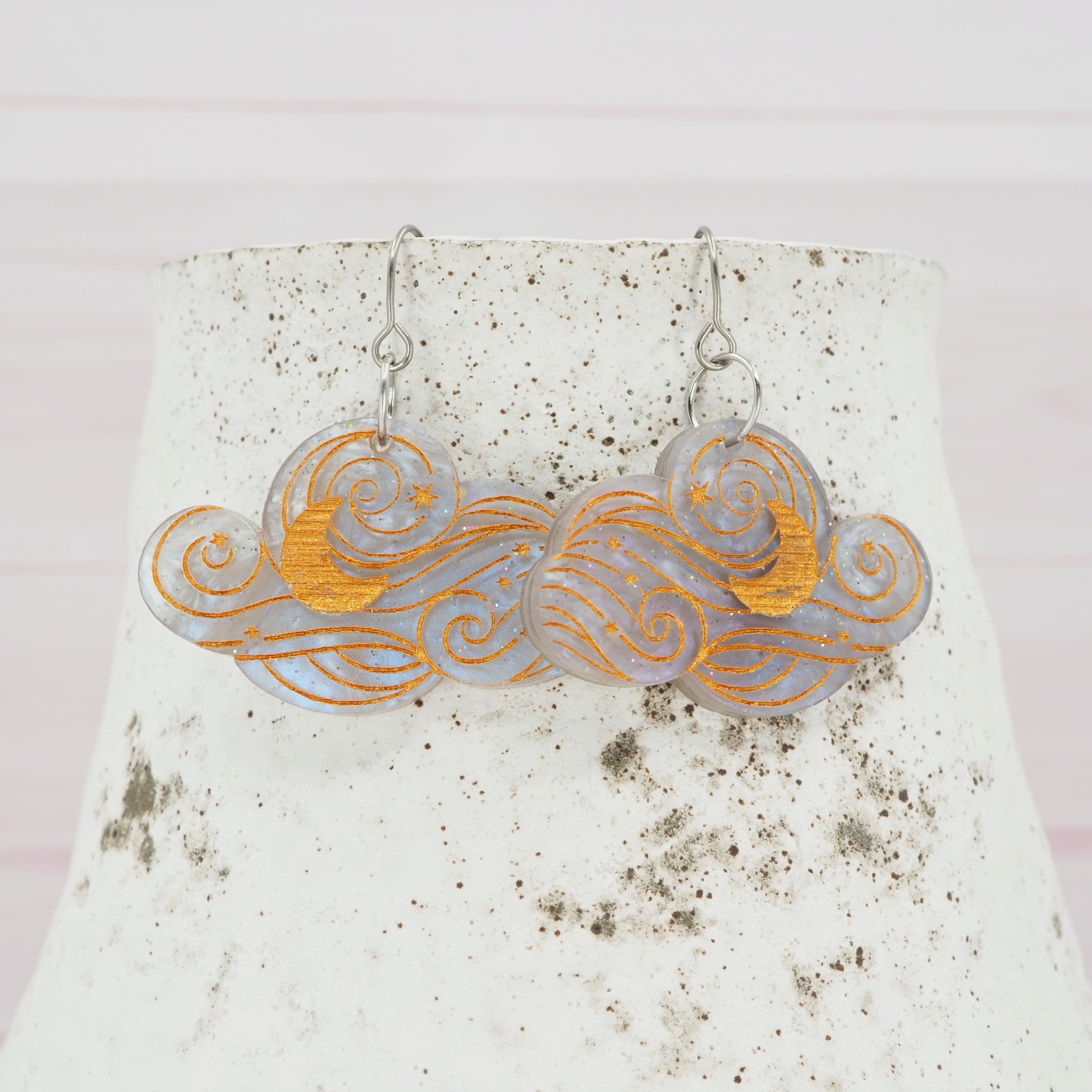 Grey galaxy celestial cloud dangle earrings