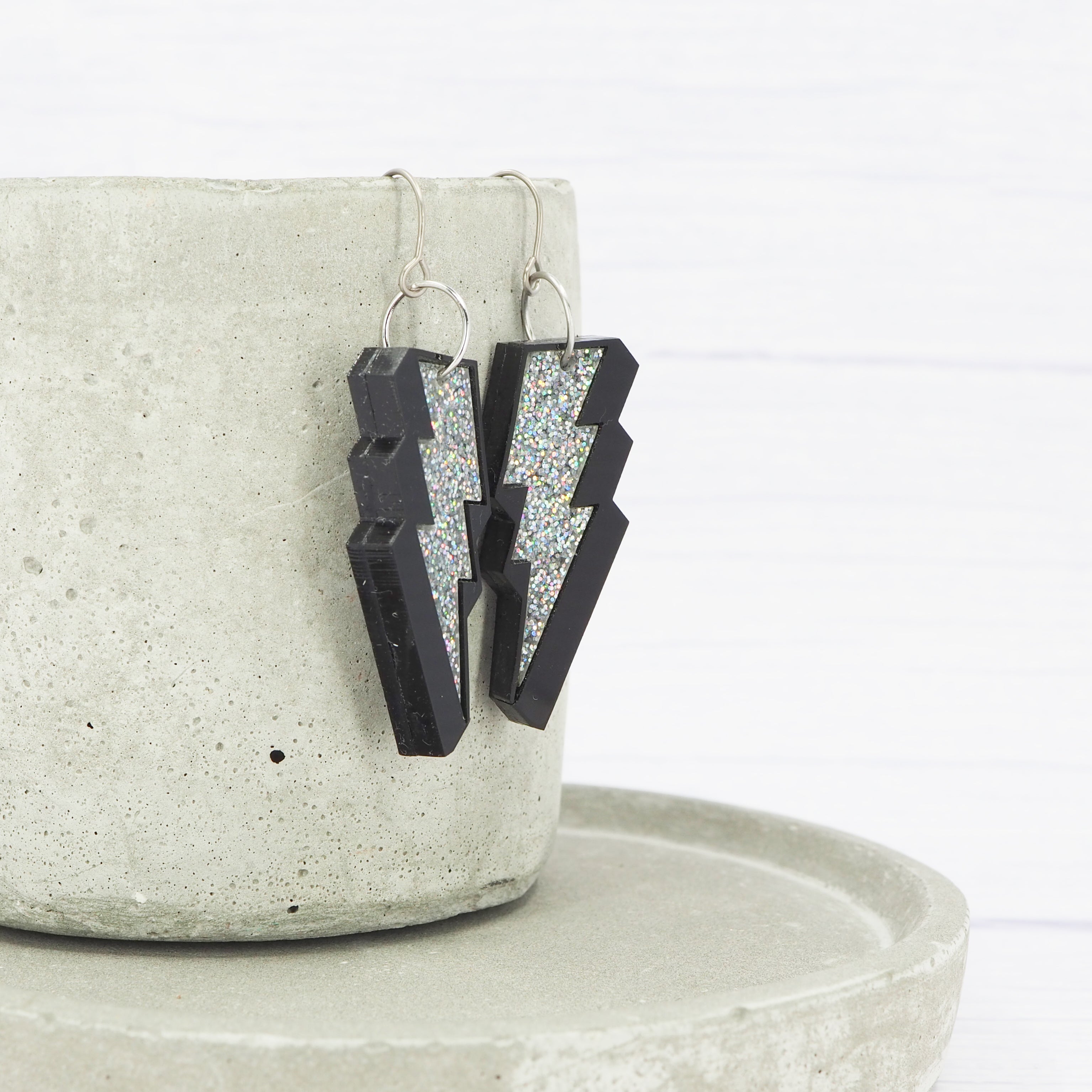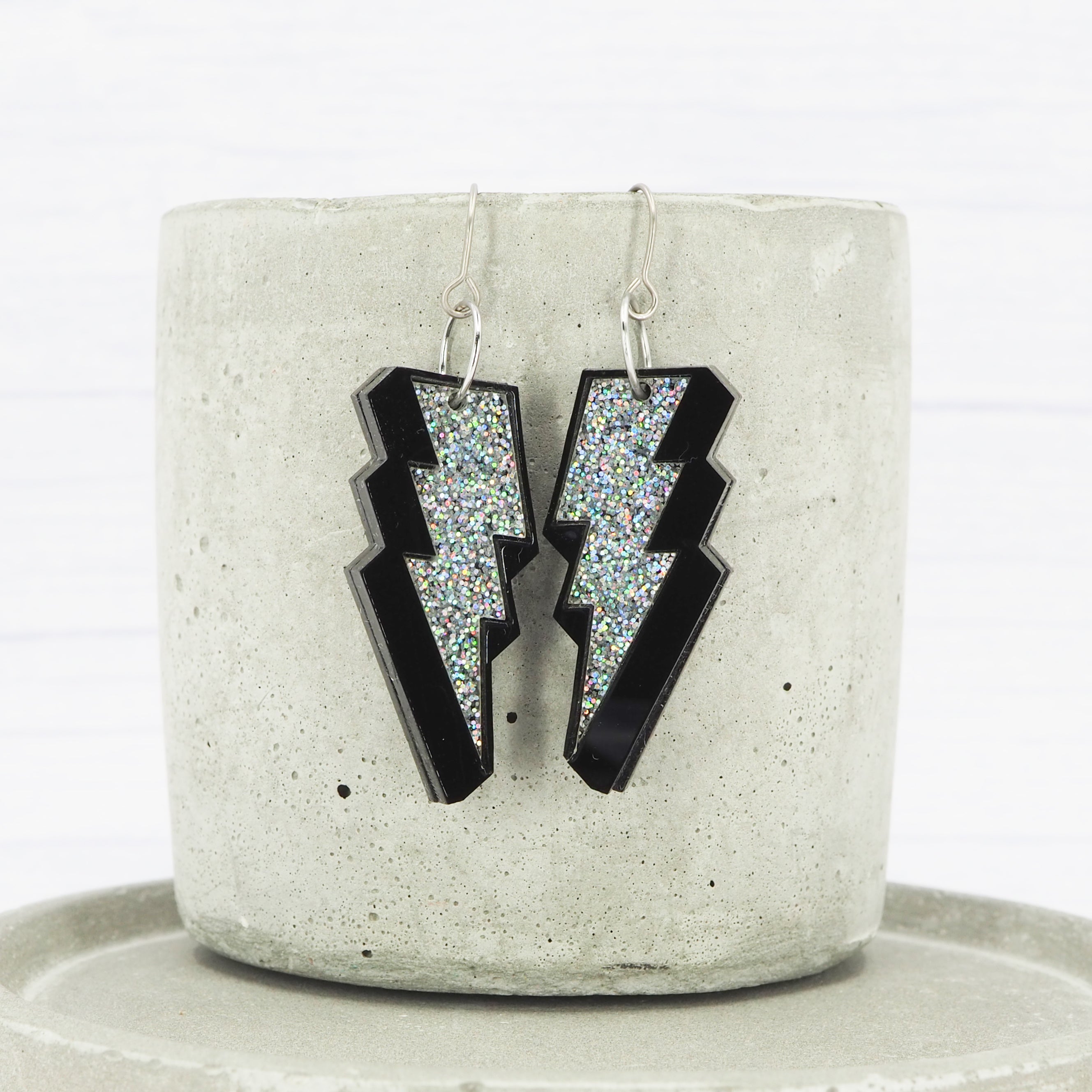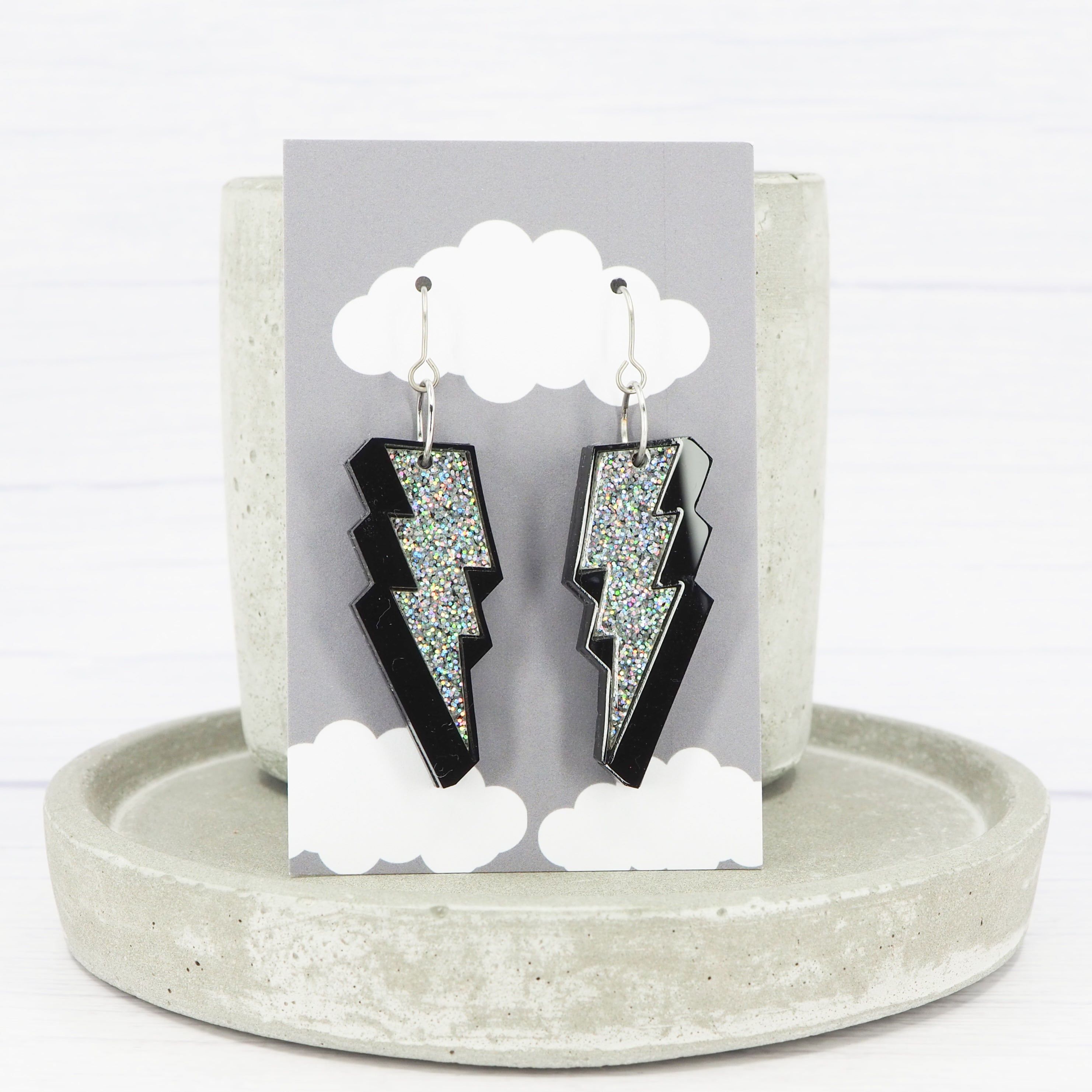 The earrings have a total drop length of 2.3" (6cm) from the top of the ear wire to the bottom of the bolts.