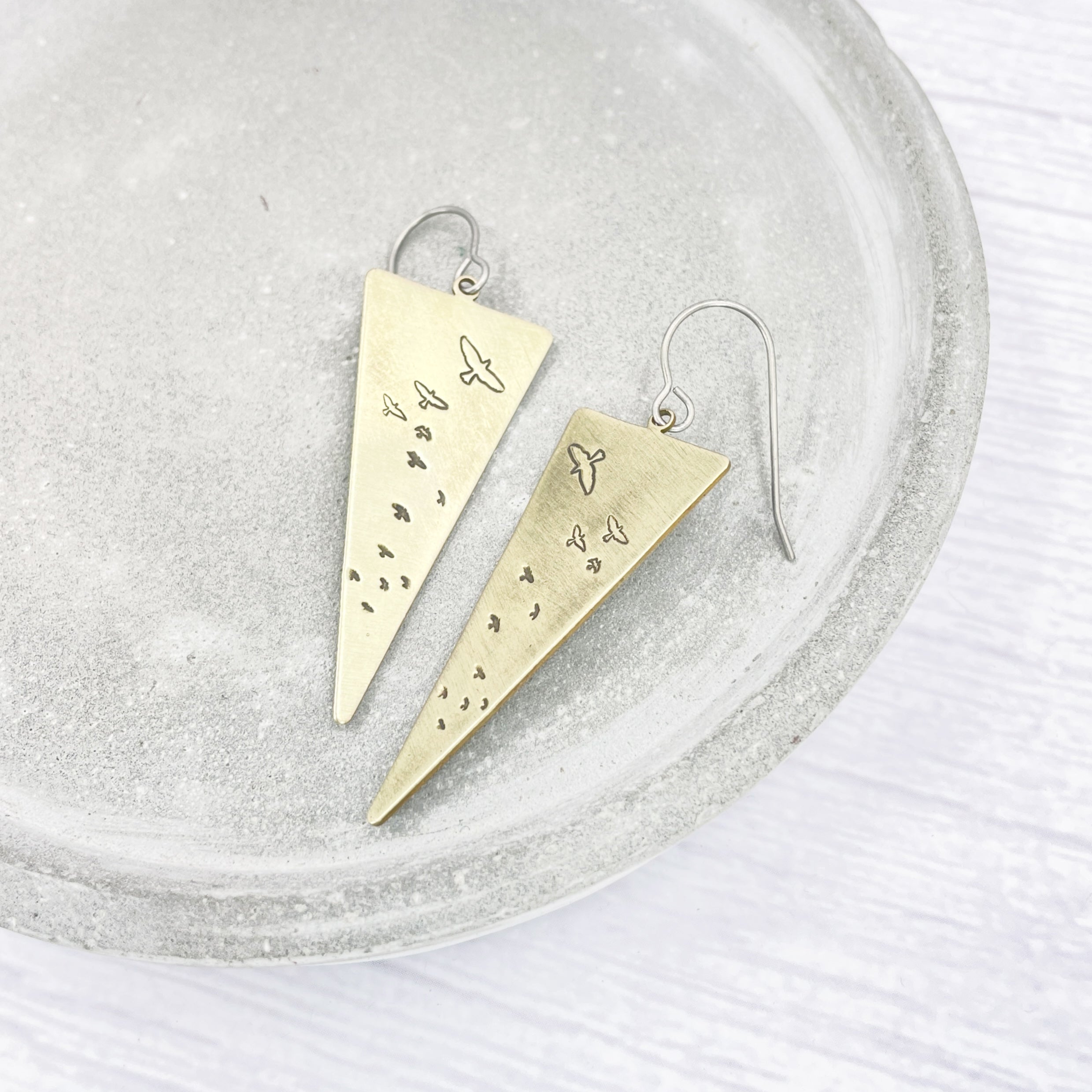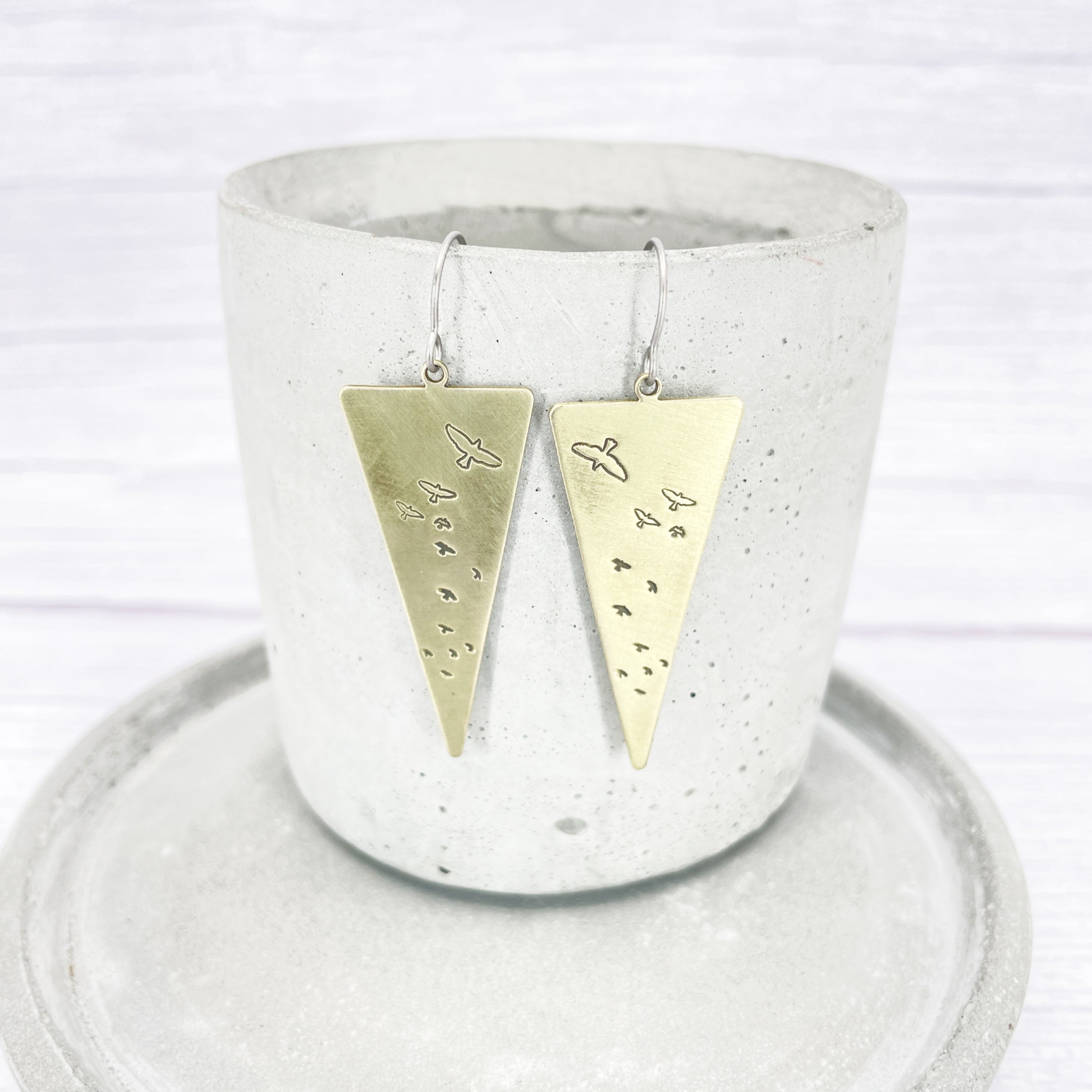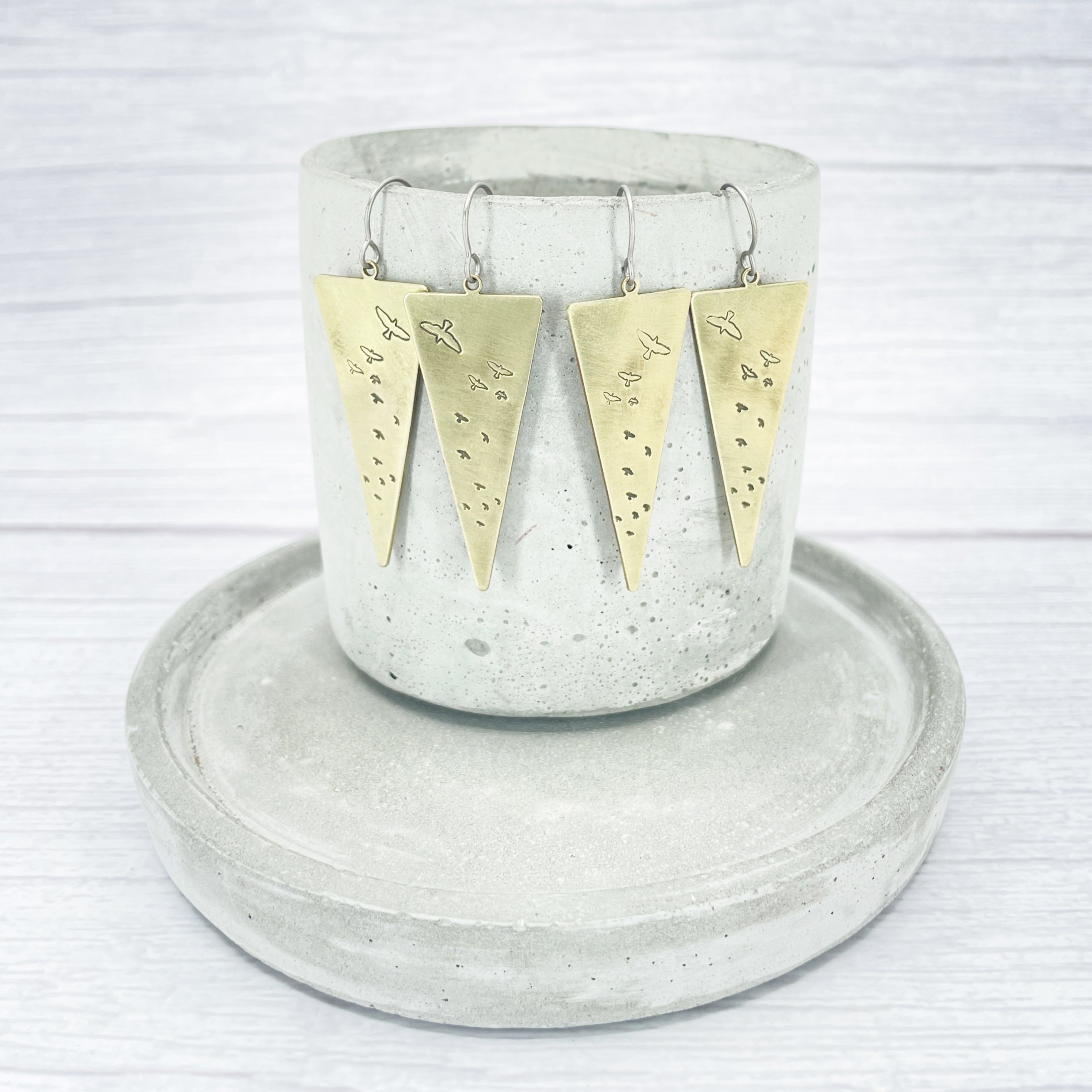and the earrings have a total drop length of 2.1" (5.3cm) from the top of the ear wire to the bottom of the arrows.