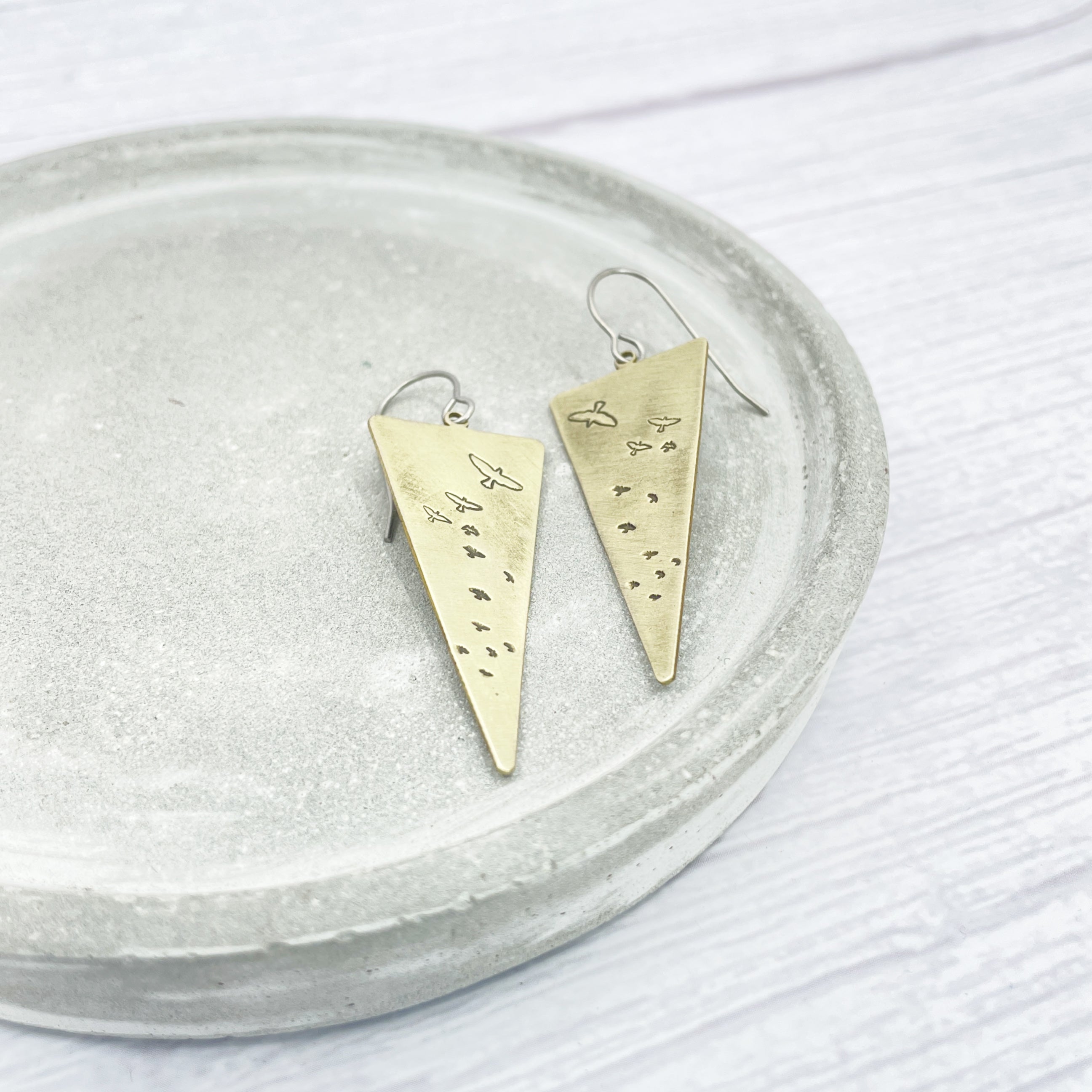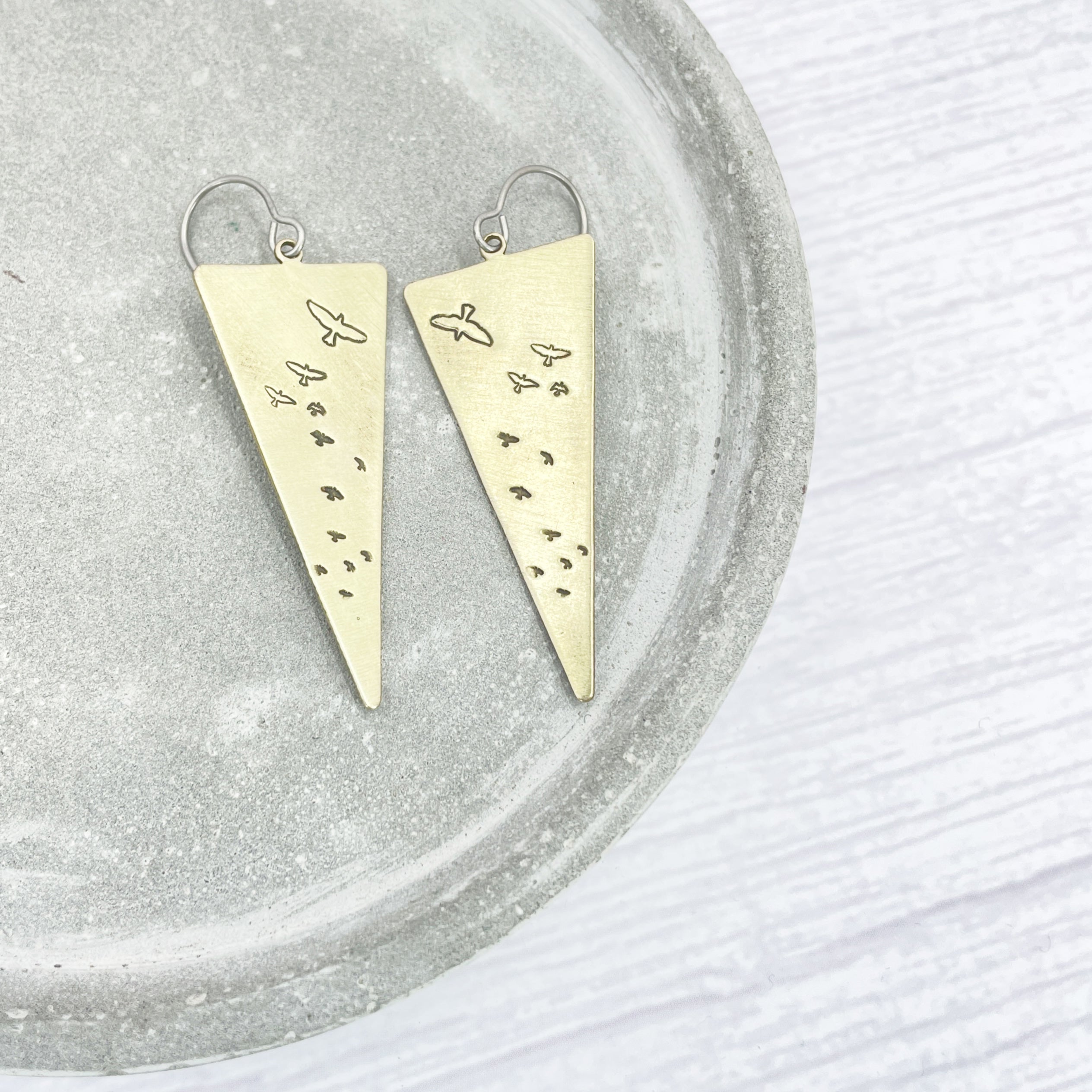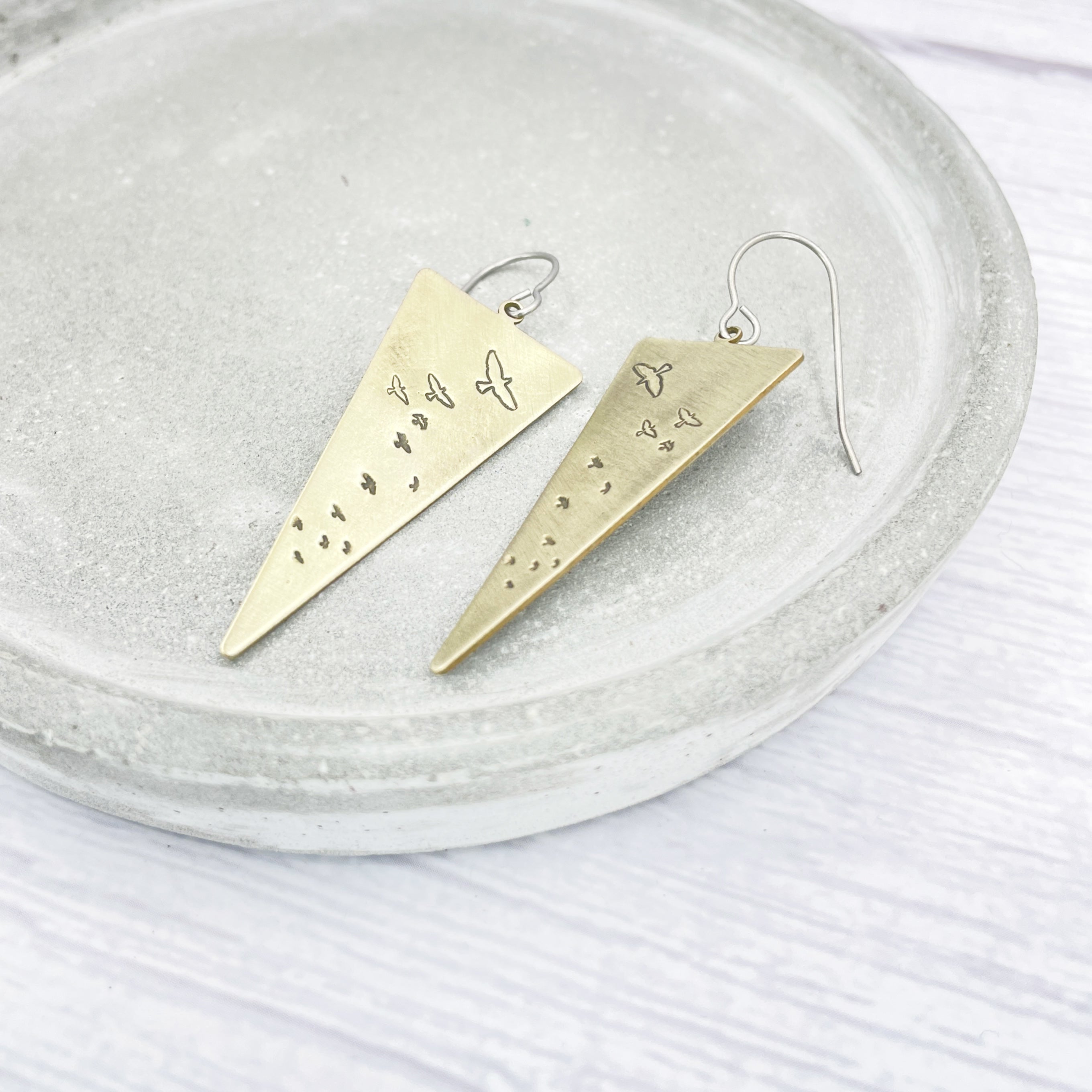 and the earrings have a total drop length of 2.1" (5.3cm) from the top of the ear wire to the bottom of the arrows.
