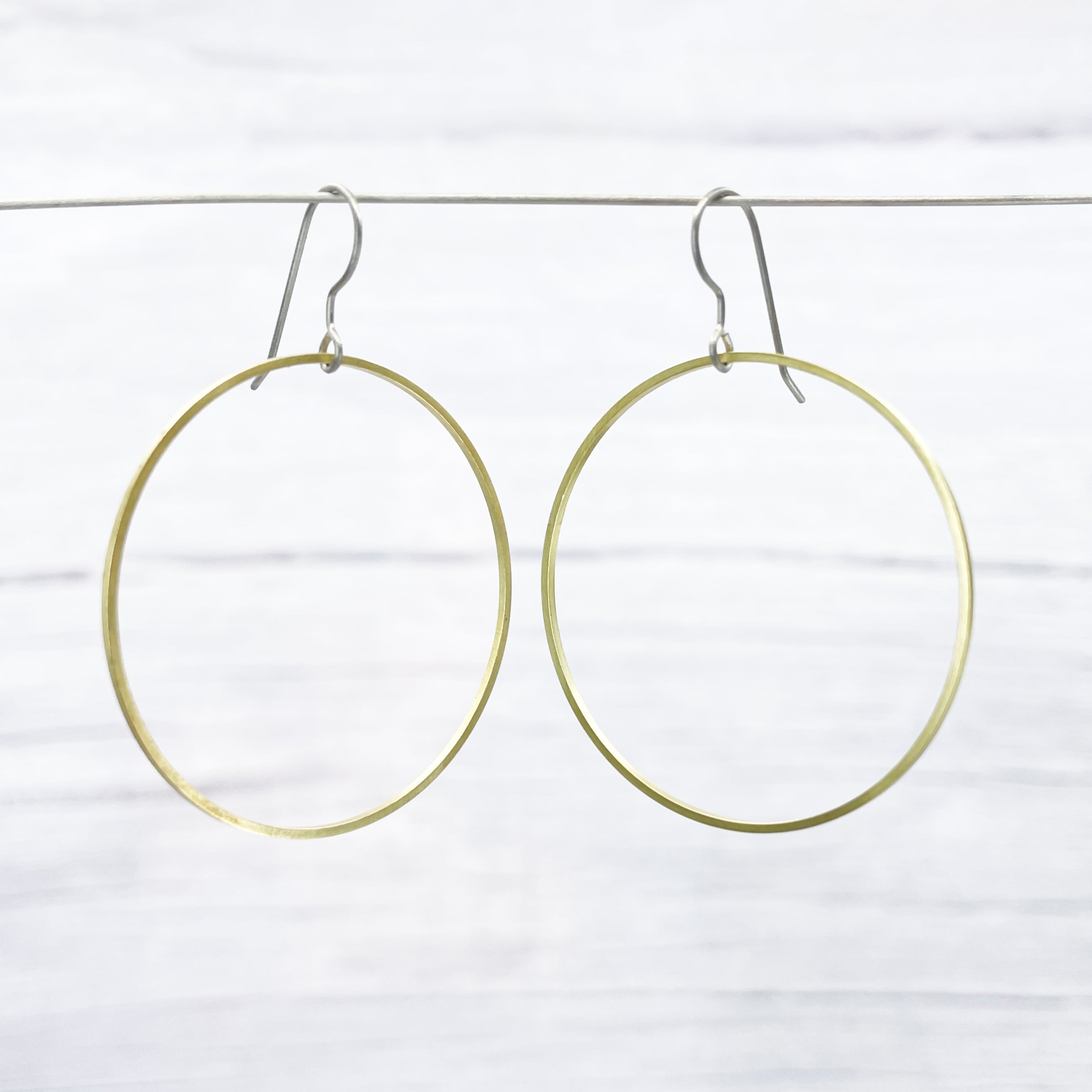 Large Brass ring dangle earrings. Great for all occasions.