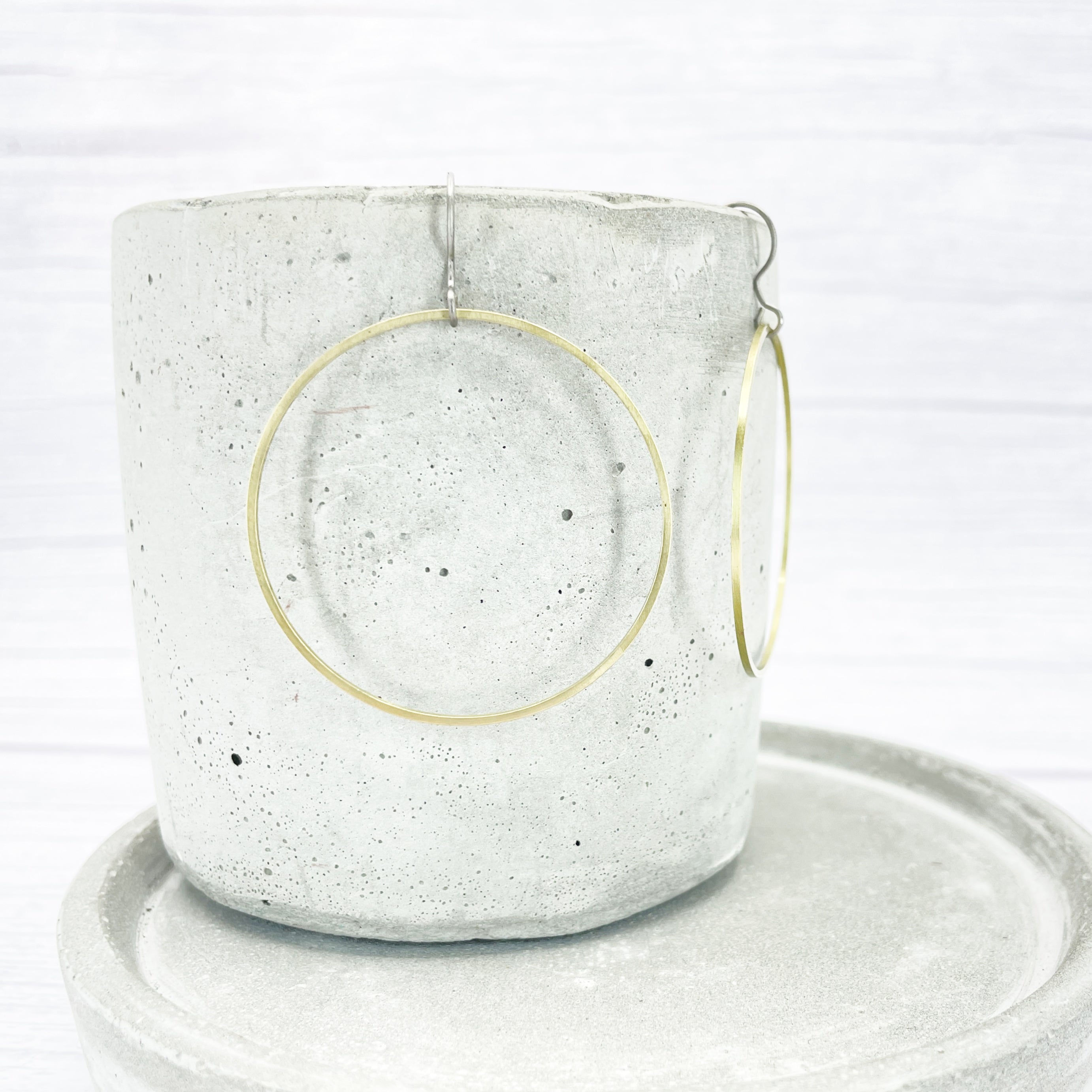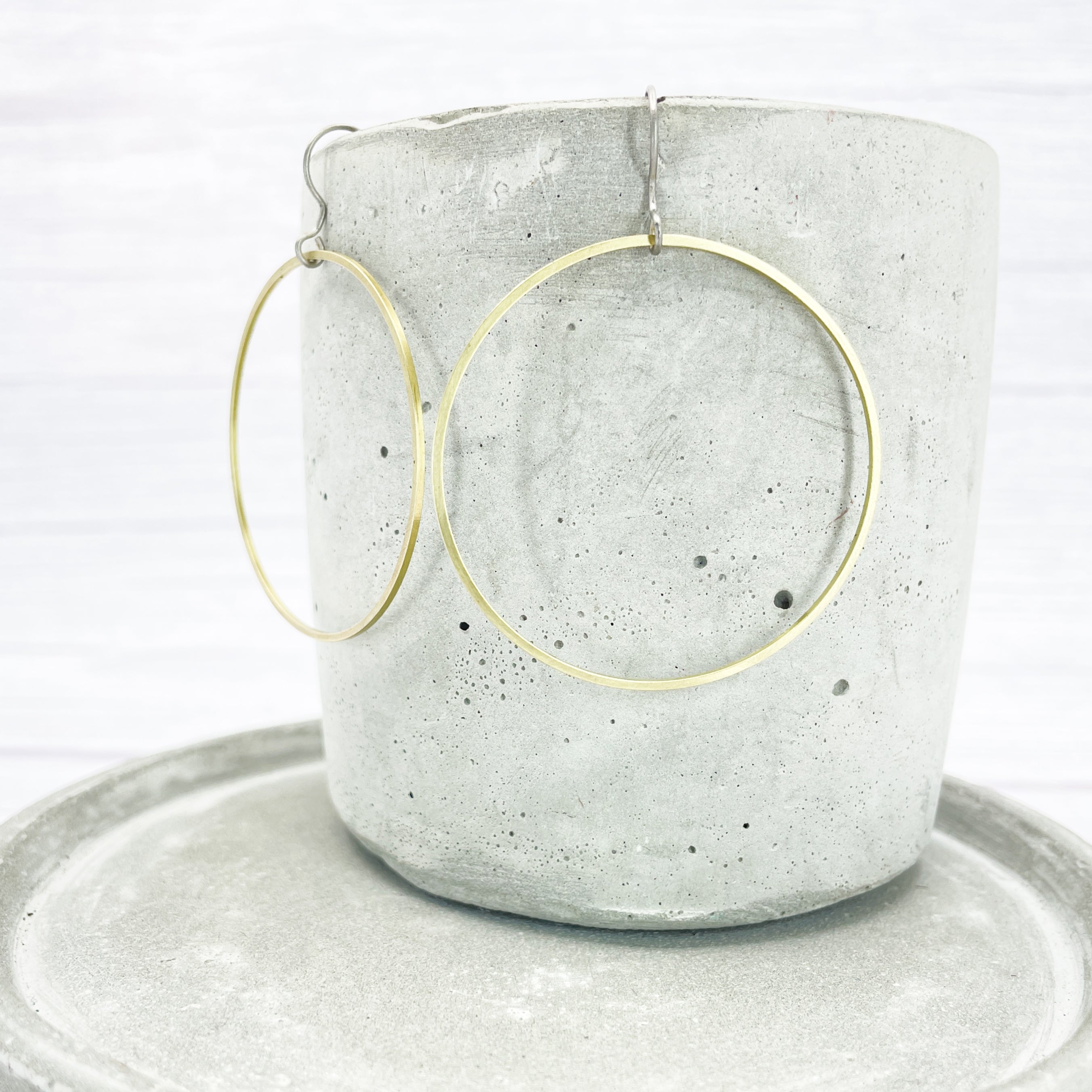 Large brass ring dangle earrings