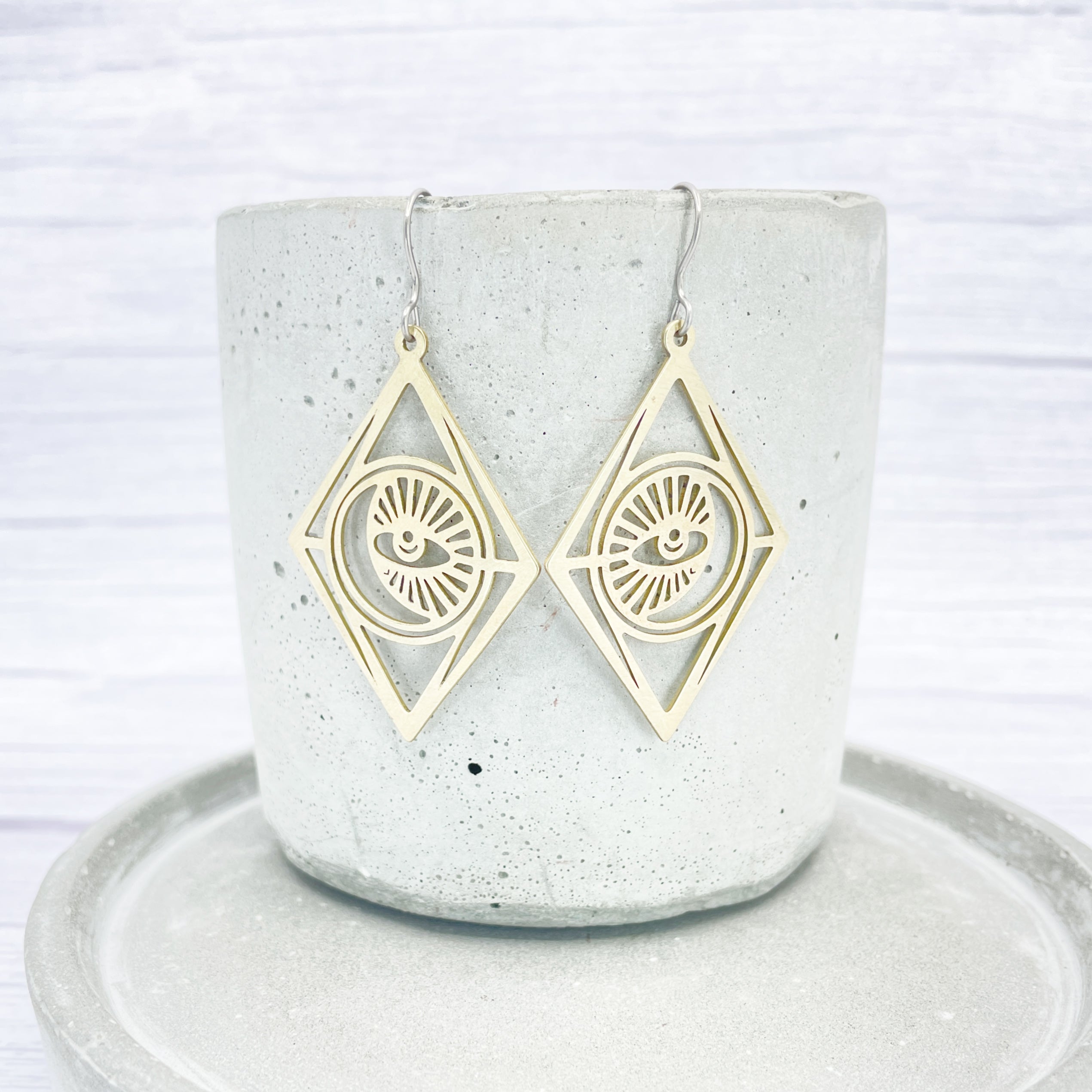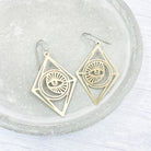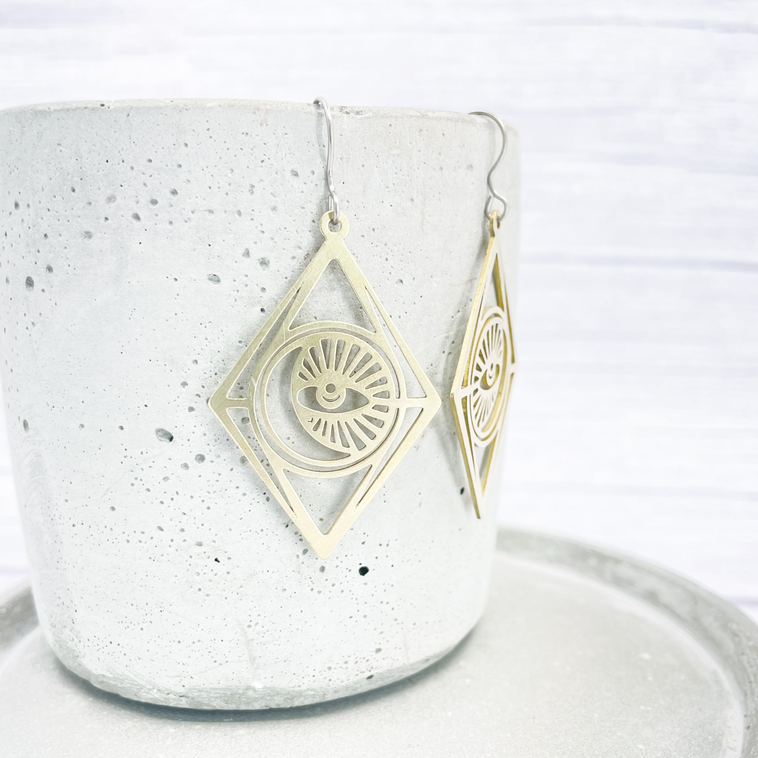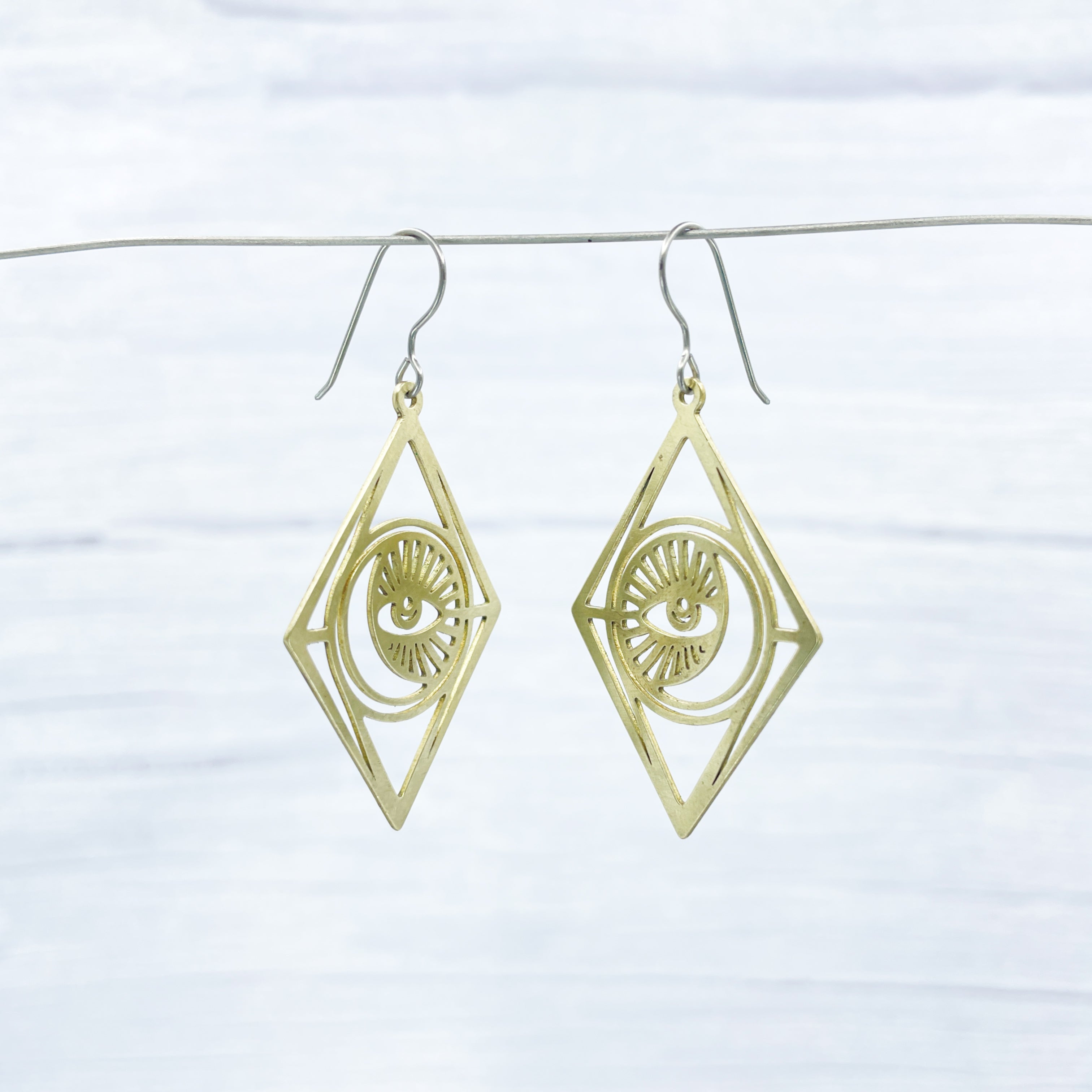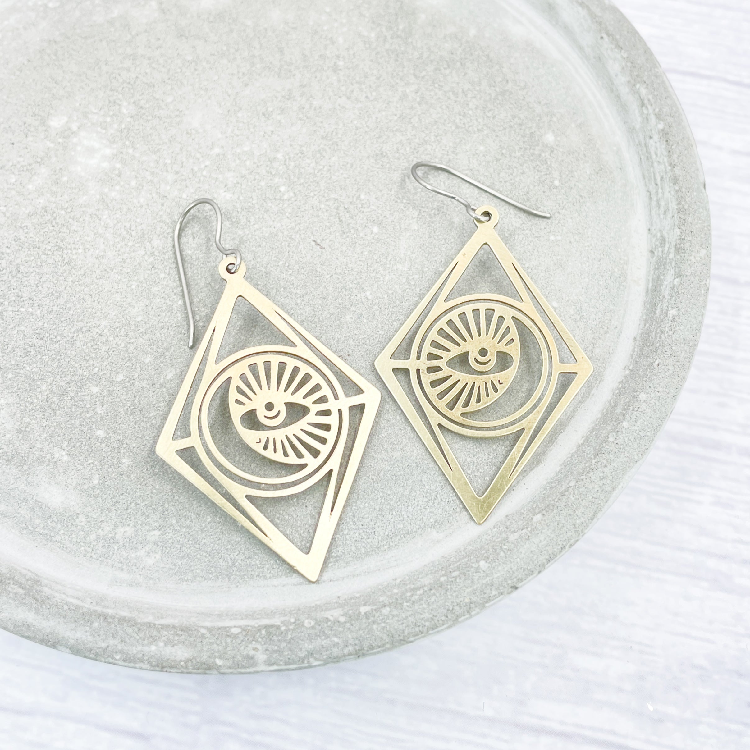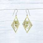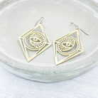 Brass large moon and eye, Mystic dangle earrings
