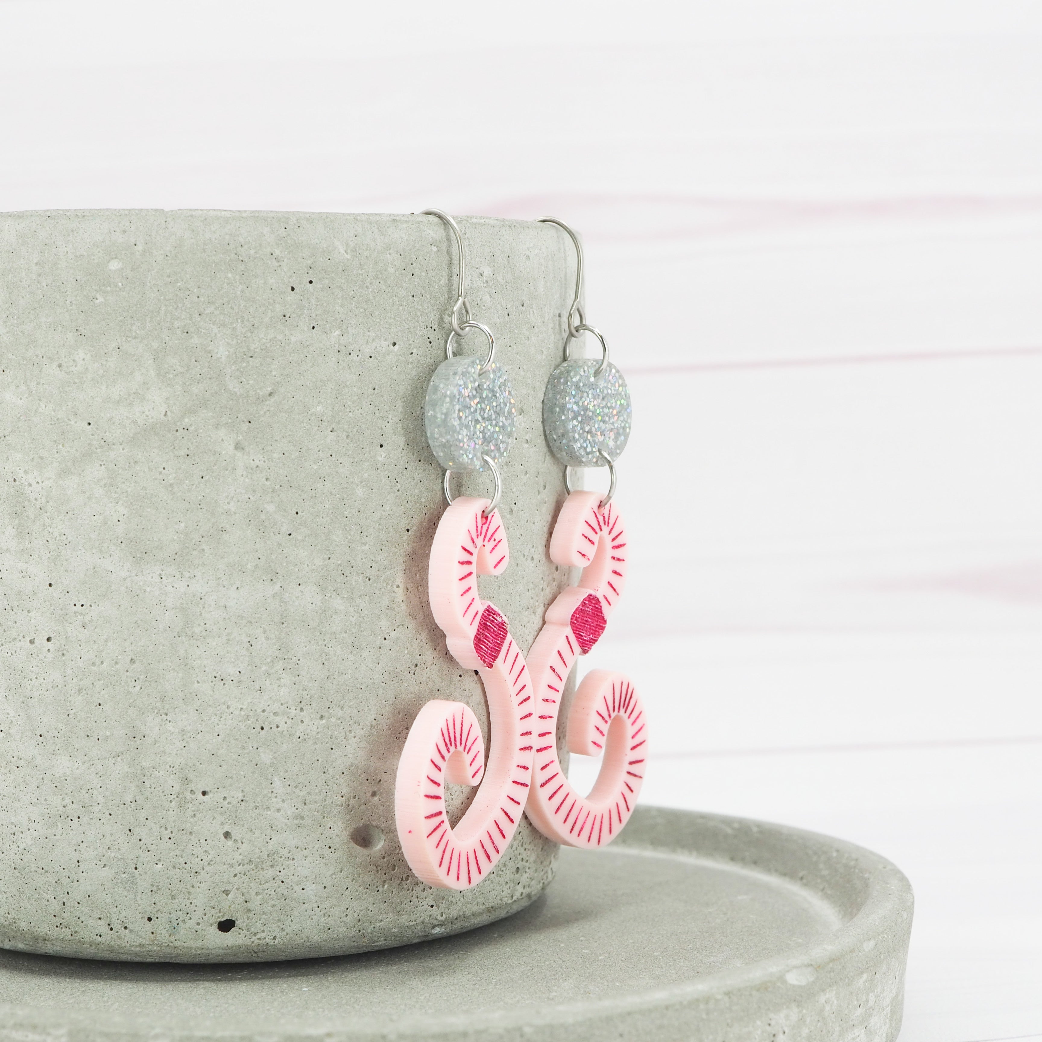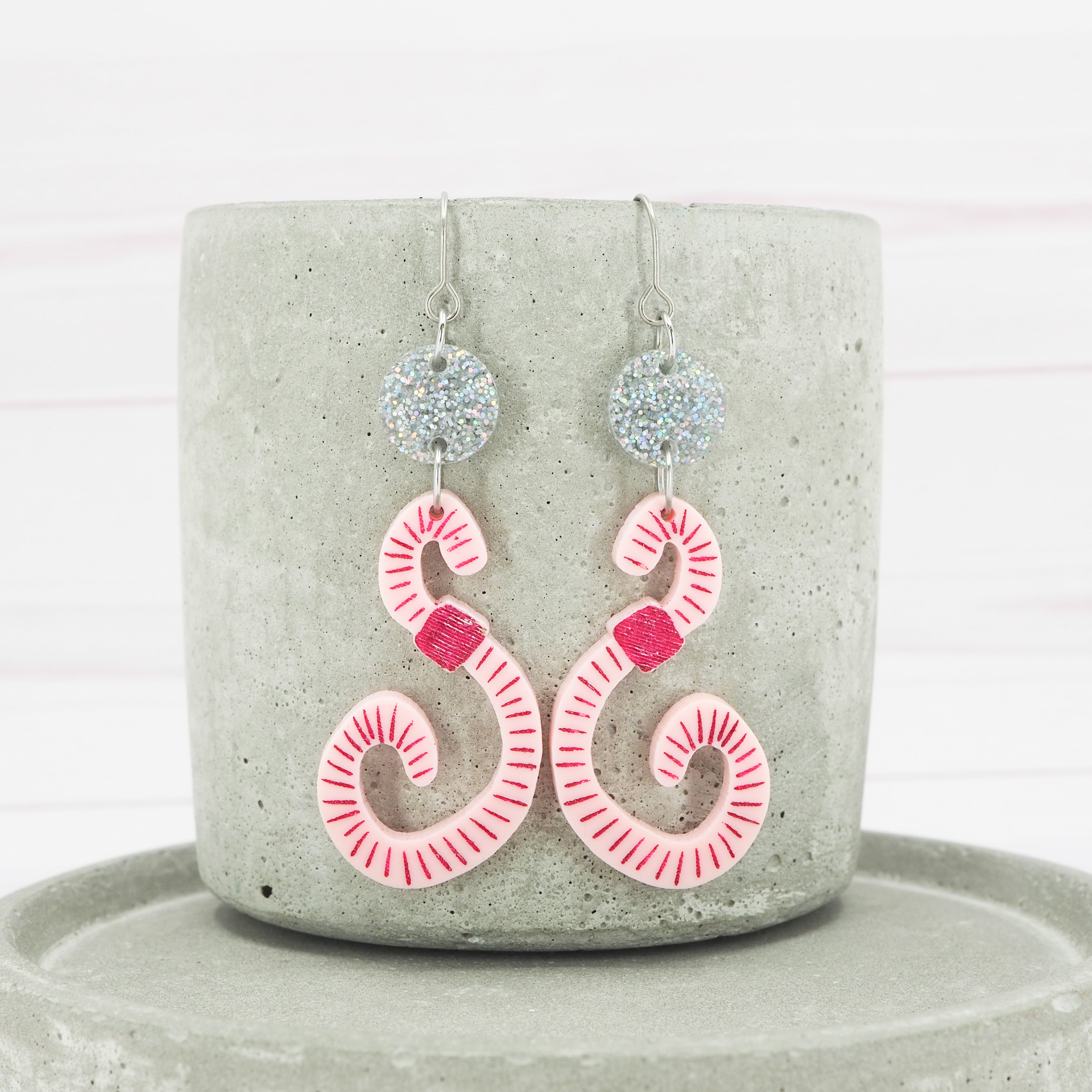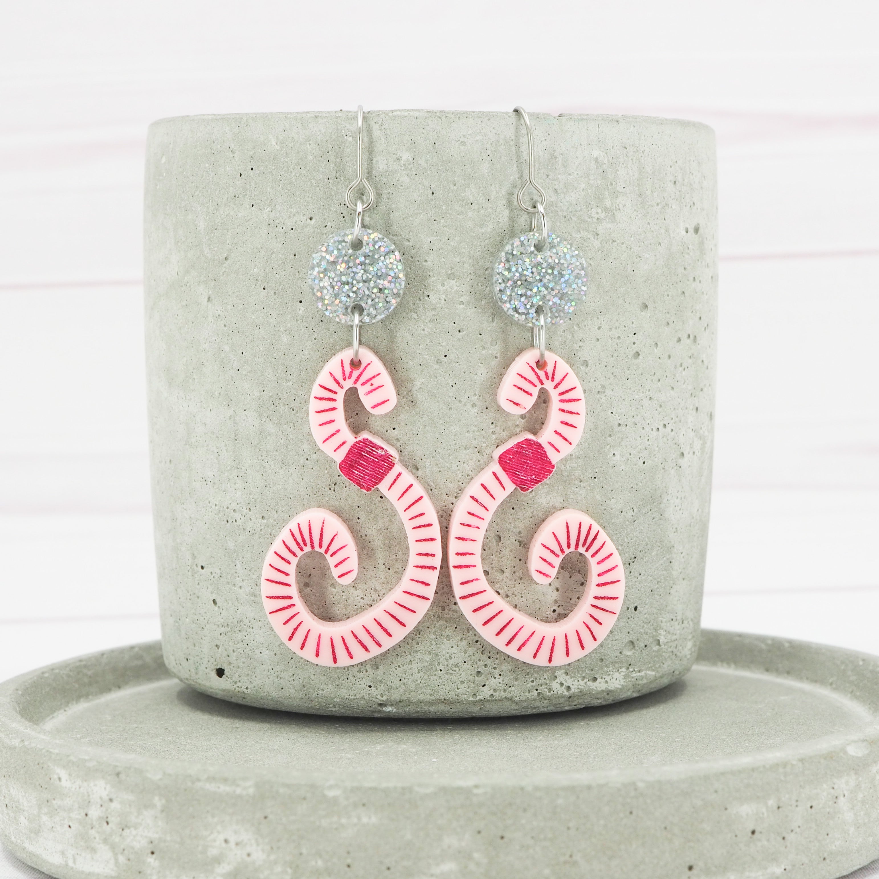 Light Pink acrylic Worm dangle earrings