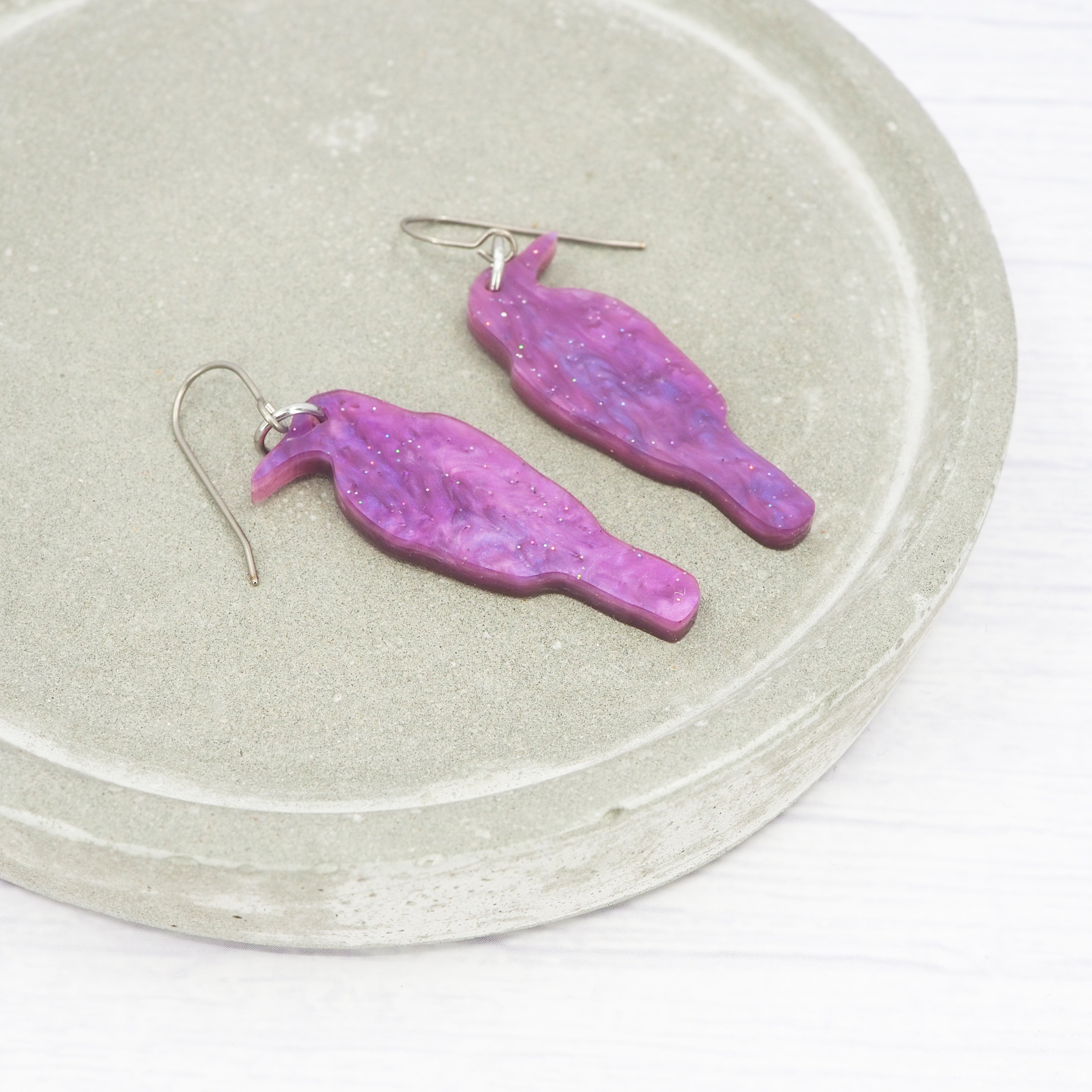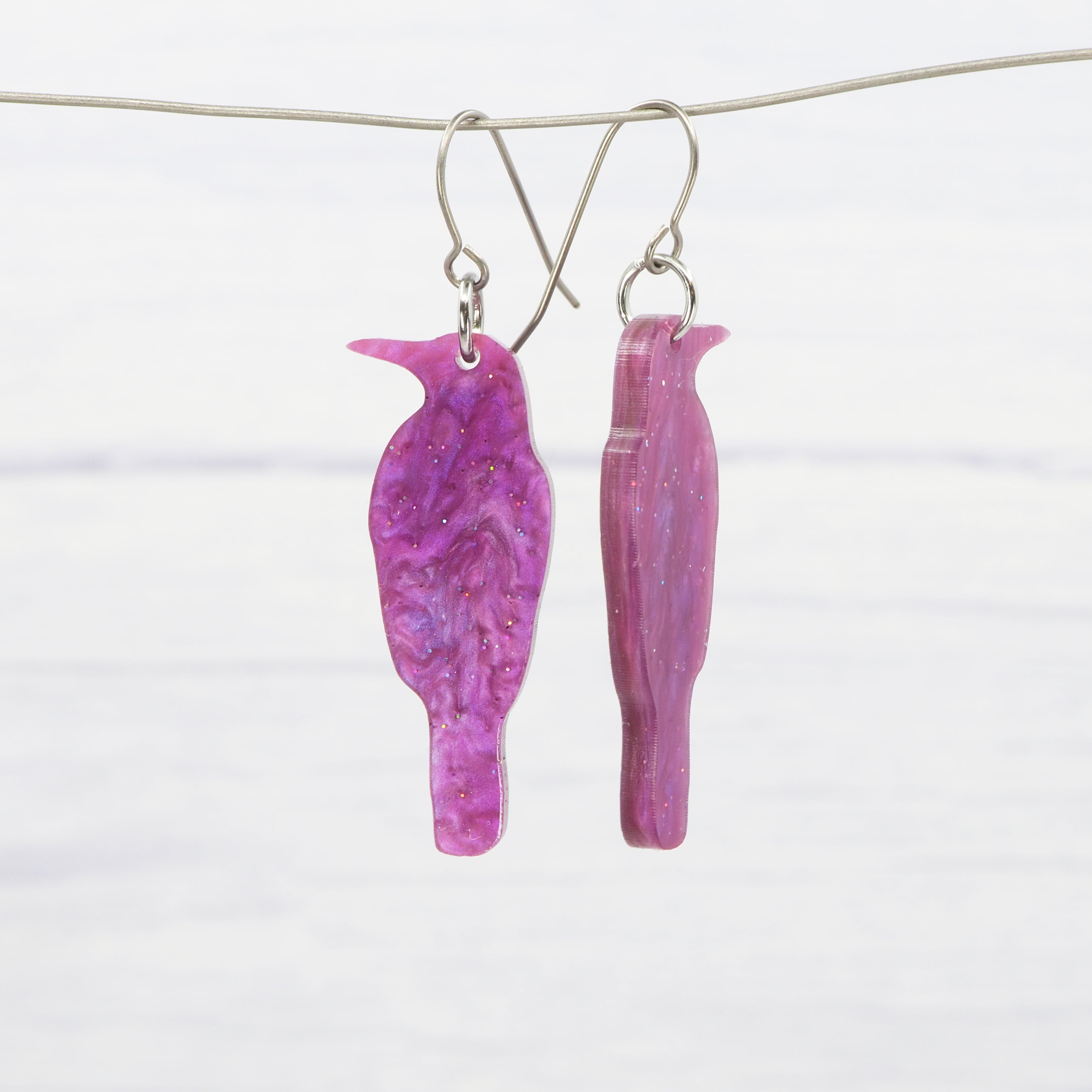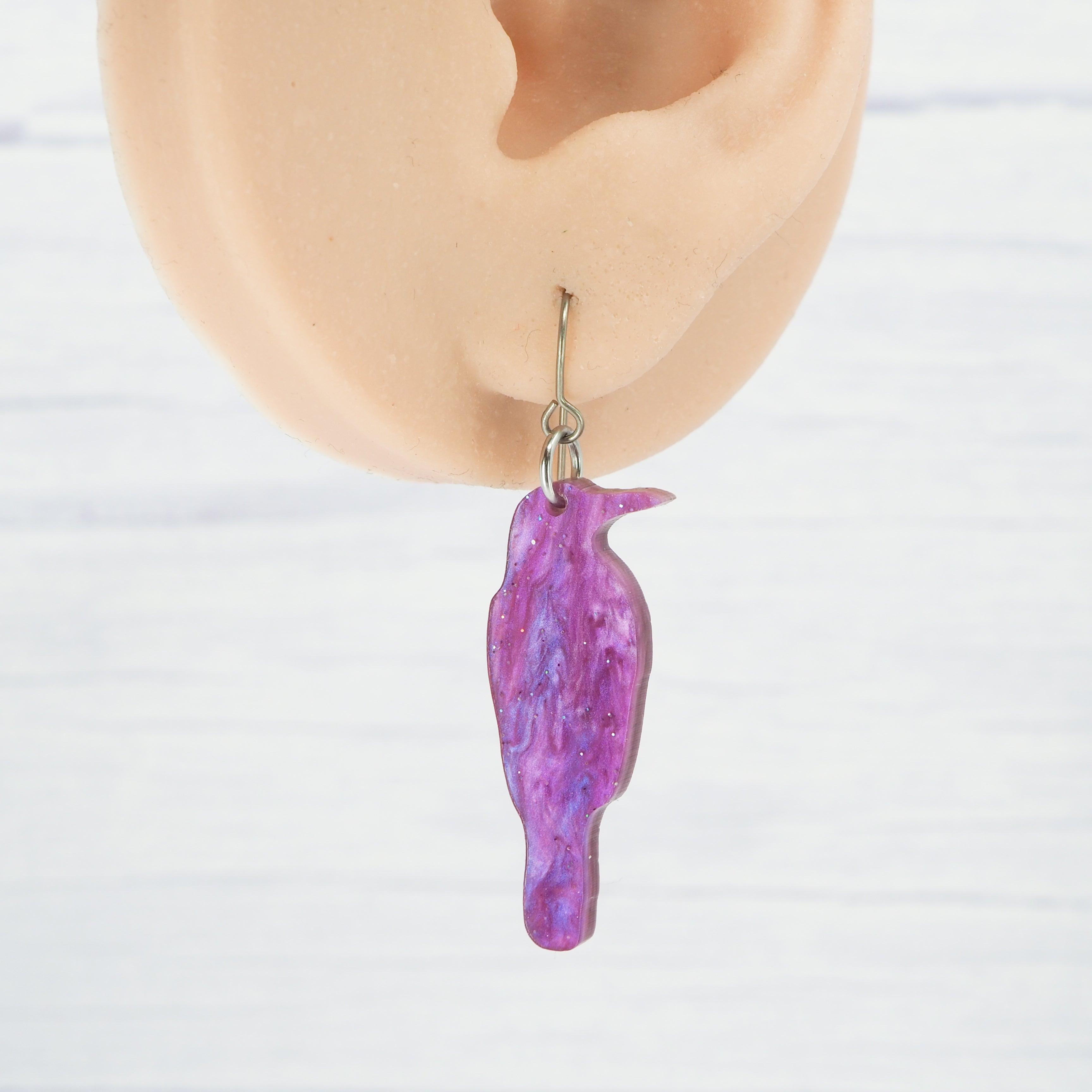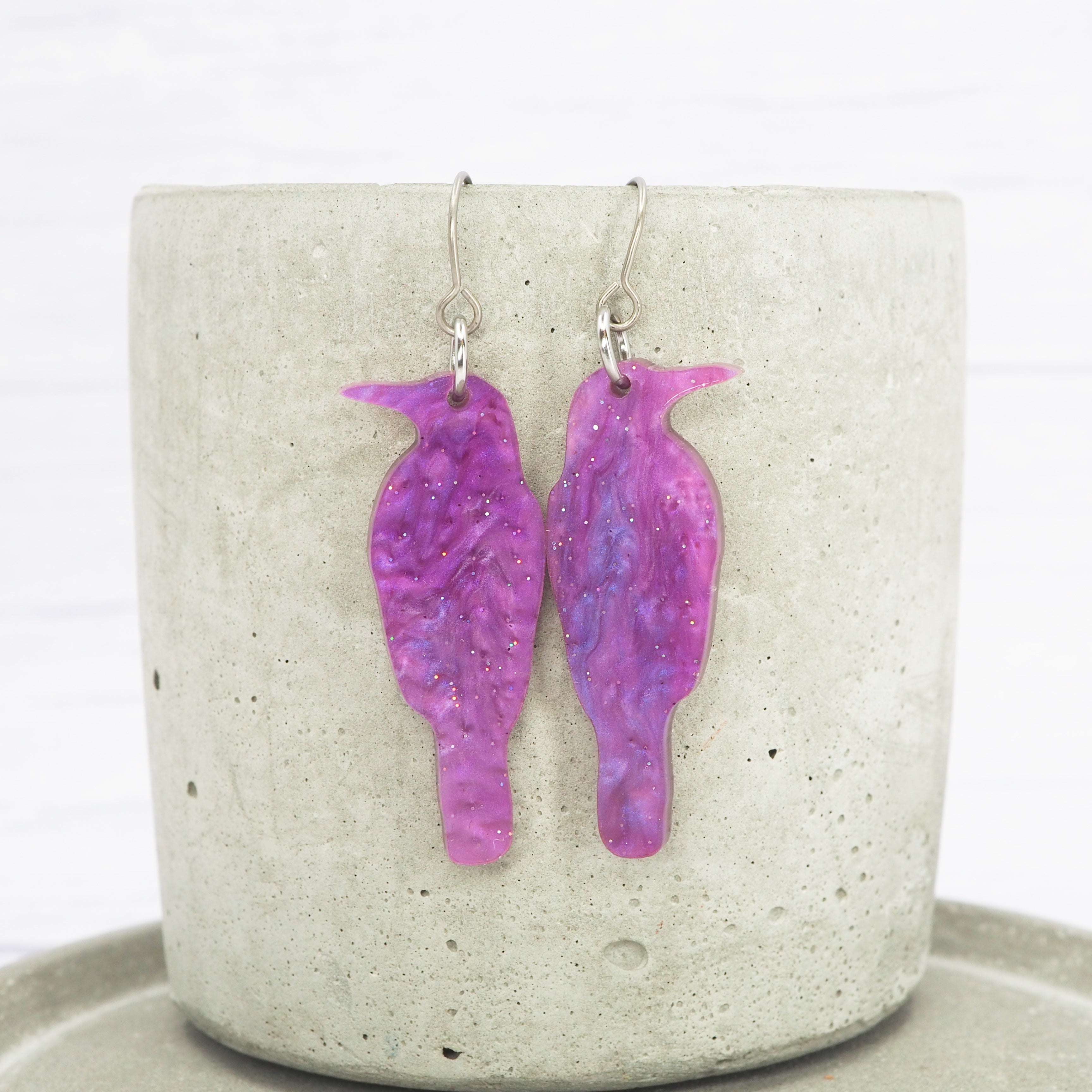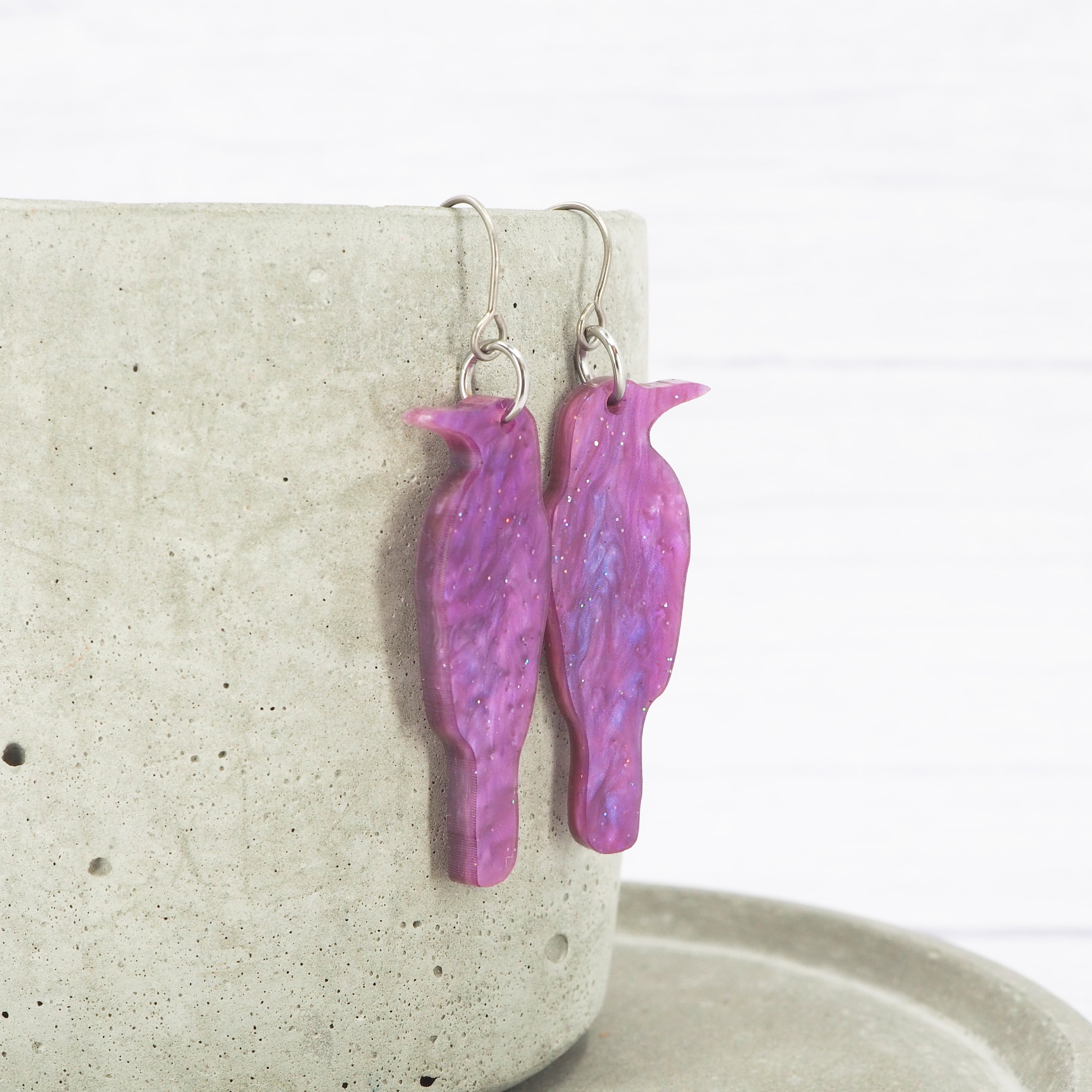 Light purple galaxy crow acrylic dangle earrings
