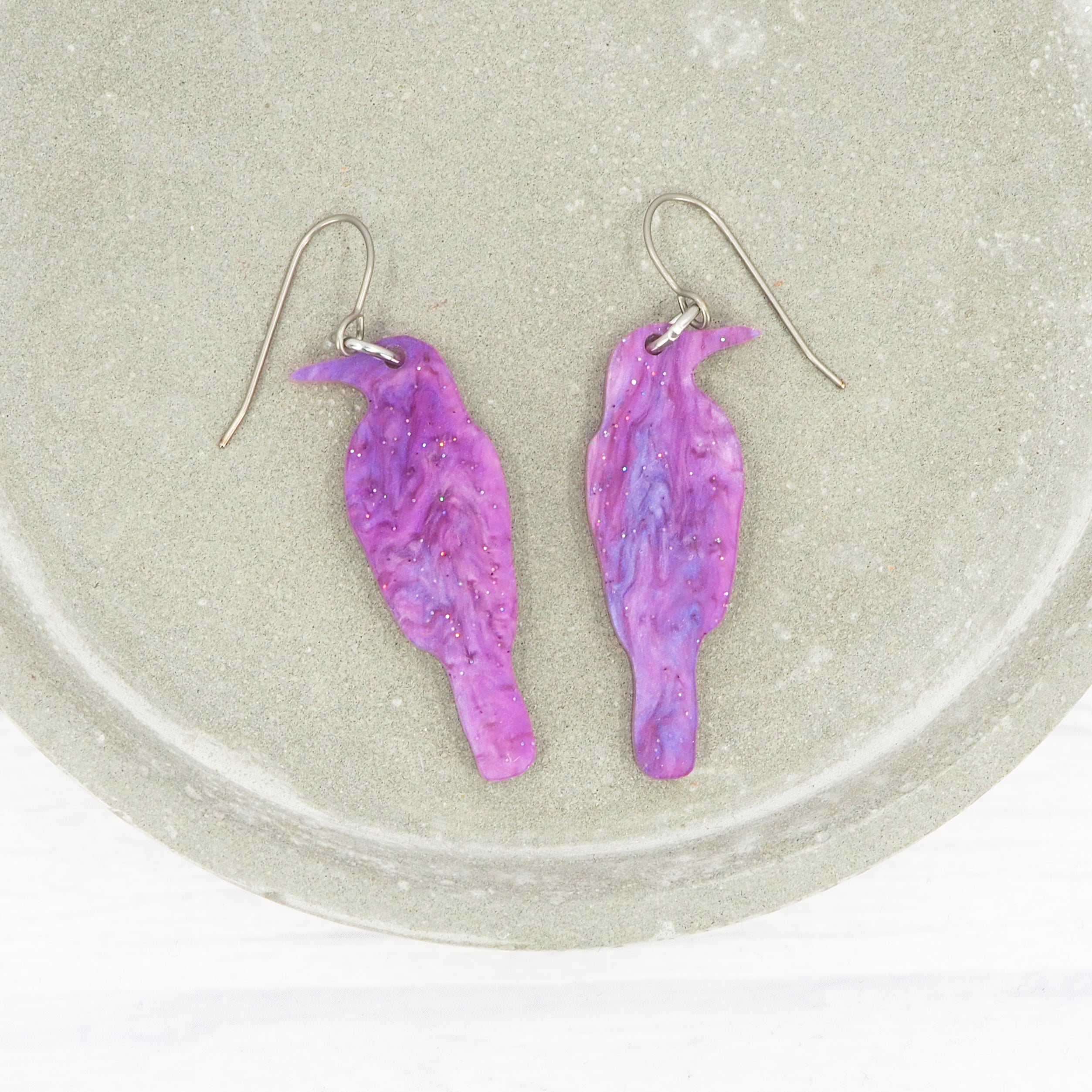 Light purple galaxy crow dangle earrings