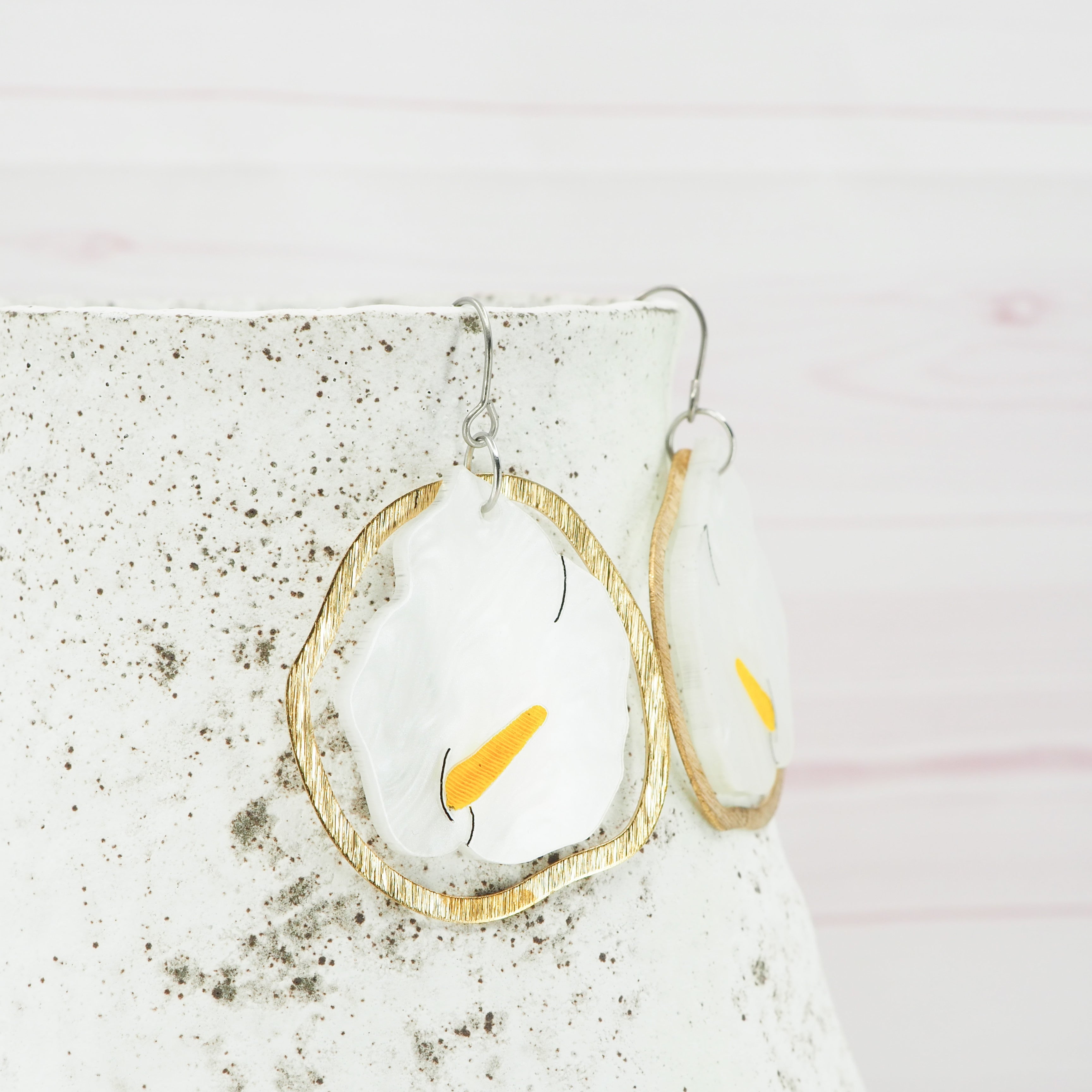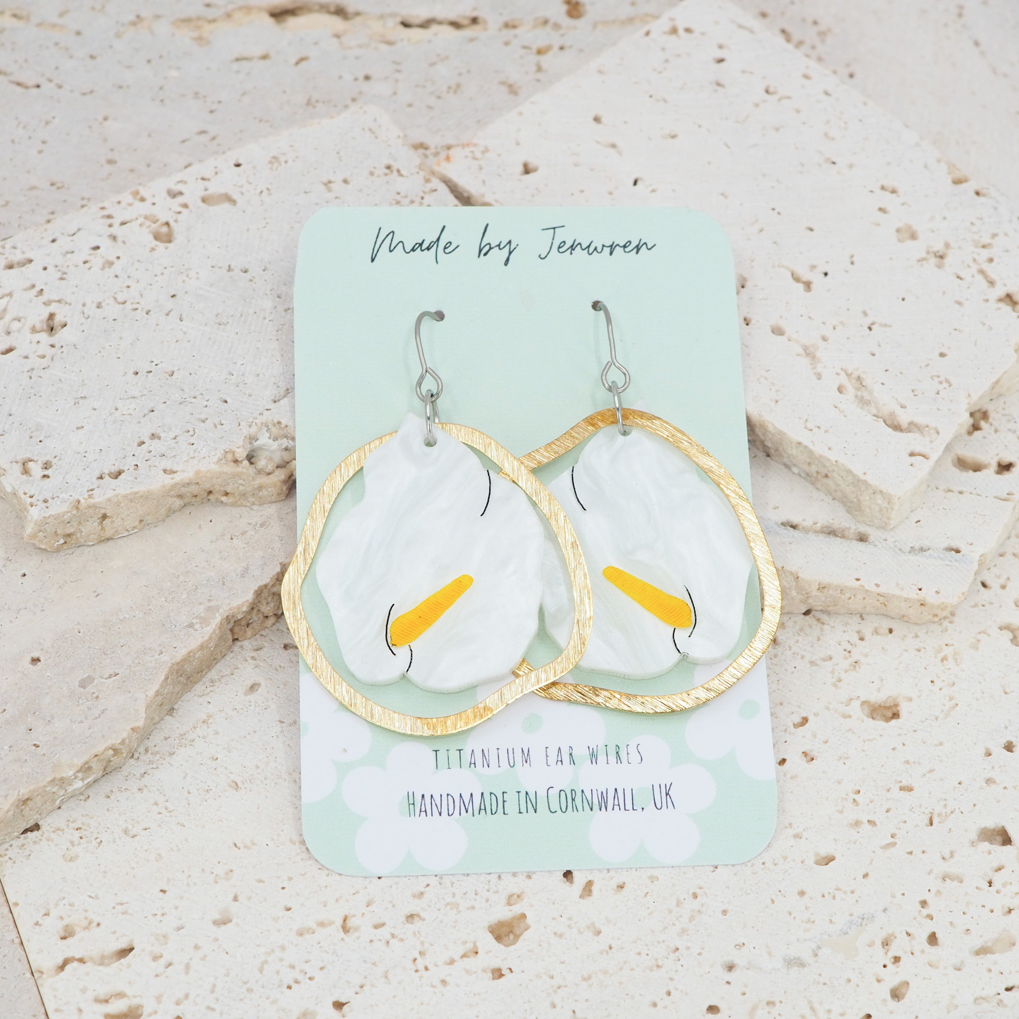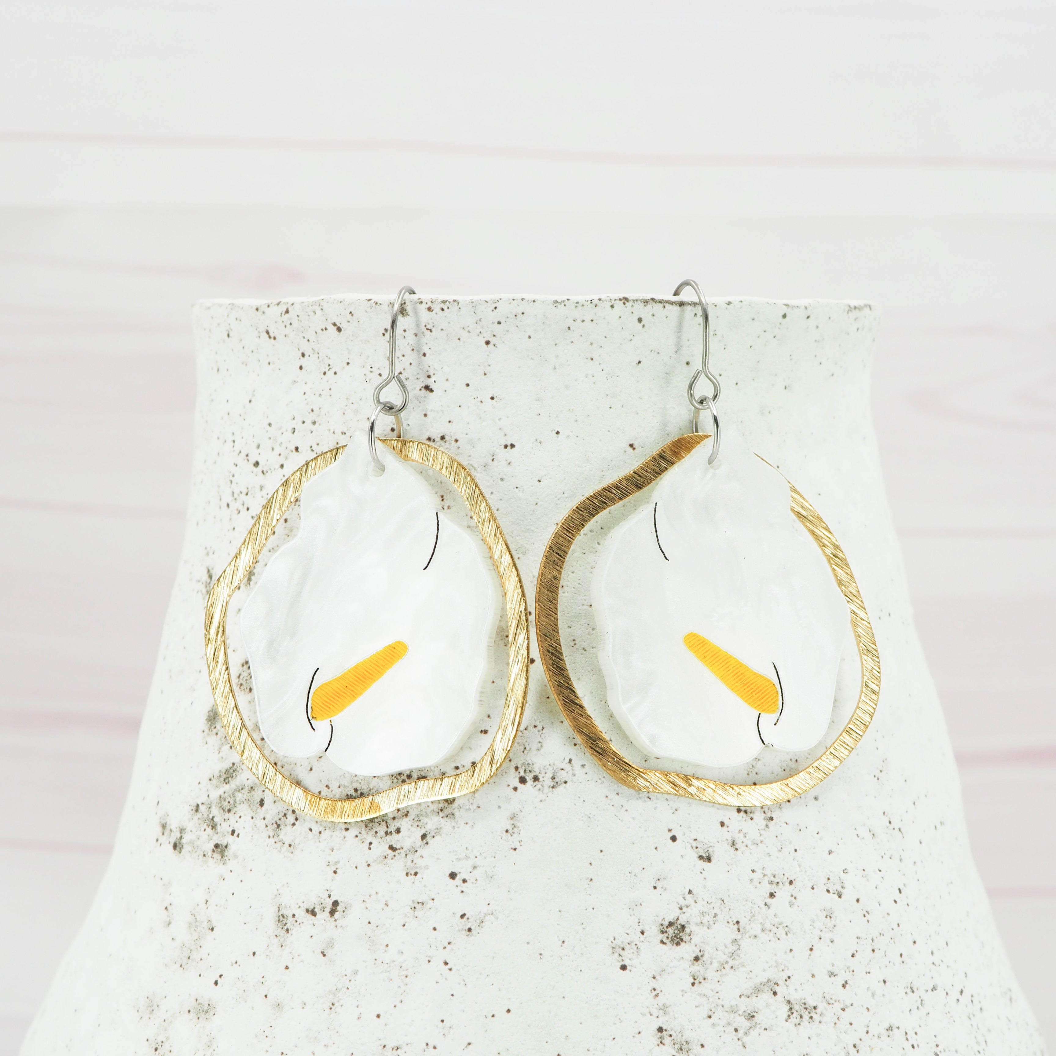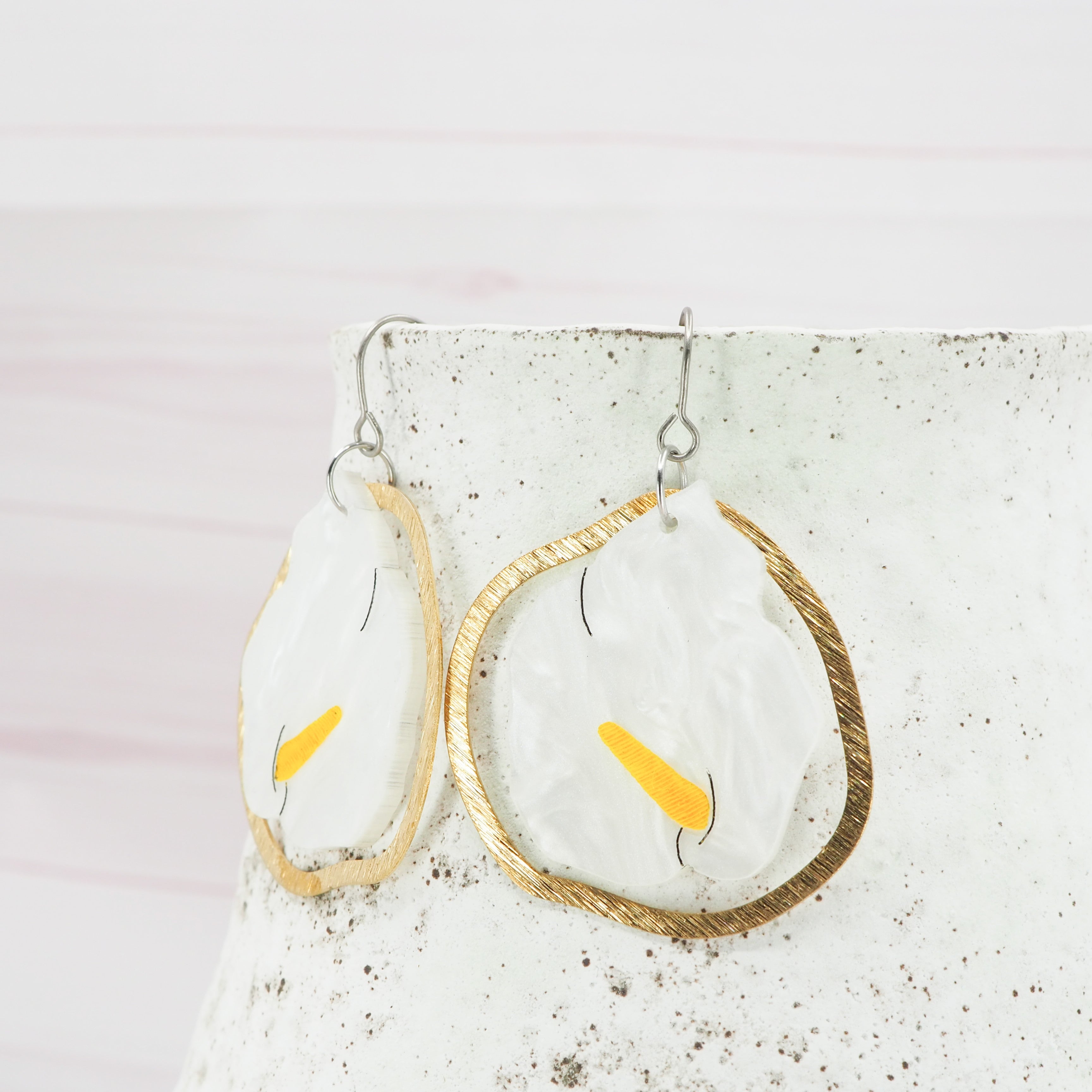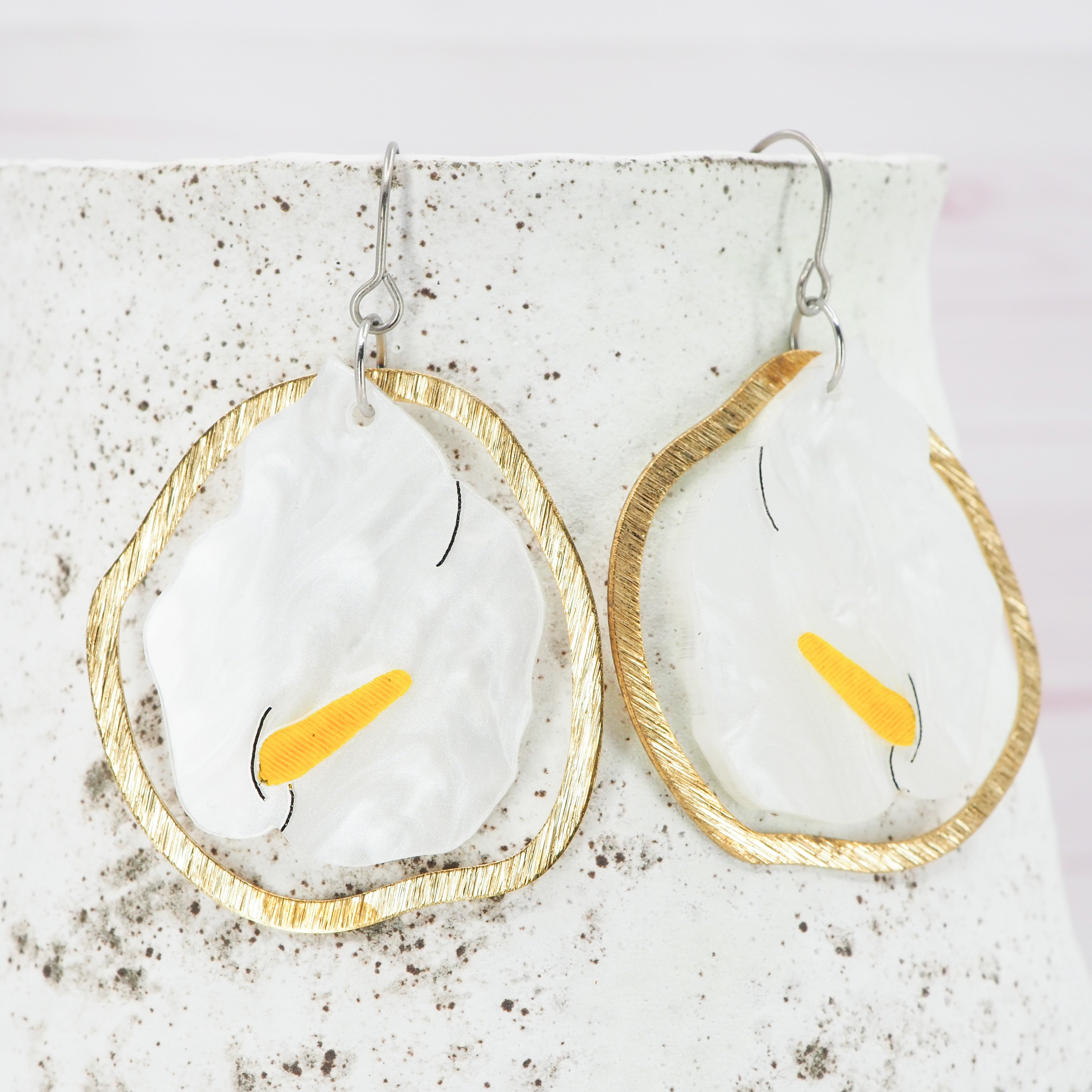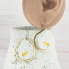 Marble white acrylic Lily and Brass wavy ring dangle earrings
