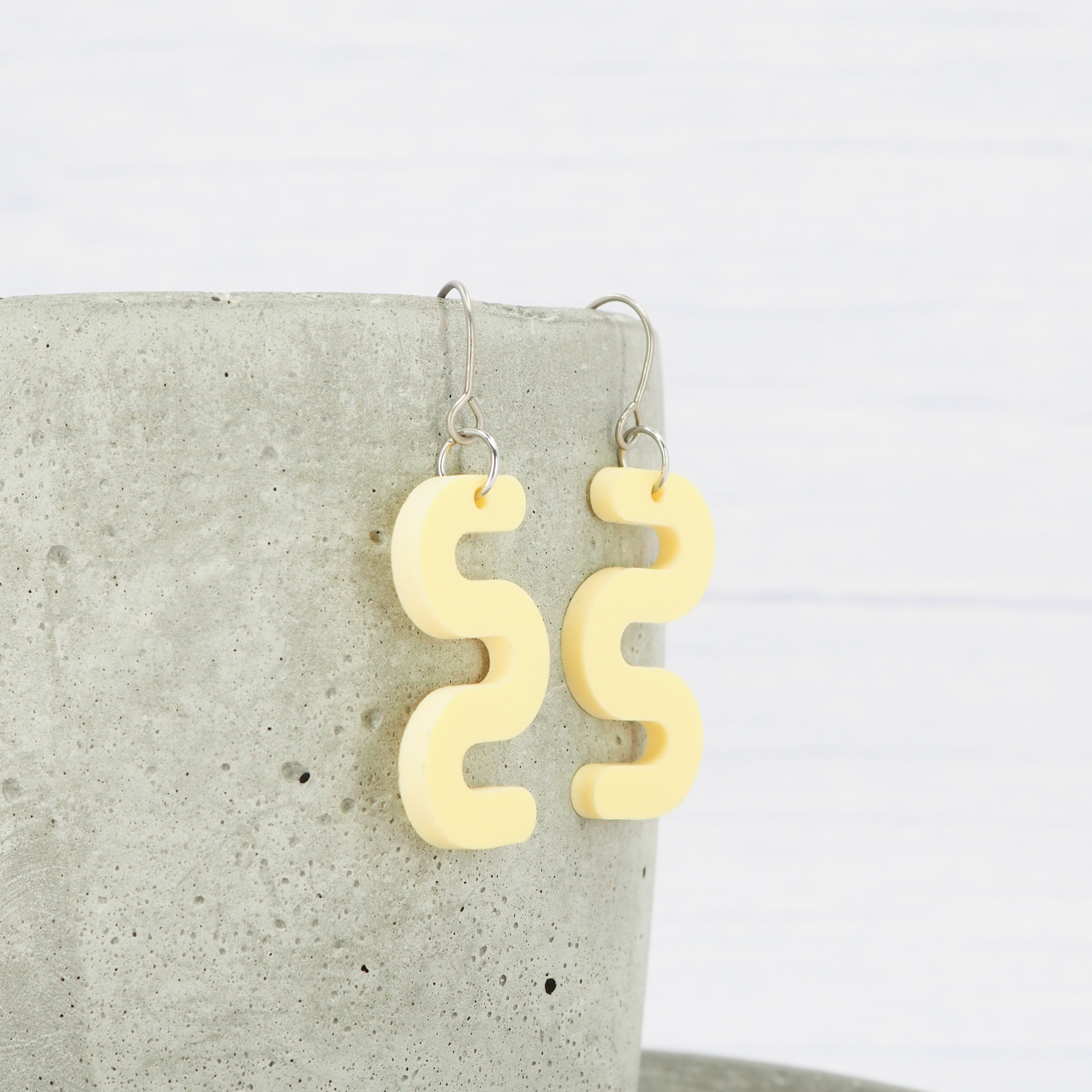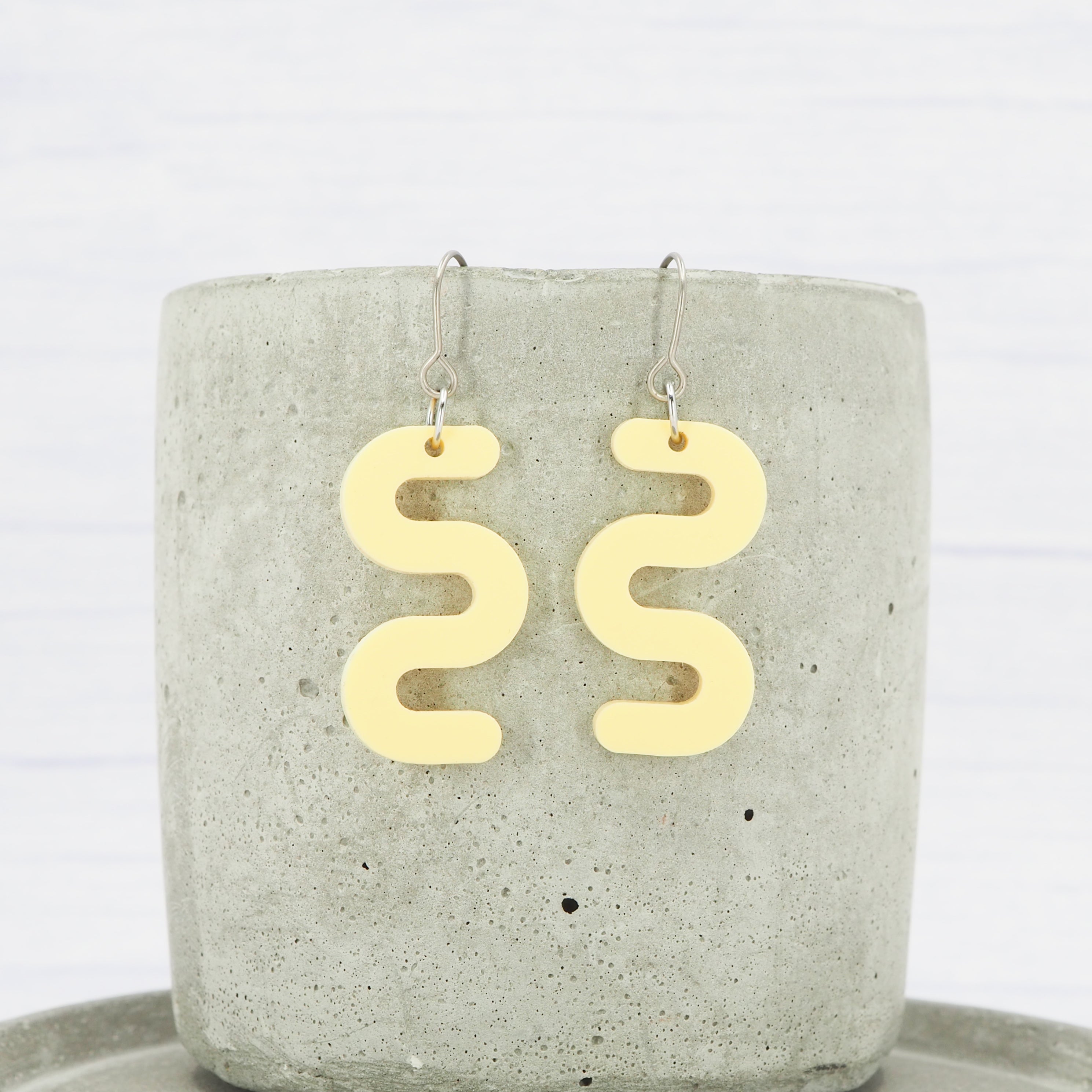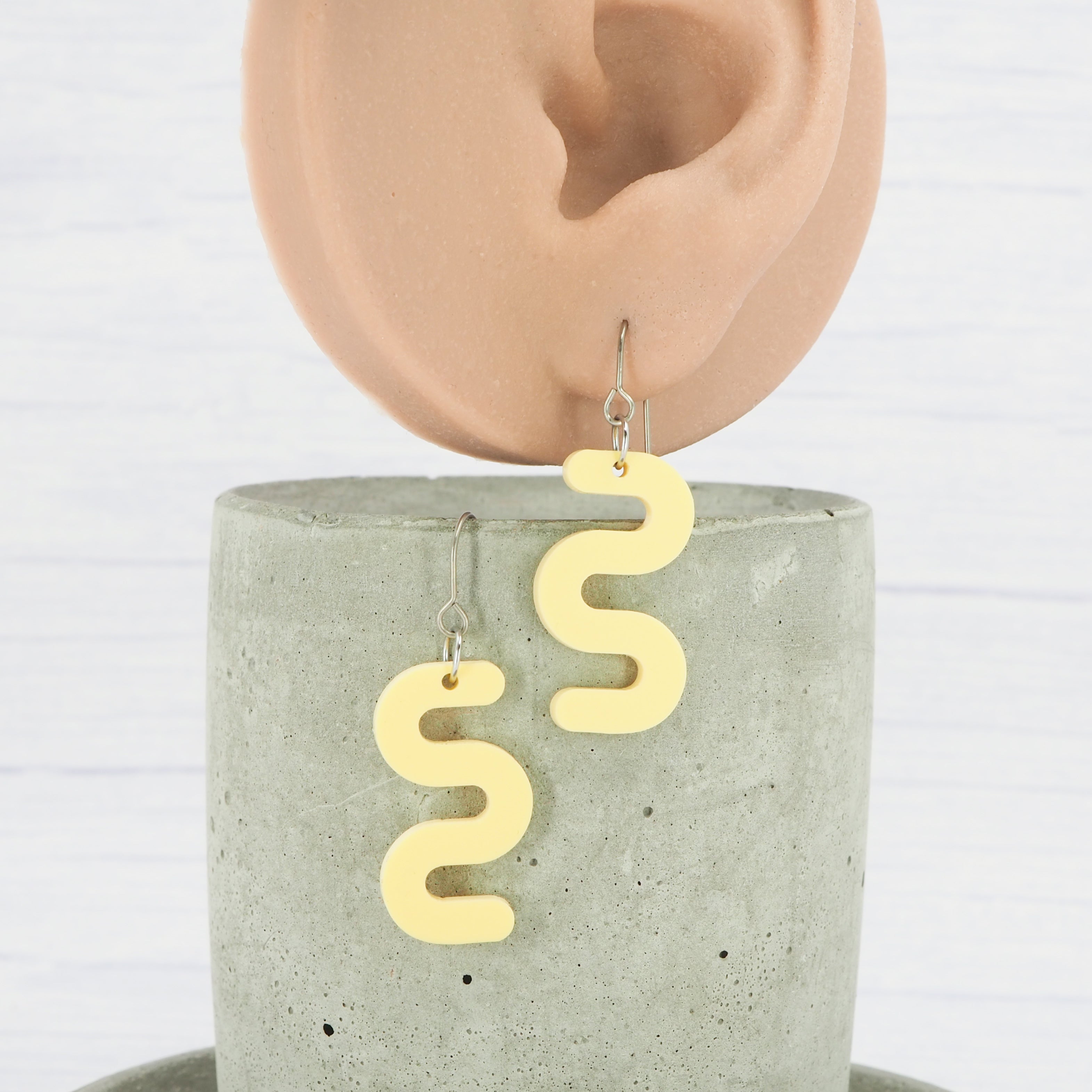 The earrings have a total drop length of 1.7" (4.3cm) from the top of the ear wire to the bottom of the squiggle.
