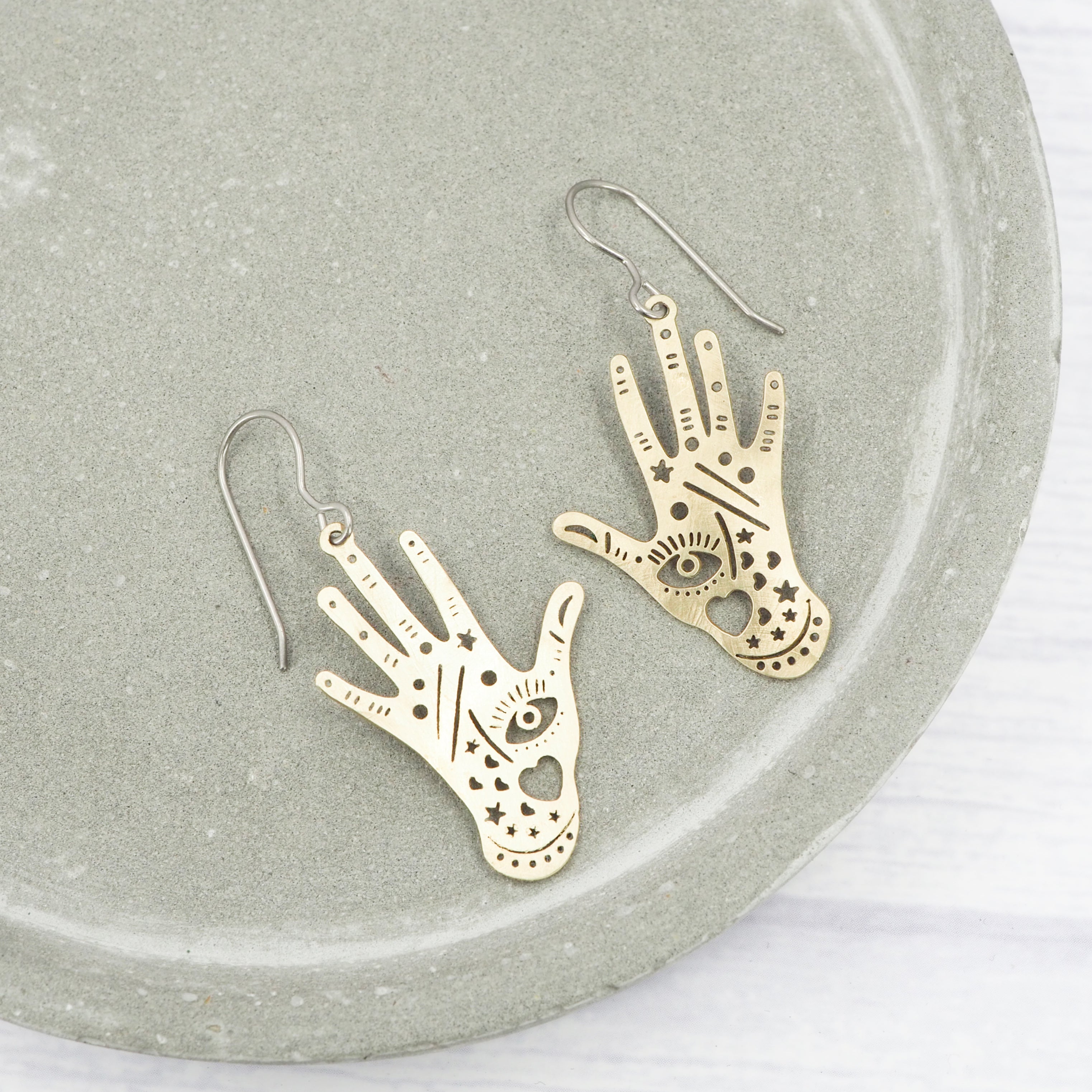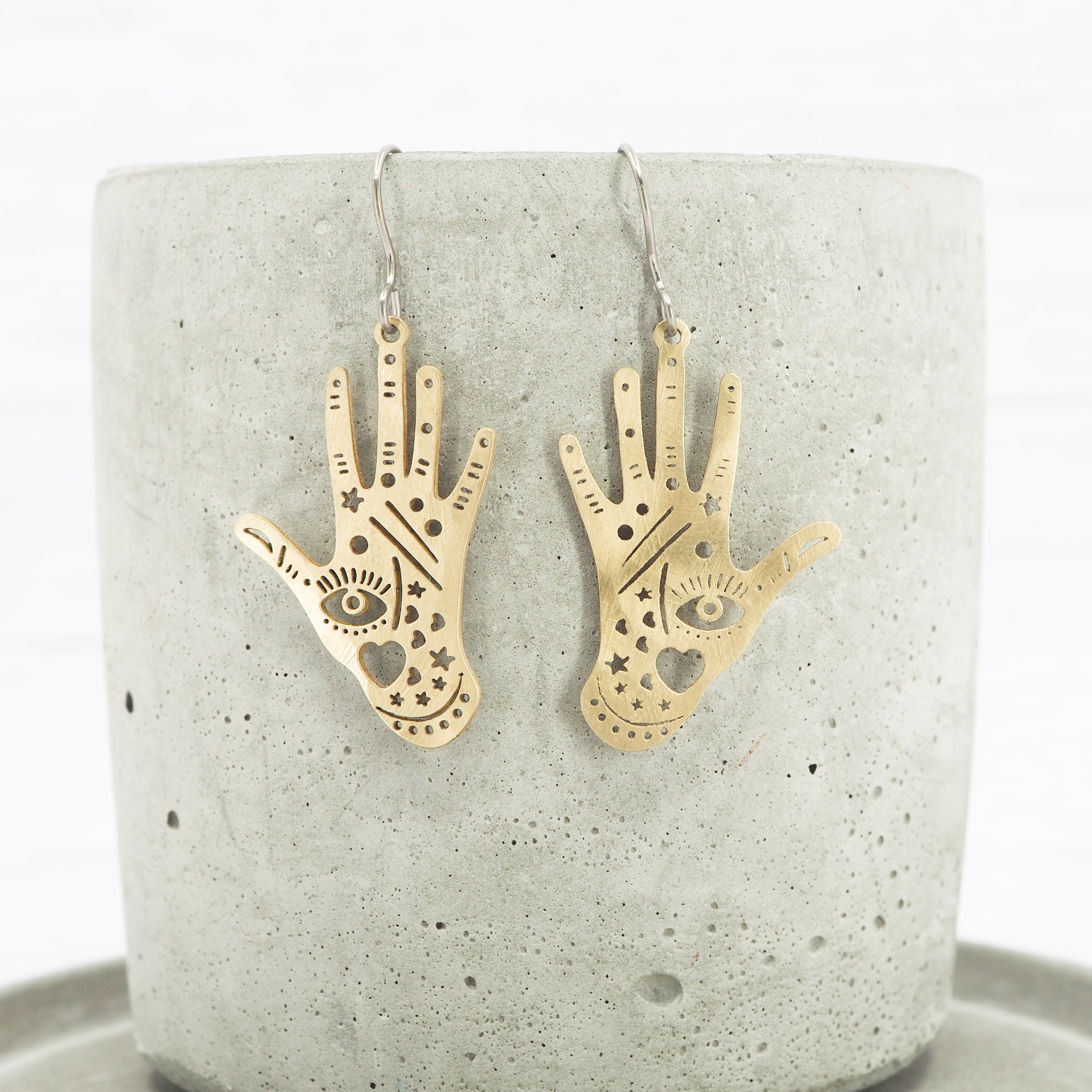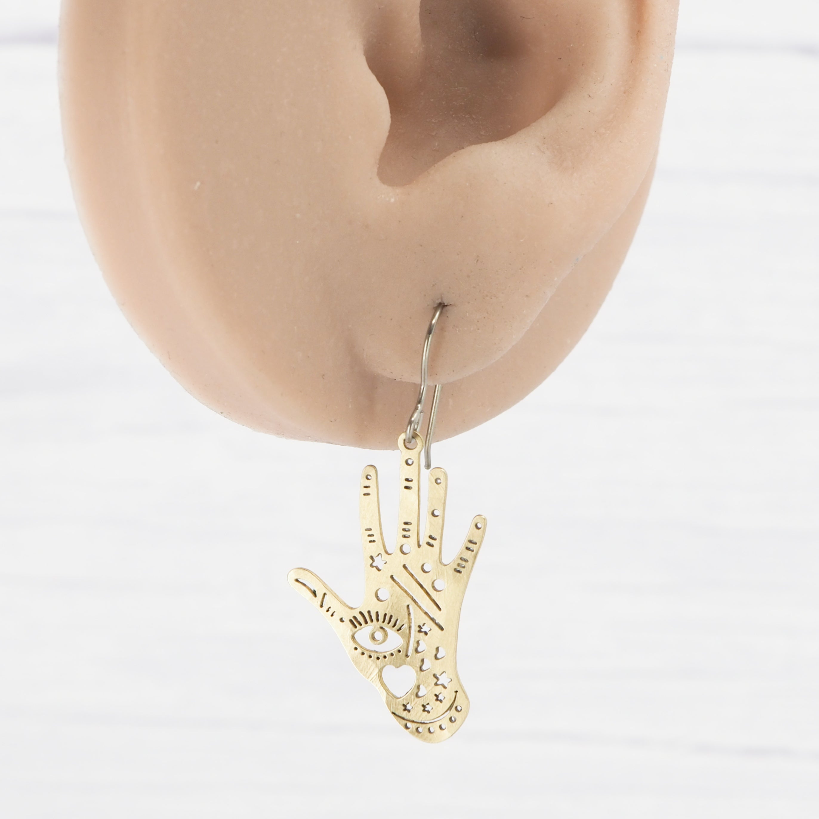 and the earrings have a total drop length of 1.7" (4.3cm) from the top of the ear wire to the bottom of the hands.