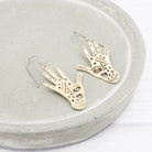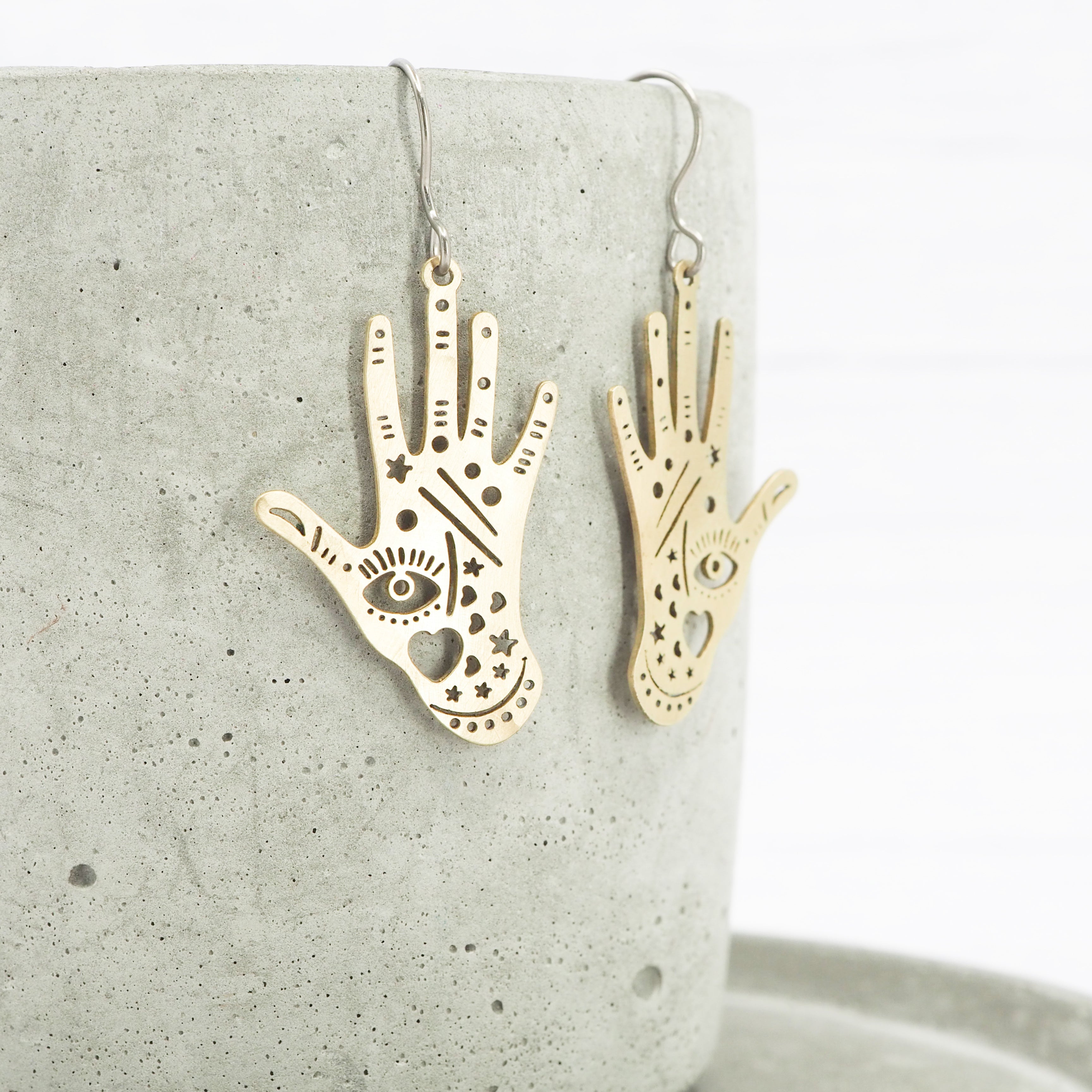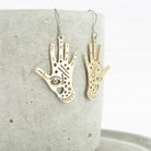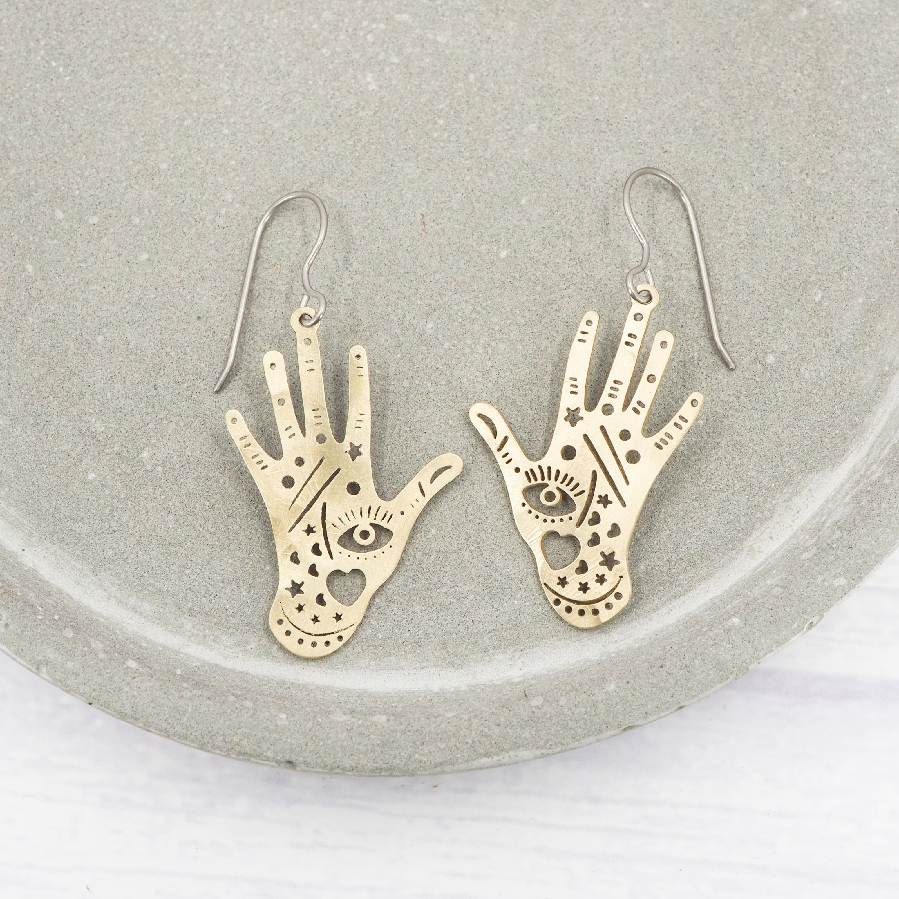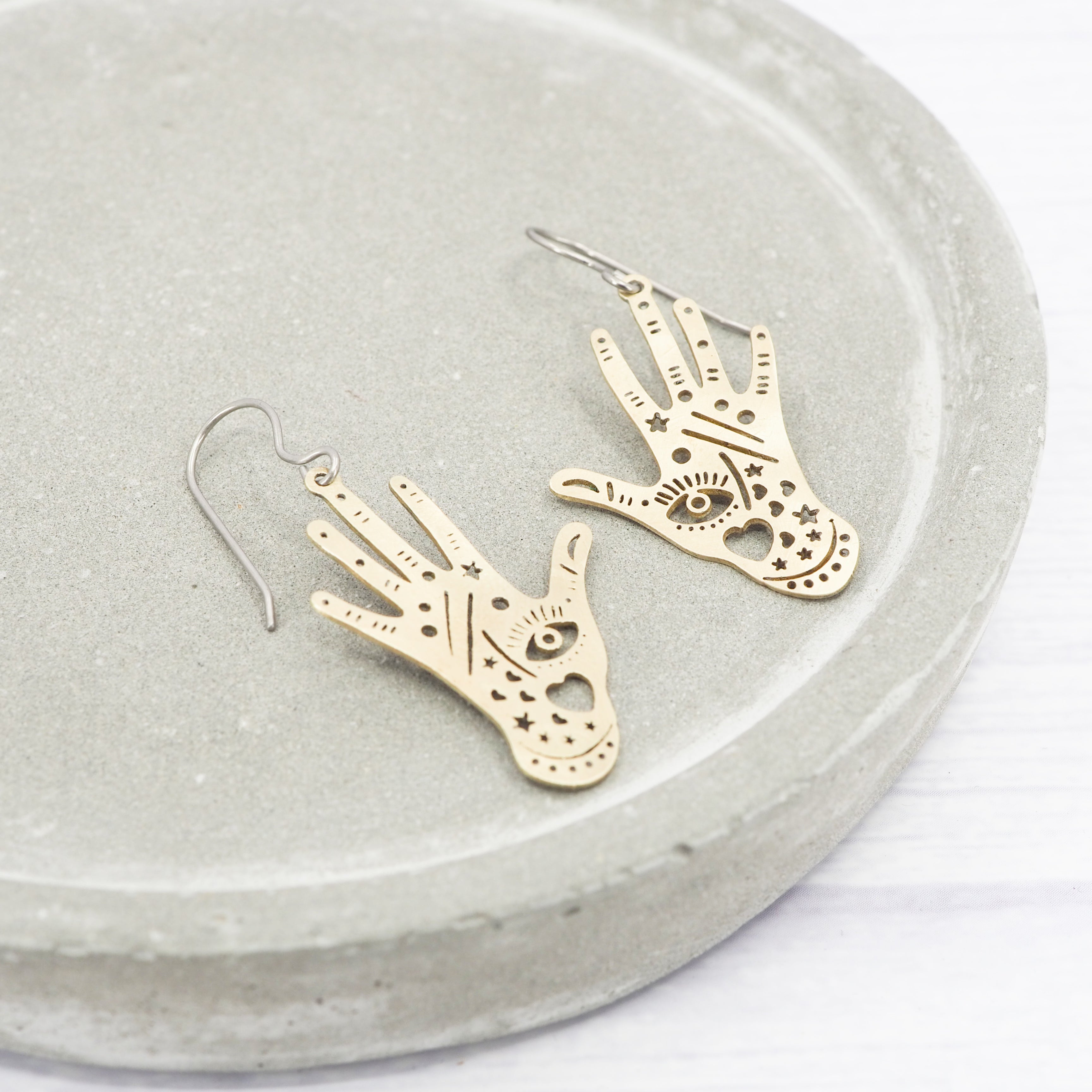 and the earrings have a total drop length of 1.7" (4.3cm) from the top of the ear wire to the bottom of the hands.