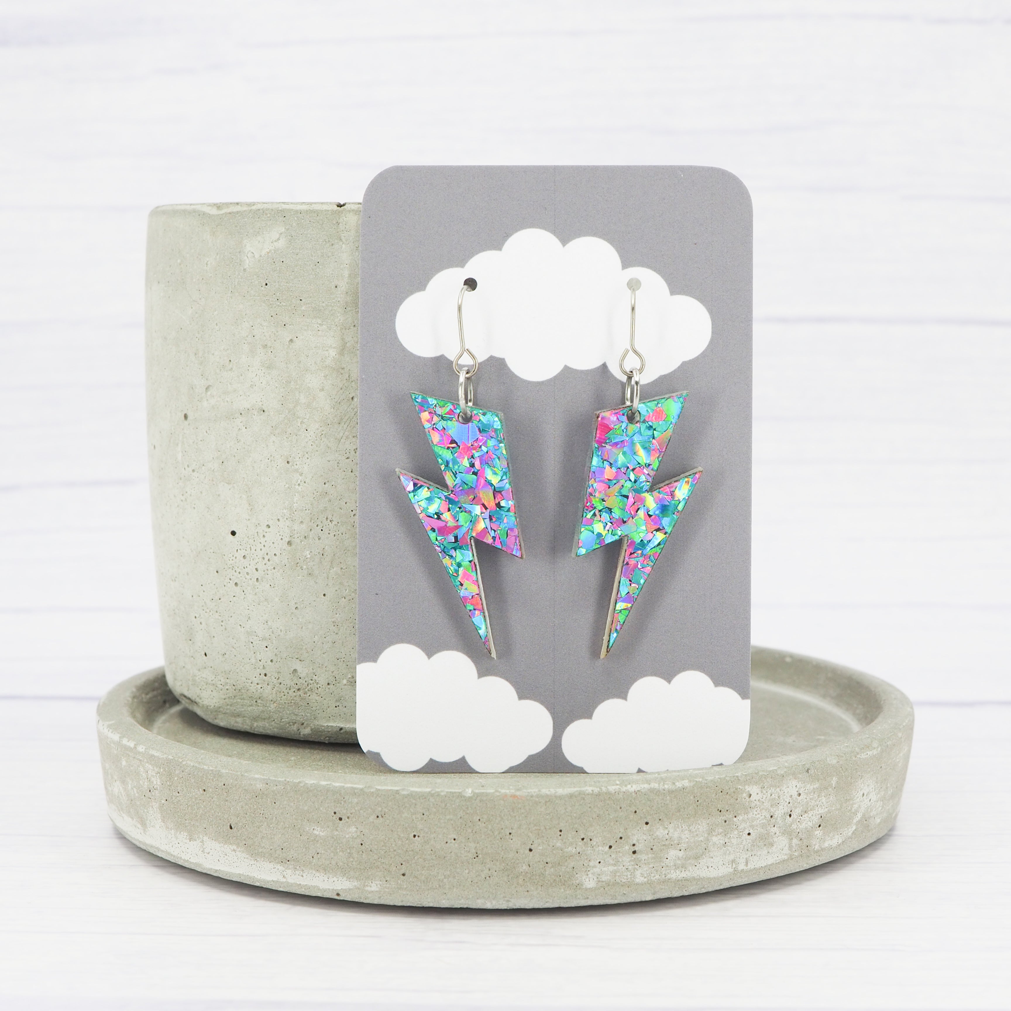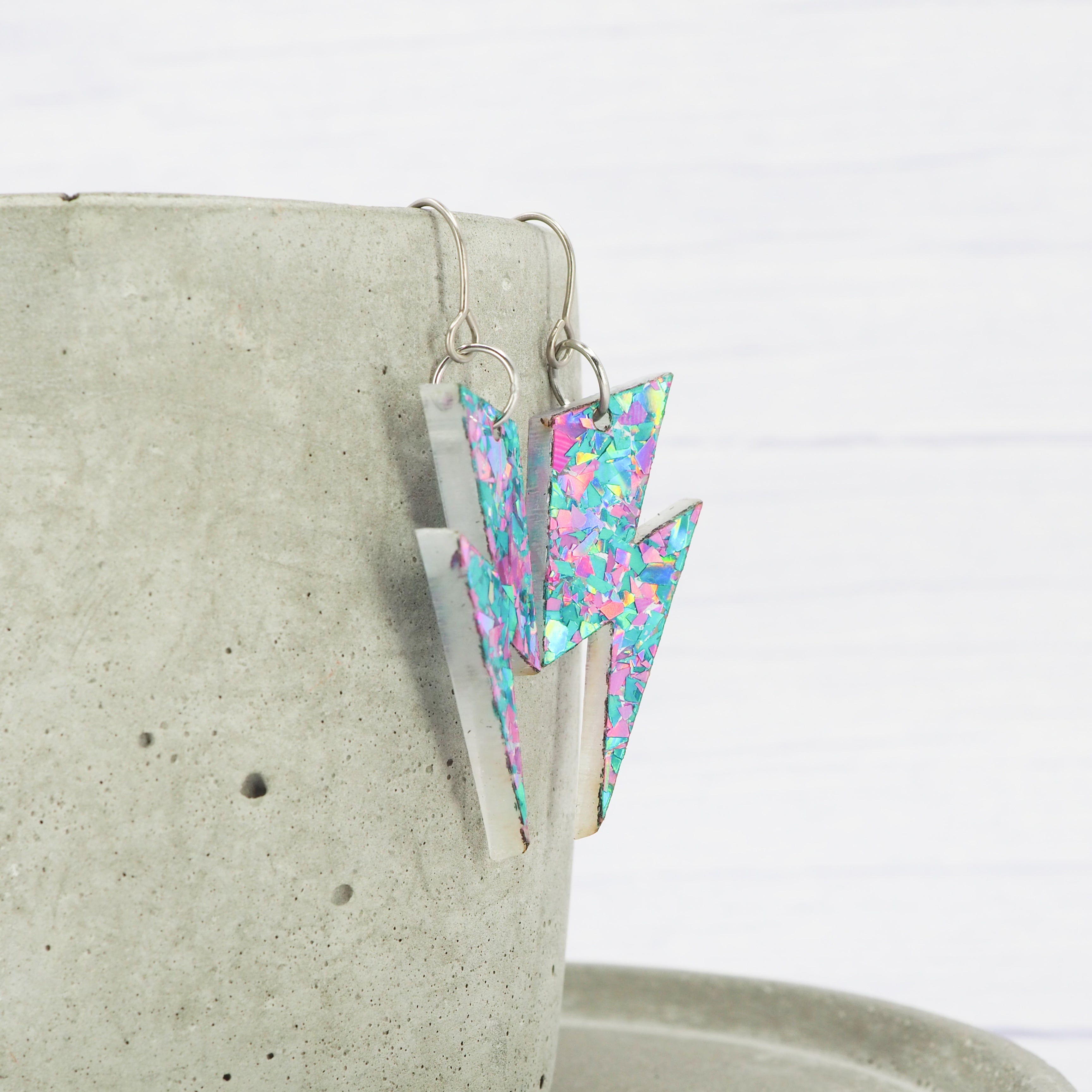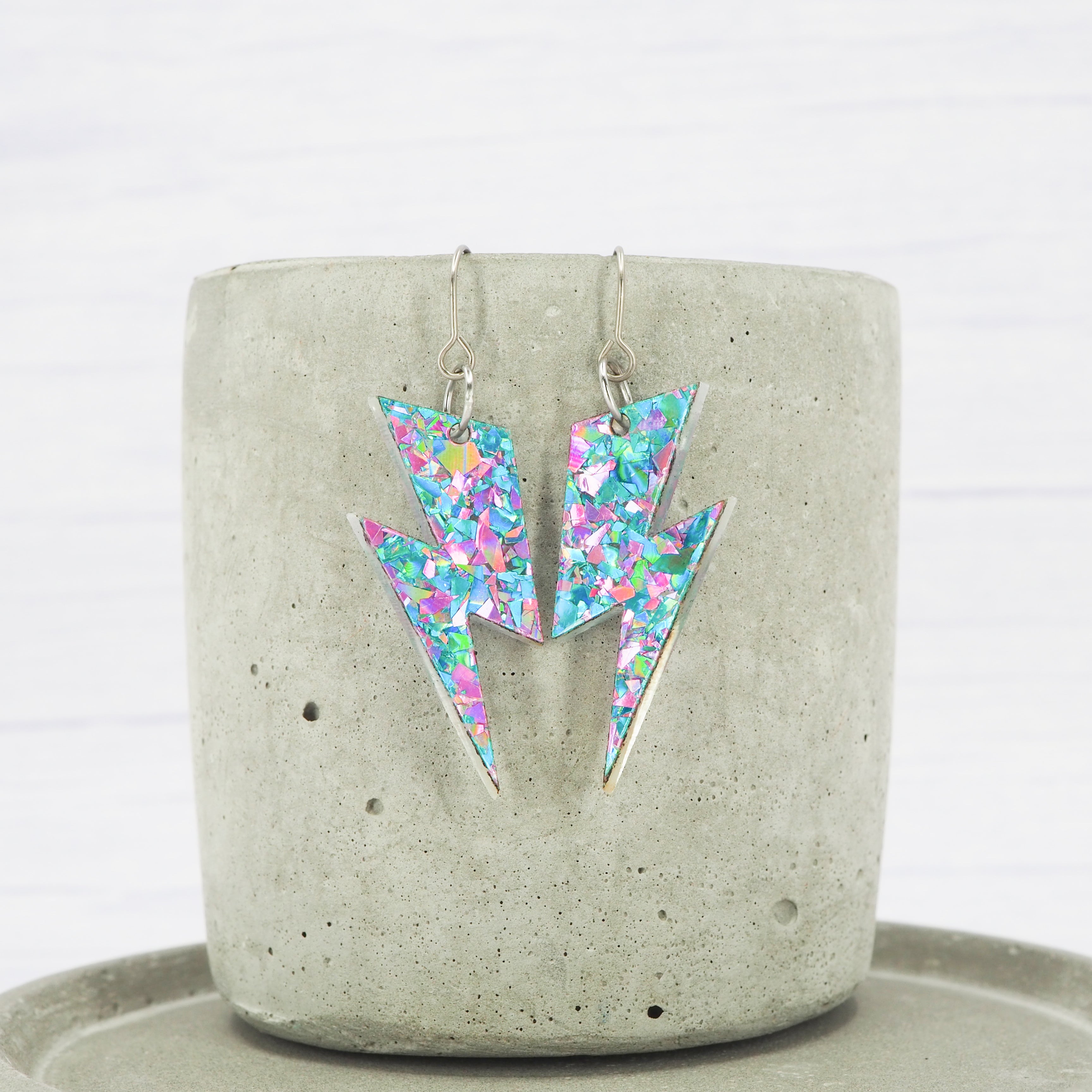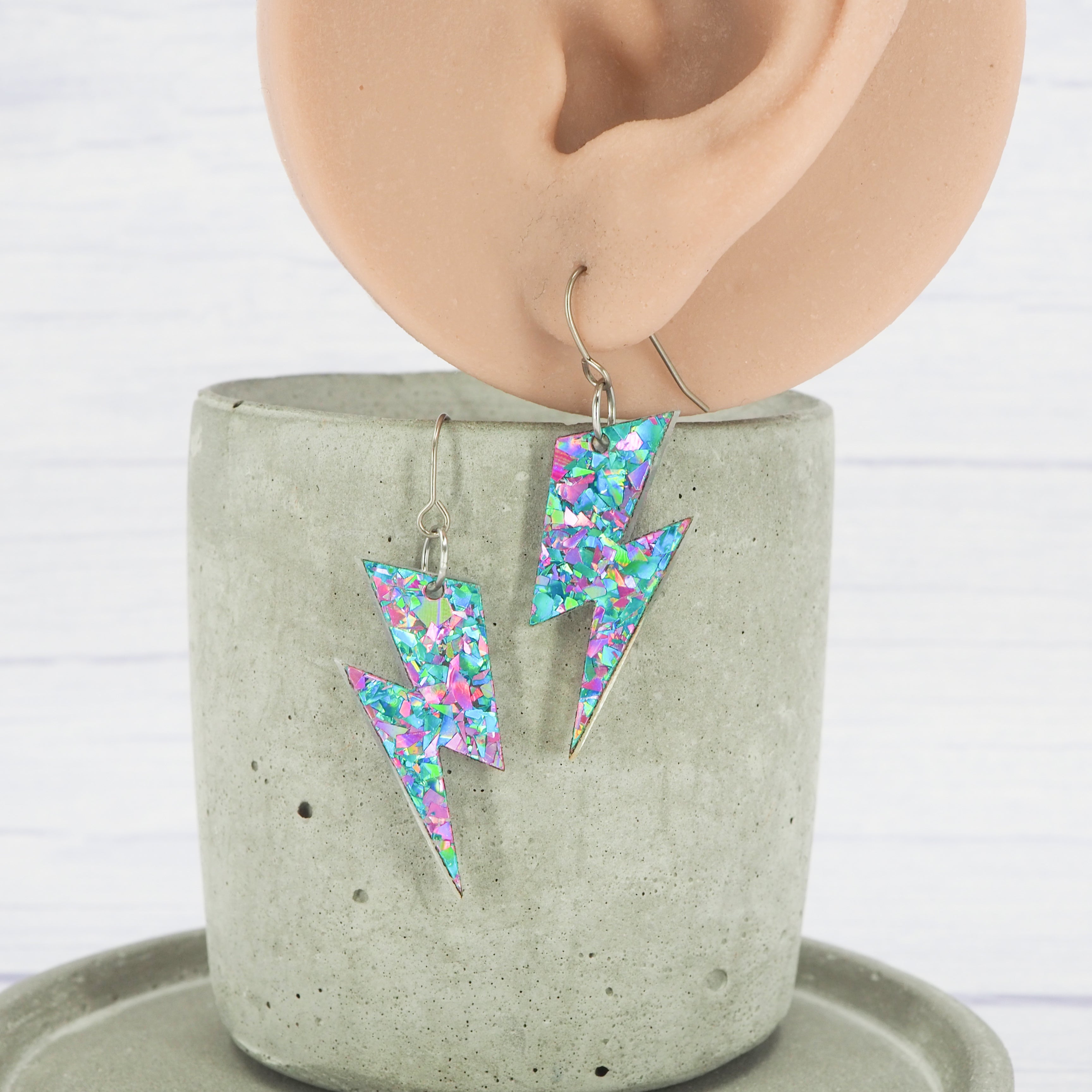 Pink and Blue flake glitter lightning acrylic dangle earrings