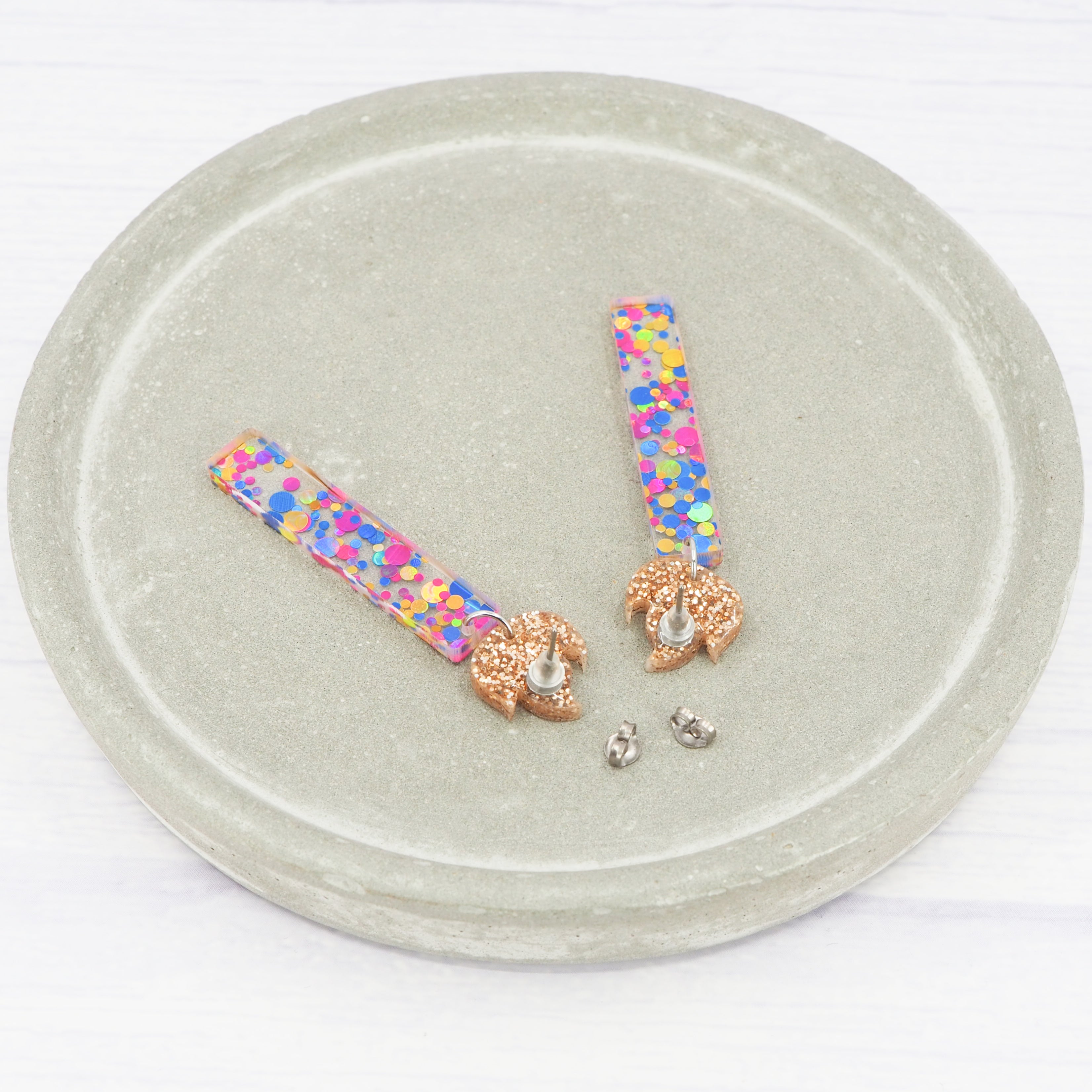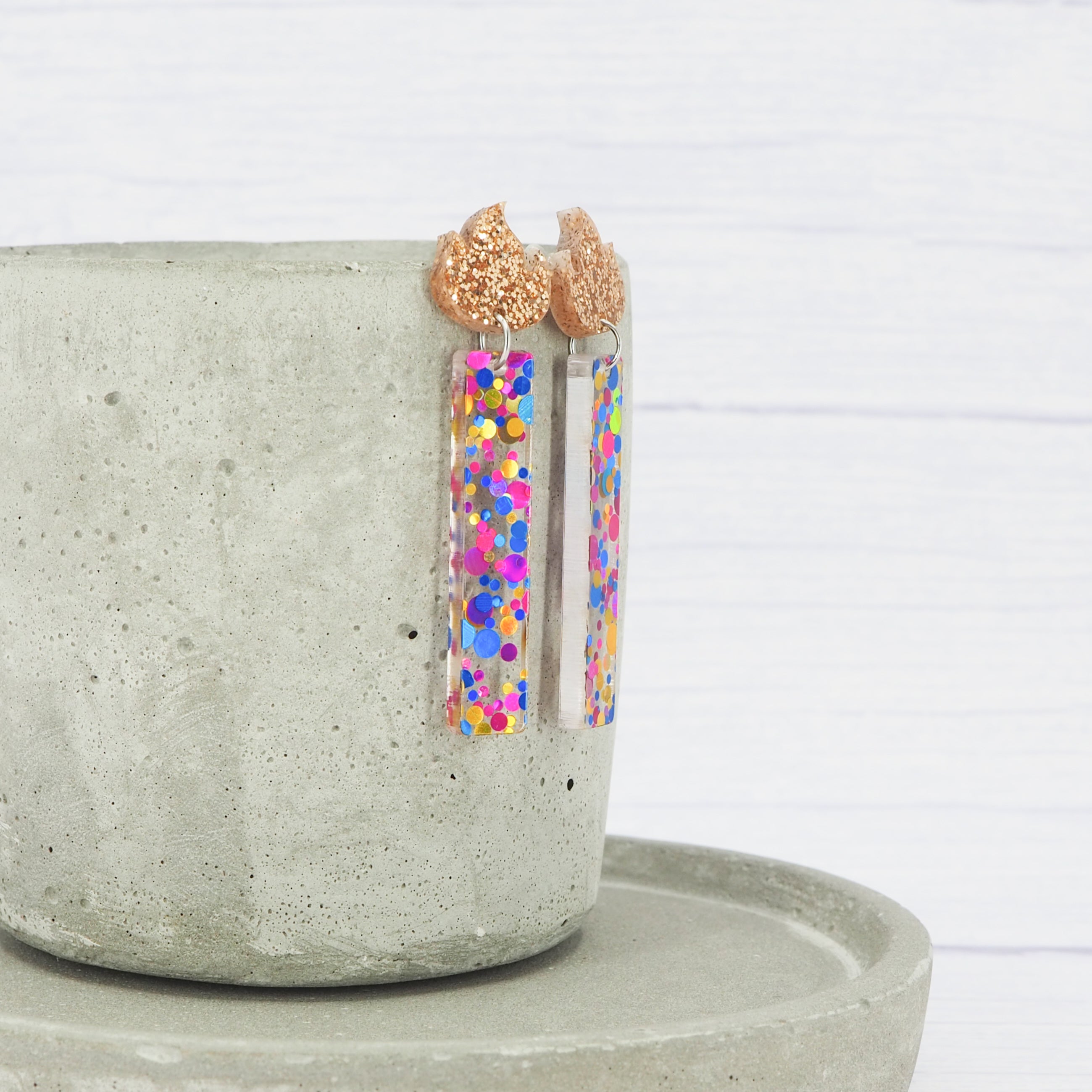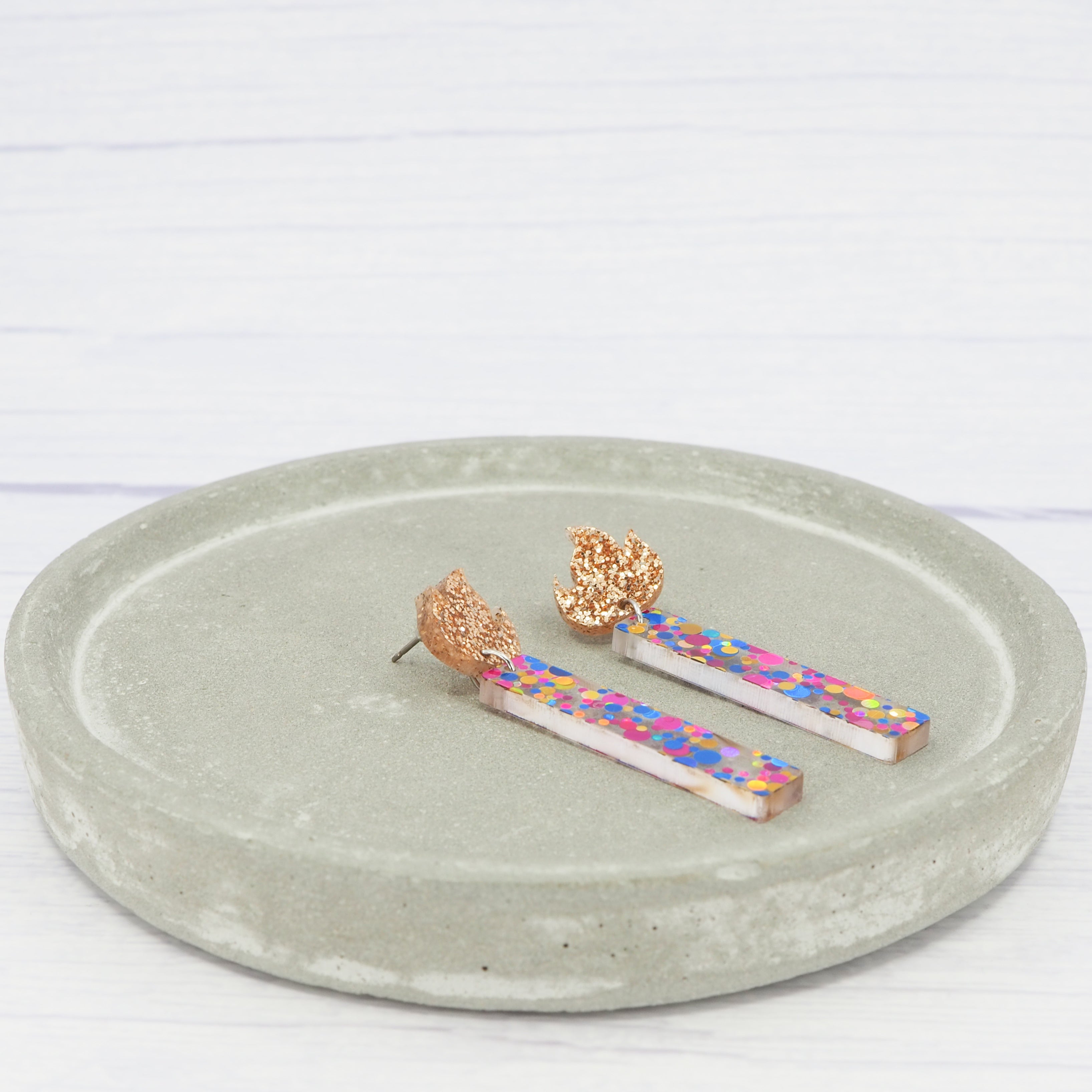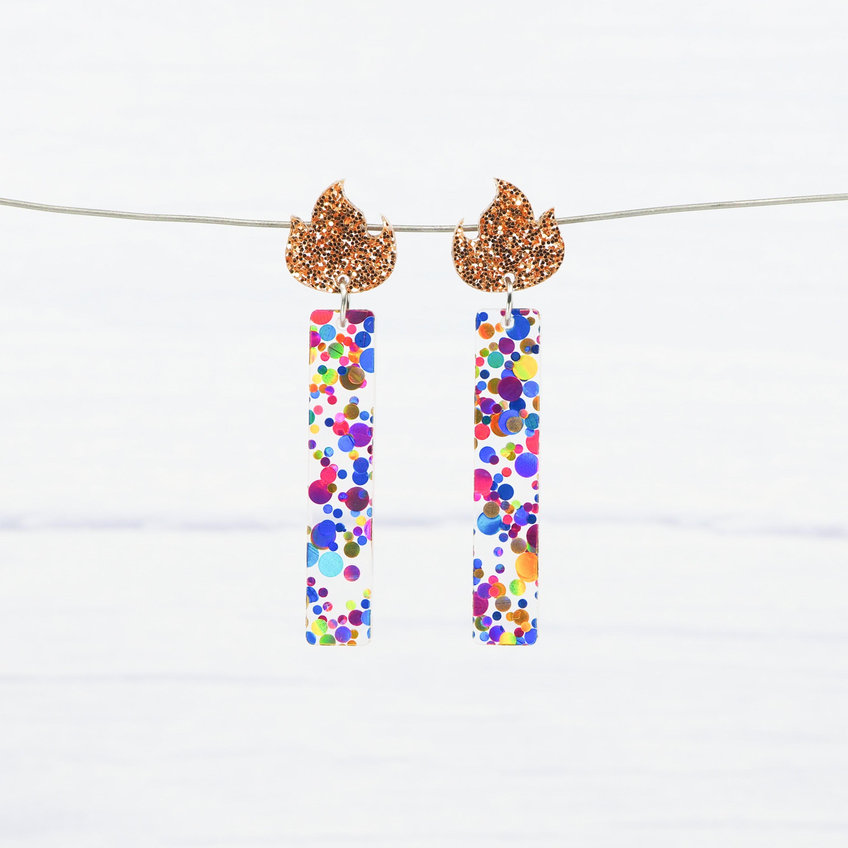 The earrings have a total drop length of 2.2" (5.5cm) from the top of the flame to the bottom of the candle.