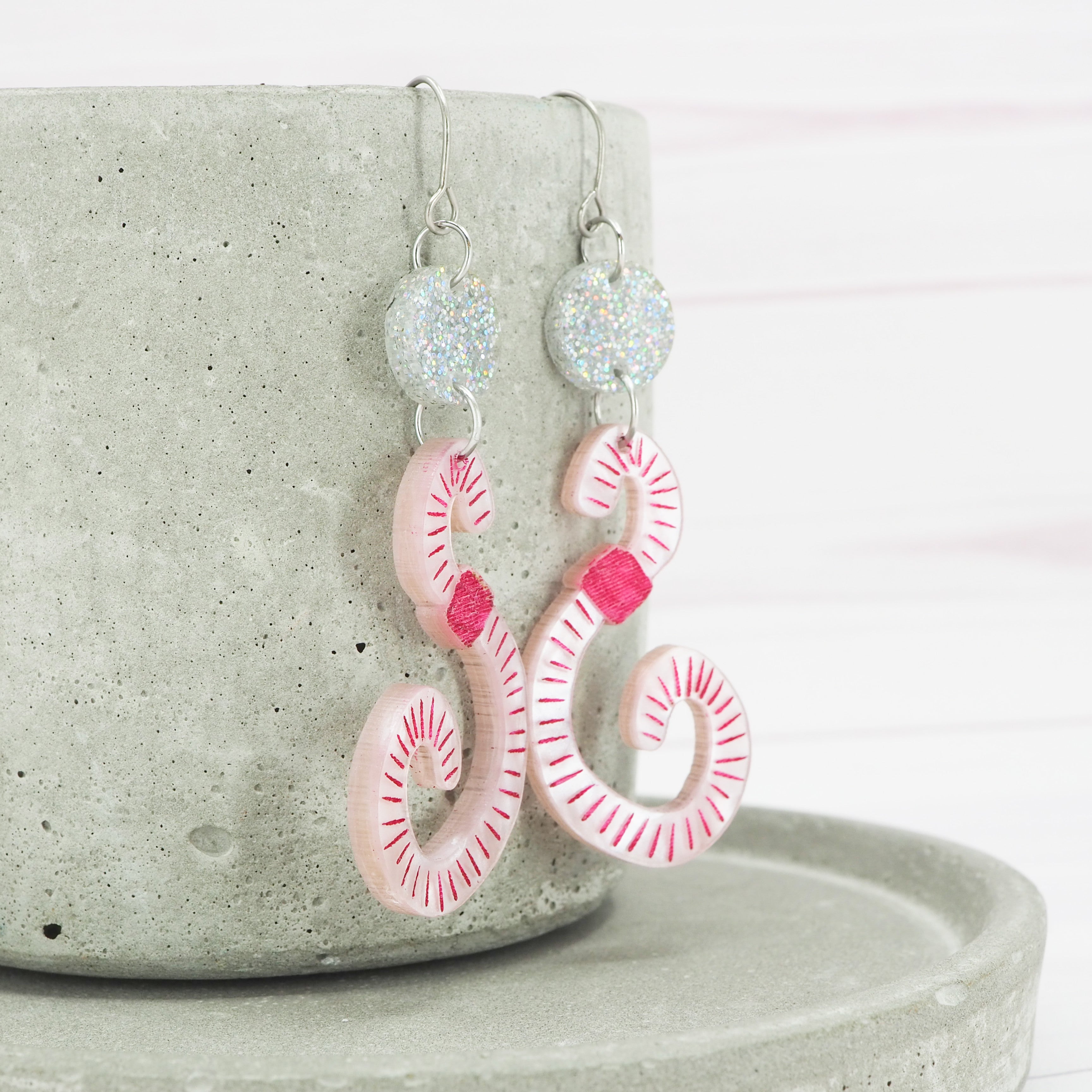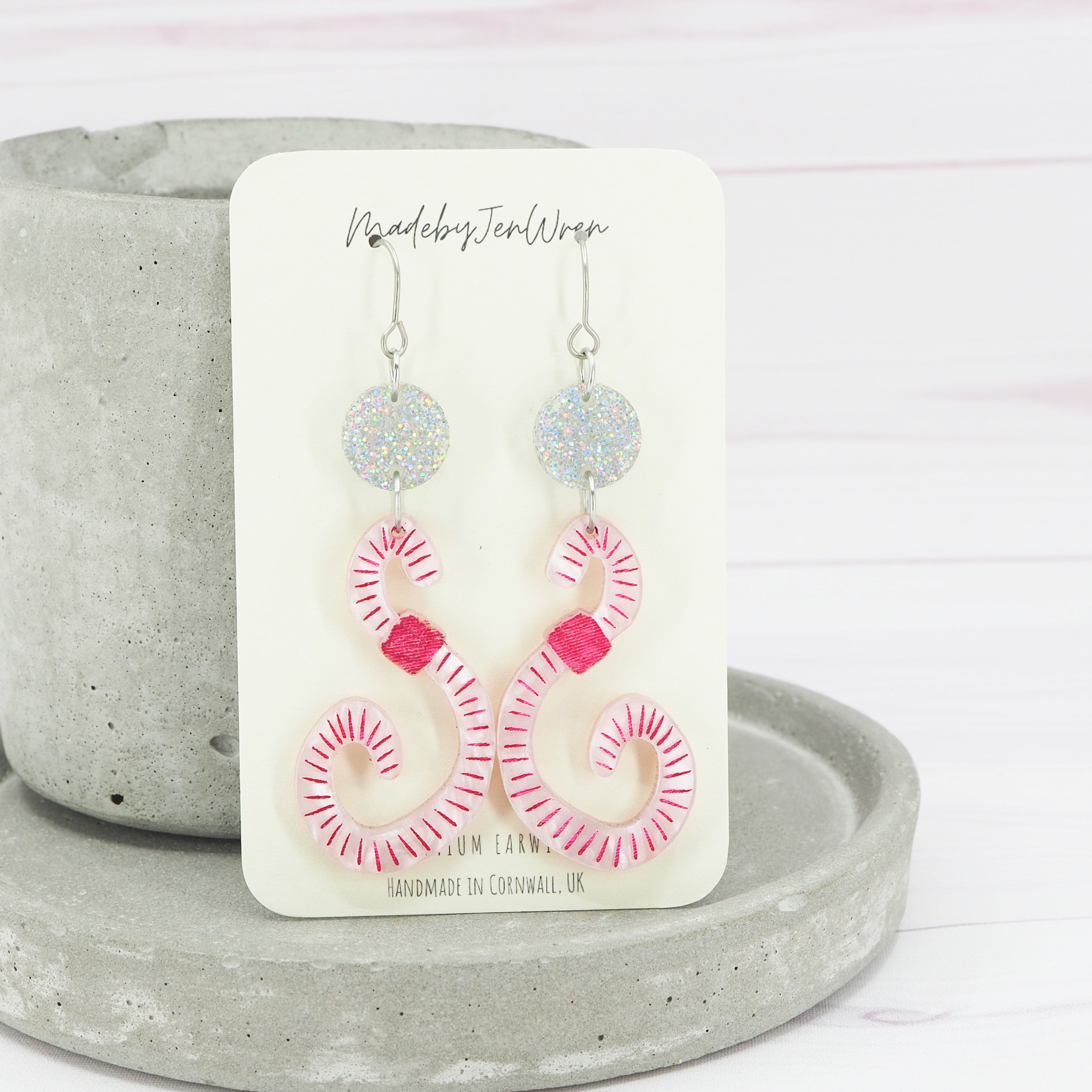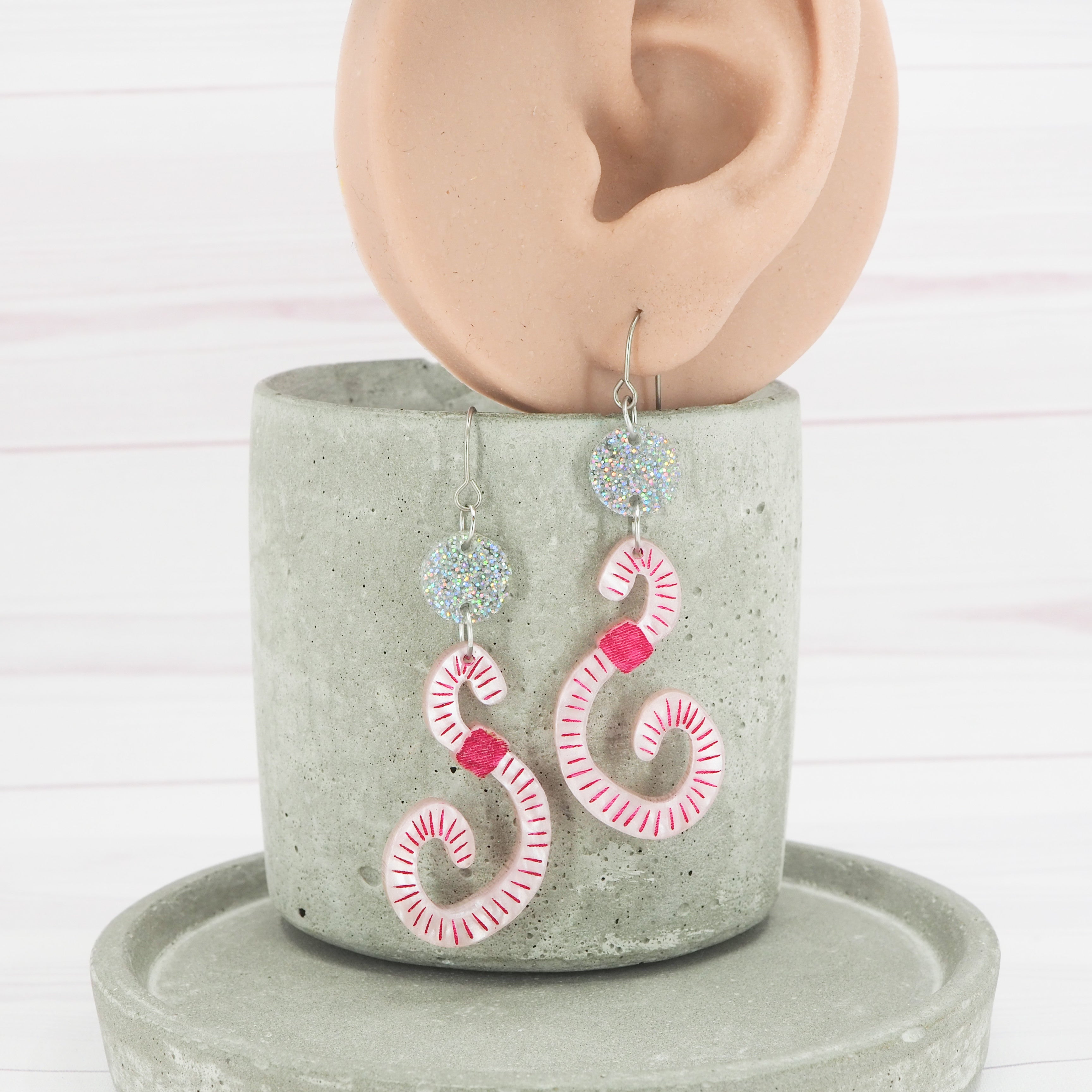 The earrings have a total drop length of 2.75" (7cm) from the top of the ear wire to the bottom of the Worms.