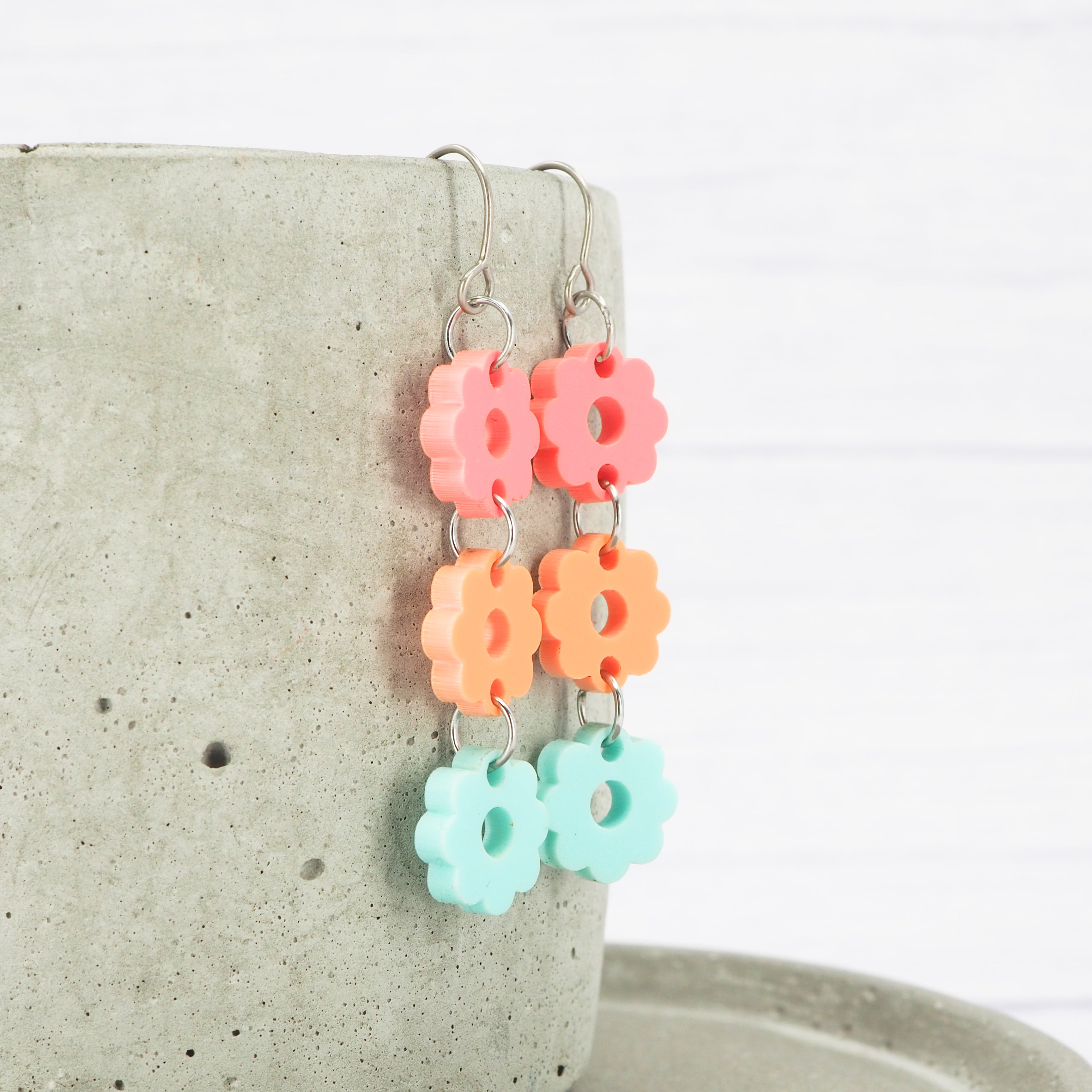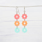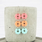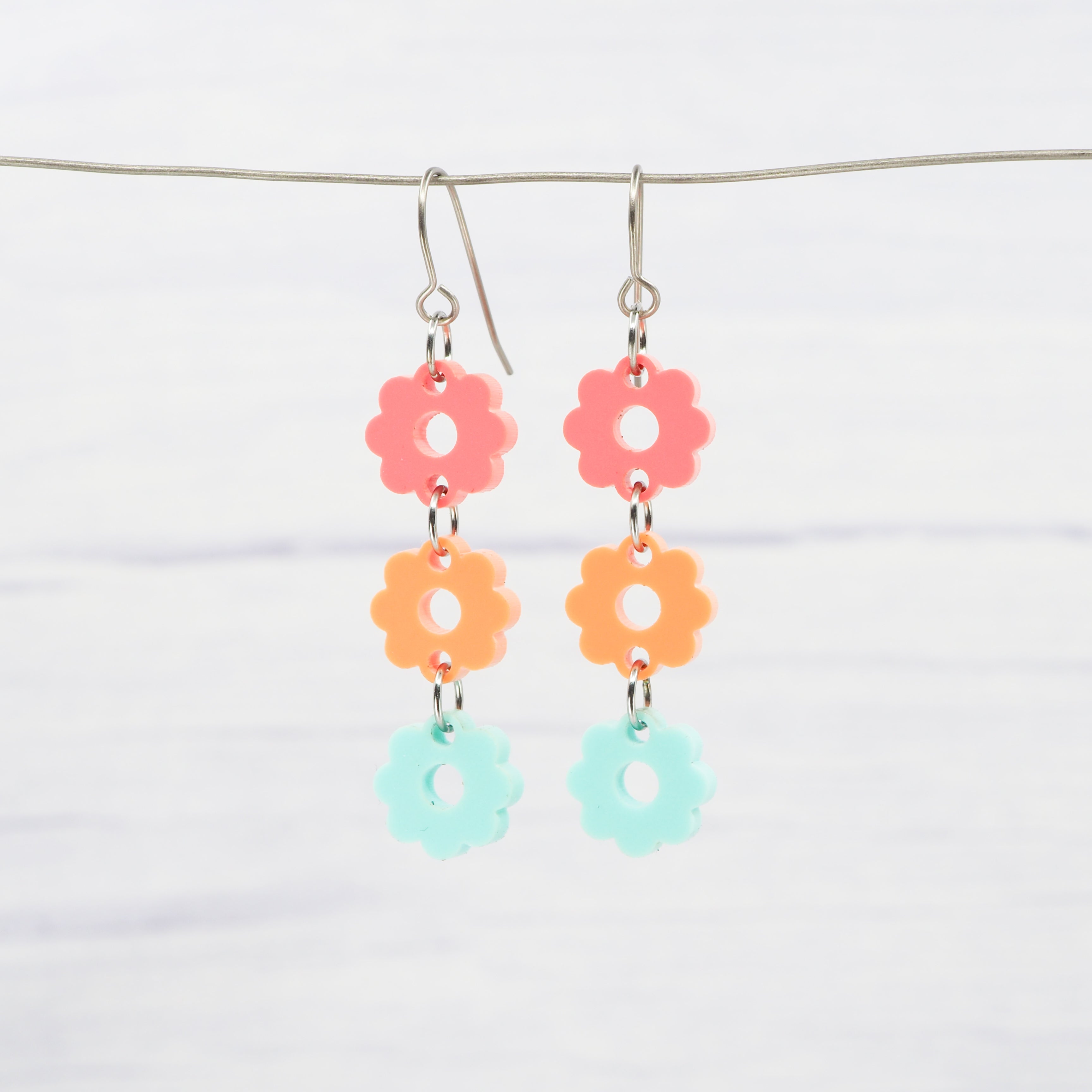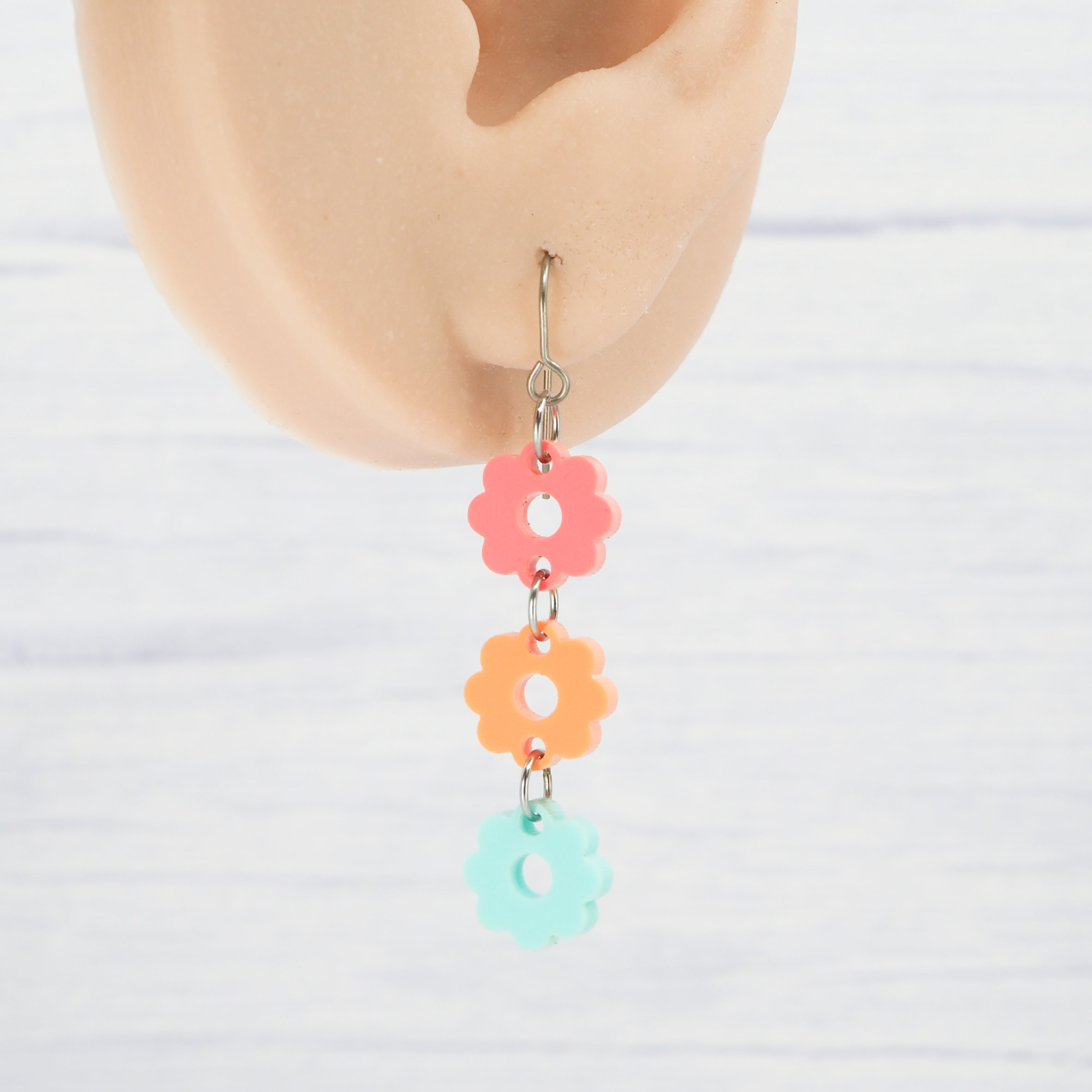 Raspberry, Orange, Blue - Retro matte pastel flower dangle earrings