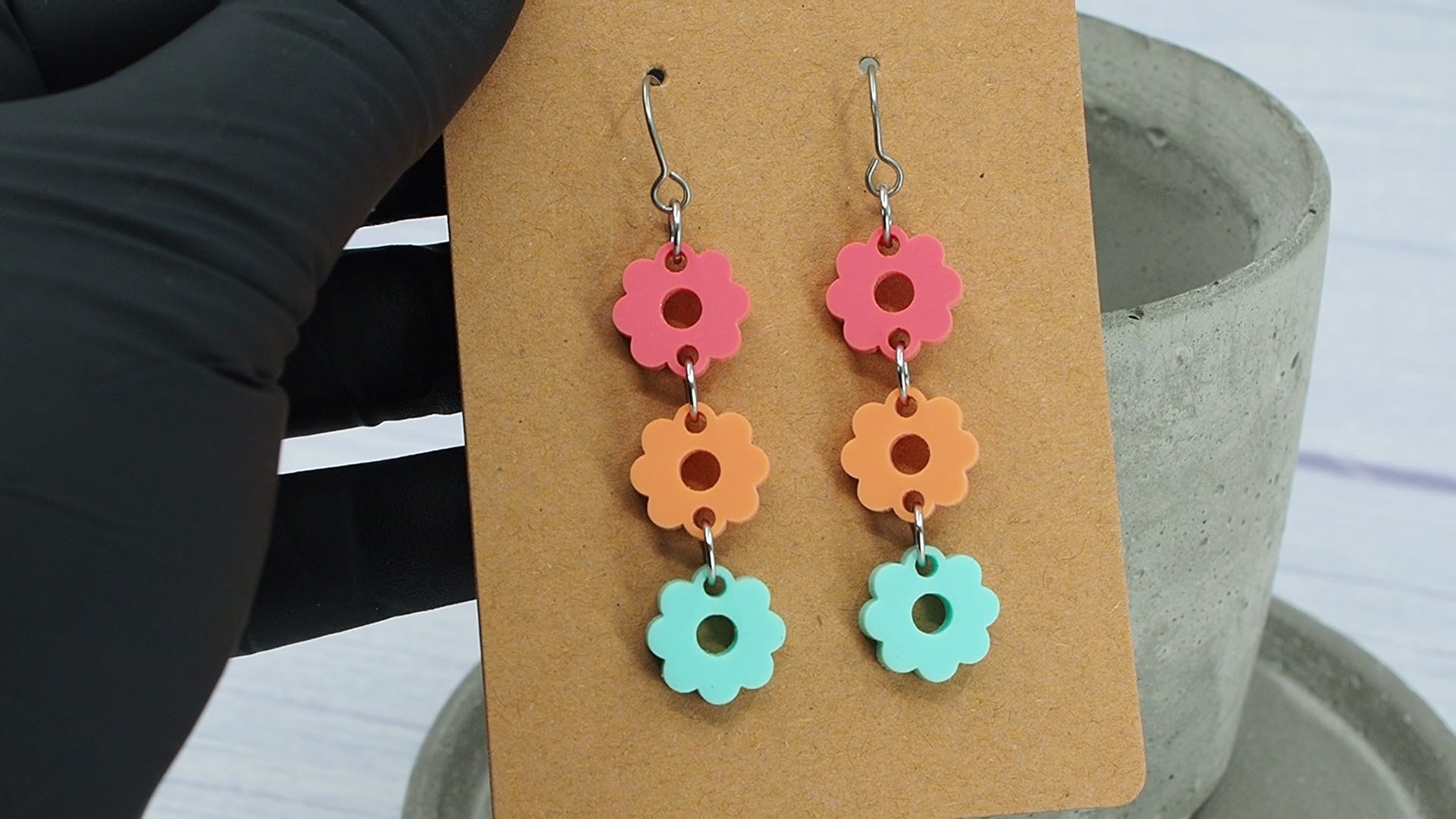 The earrings have a total drop length of 2.3" (5.8cm) from the top of the ear wire to the bottom of the flowers.