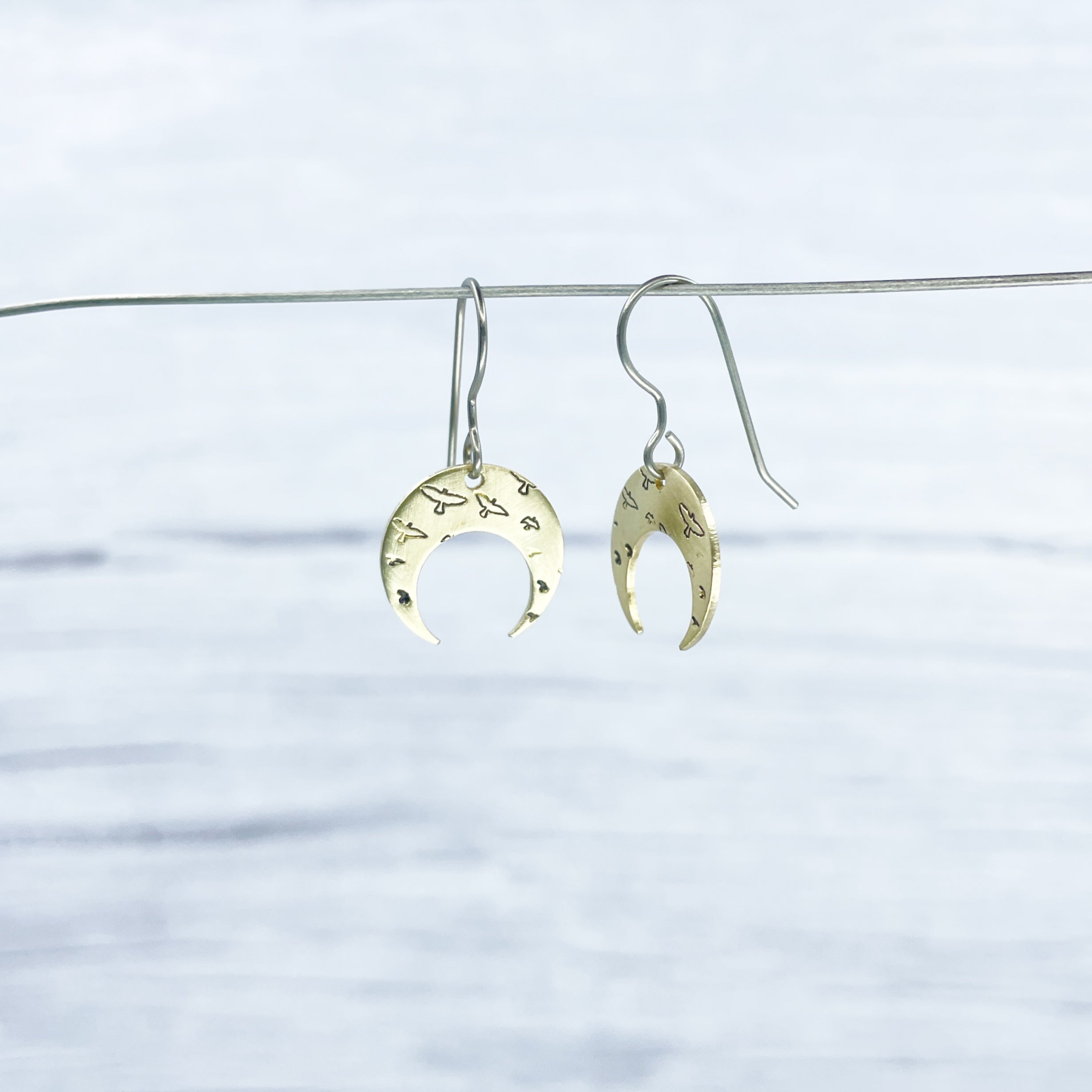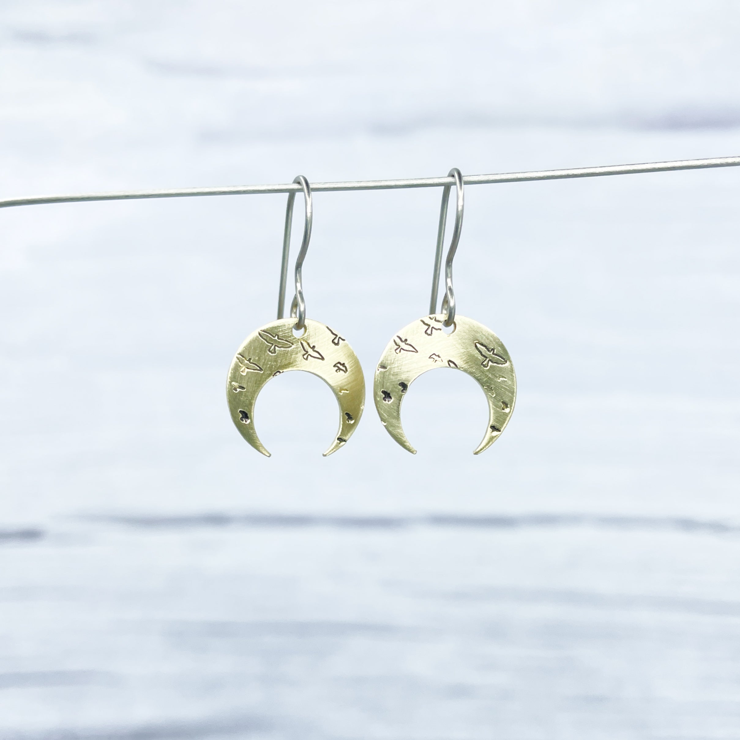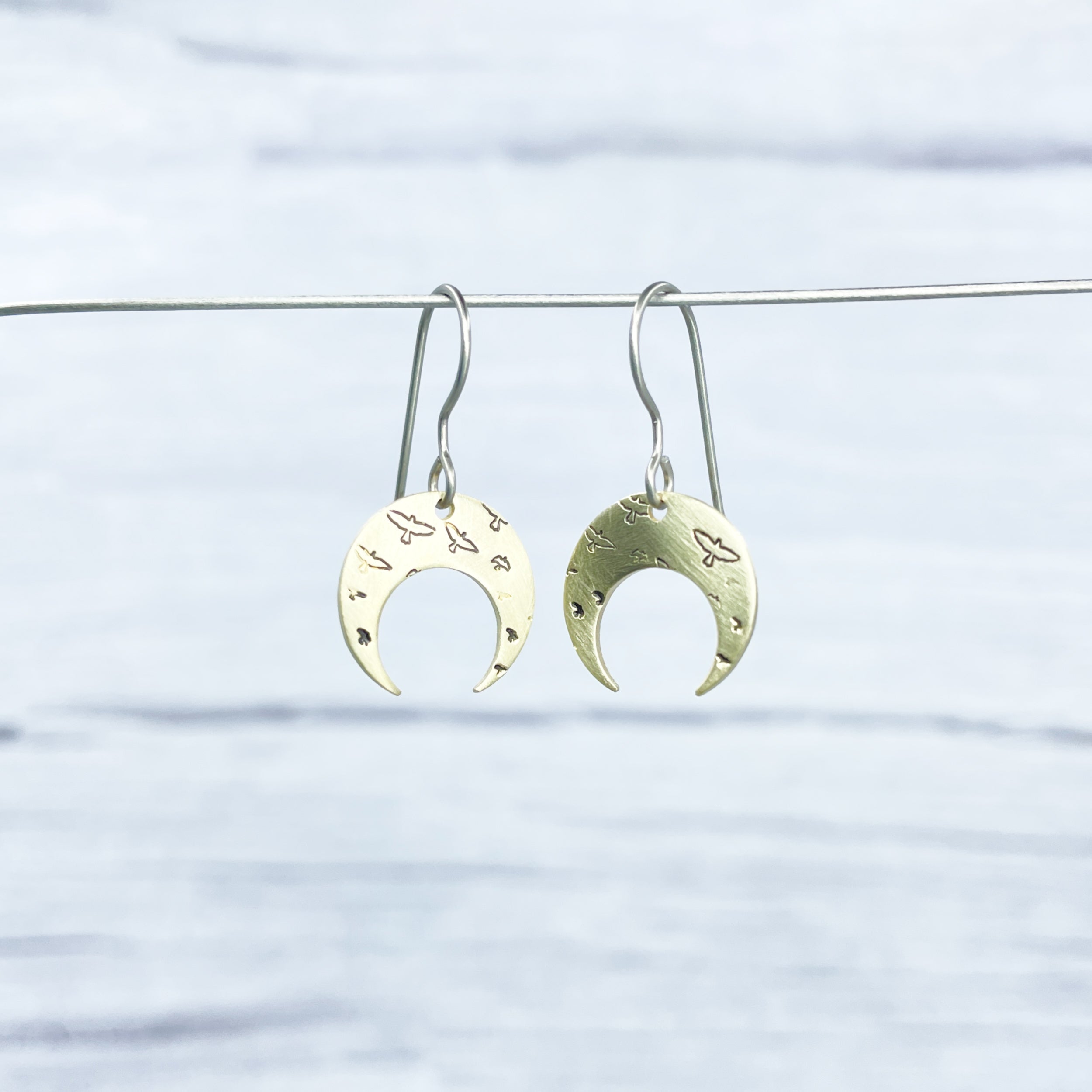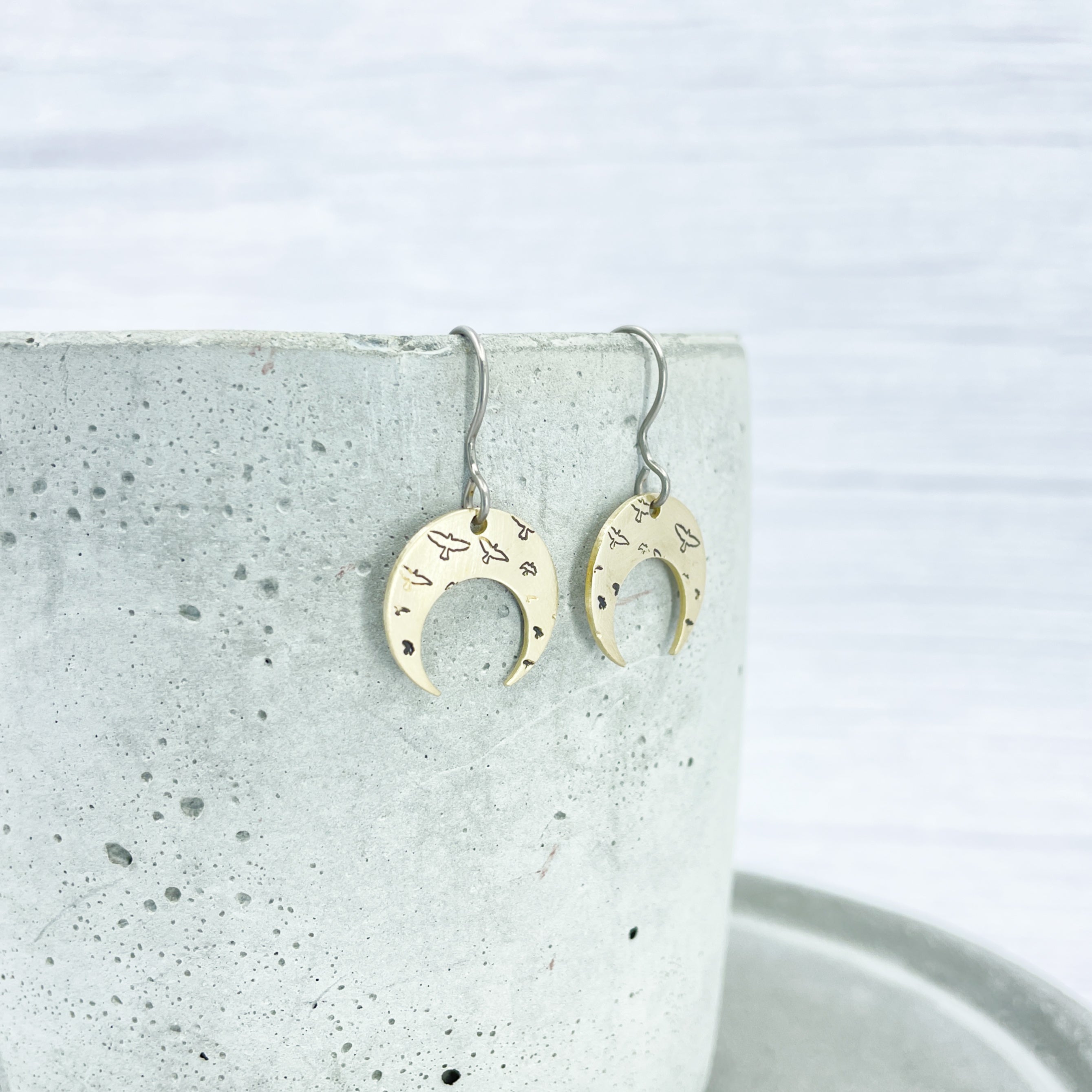 and the earrings have a total drop length of 1" (2.6cm) from the top of the ear wire to the bottom of the crescents.