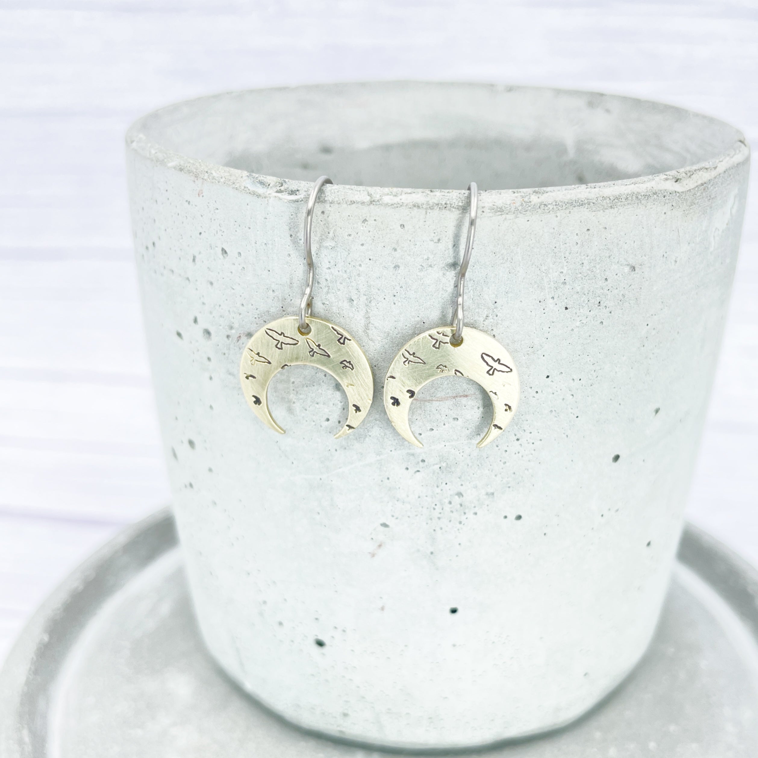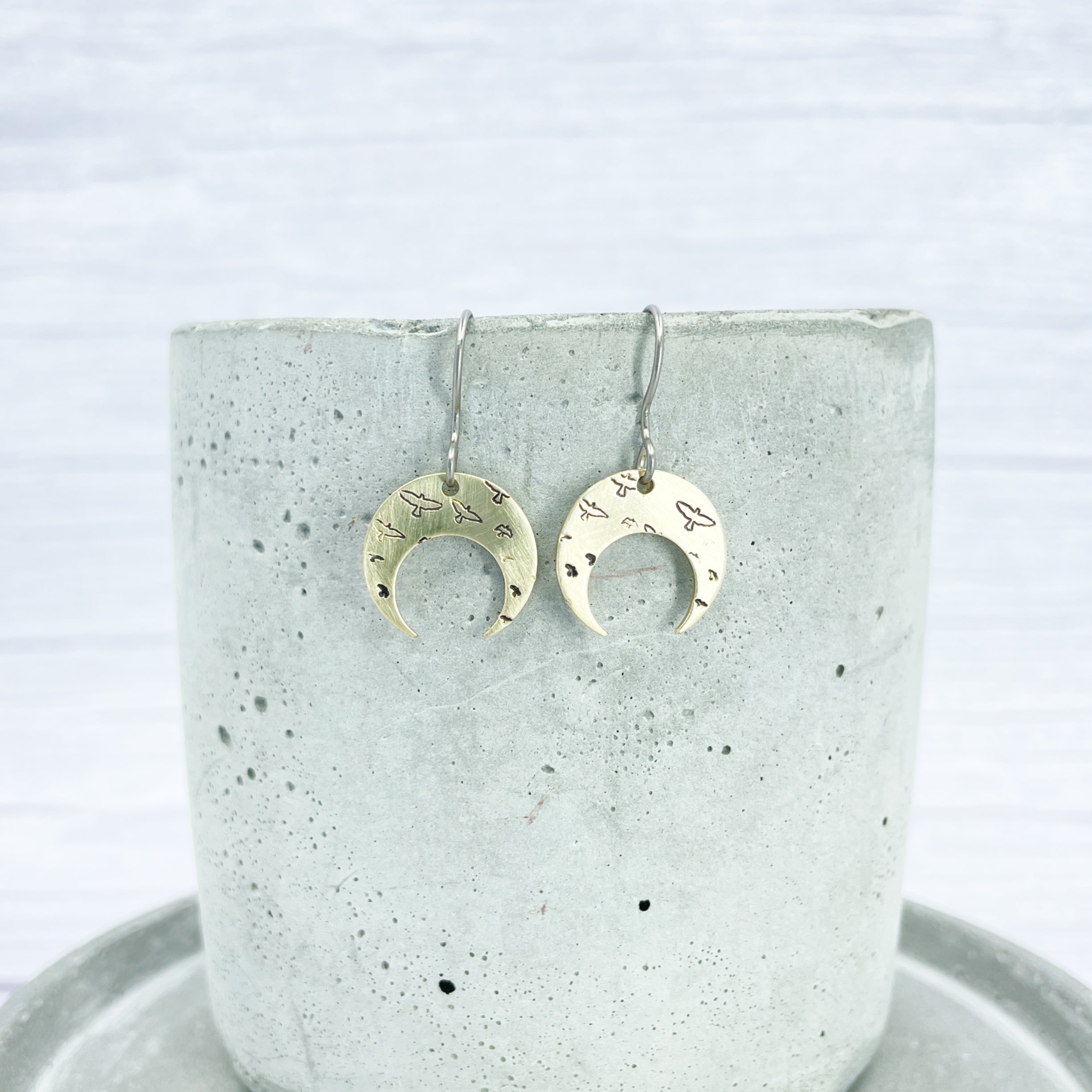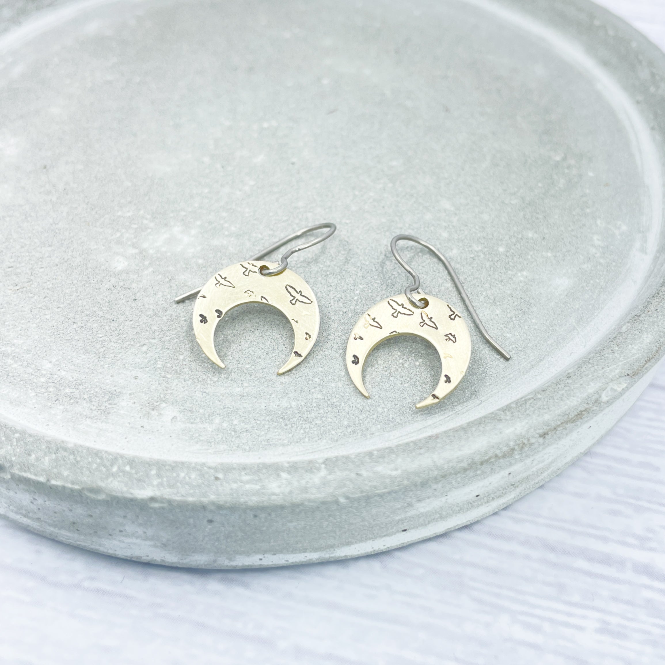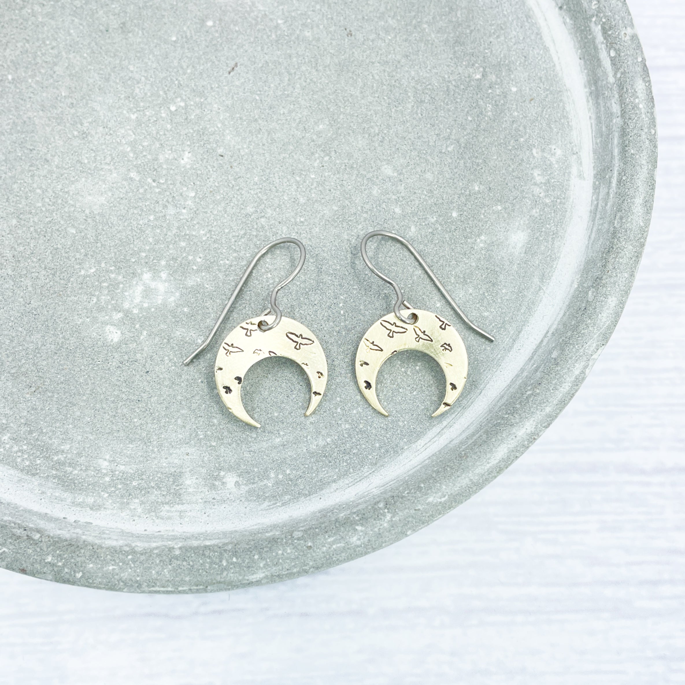 and the earrings have a total drop length of 1" (2.6cm) from the top of the ear wire to the bottom of the crescents.